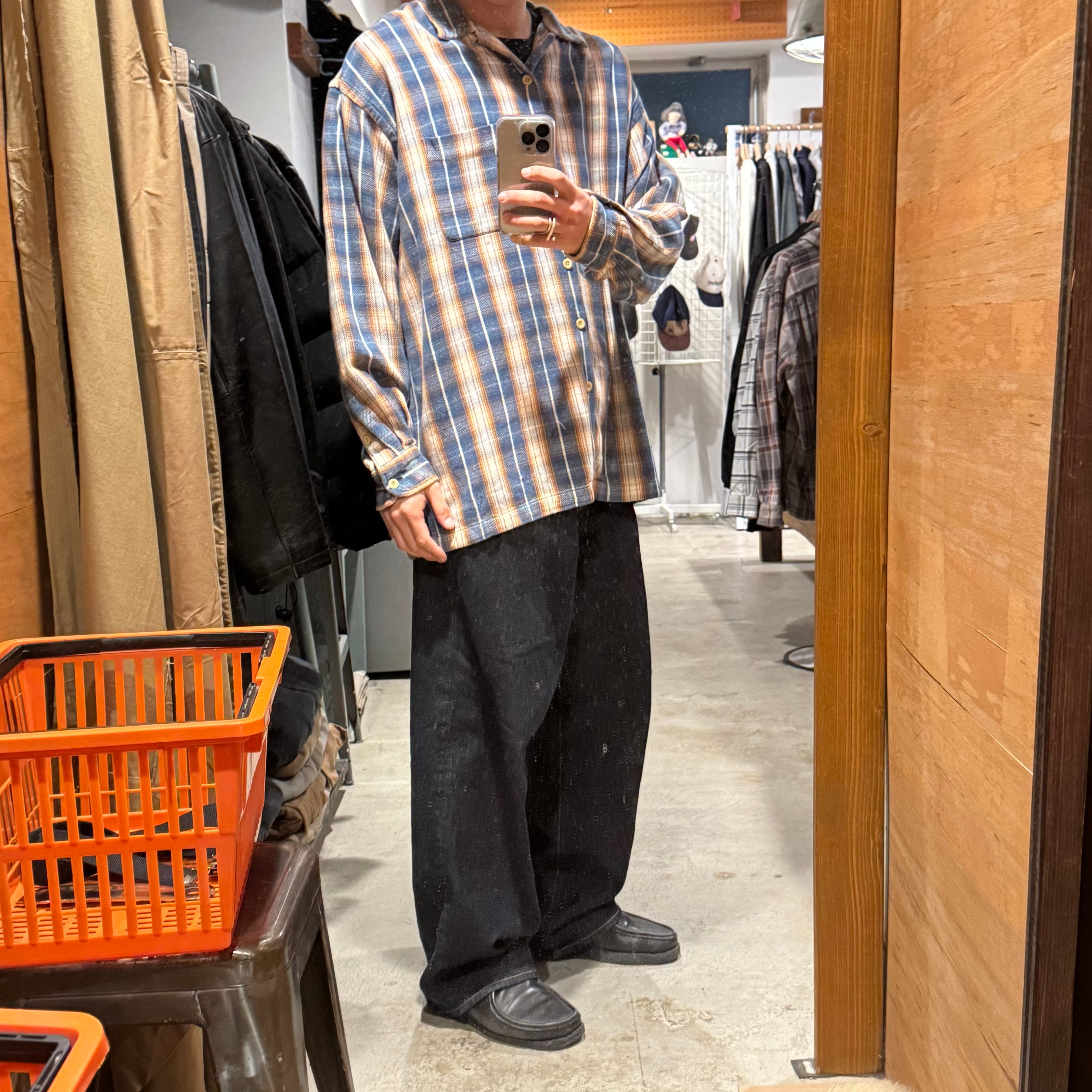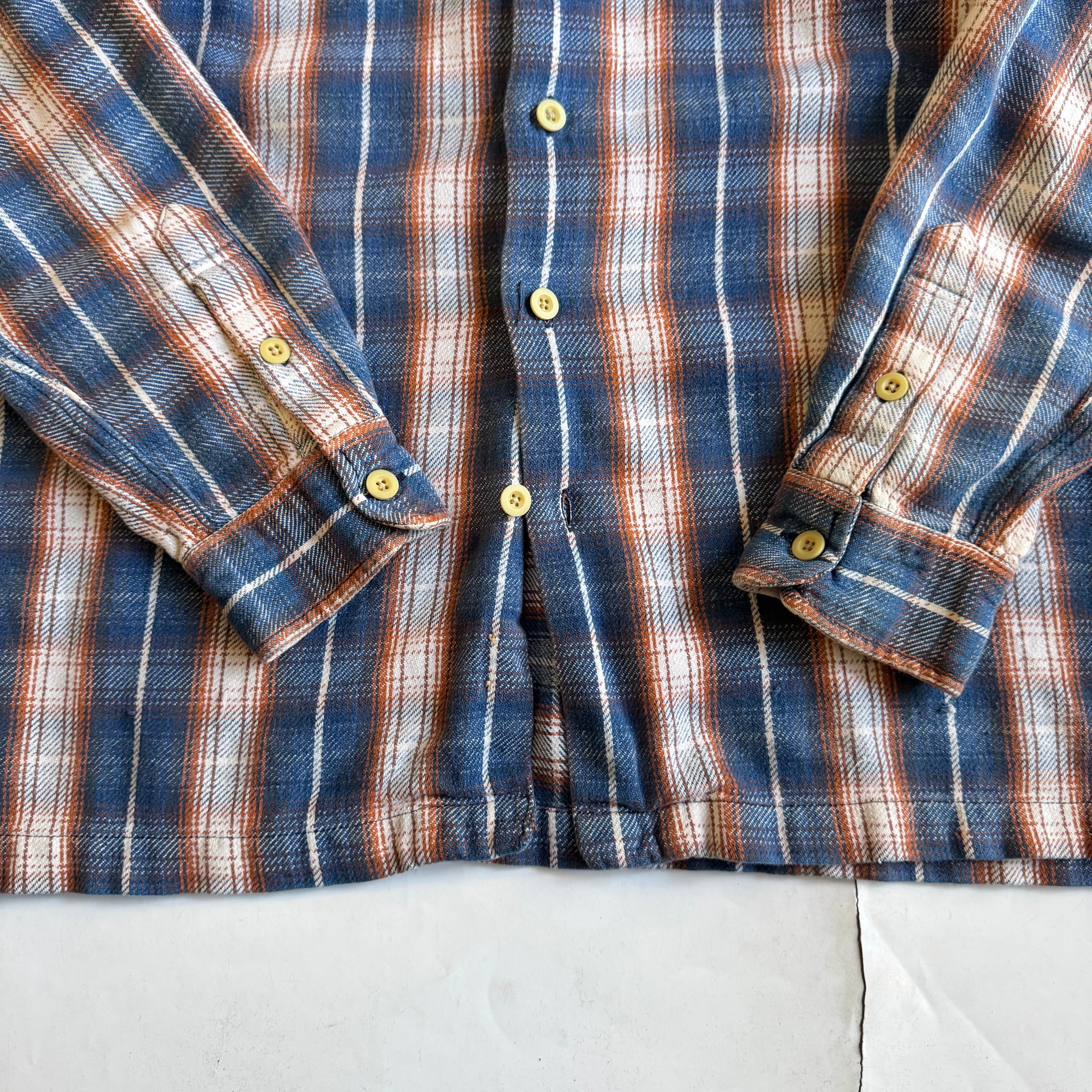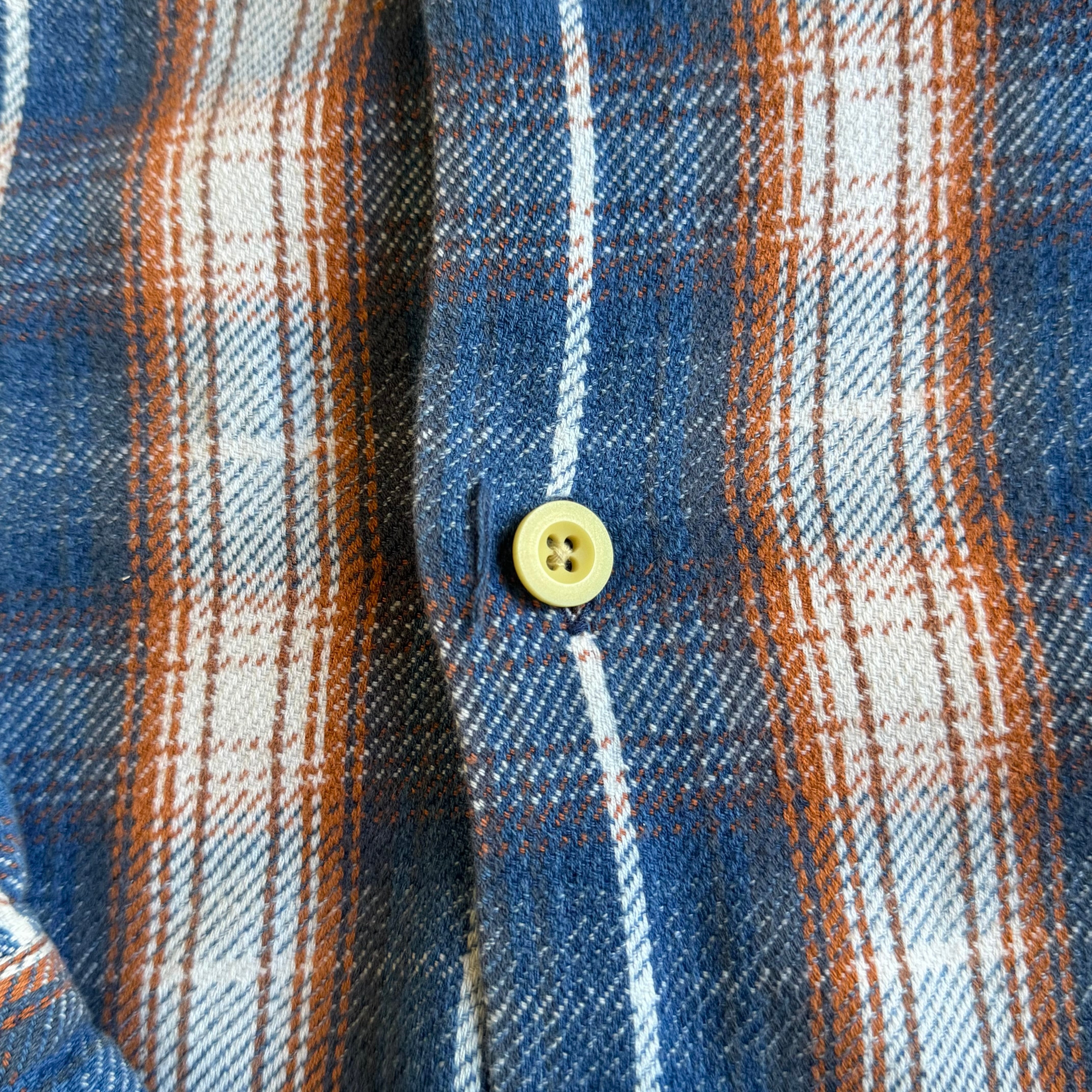 •SIZE XL 肩幅 56cm 袖丈 59cm 身幅 67cm 着丈 80cm 175cm着用 •MATERIAL COTTON 100% •COLOR ブルー ネイビー ホワイト オレンジブラウン系 •CONDITION 使用感はございますが、目立った傷や汚れ等はございません。 kt548