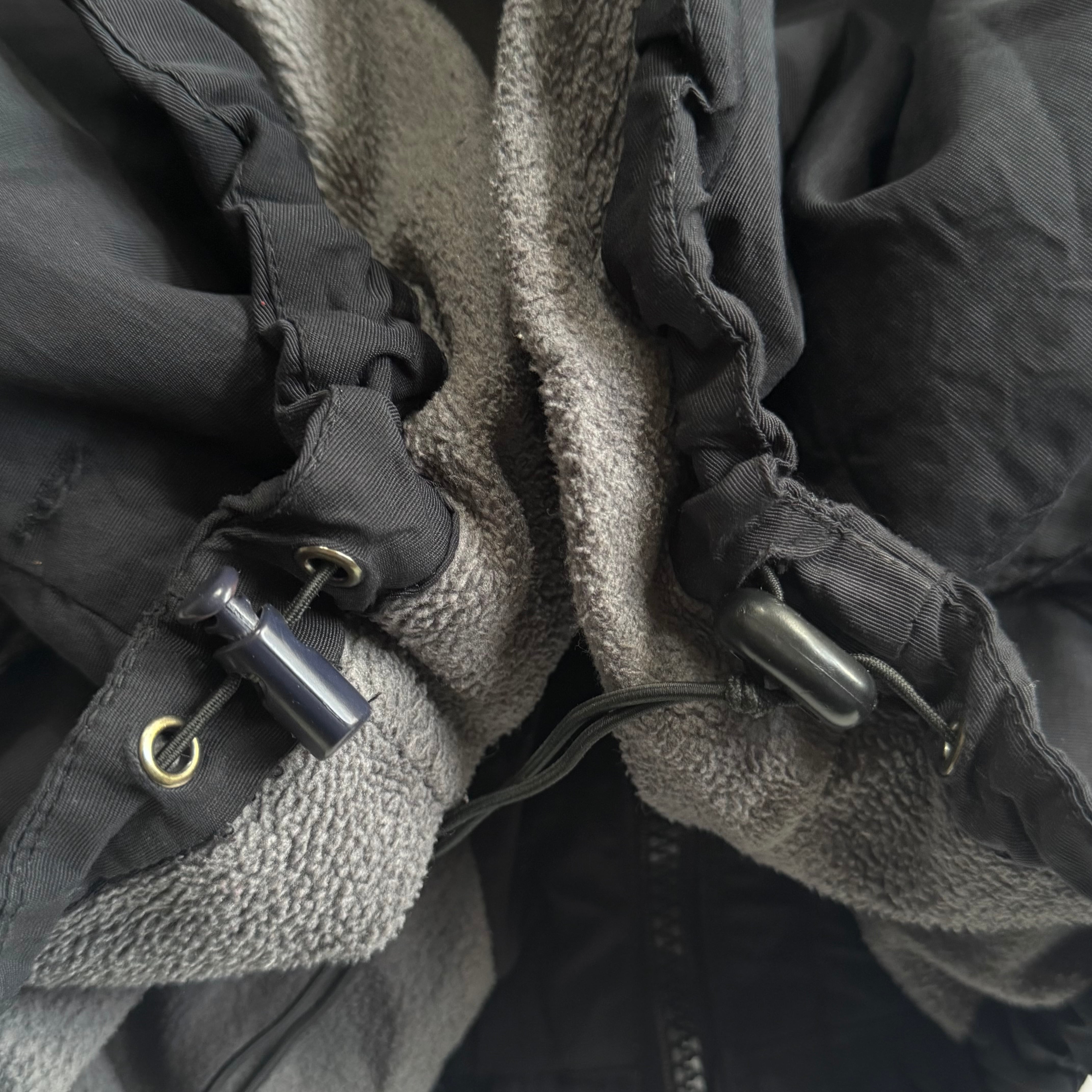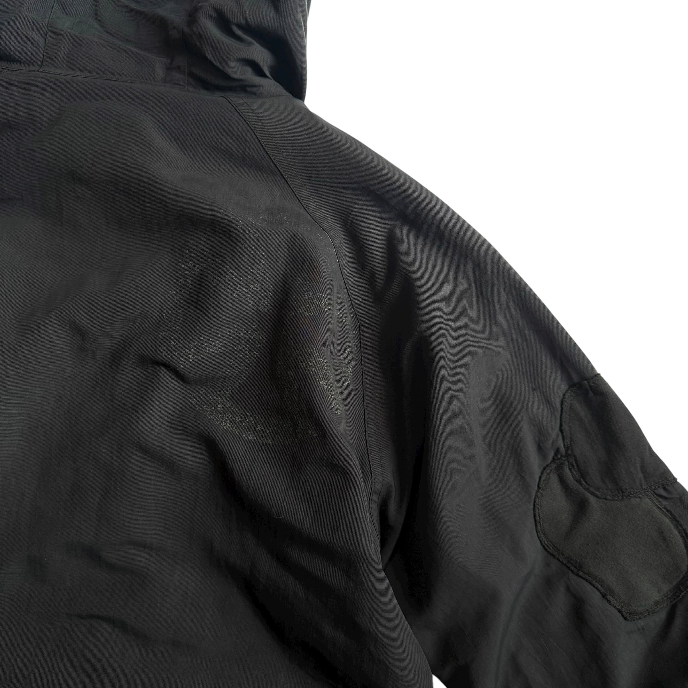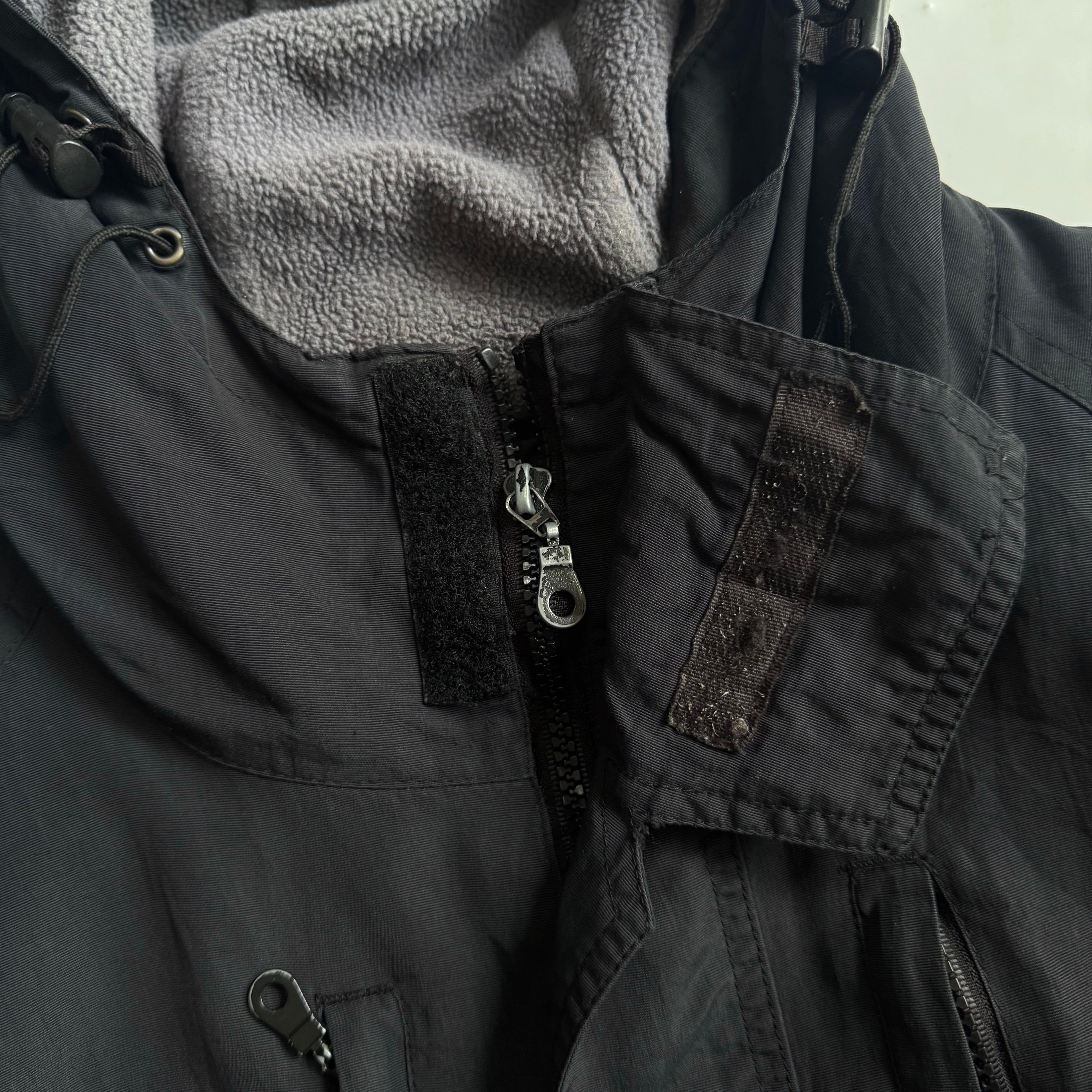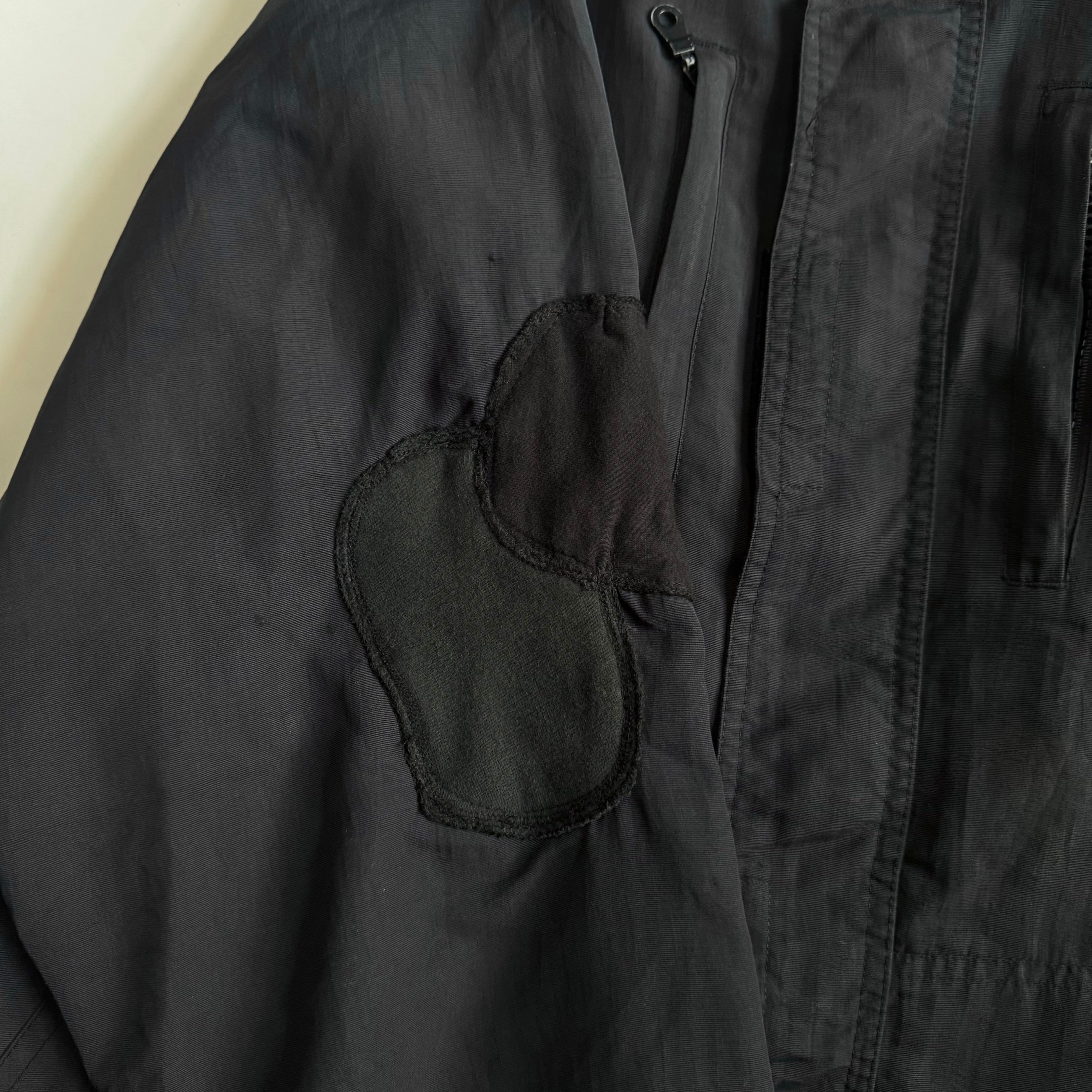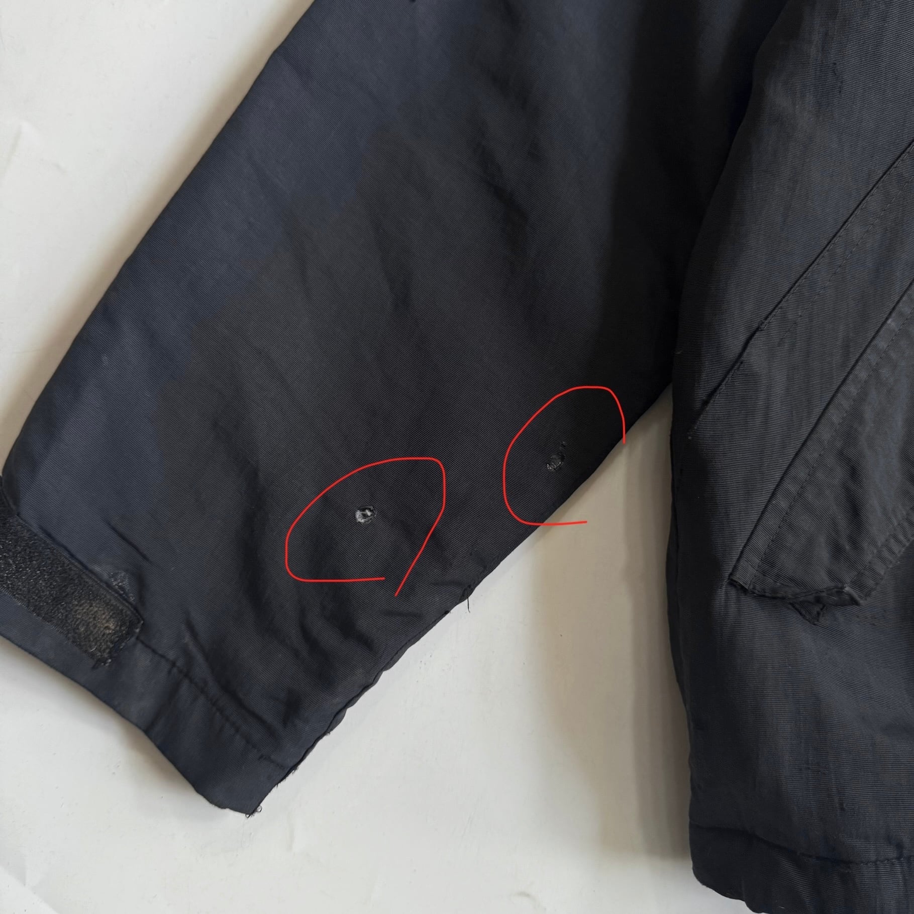 全体的に使用感、袖のマジックテープの欠損、マジックテープの緩み、左胸ポケットのジップの破損、右肘にリペア。