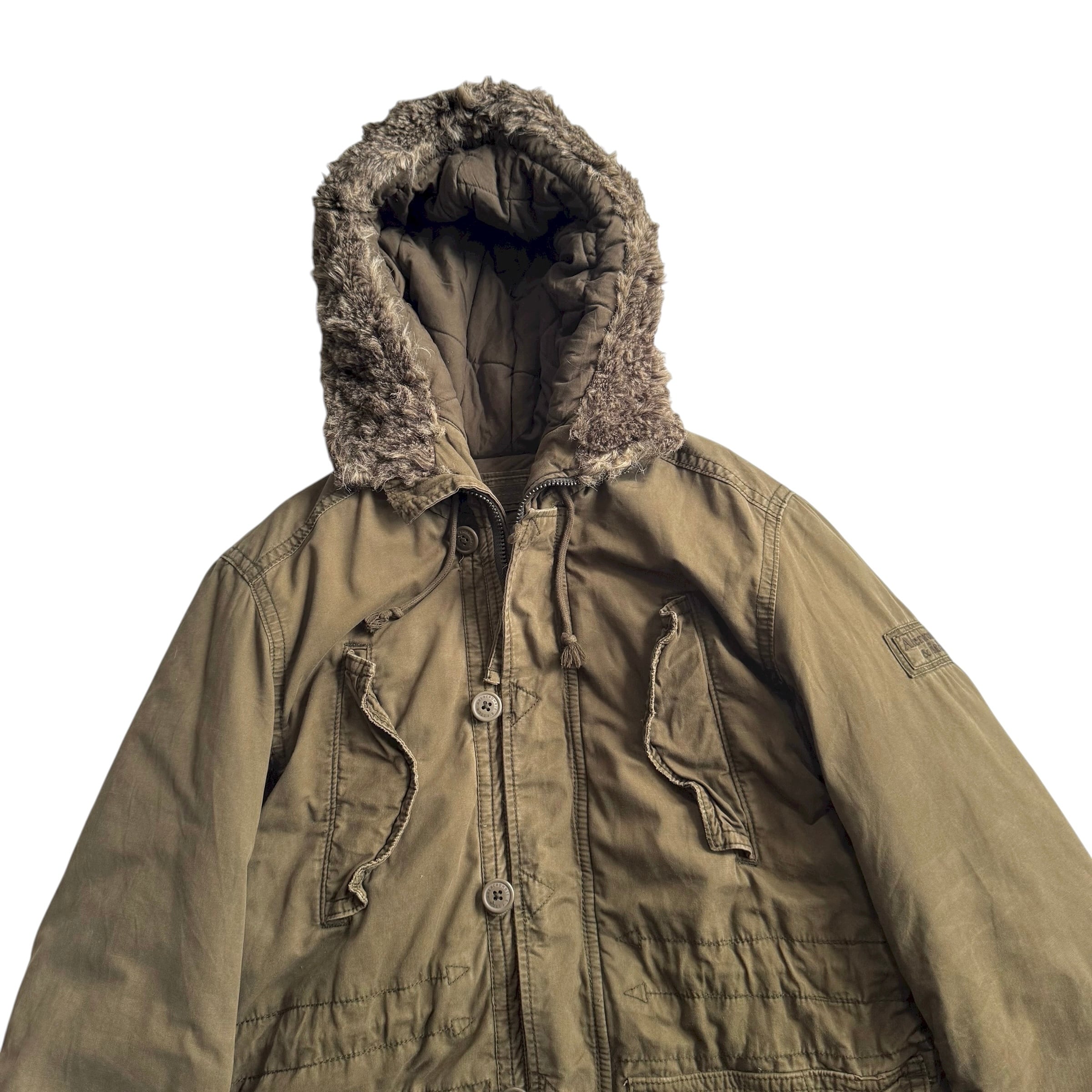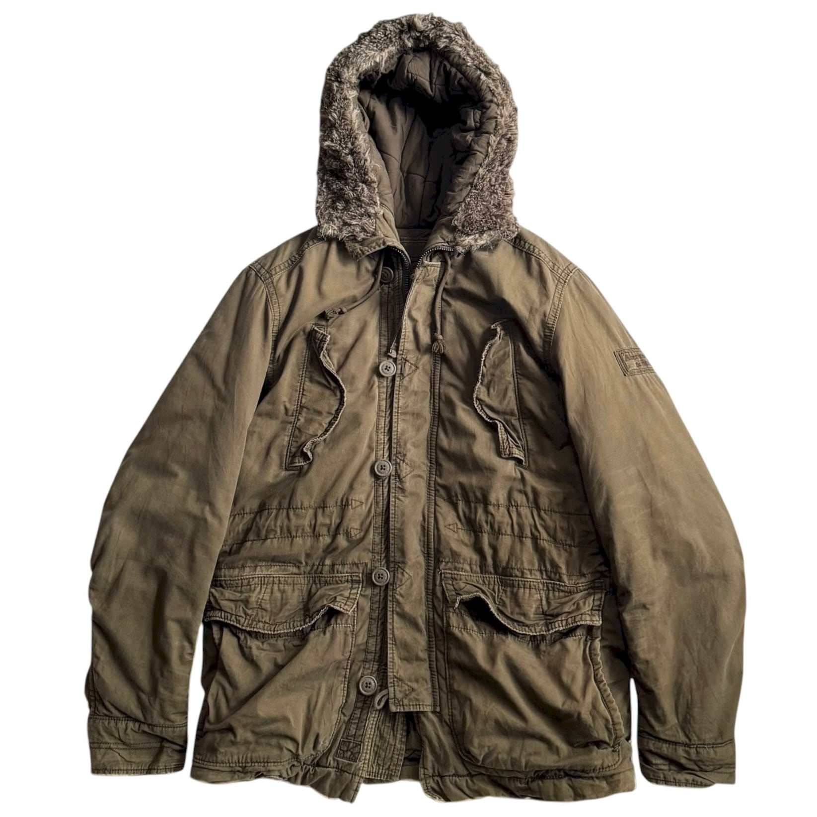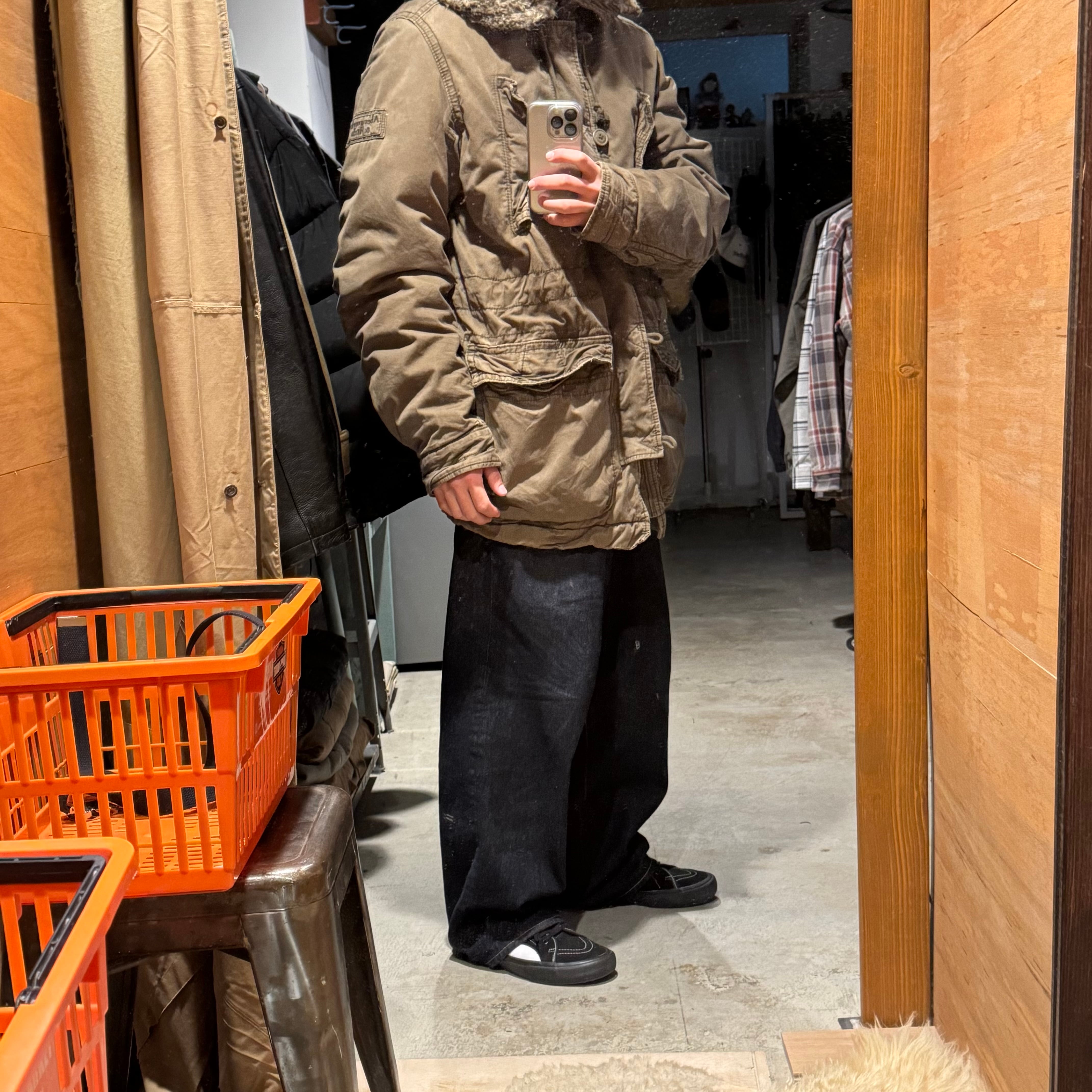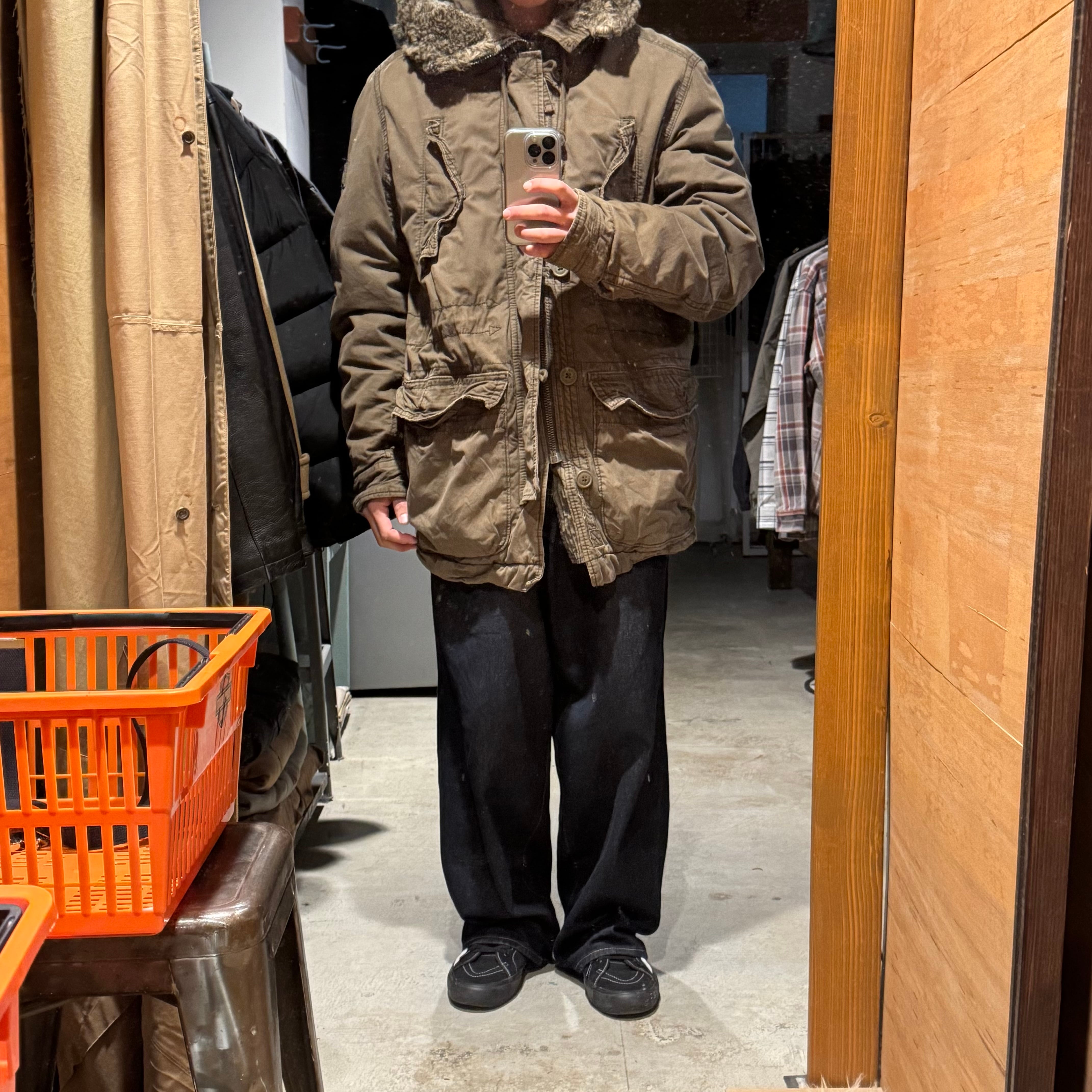 •SIZE M 肩幅 52cm 袖丈 70cm 身幅 63cm 着丈 83cm 175cm着用 •MATERIAL COTTON 100% •COLOR カーキブラウン系 •CONDITION 全体的に使用感やアタリがございますが、目立った傷や汚れ等はございません。 ya6379