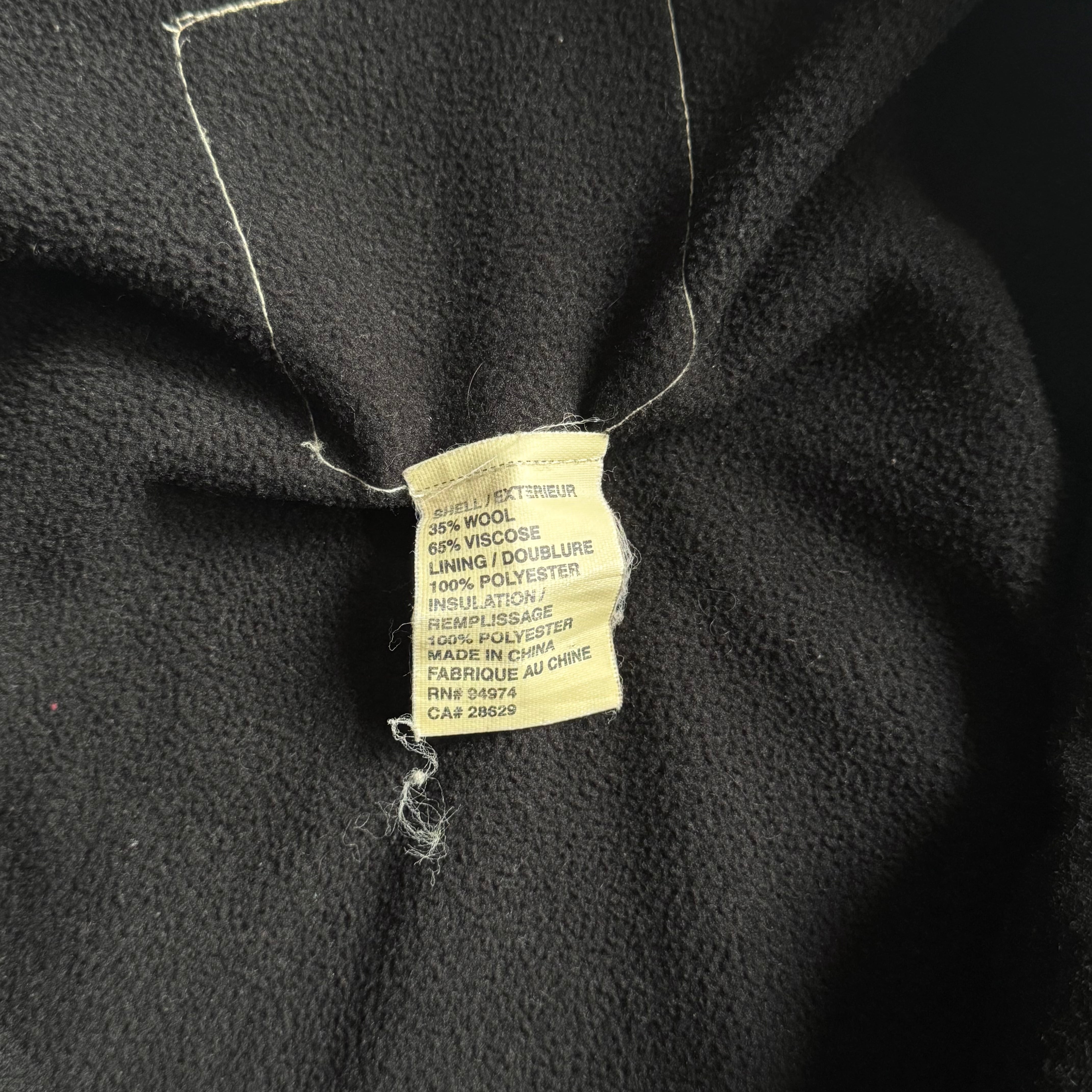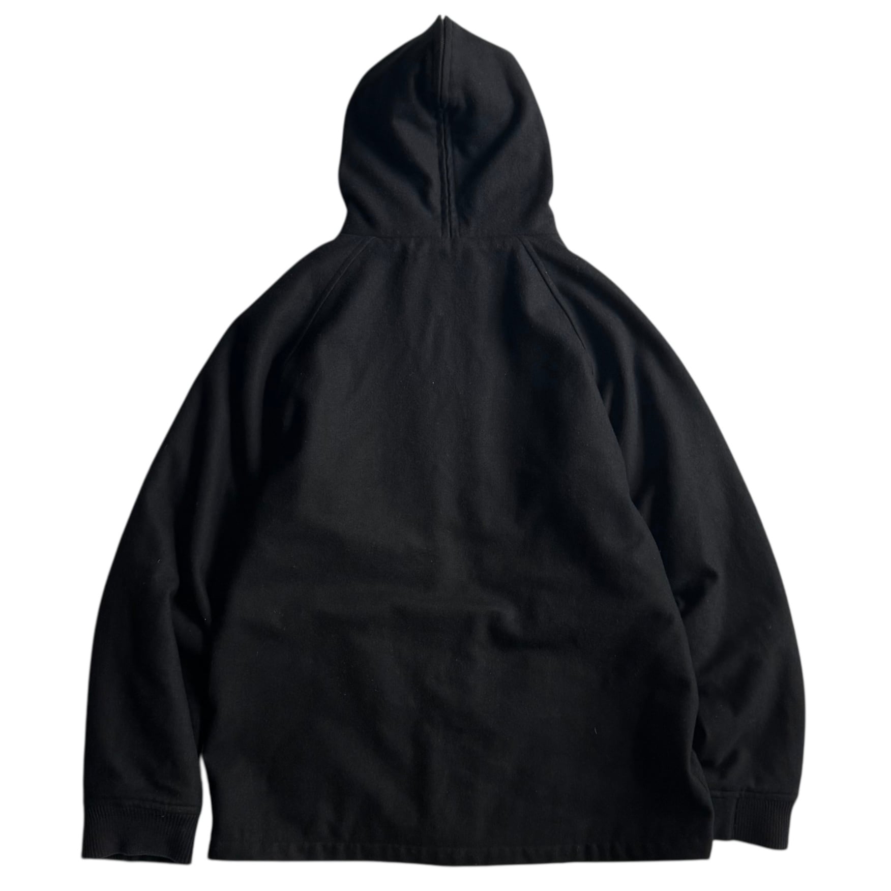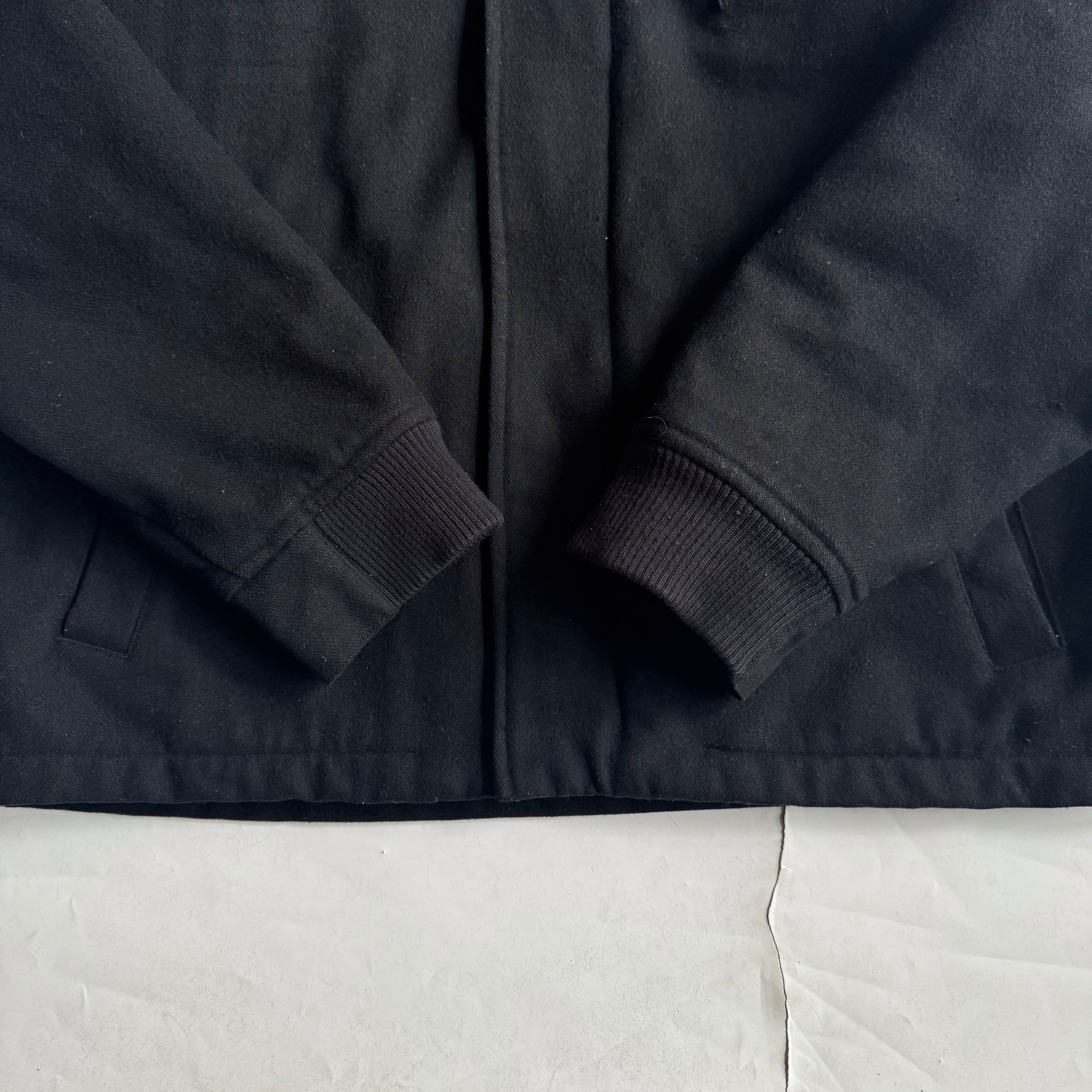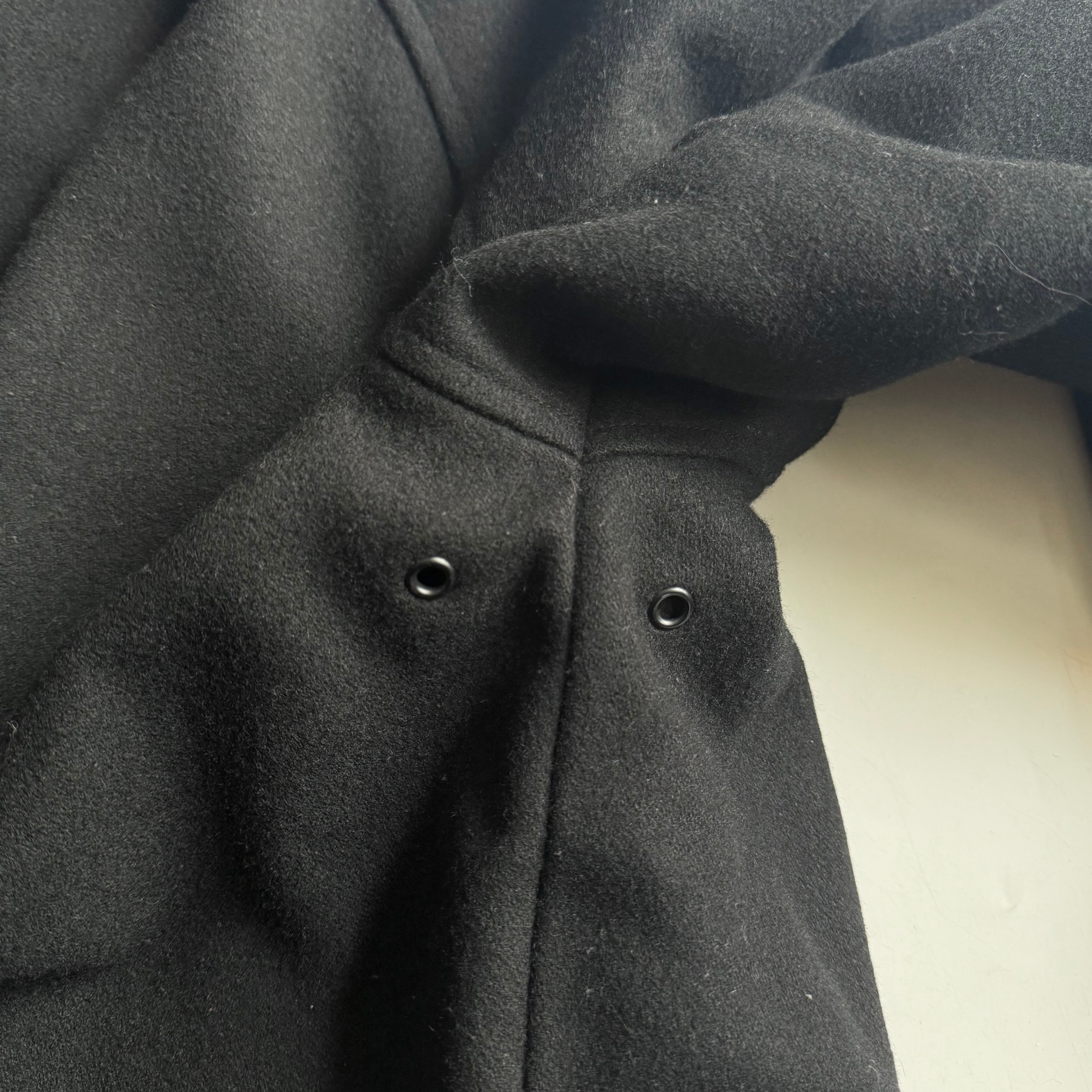 ブラックのウールで雰囲気◎ さりげなくフード裏に入るロゴ刺繍、あまり見ないタイプのイニシャルのデザイン。面白いディテールです。 •SIZE 表記不明 裄丈 96cm 身幅 65cm 着丈 77cm •MATERIAL WOOL 35% VISCOSE 65% •COLOR ブラック •CONDITION 使用感、背タグの欠損がございますが、目立った傷や汚れ等はございません。