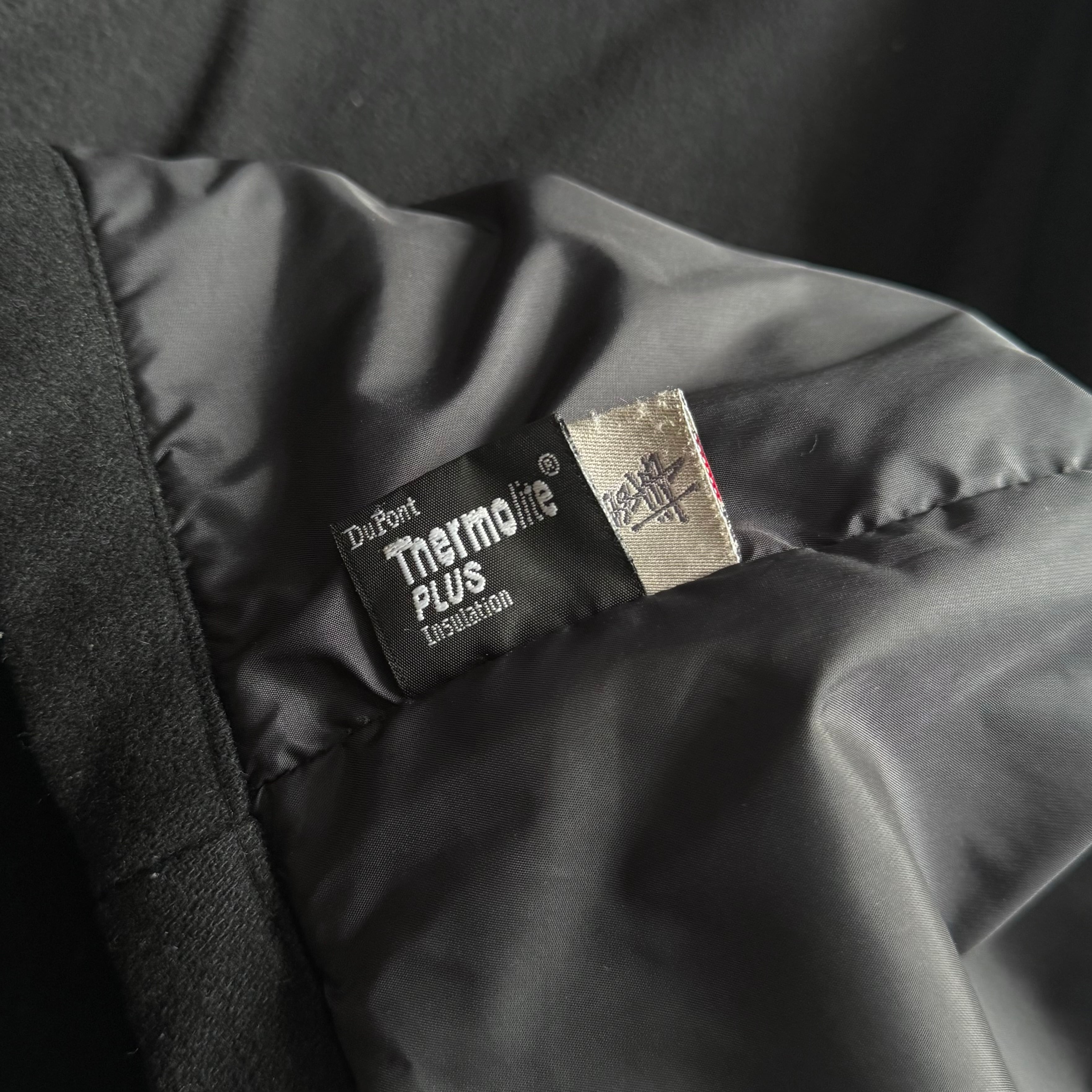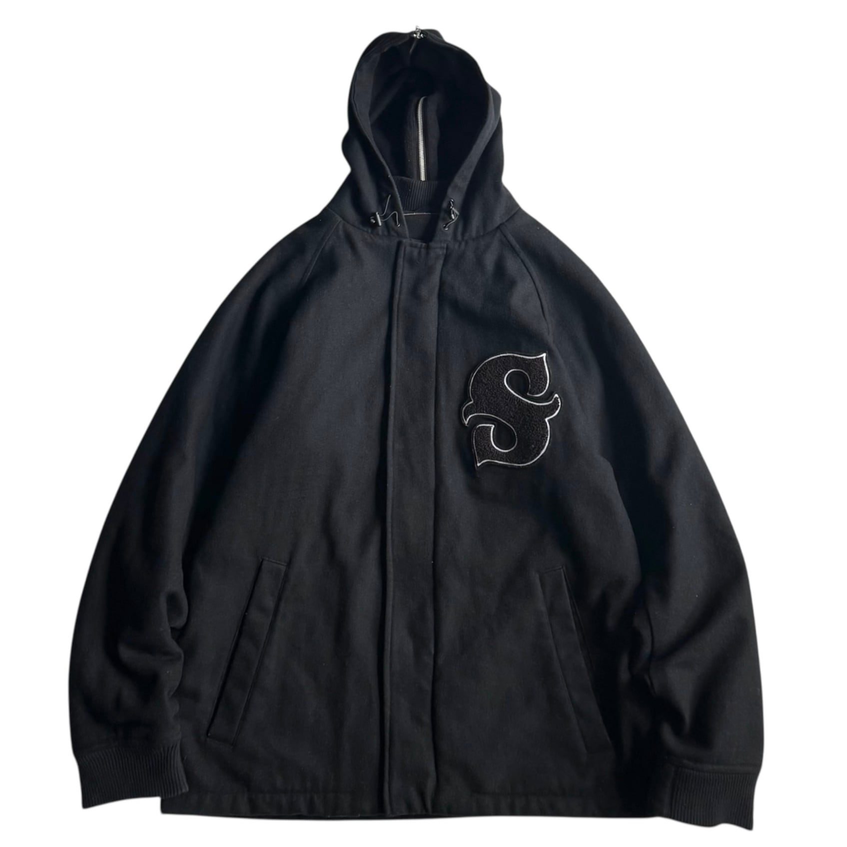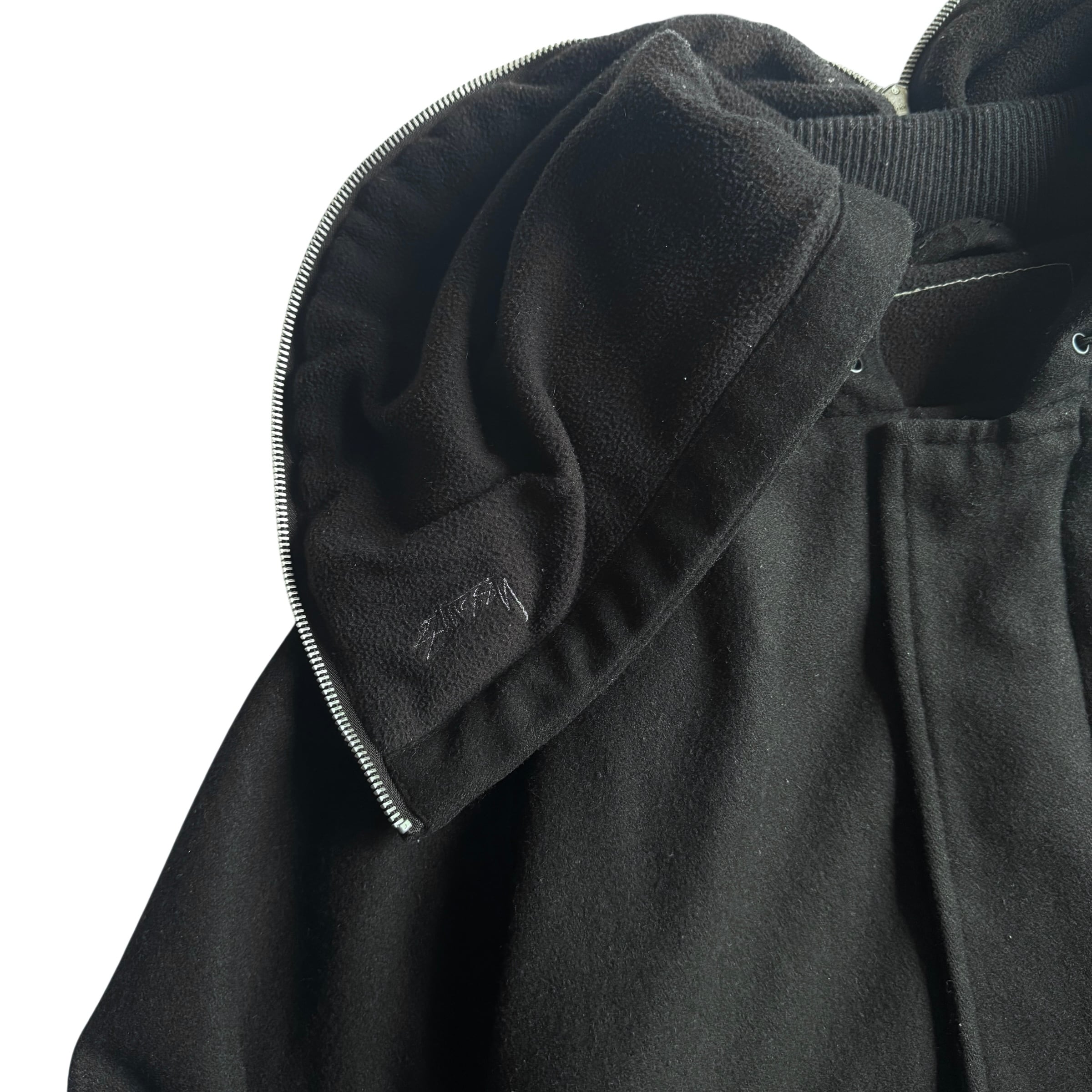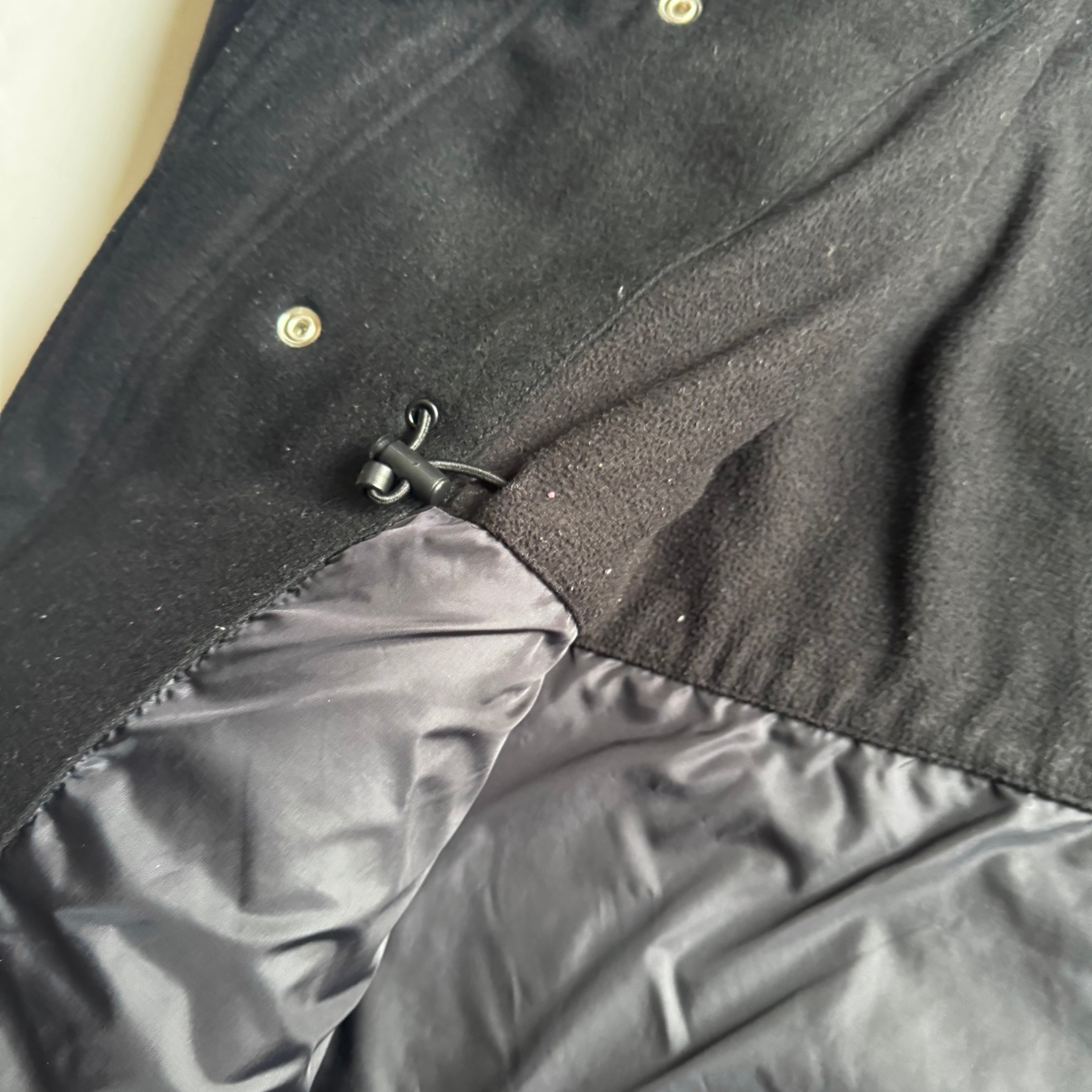 ブラックのウールで雰囲気◎ さりげなくフード裏に入るロゴ刺繍、あまり見ないタイプのイニシャルのデザイン。面白いディテールです。 •SIZE 表記不明 裄丈 96cm 身幅 65cm 着丈 77cm •MATERIAL WOOL 35% VISCOSE 65% •COLOR ブラック •CONDITION 使用感、背タグの欠損がございますが、目立った傷や汚れ等はございません。