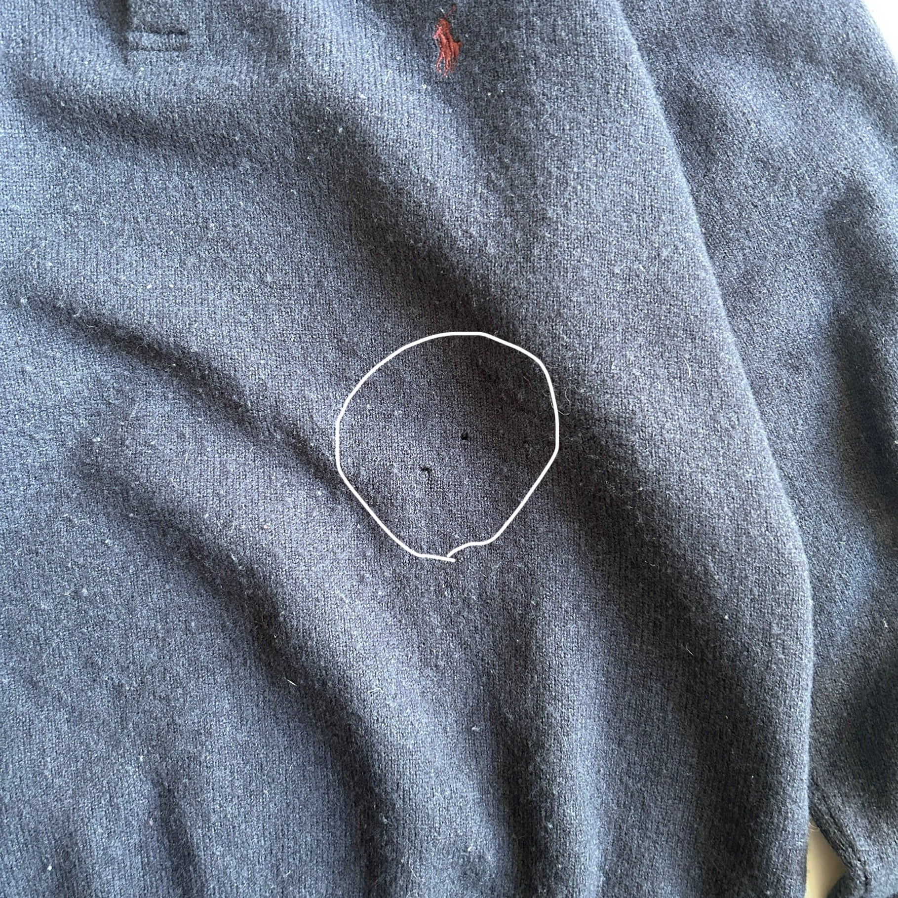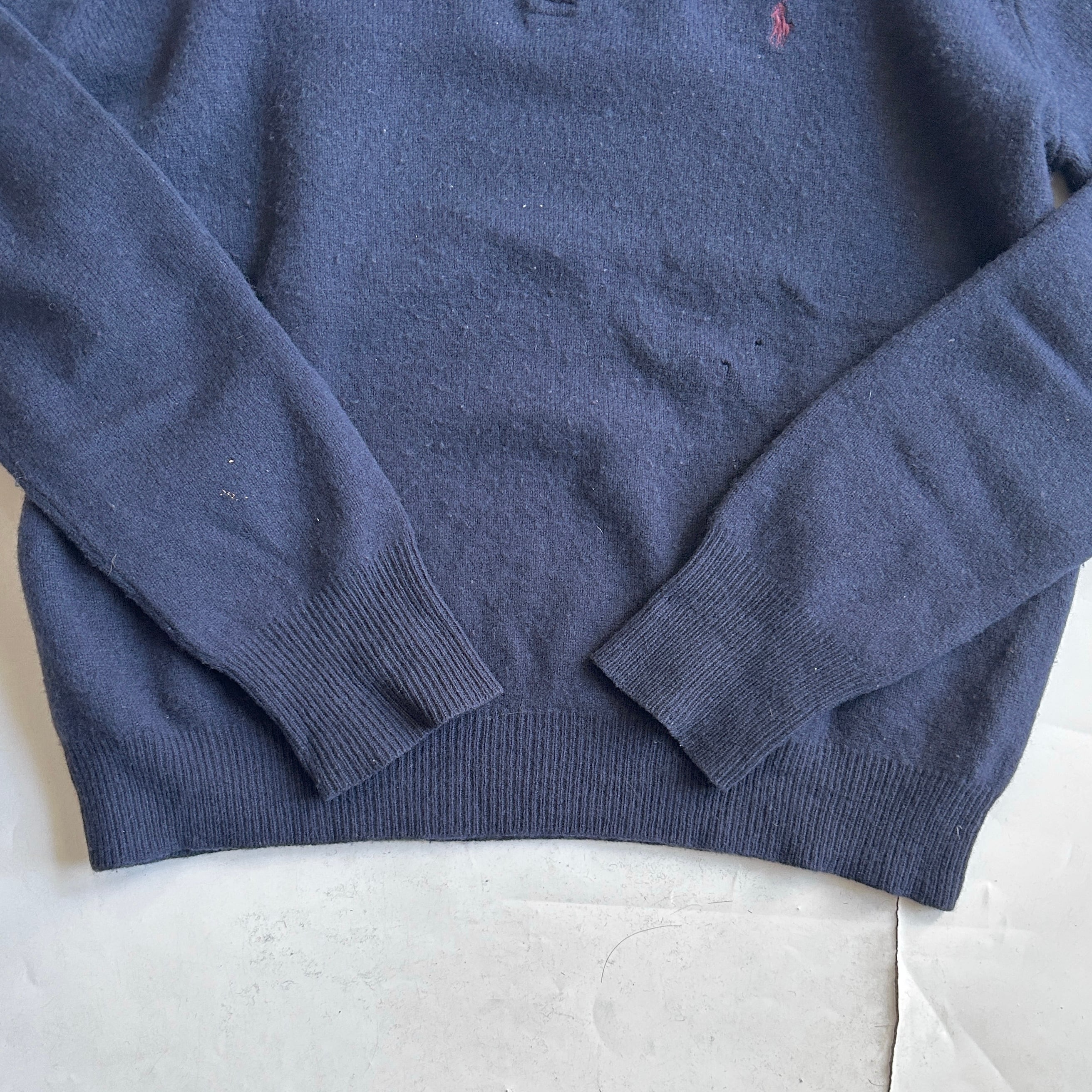 •SIZE XL 肩幅49 cm 袖丈 75cm 身幅 61cm 着丈62.5cm 180cm着用 •MATERIAL LAMBS WOOL100 % •COLOR ネイビー •CONDITION 左胸下辺りに小さな穴があります。 写真にてご確認下さい。 ya6401