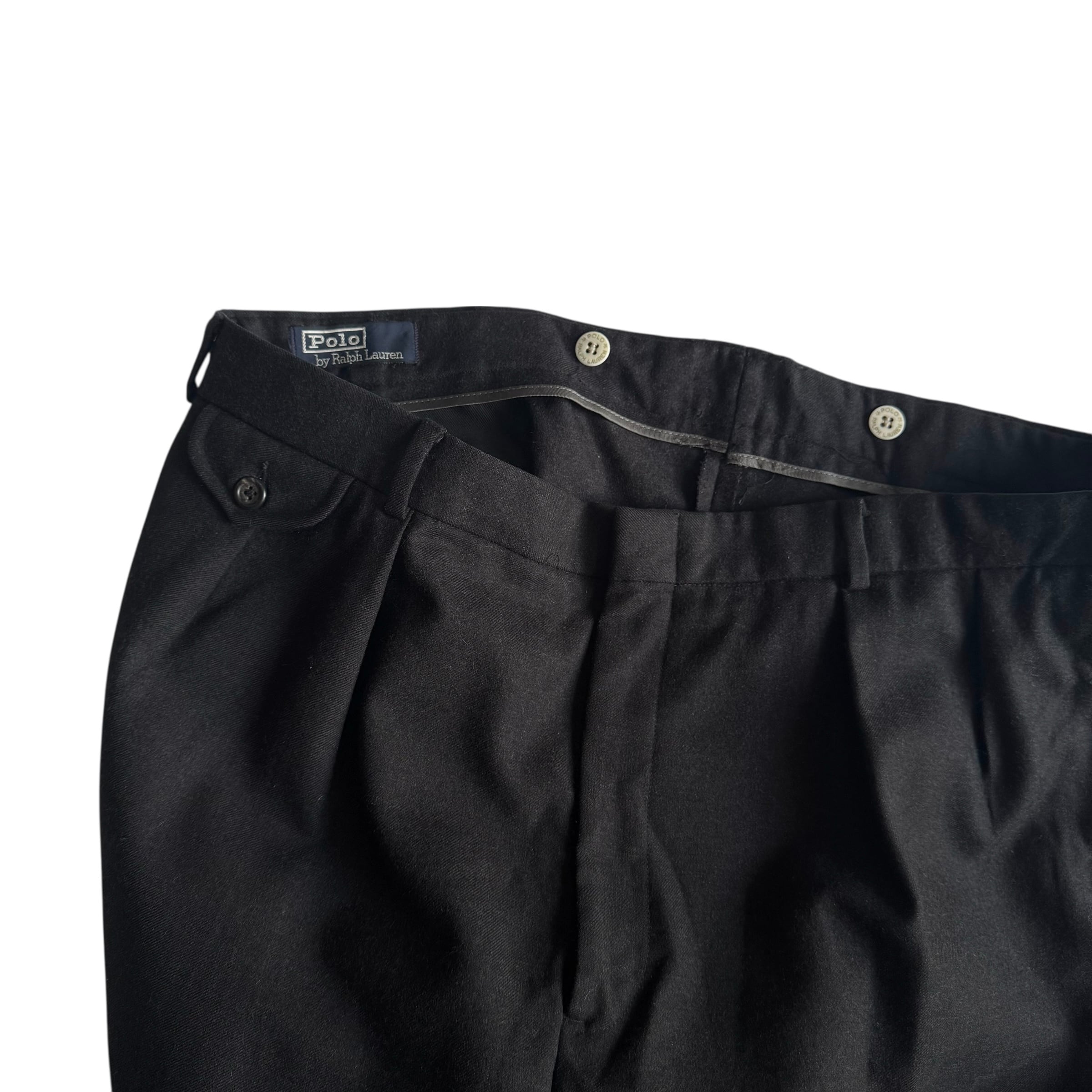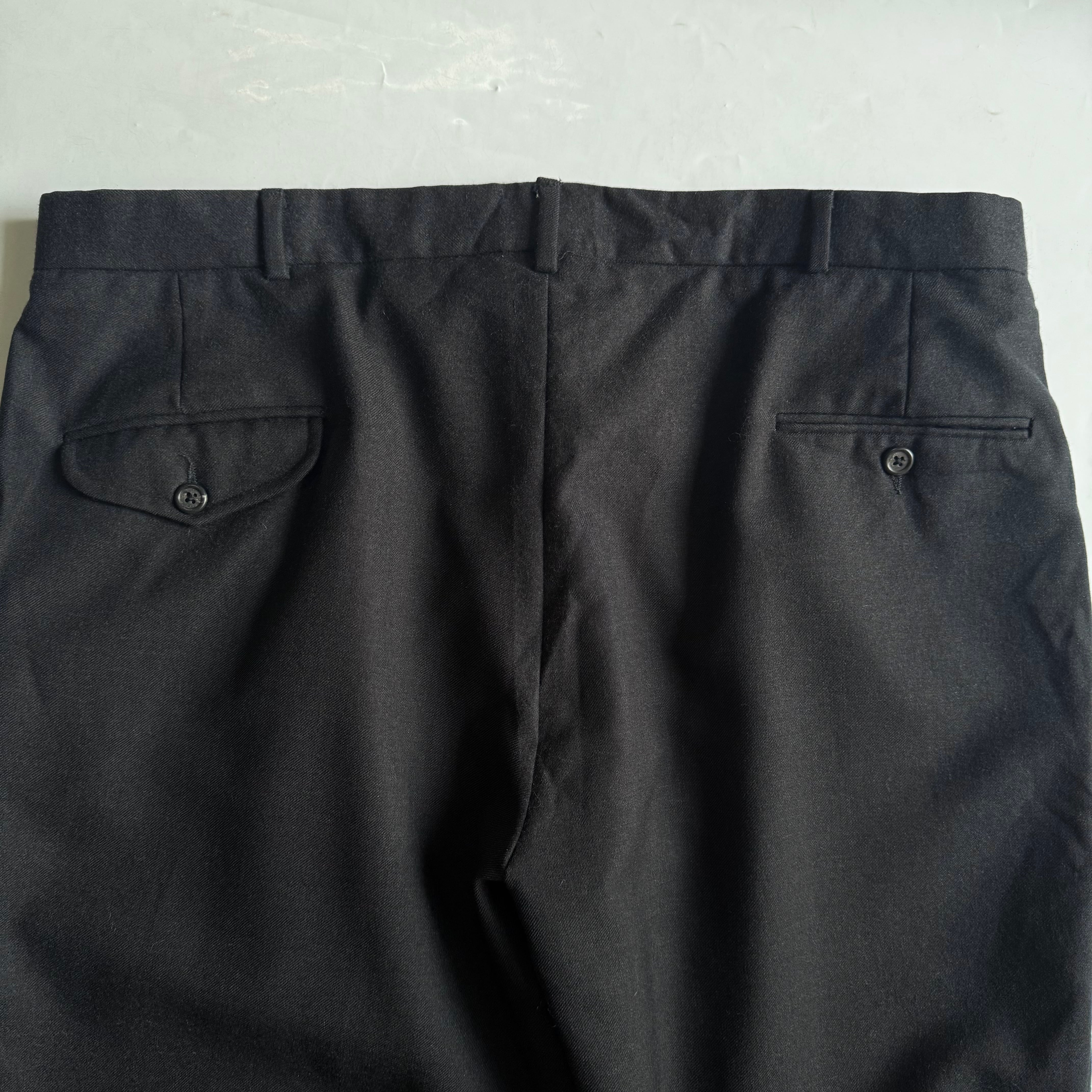 •SIZE 表記不明 ウエスト 102cm 股上 30cm 股下 81cm 渡り 34cm 裾幅 27cm 175cm着用(ベルトで絞って) •MATERIAL 恐らく COTTON WOOL •COLOR ブラック •CONDITION 使用感はございますが、目立った汚れやダメージはございません。 ya6428