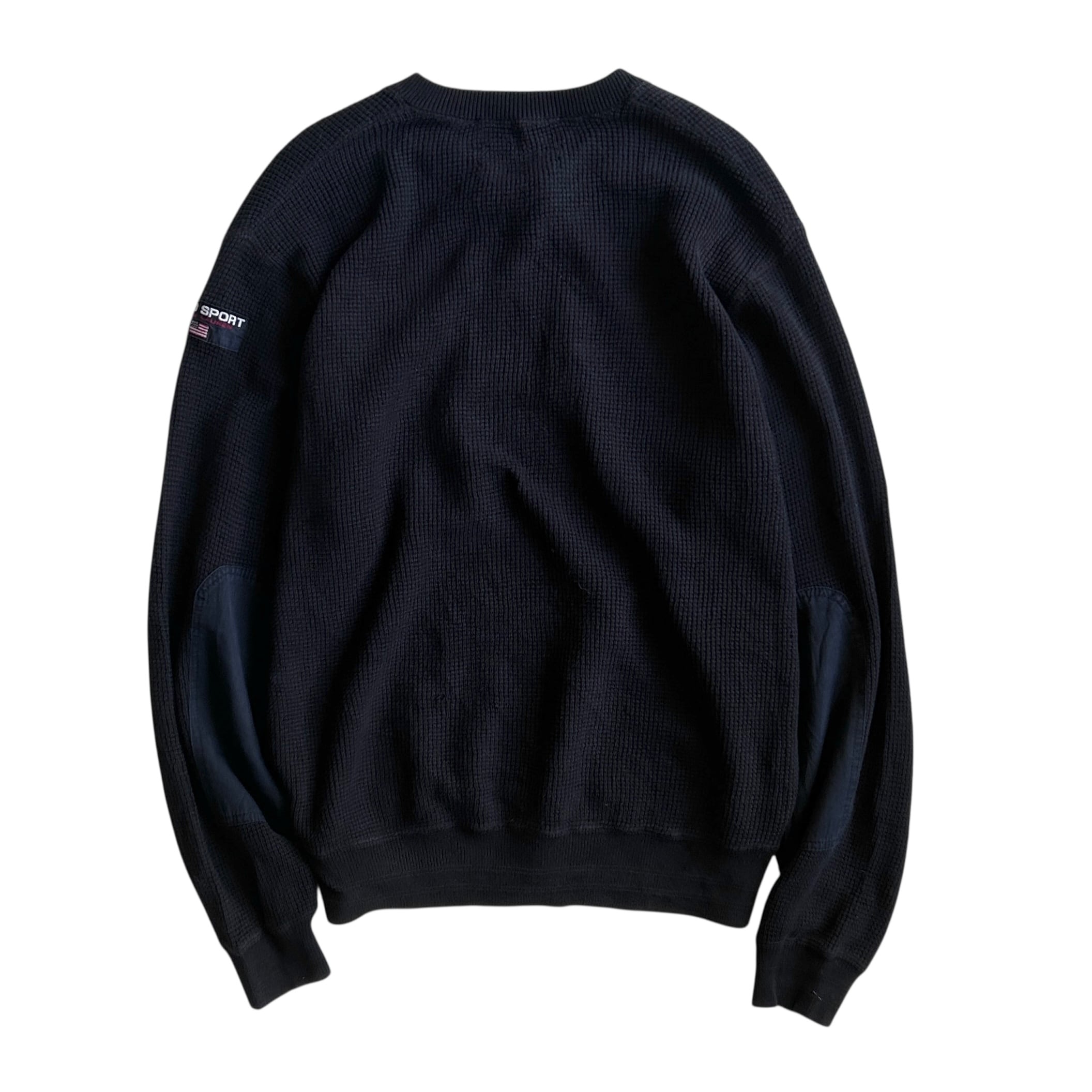 •SIZE L 肩幅47cm 袖丈 56cm 身幅 57cm 着丈64cm 180cm着用 •MATERIAL COTTON 100 % •COLOR ネイビー •CONDITION 使用感はございますが、目立った傷や汚れ等はございません。 f794