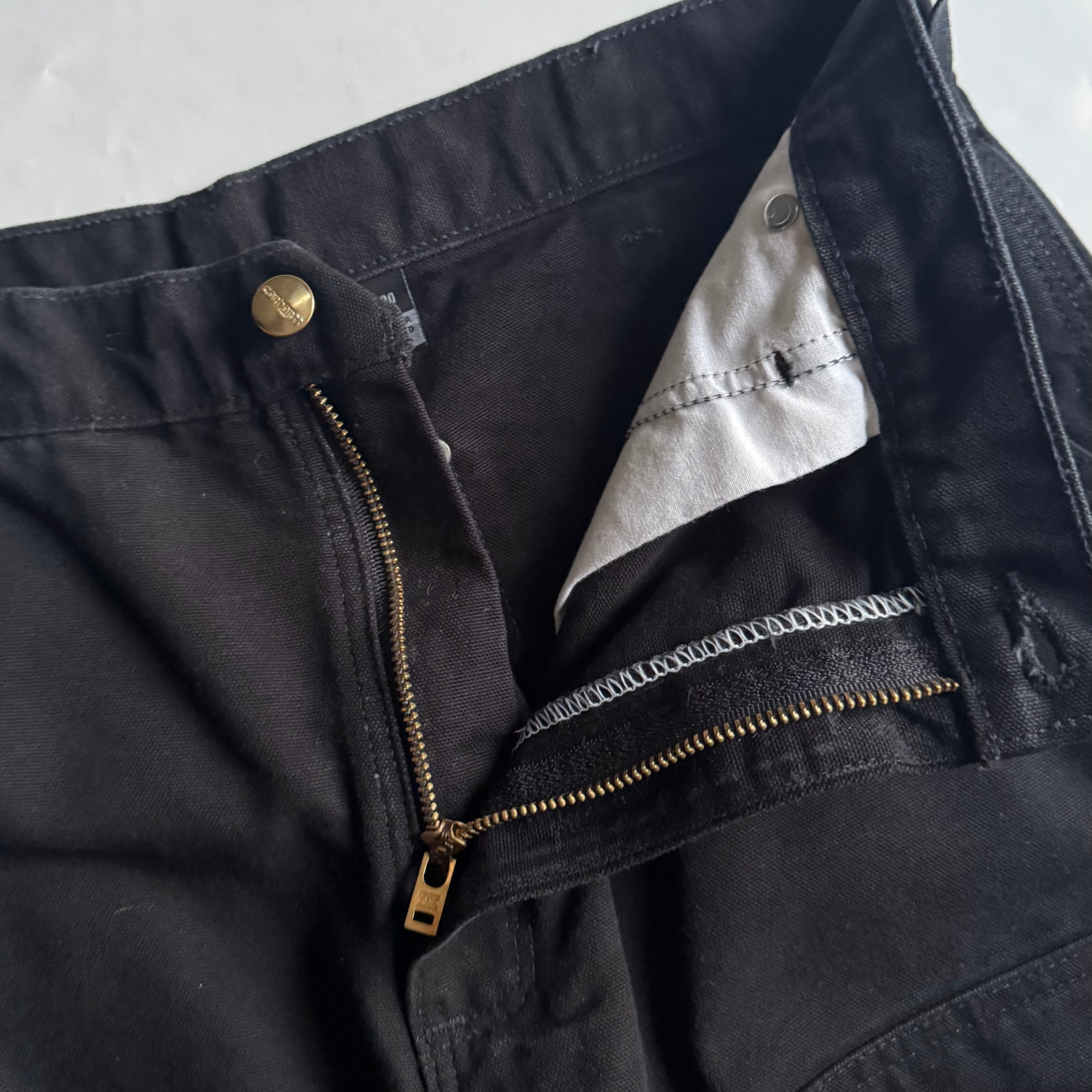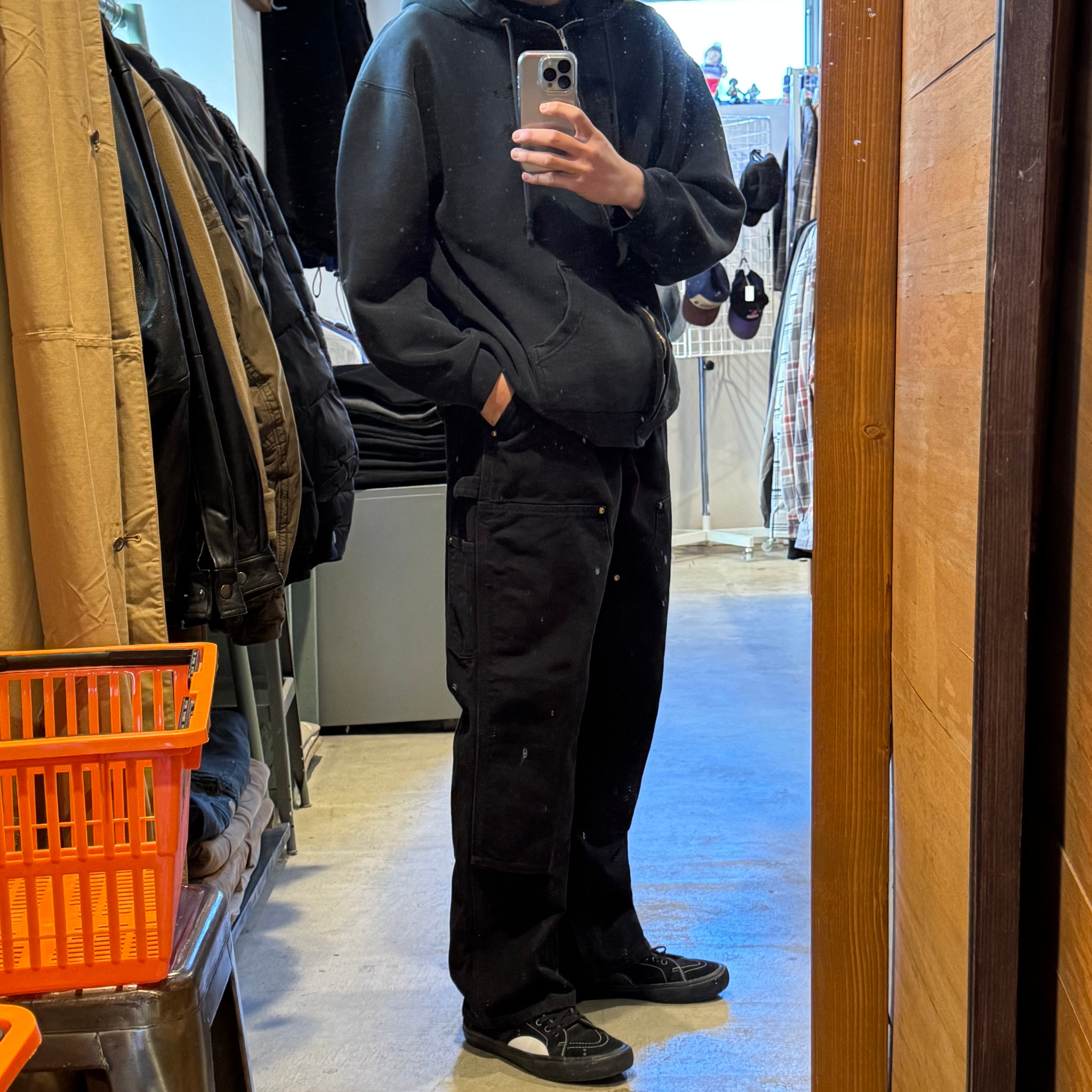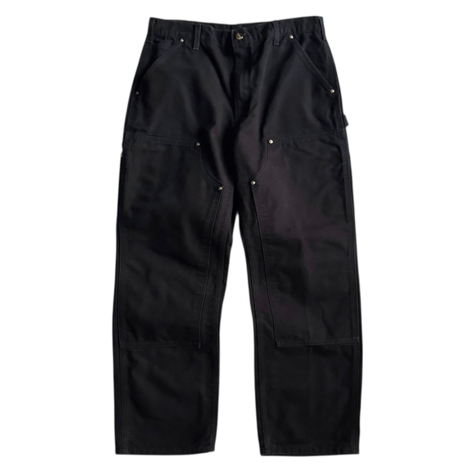 真っ直ぐ漢気のブラックダブルニー◎ •SIZE 34×30 ウエスト 85cm 股上 31cm 股下 73.5cm わたり 32cm 裾幅 23cm 175cm着用 •MATERIAL COTTON 100% •COLOR ブラック •CONDITION 使用感はございますが、目立った傷や汚れ等はございません。 gar2724