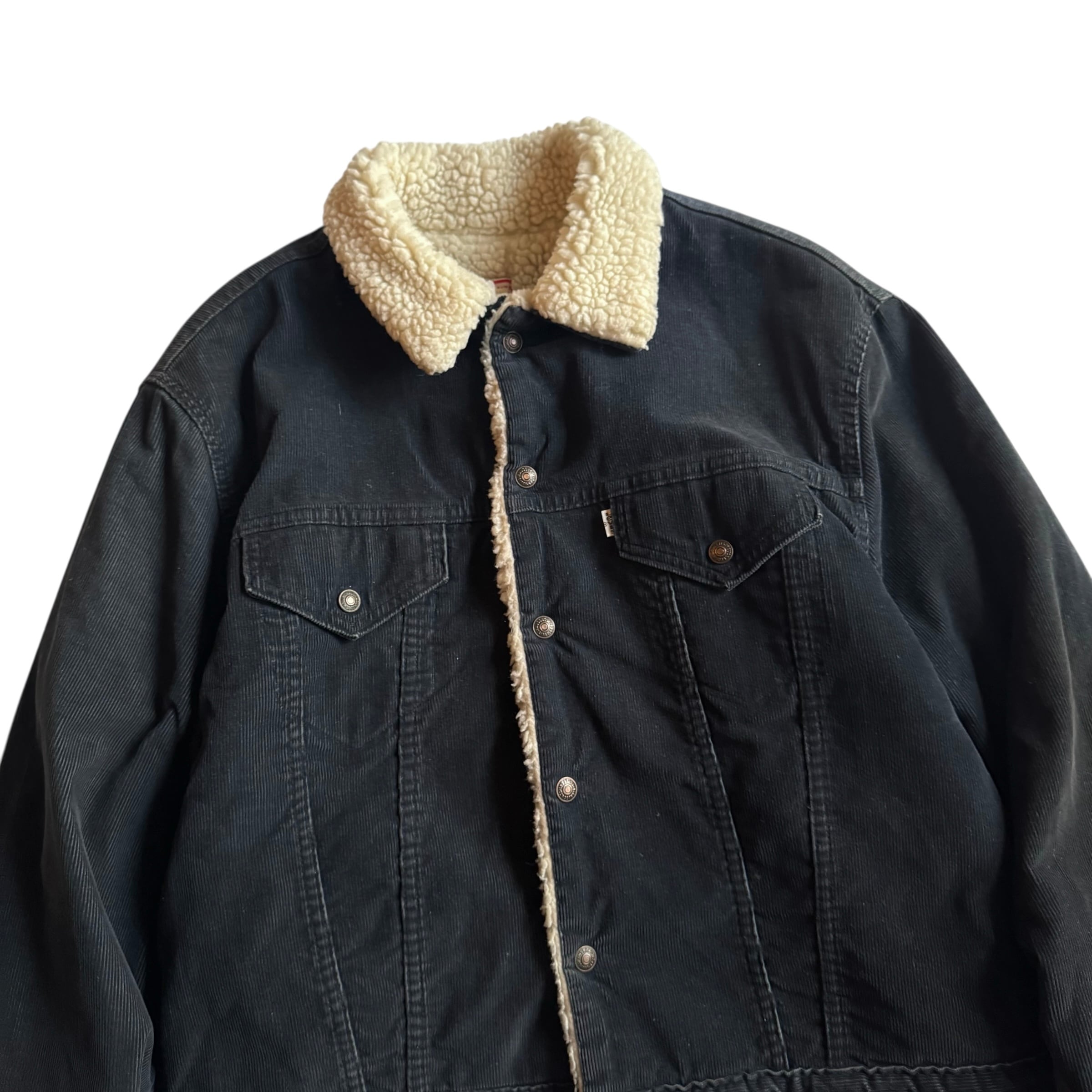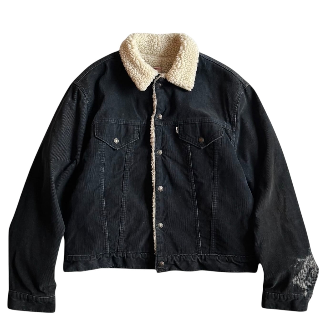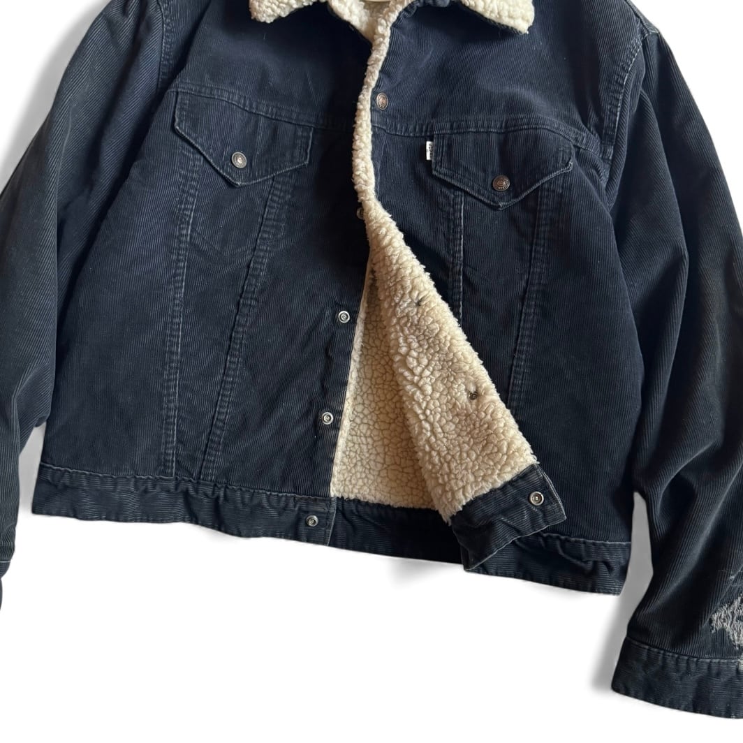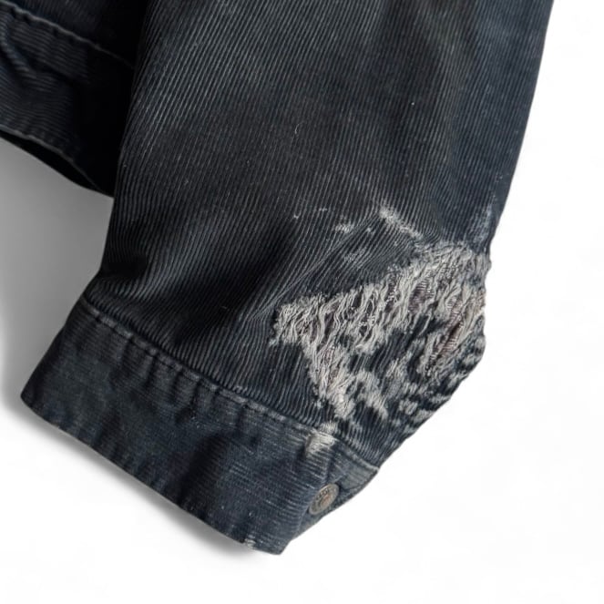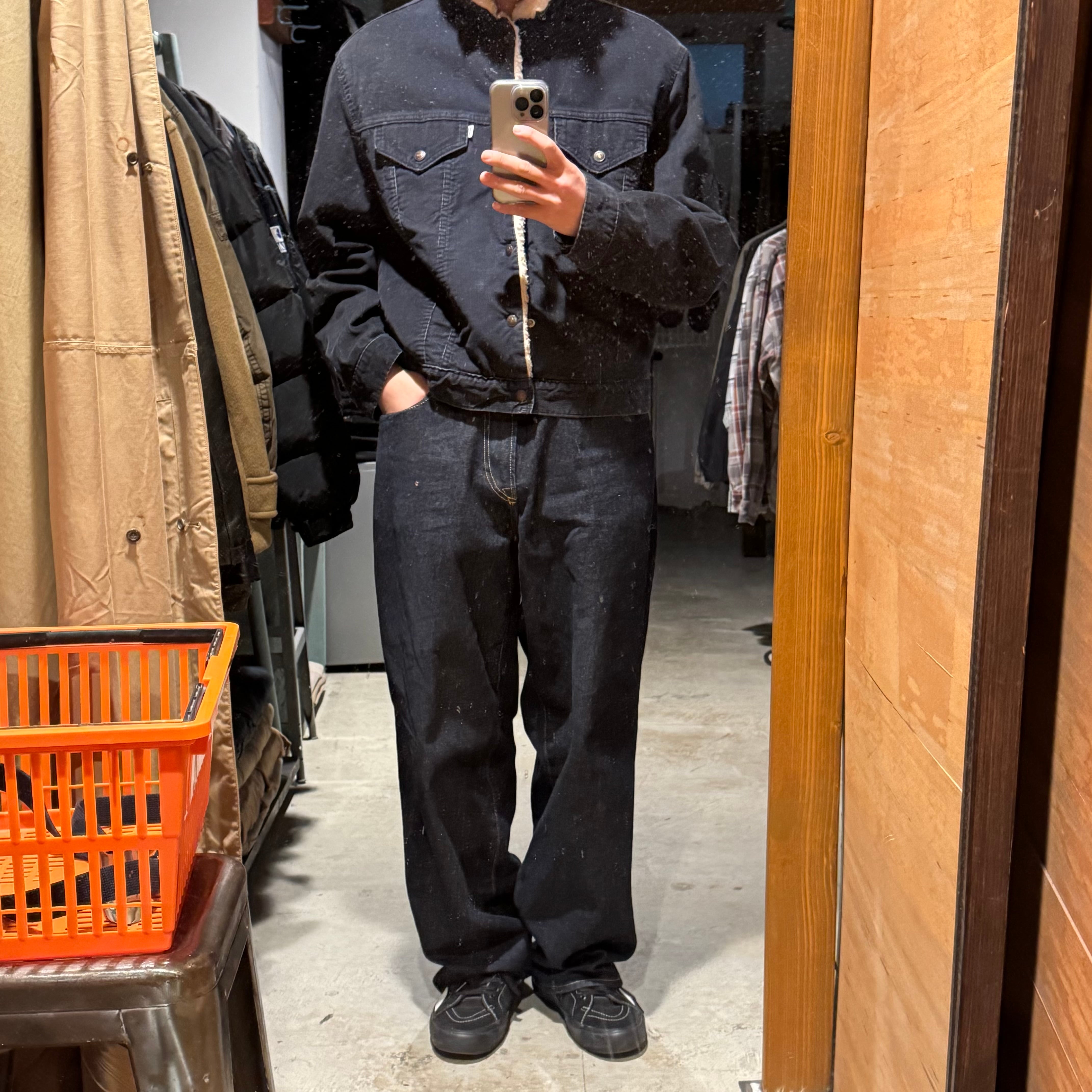 •SIZE 46 肩幅 53cm 袖丈 62cm 身幅 63cm 着丈 61cm 175cm着用 •MATERIAL COTTON POLYESTER ACRYLIC NYLON •COLOR ネイビーorブラック系 •CONDITION 使用感、袖にヤケ、左そでにリペア。 写真にてご確認下さい。 f796