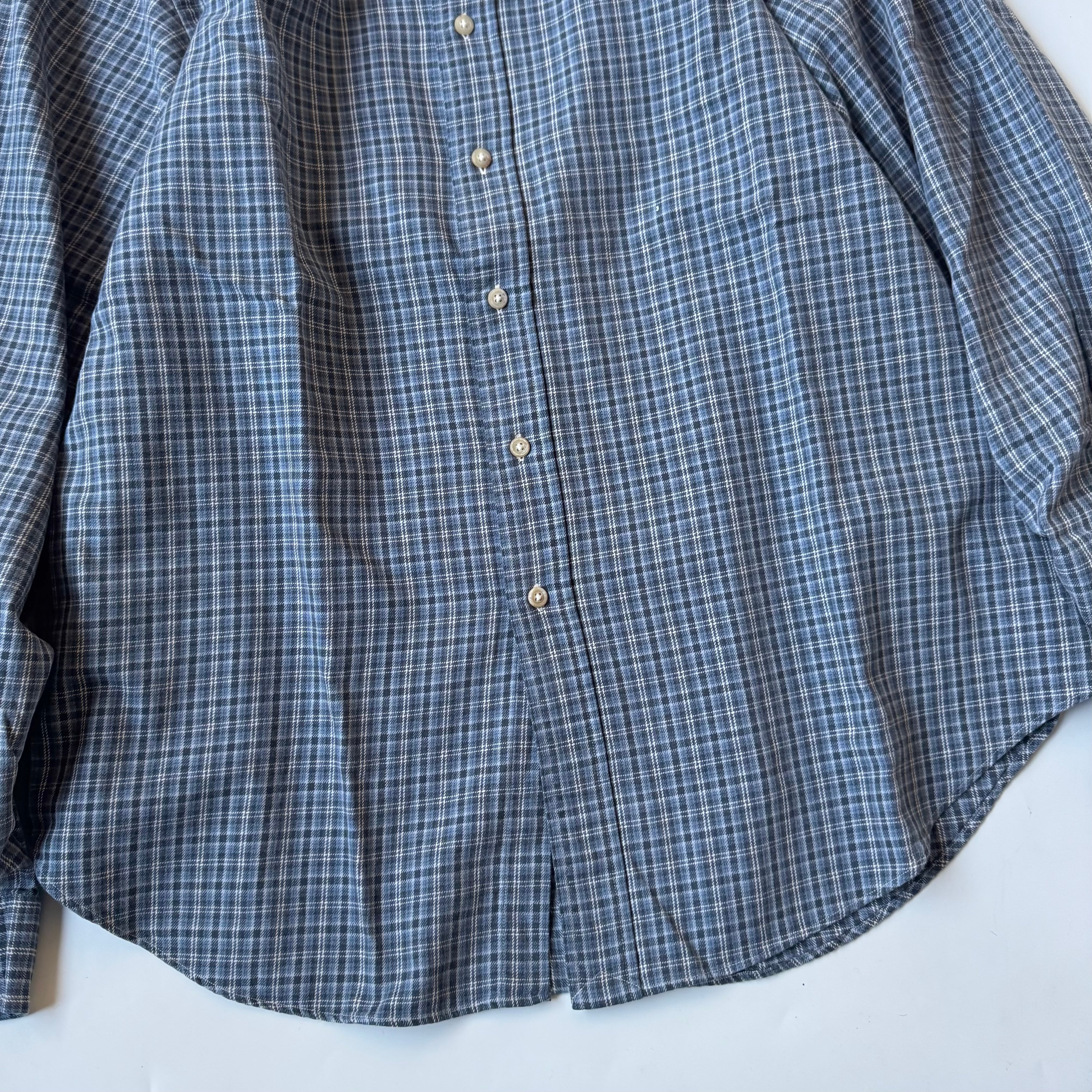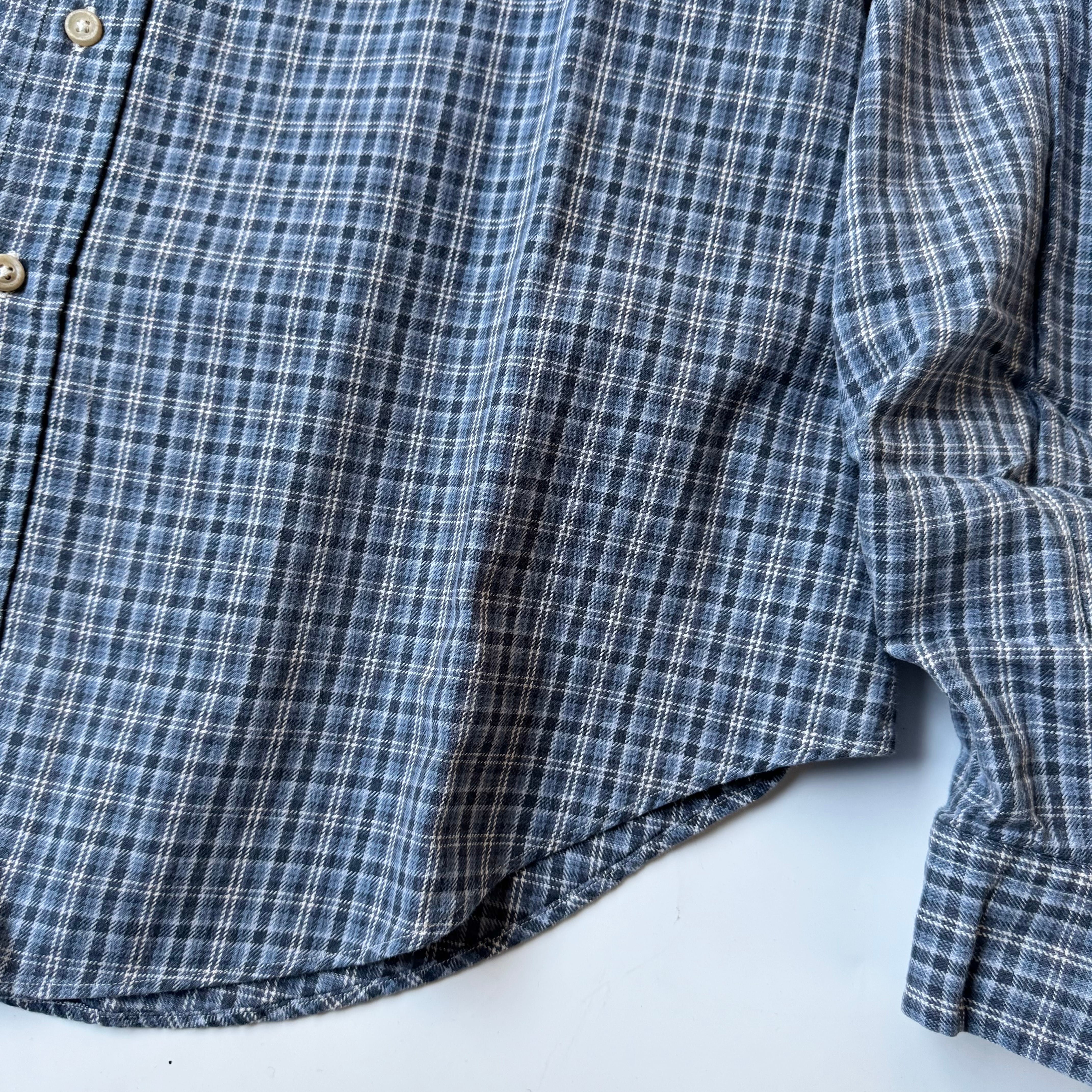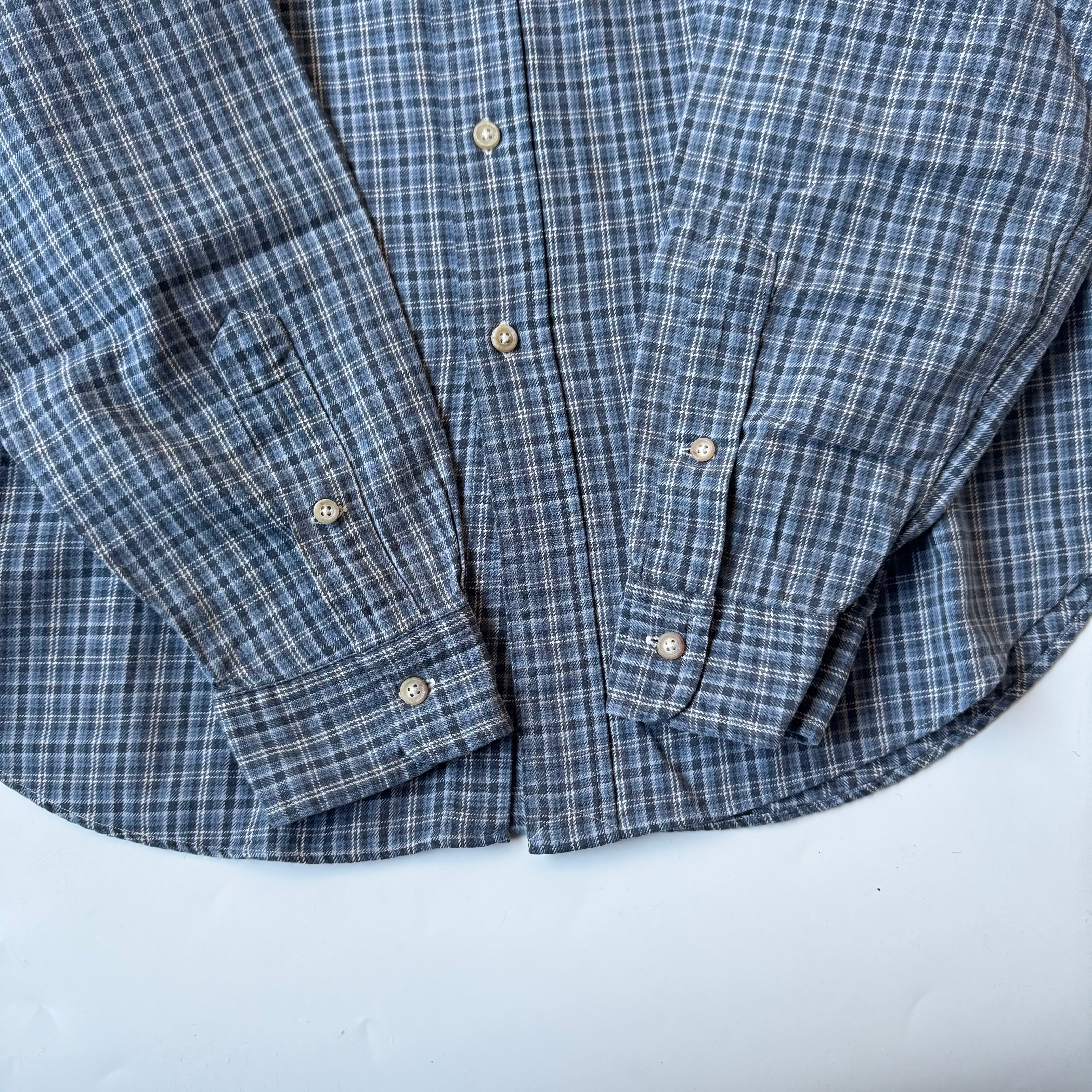 ライトフランネル •SIZE XL 肩幅 51cm 袖丈 66cm 身幅 66cm 着丈 80.5cm •MATERIAL COTTON 100% •COLOR ブルー ネイビー ホワイト •CONDITION 使用感はございますが、目立った傷や汚れ等はございません。 ya6323