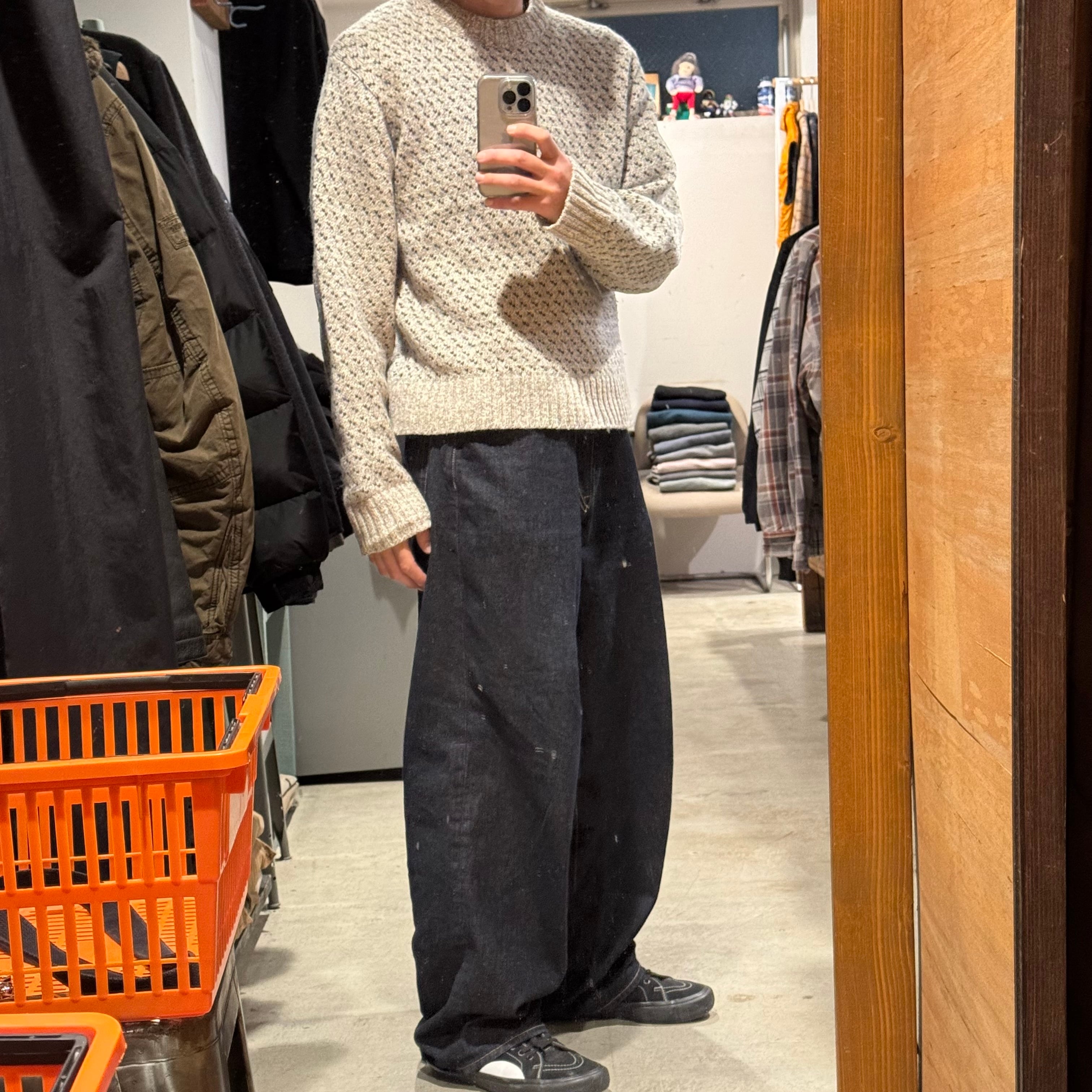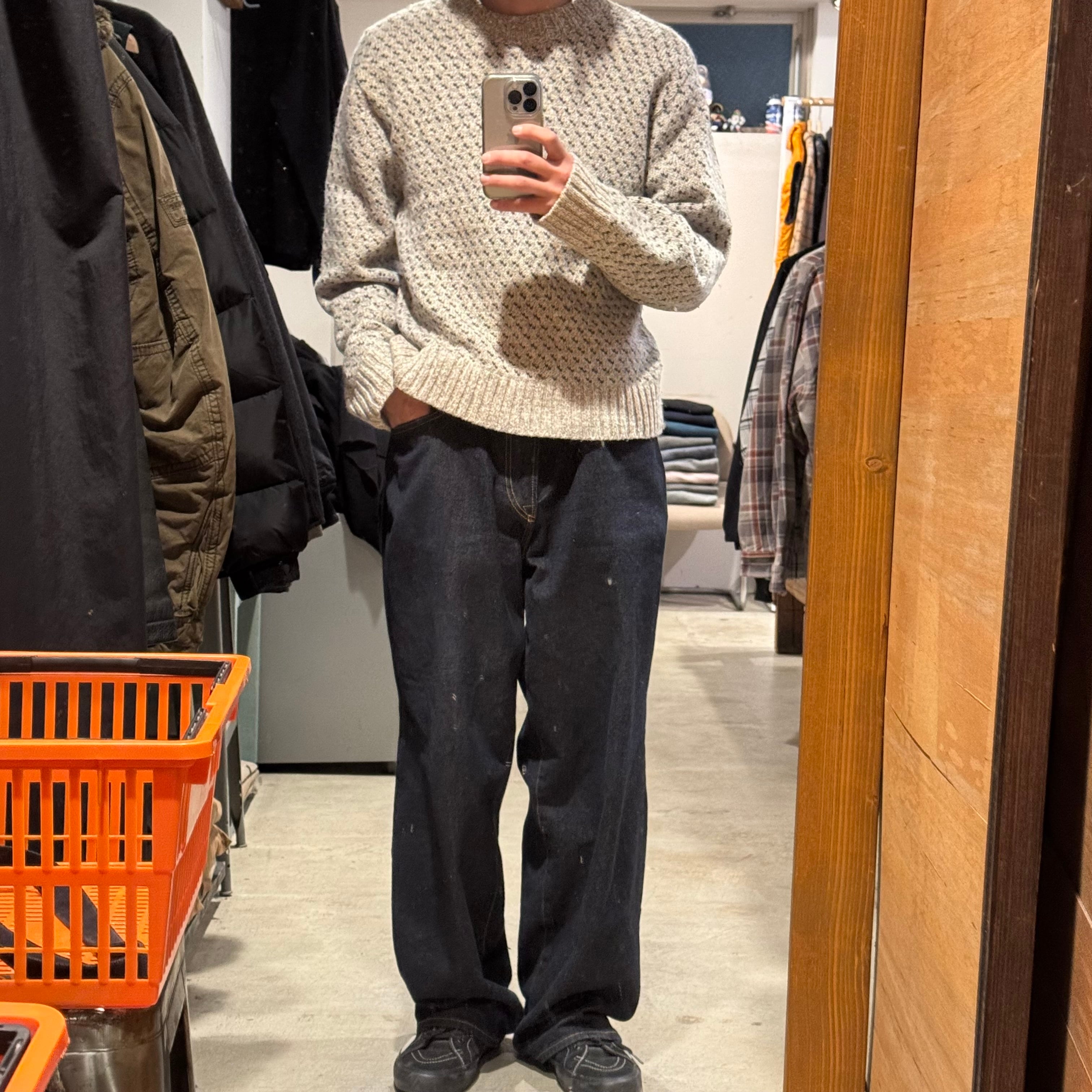 •SIZE L 肩幅 49cm 袖丈 67cm 身幅 53cm 着丈 61cm 175cm着用 •MATERIAL WOOL 85% NYLON 15% •COLOR グレー オフホワイト ネイビー グリーン •CONDITION 右肘あたりに汚れ。 写真ににてご確認下さい。 kt560