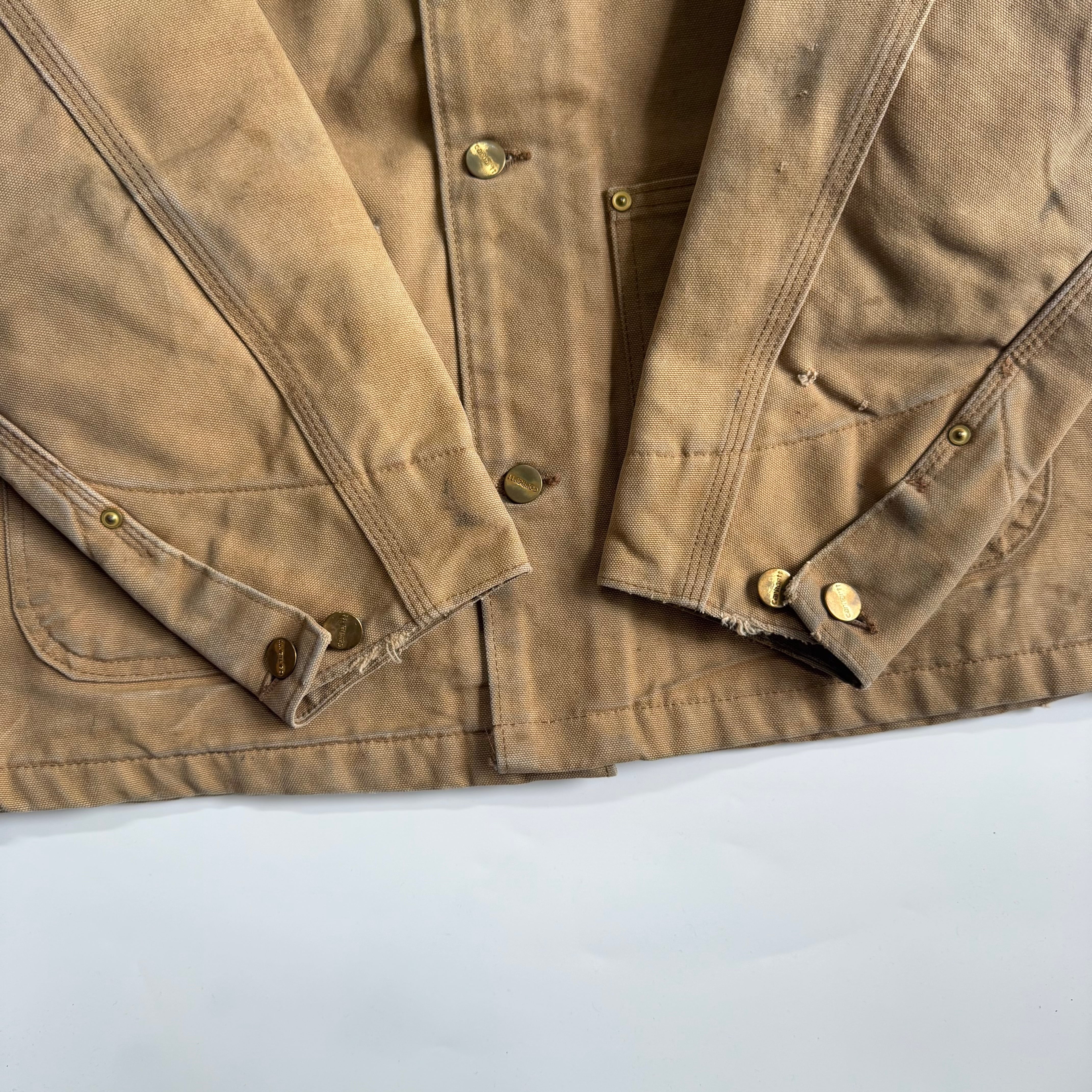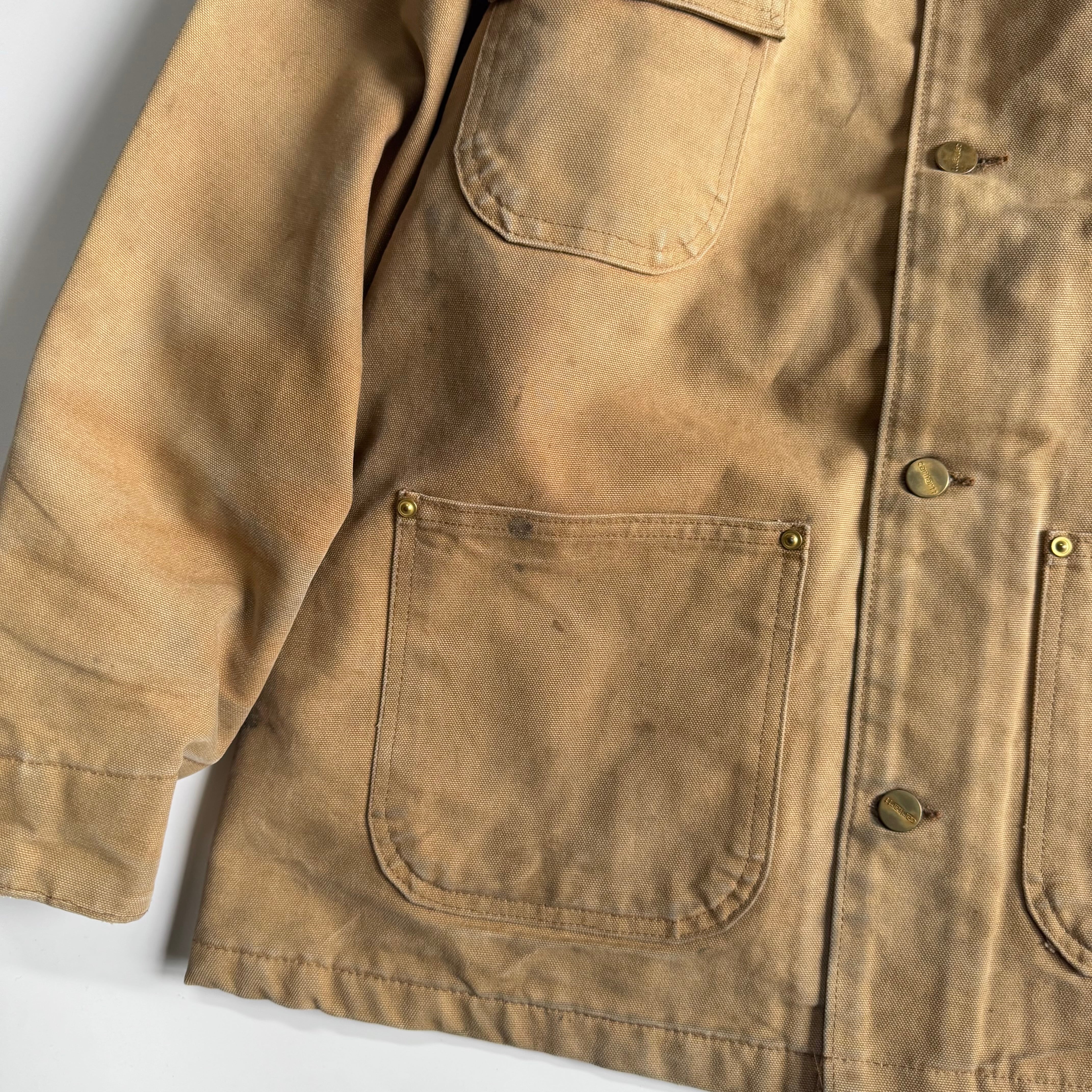 •SIZE 42 Reguler 肩幅 49cm 袖丈 62cm 身幅 65cm 着丈 76.5cm •MATERIAL COTTON 100% •COLOR ベージュ系 •CONDITION 全体的に使用感、汚れ、ダメージ。 写真にてご確認下さい。