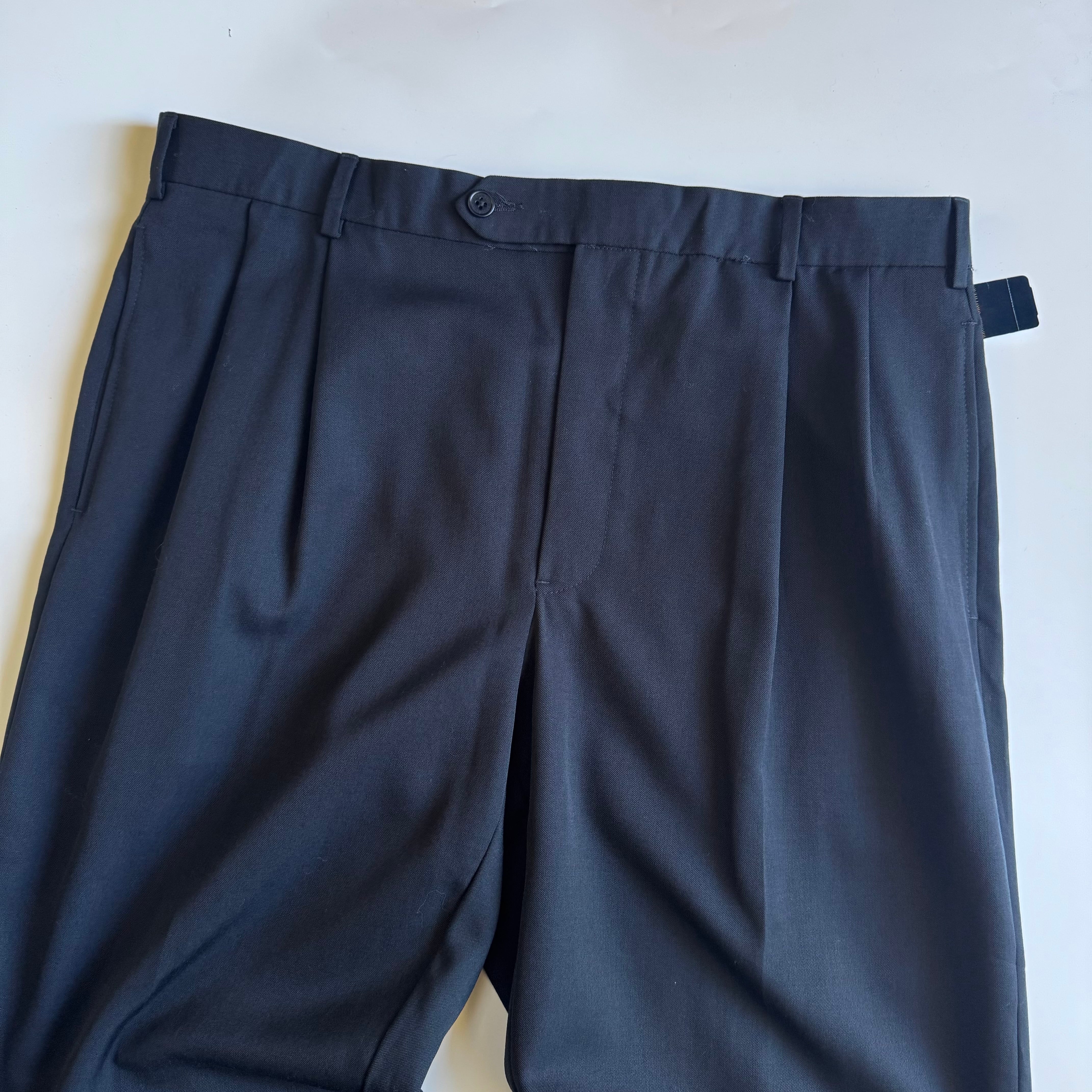 •SIZE W36 L32 ウエスト 93cm 股上 30cm 股下 82.5cm 渡り 32cm 裾幅 23.5cm •MATERIAL WOOL 100% •COLOR ネイビー •CONDITION デッドストック。 ya6443