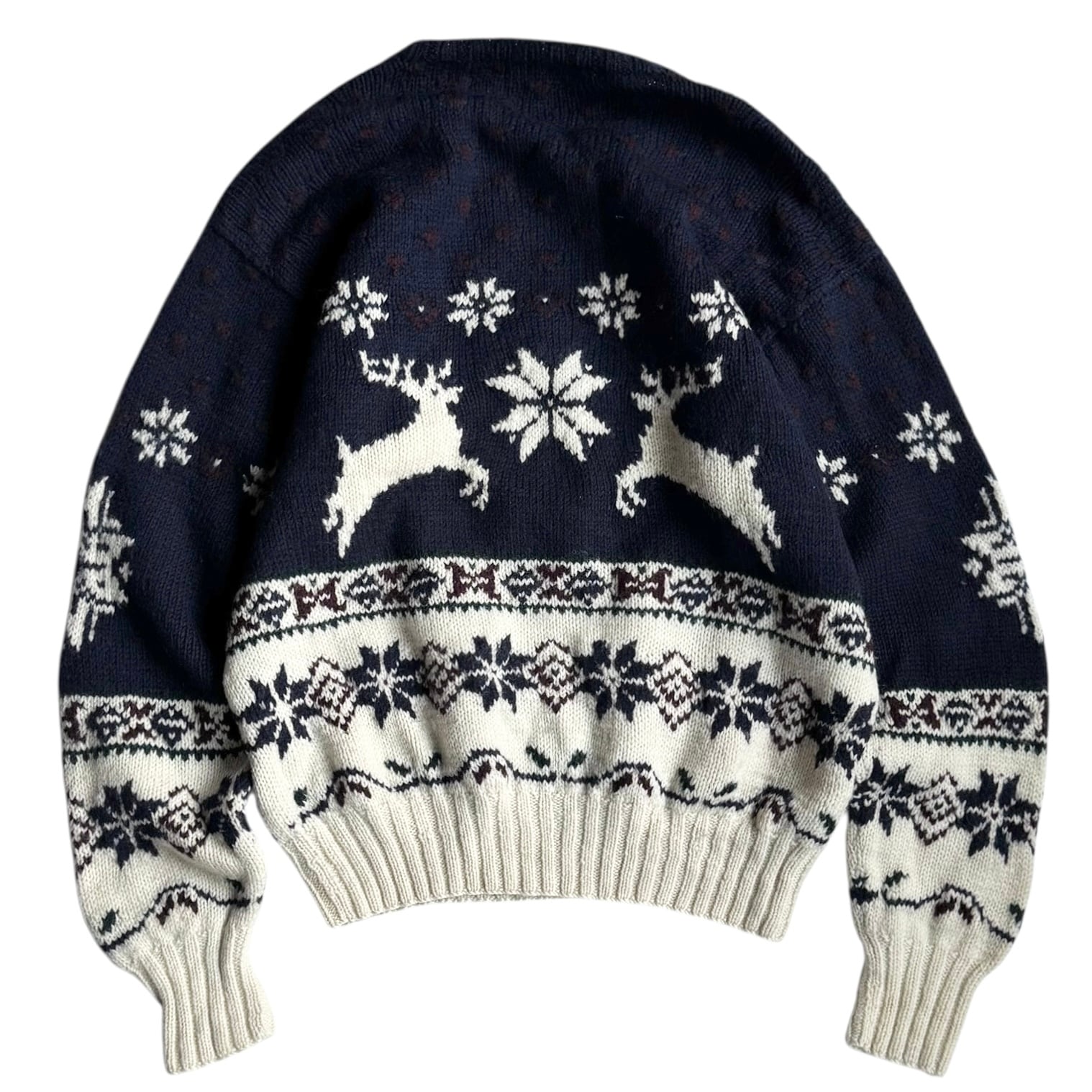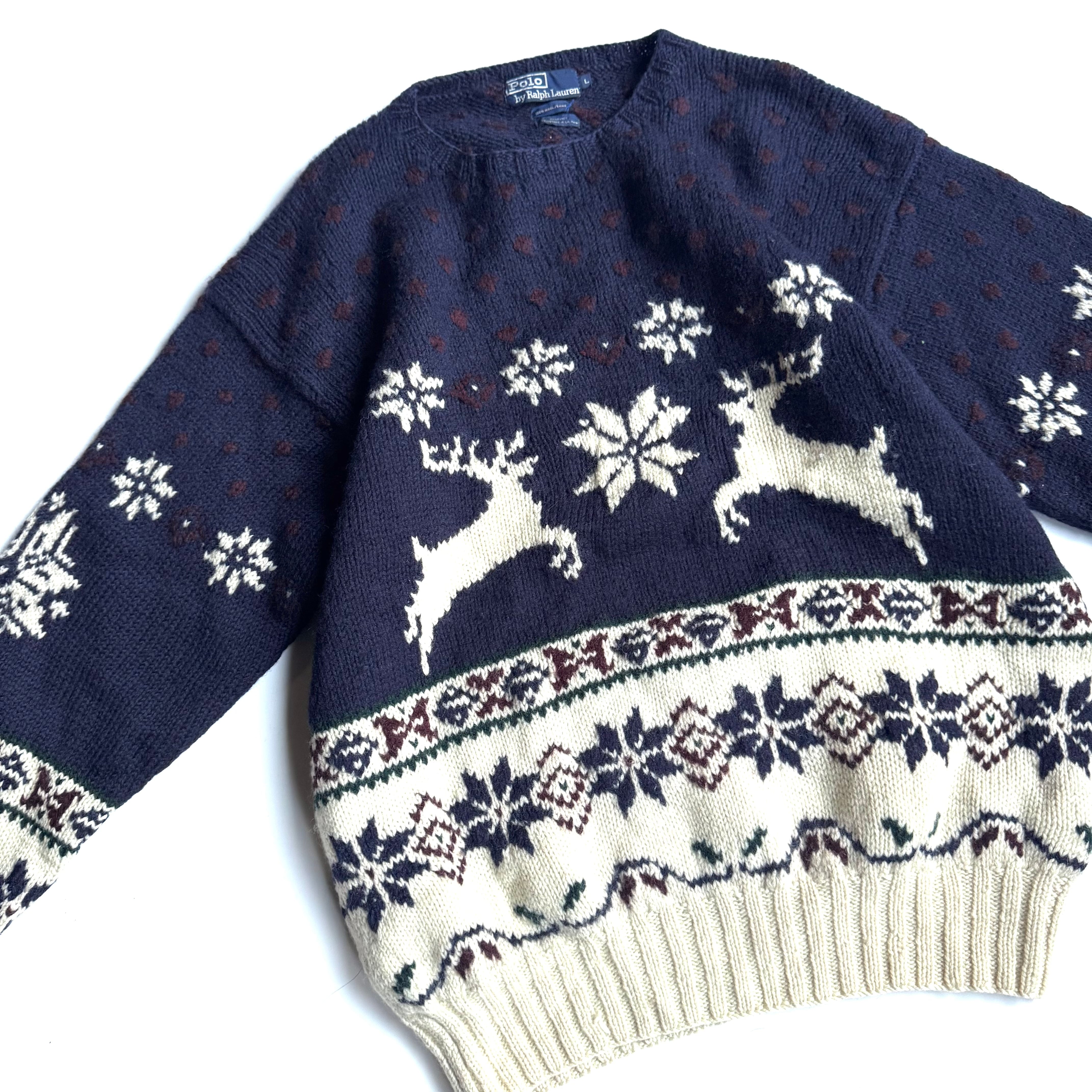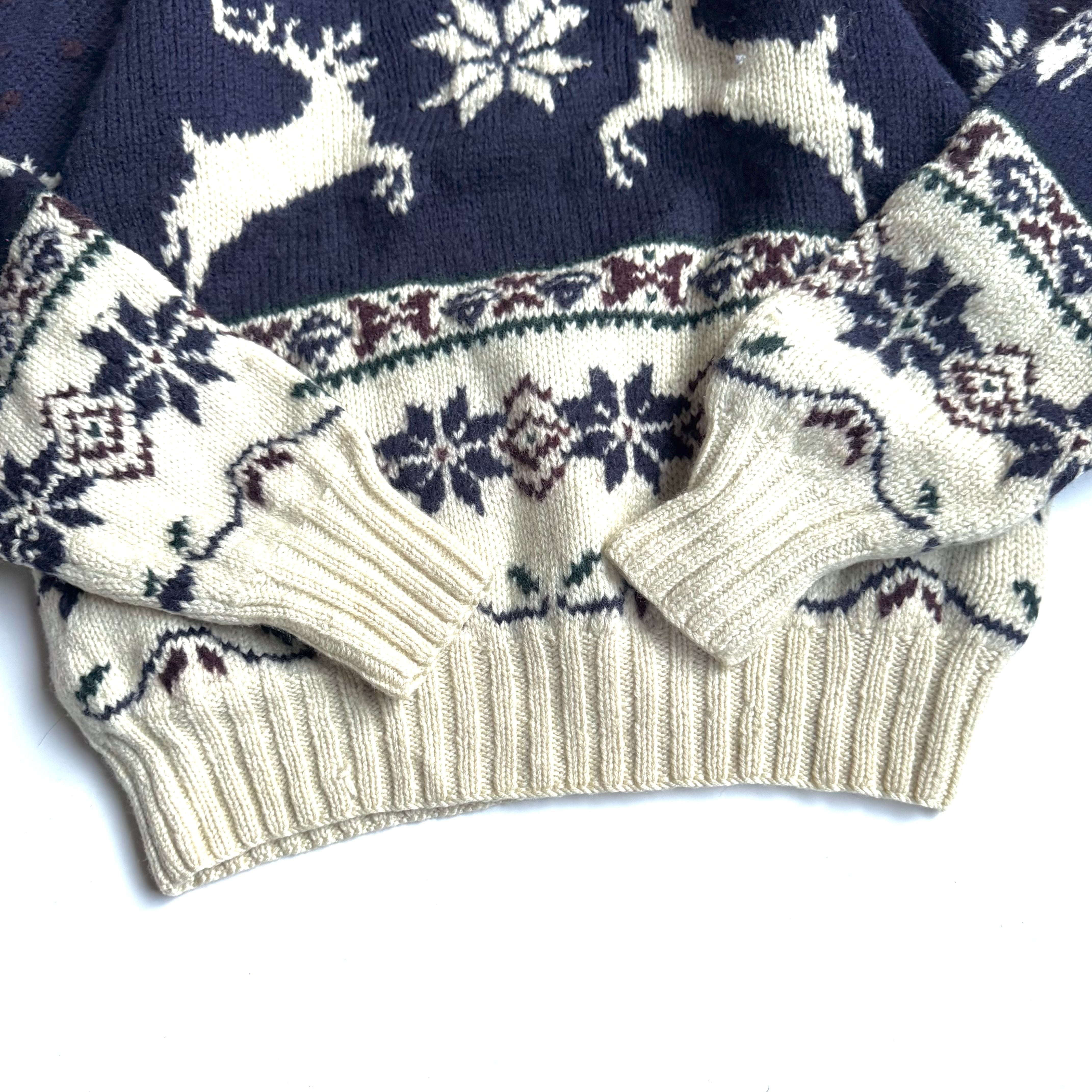 ザクっとハイゲージめ ノルディック柄◎ •SIZE L 肩幅 59cm 袖丈 65cm 身幅 62cm 着丈 70cm •MATERIAL WOOL 100% •COLOR ネイビー ホワイト ボルドー •CONDITION 使用感はございますが、目立った傷や汚れ等はございません。 ya6462