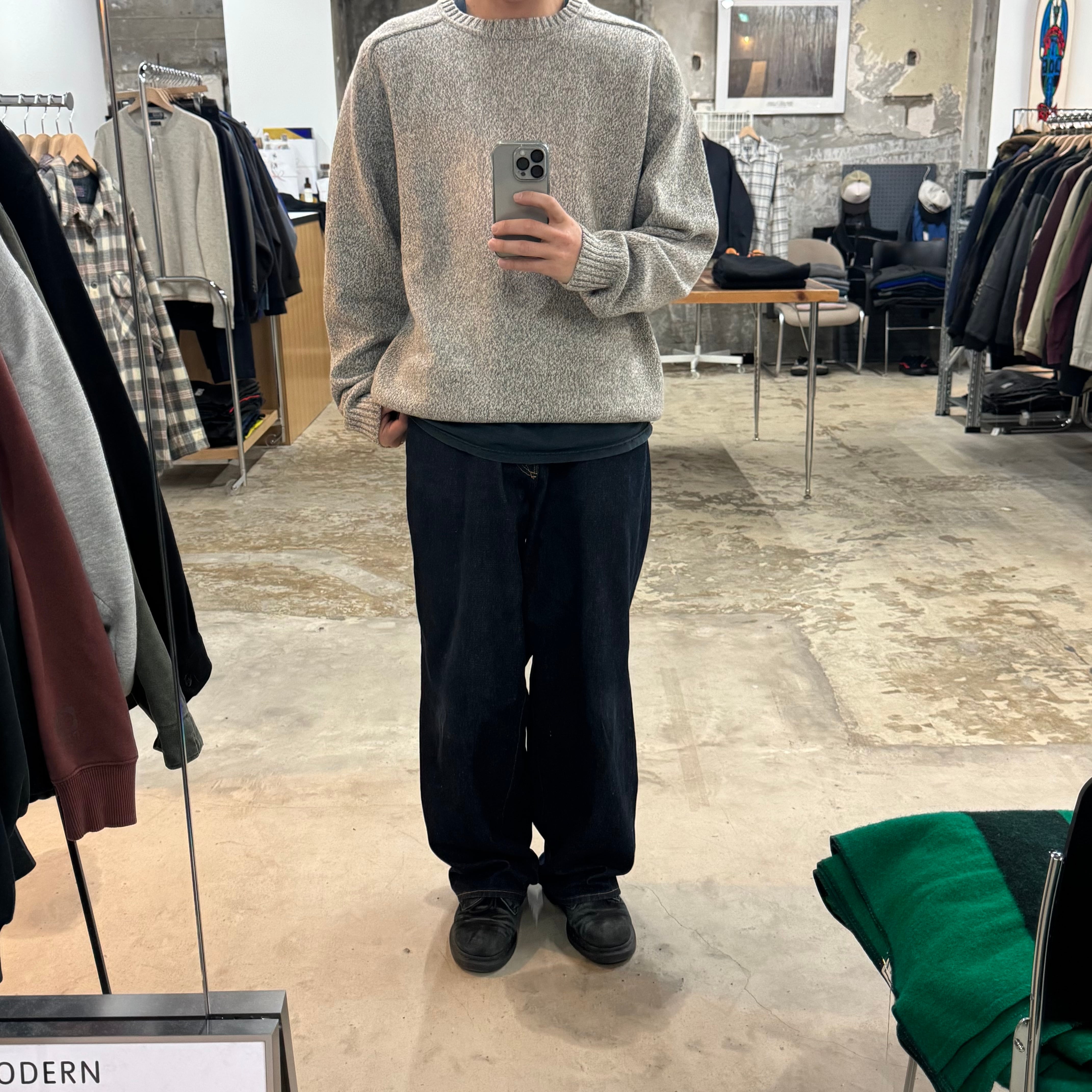 •SIZE XL 肩幅 ラグラン袖 袖丈 84cm (首元から) 身幅 64cm 着丈 68.5cm 175cm着用 •MATERIAL Cotton100% •COLOR グレー •CONDITION 使用感はございますが、目立った傷や汚れ等はございません。 gar2736