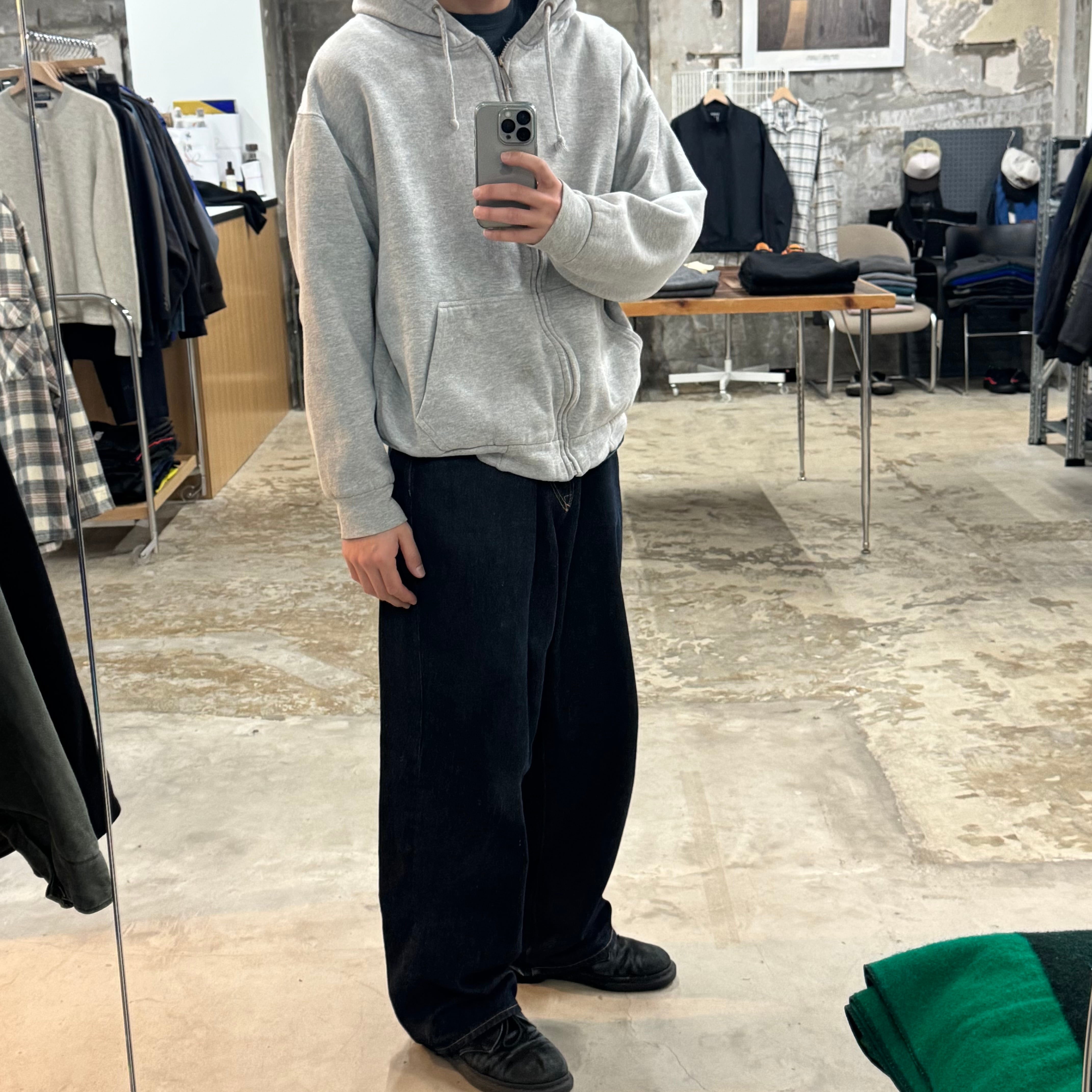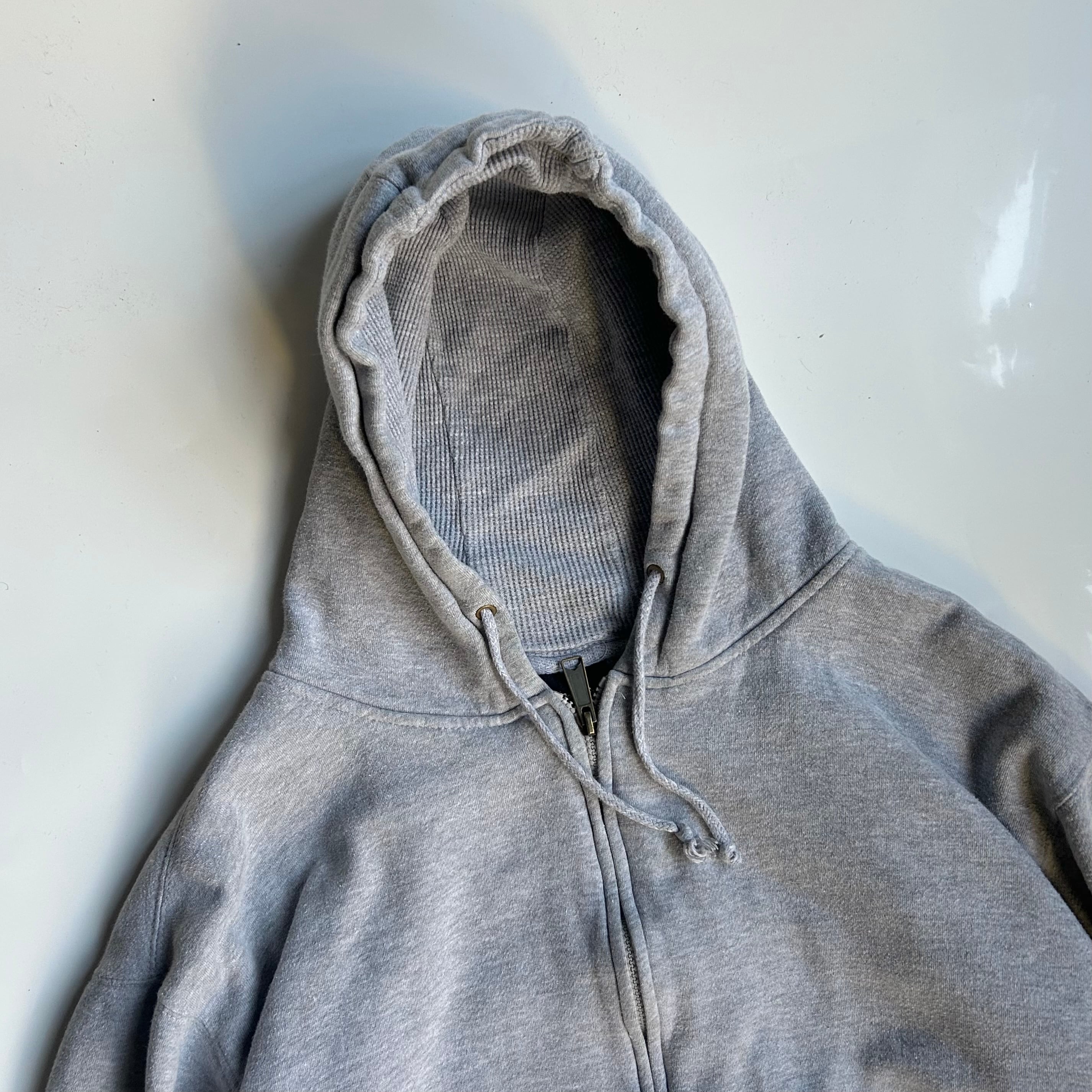 いい感じにやる気なさげな形◎ 裏サーマルです •SIZE XL 肩幅 61cm 袖丈 55.5cm 身幅 68cm 着丈 59cm 175cm着用 •MATERIAL Cotton60% Polyester40% •COLOR グレー •CONDITION フロントにシミあり 写真参照 ya6486