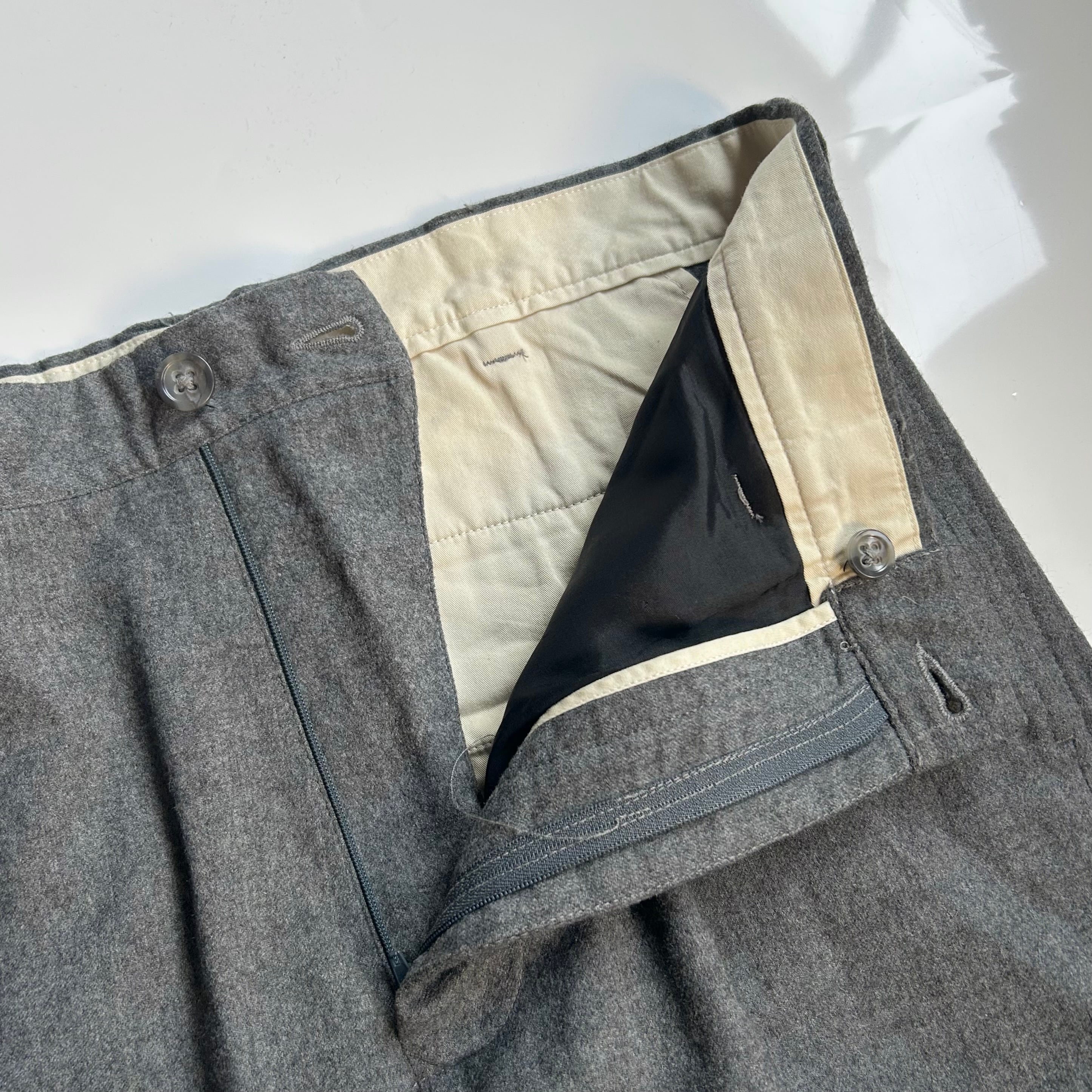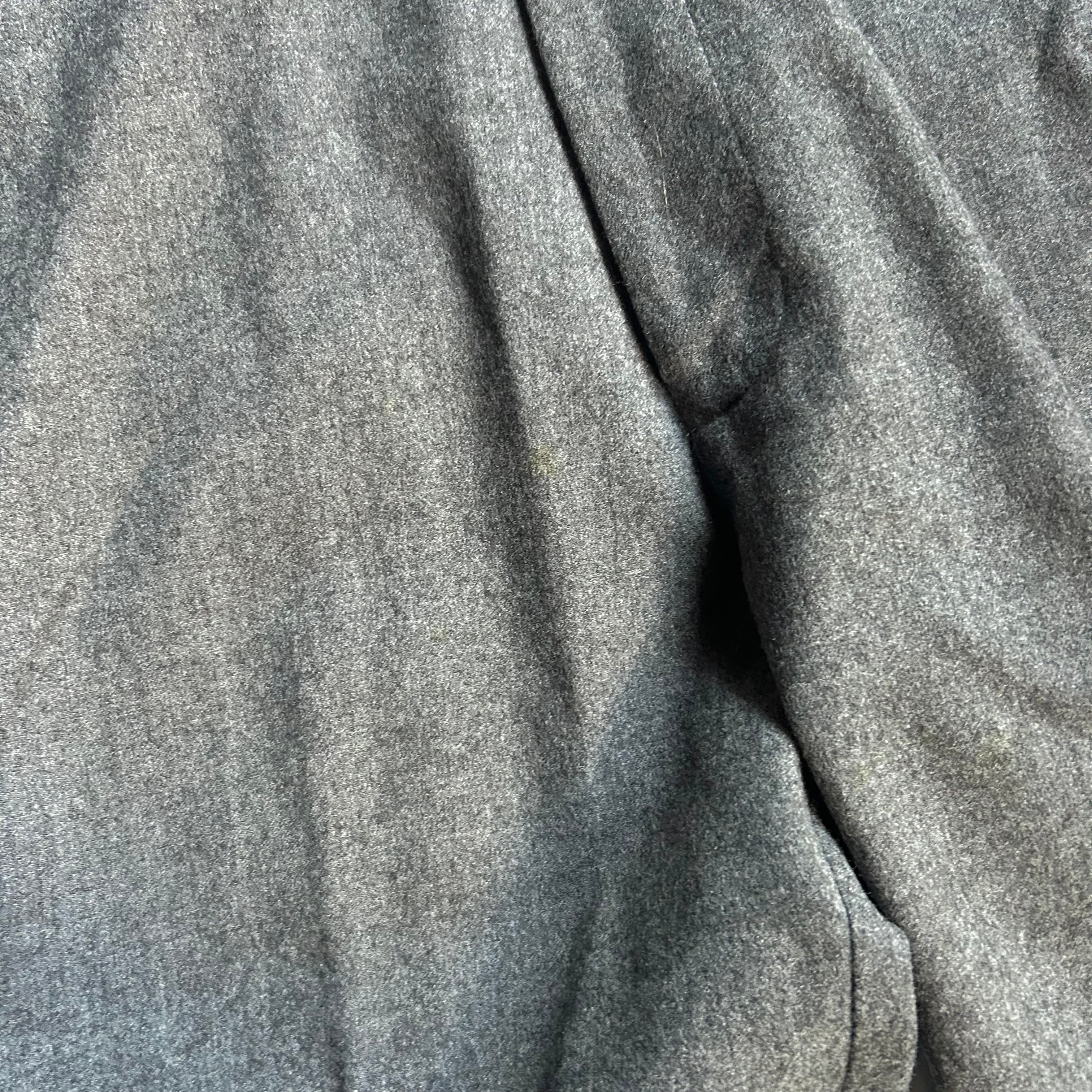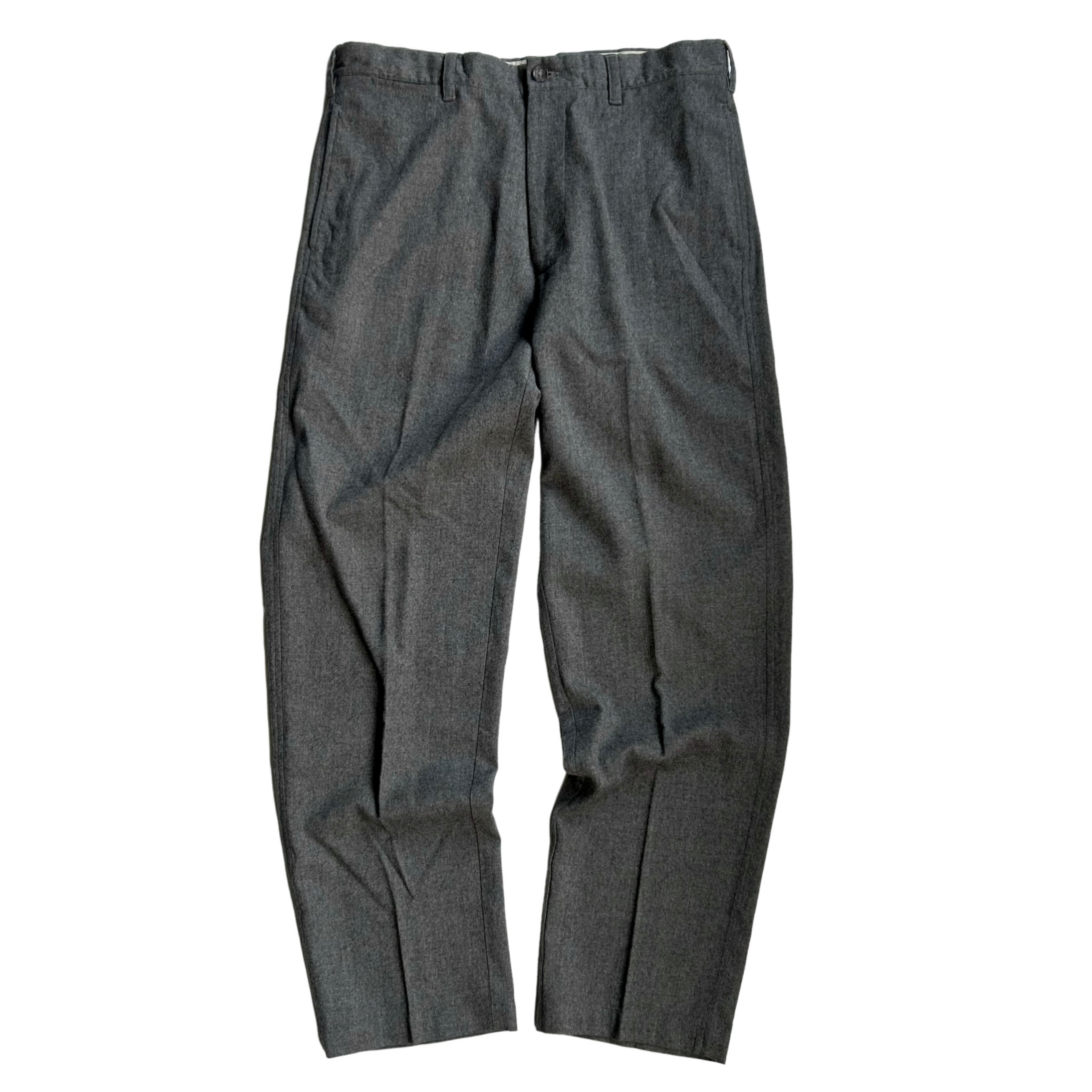 •SIZE W34L32 ウエスト 90cm 股上 32cm 股下 81cm わたり 31cm 裾幅 18.5cm •MATERIAL Wool97% Spandex •COLOR グレー •CONDITION チャック付近にシミあり 写真参照 ya6354