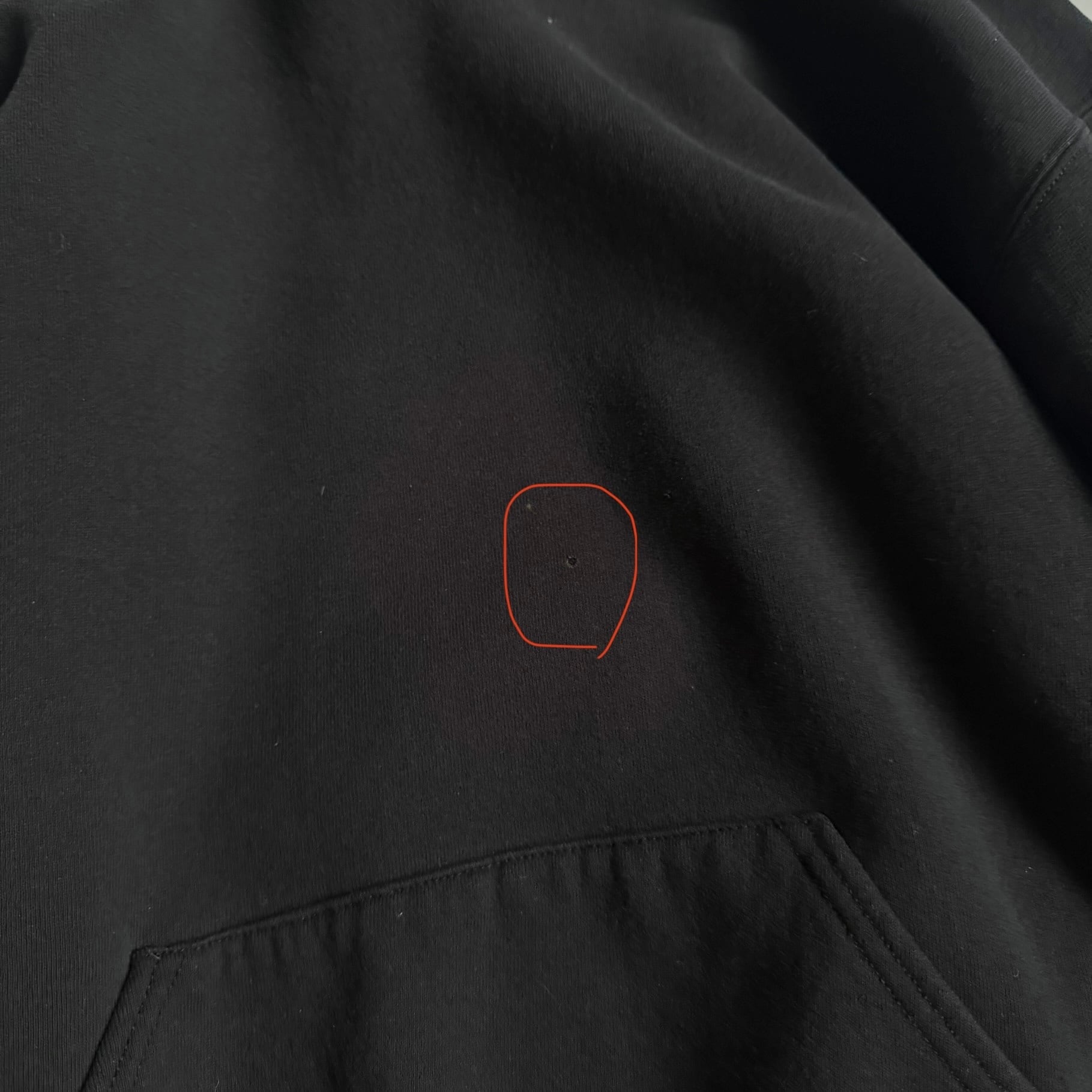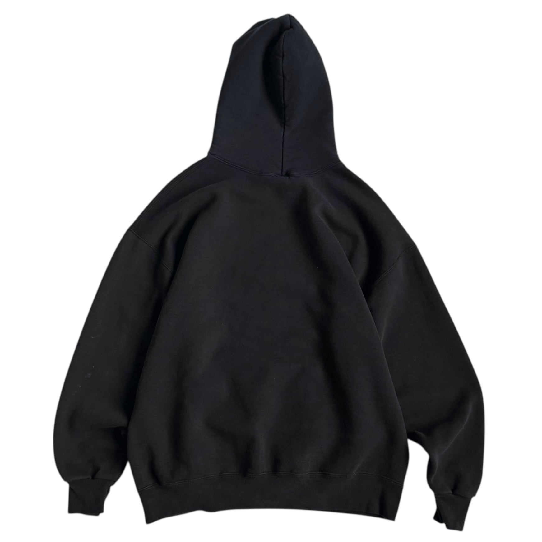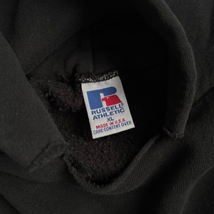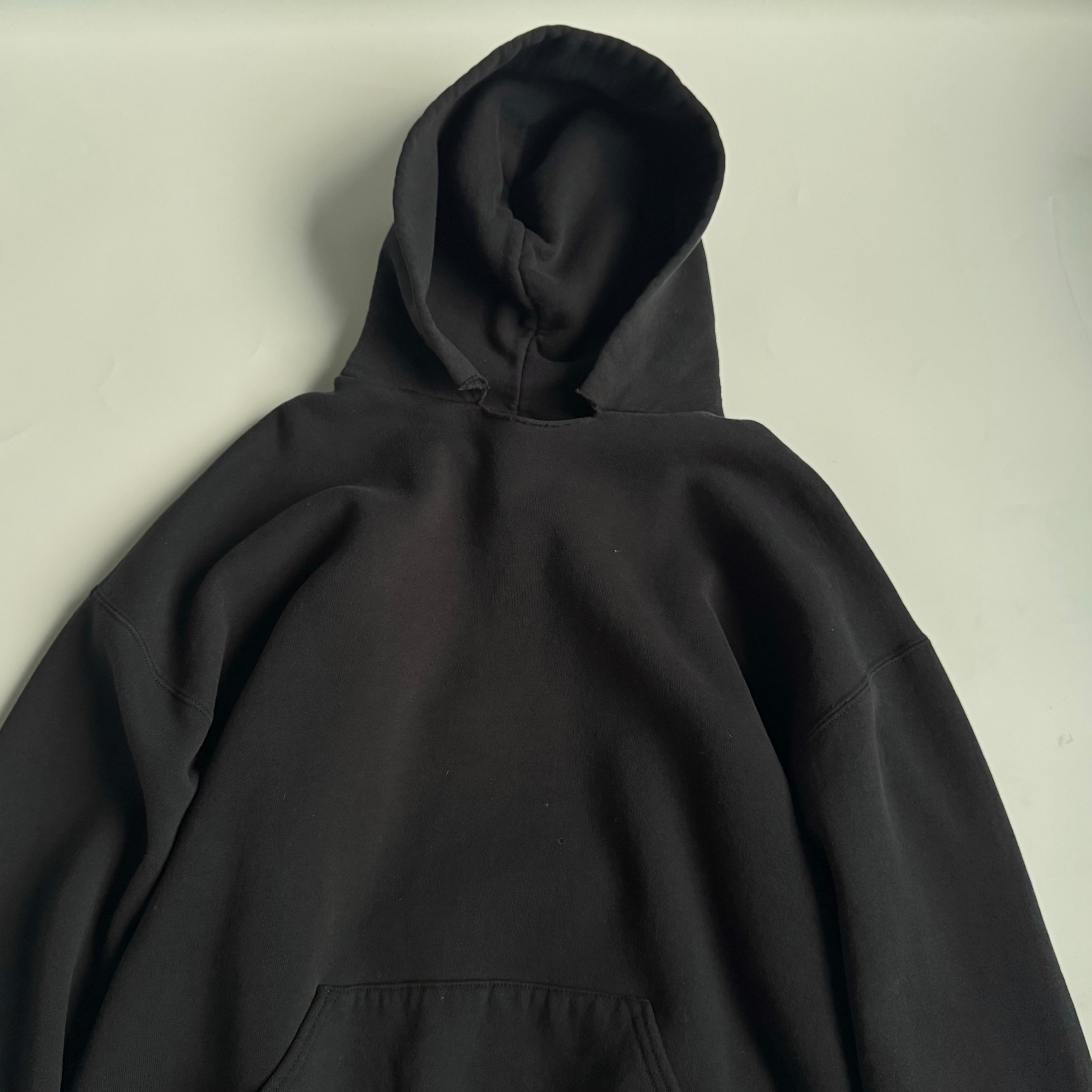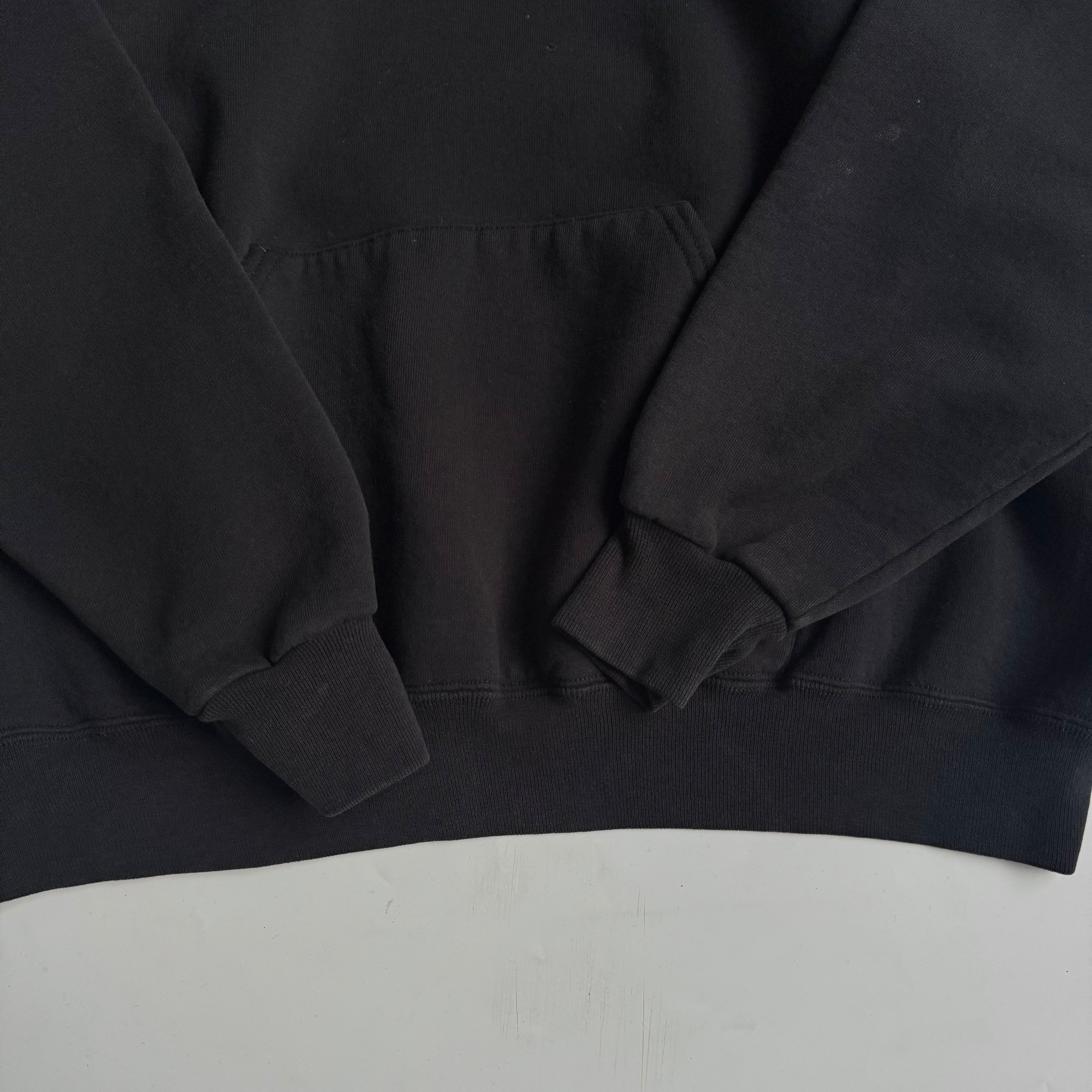 "MADE IN USA" •SIZE XL 肩幅 65cm 袖丈 56cm 身幅 63cm 着丈 65cm 175cm着用 •MATERIAL COTTON 50% POLYESTER 50% •COLOR ブラック •CONDITION 使用感、左袖に汚れ、フロントにピンホール、ネックにダメージ。写真にてご確認下さい。 gar2781