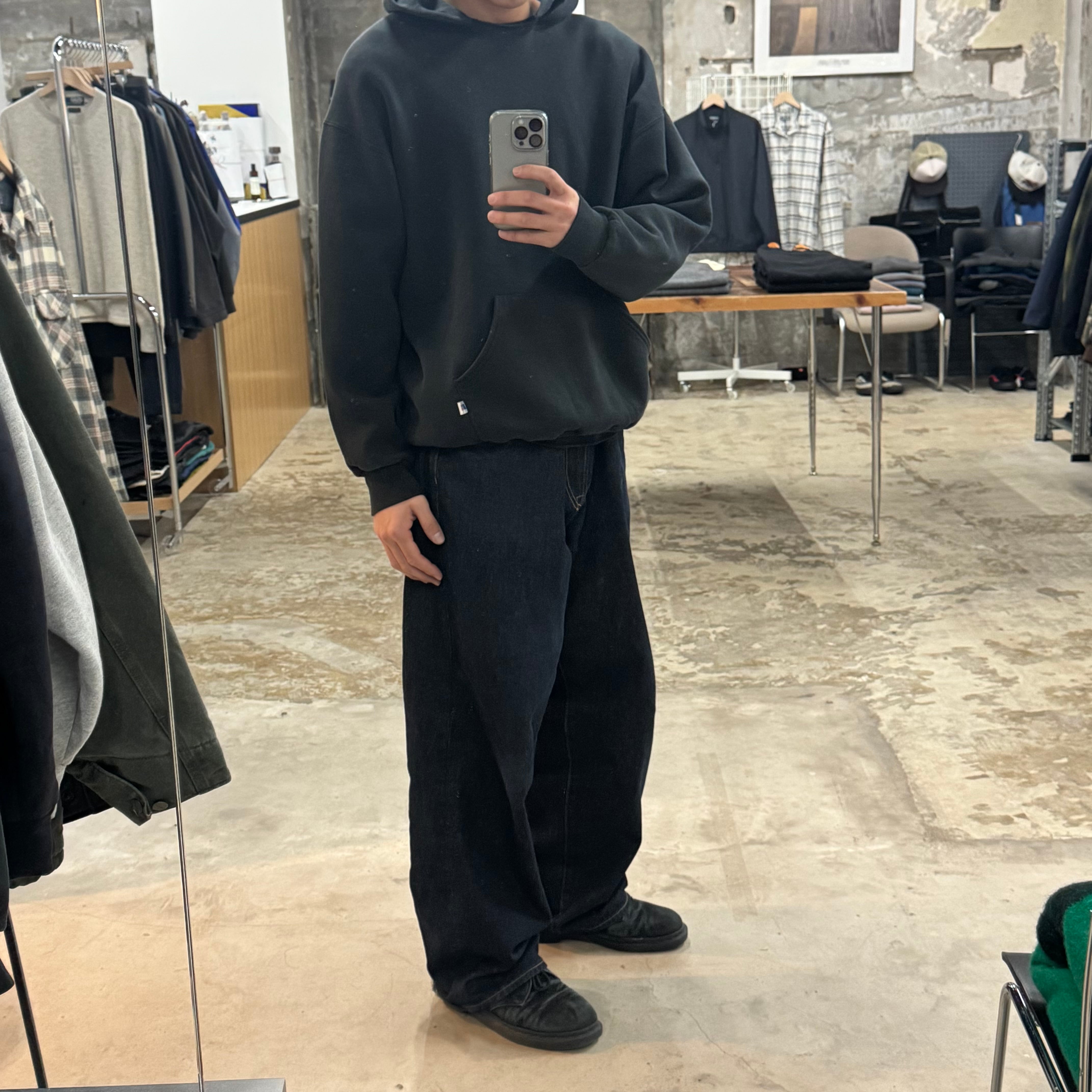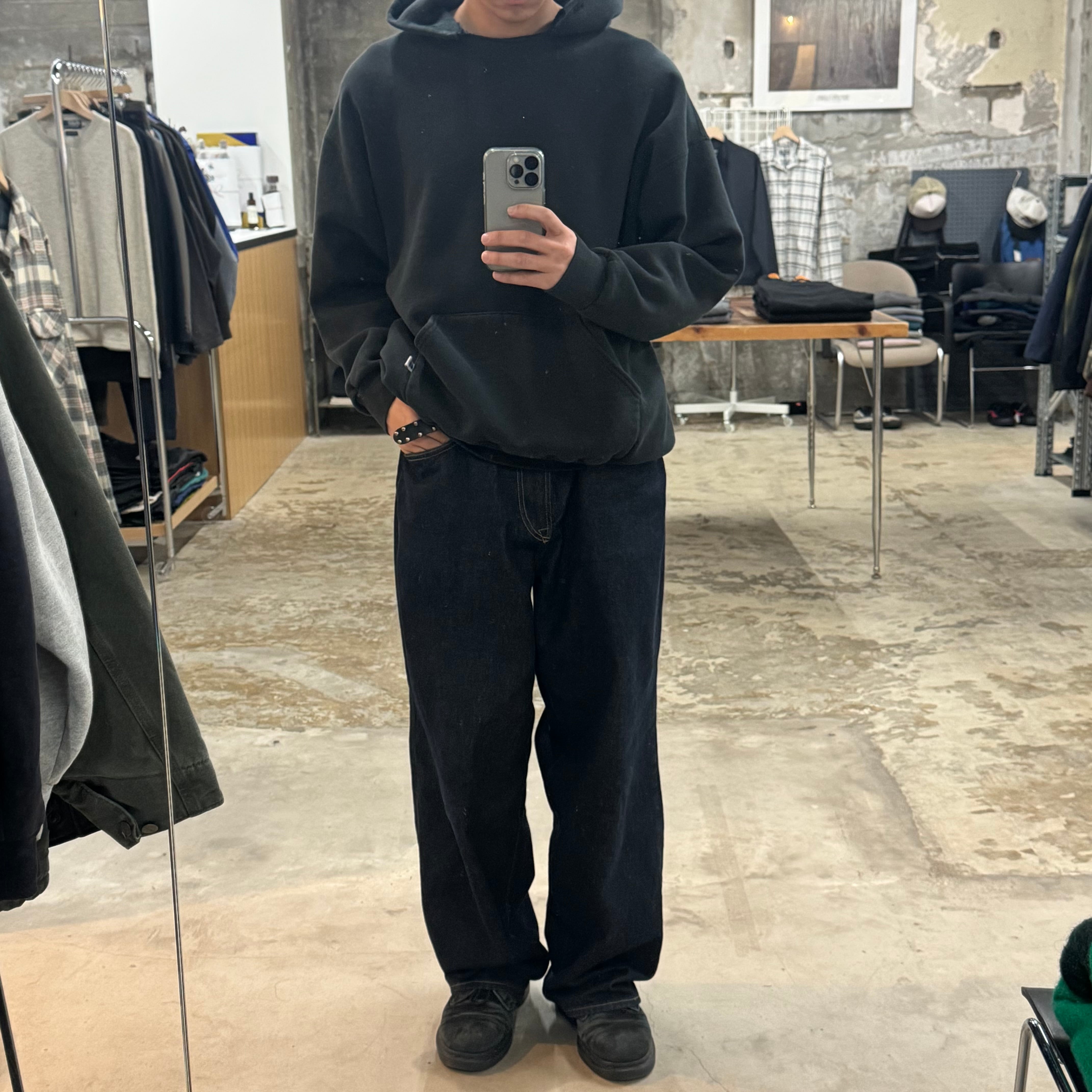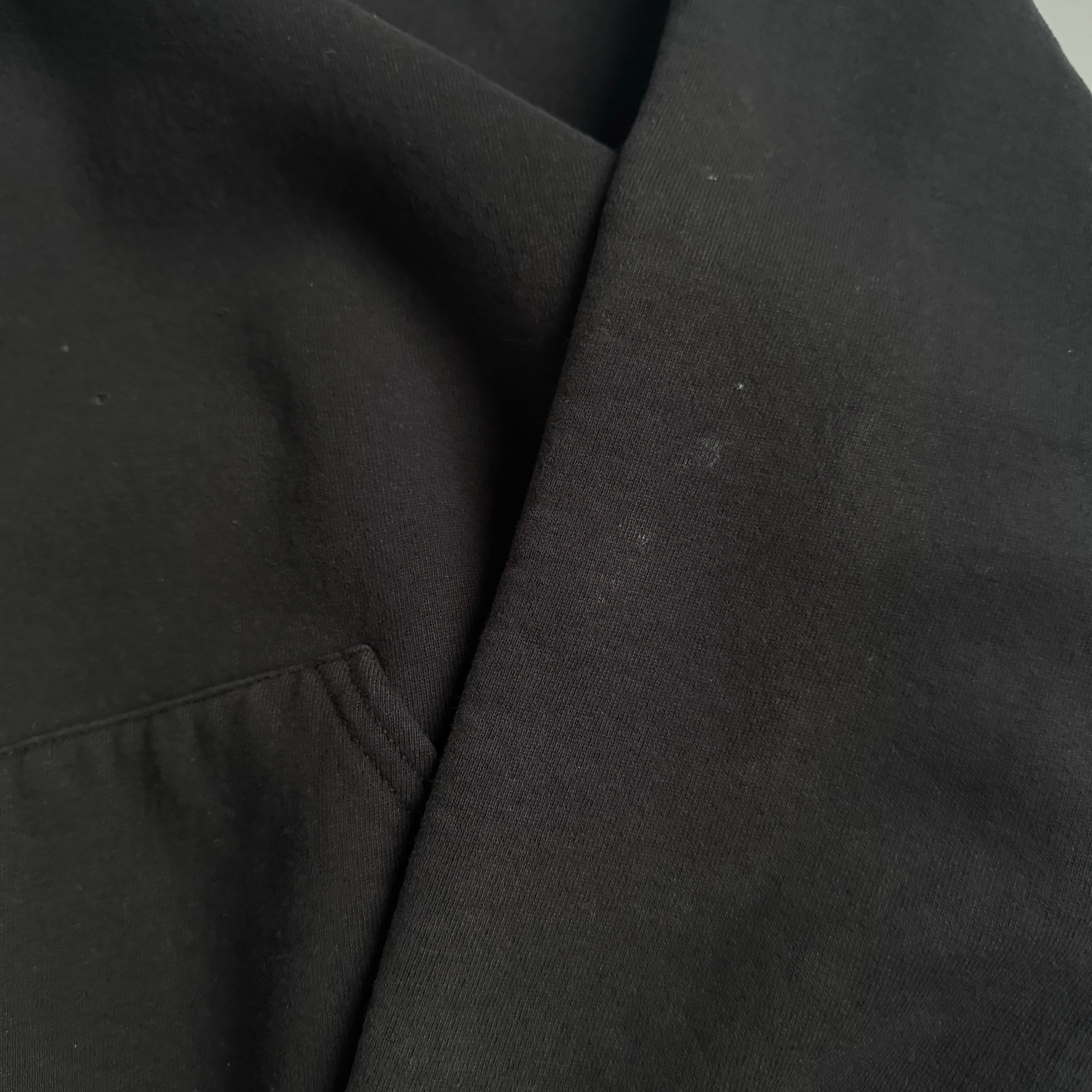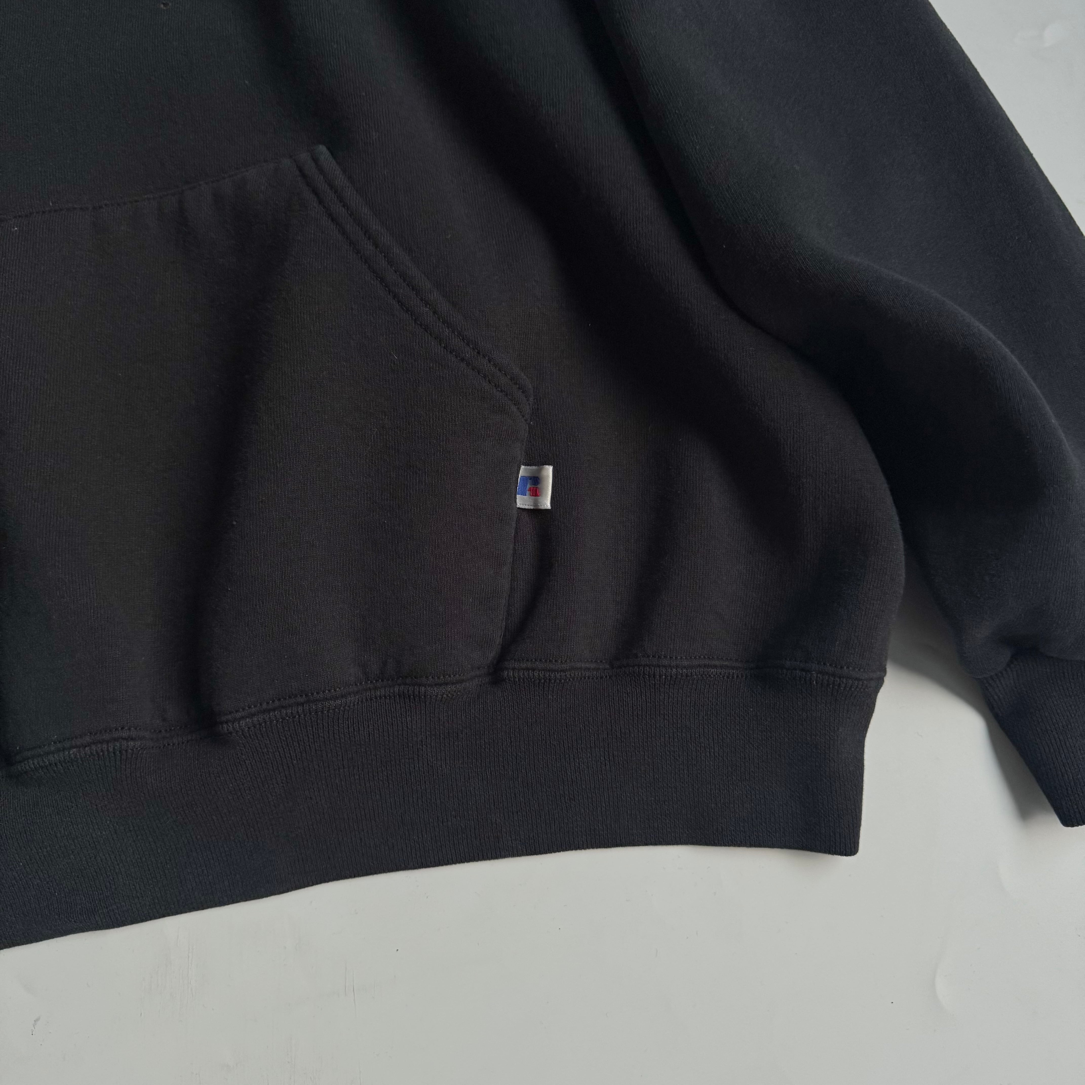"MADE IN USA" •SIZE XL 肩幅 65cm 袖丈 56cm 身幅 63cm 着丈 65cm 175cm着用 •MATERIAL COTTON 50% POLYESTER 50% •COLOR ブラック •CONDITION 使用感、左袖に汚れ、フロントにピンホール、ネックにダメージ。写真にてご確認下さい。 gar2781
