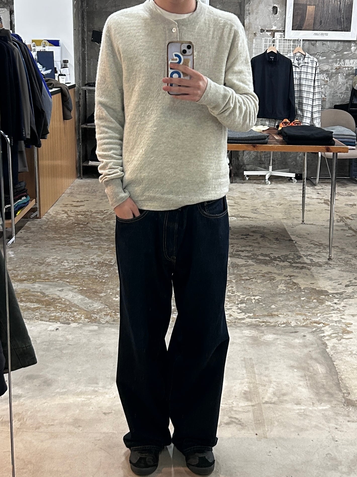 ポニーなし。カジュアルな印象のあるヘンリーですが、生地は上品さのあるカシミア。ボロですが2枚地なので問題なく着れるかと。