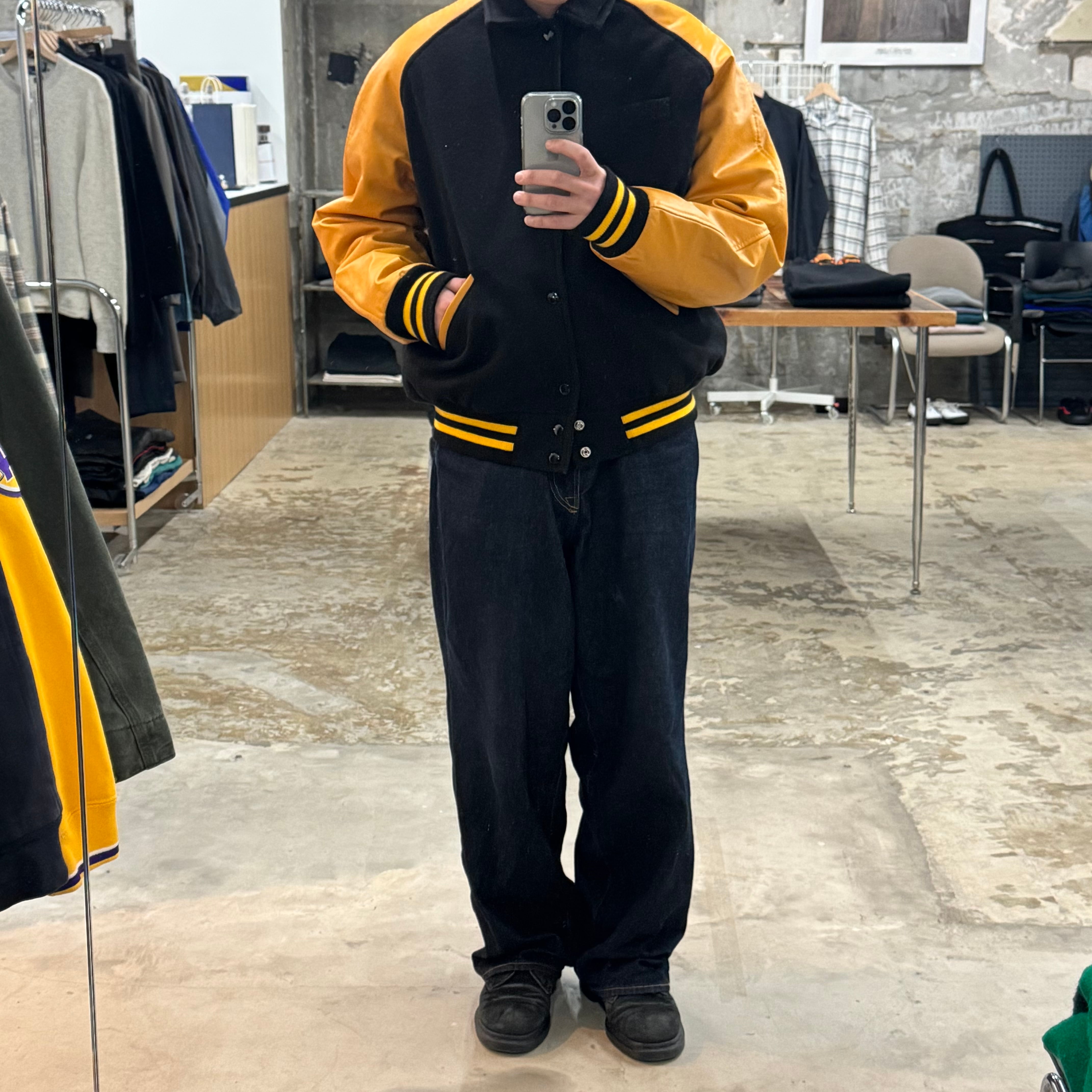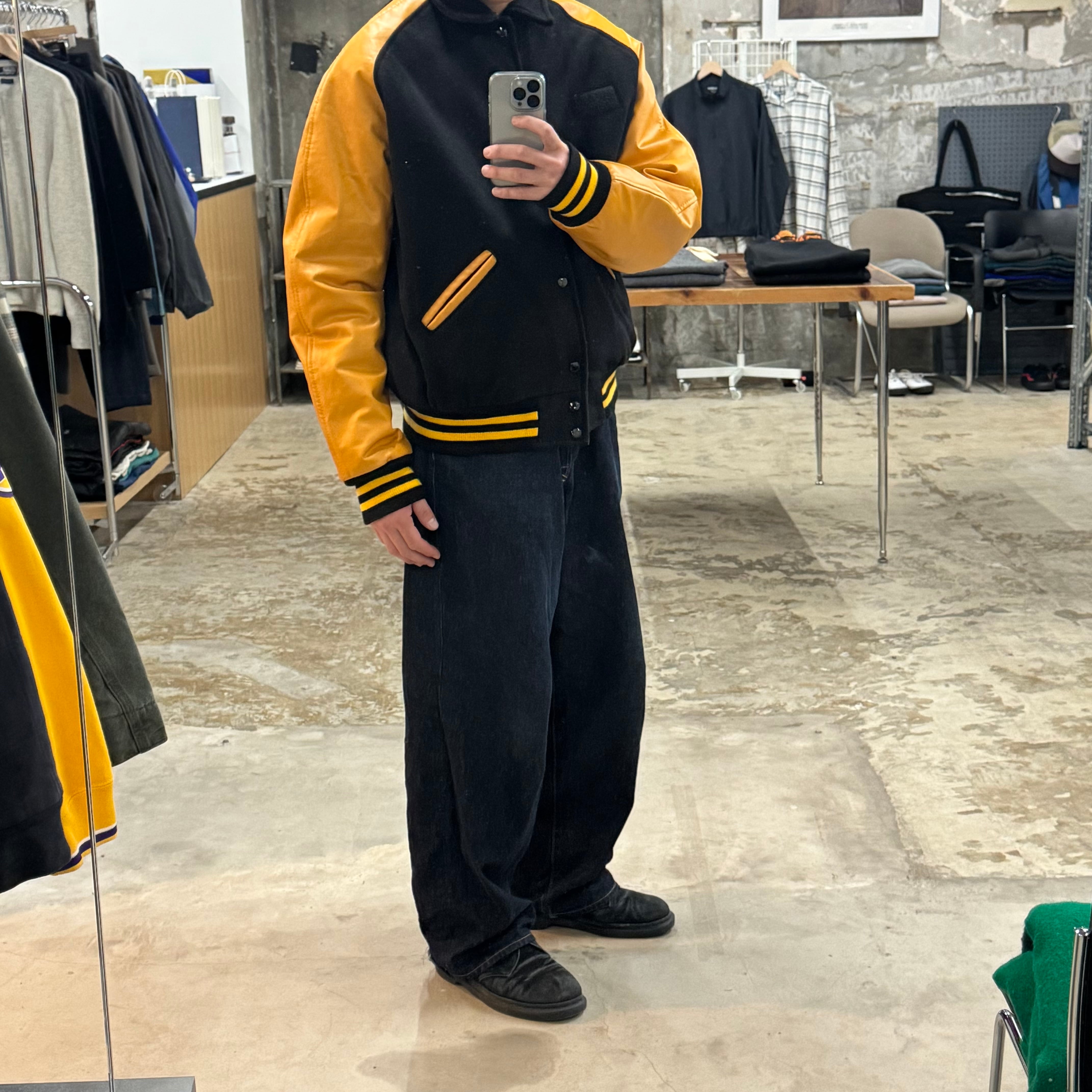 •SIZE L 裄丈 98cm 身幅 70cm 着丈 70cm 175cm着用 •MATERIAL 恐らく WOOL LEATHER •COLOR ブラック イエロー •CONDITION 使用感、袖や裏地に小さく薄い汚れ。 写真にてご確認下さい。 gar2765