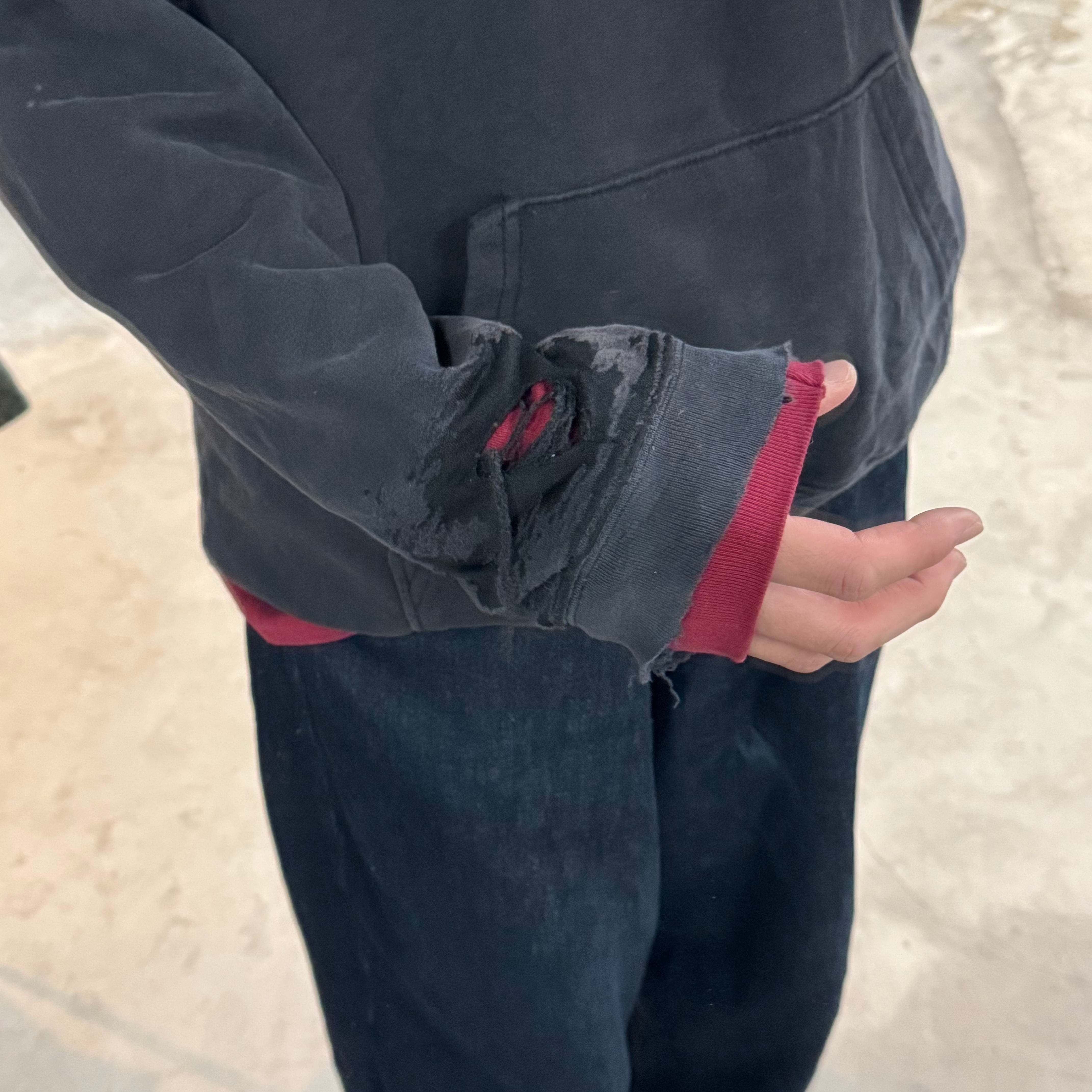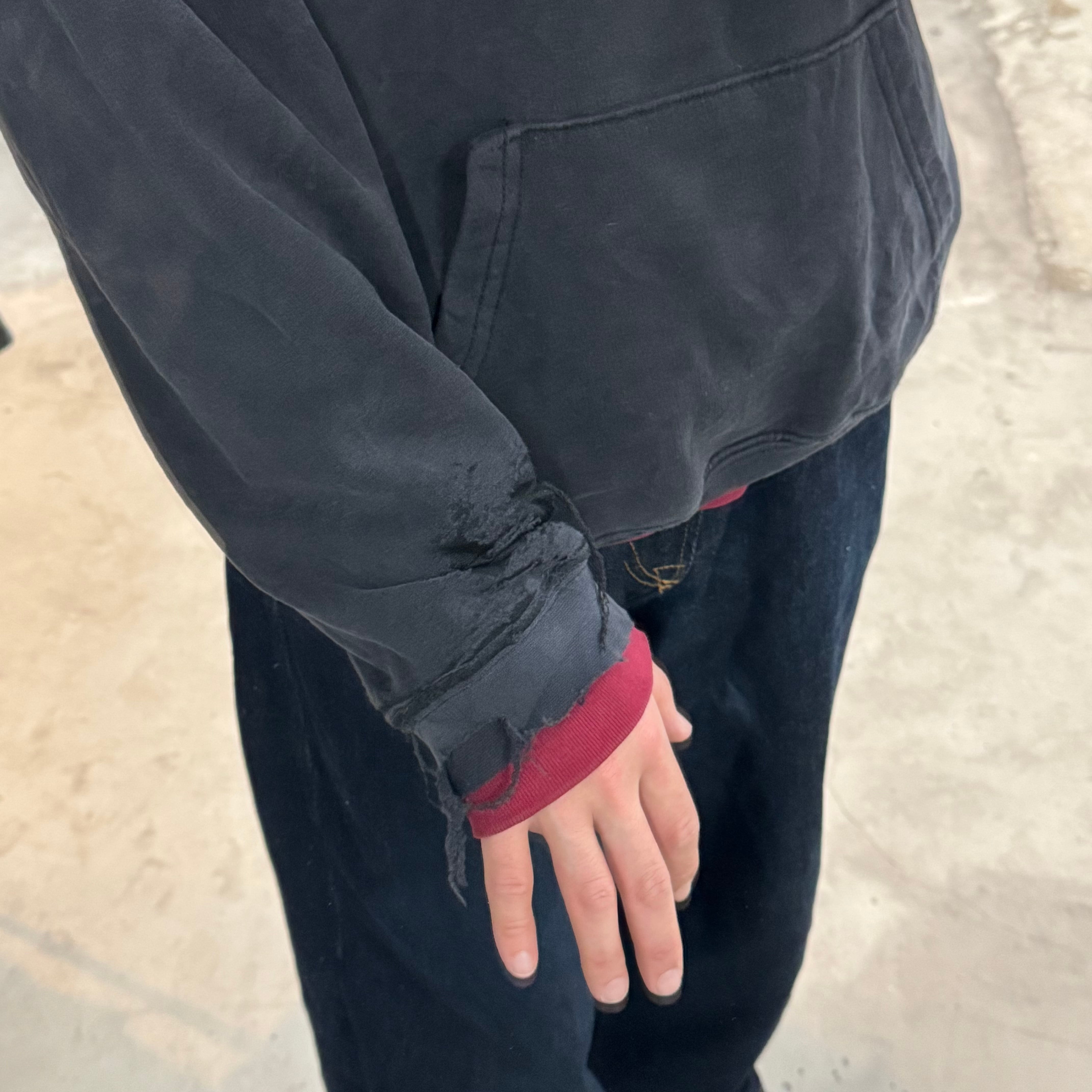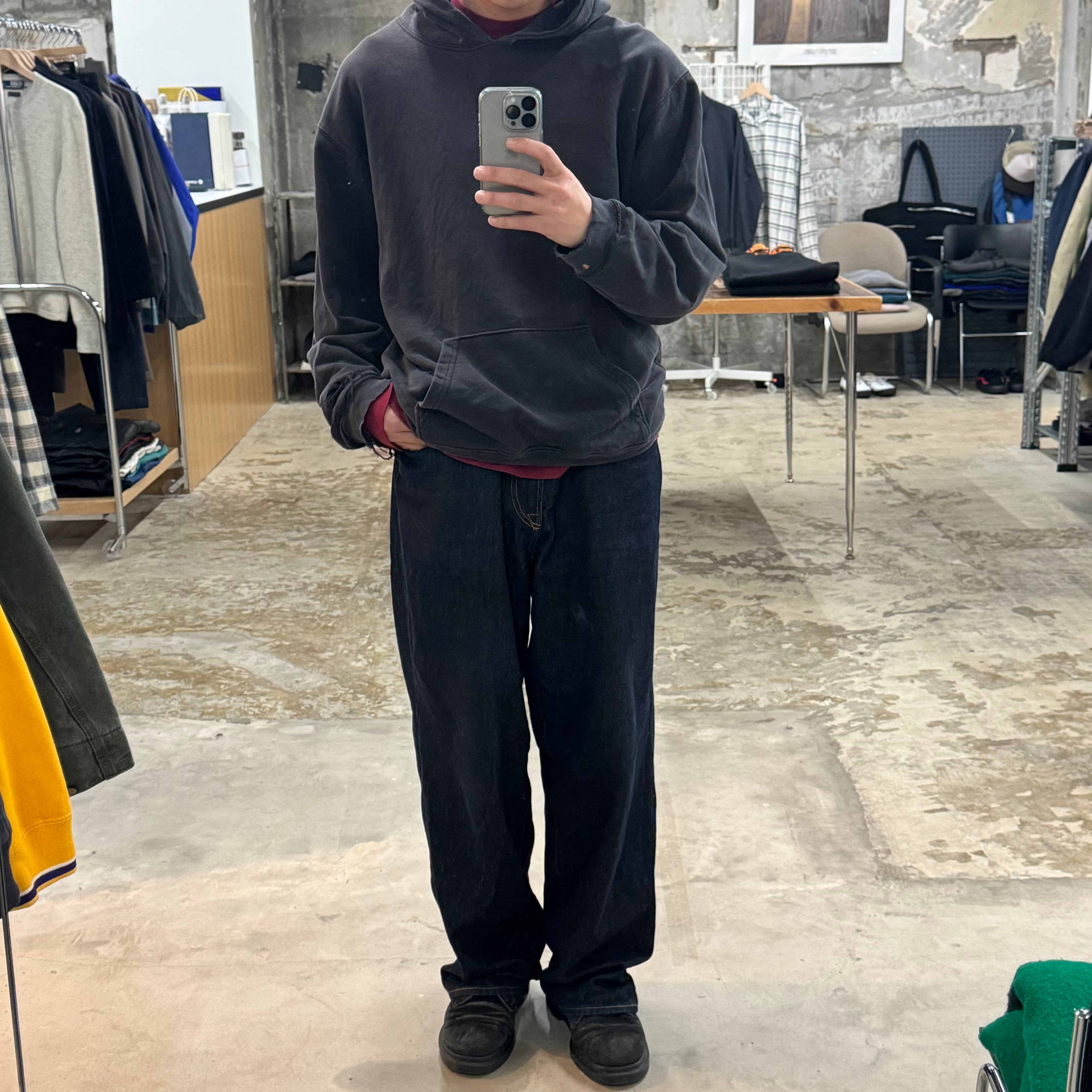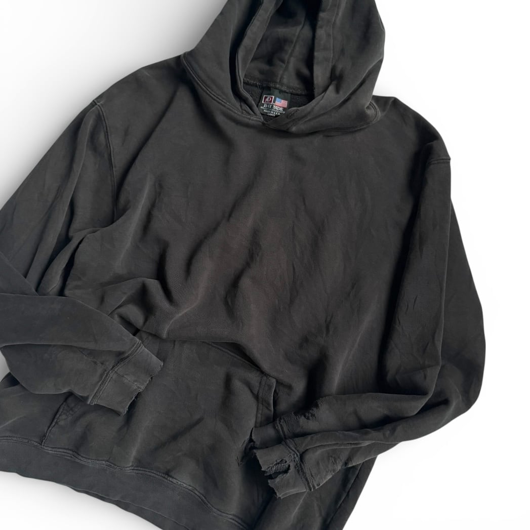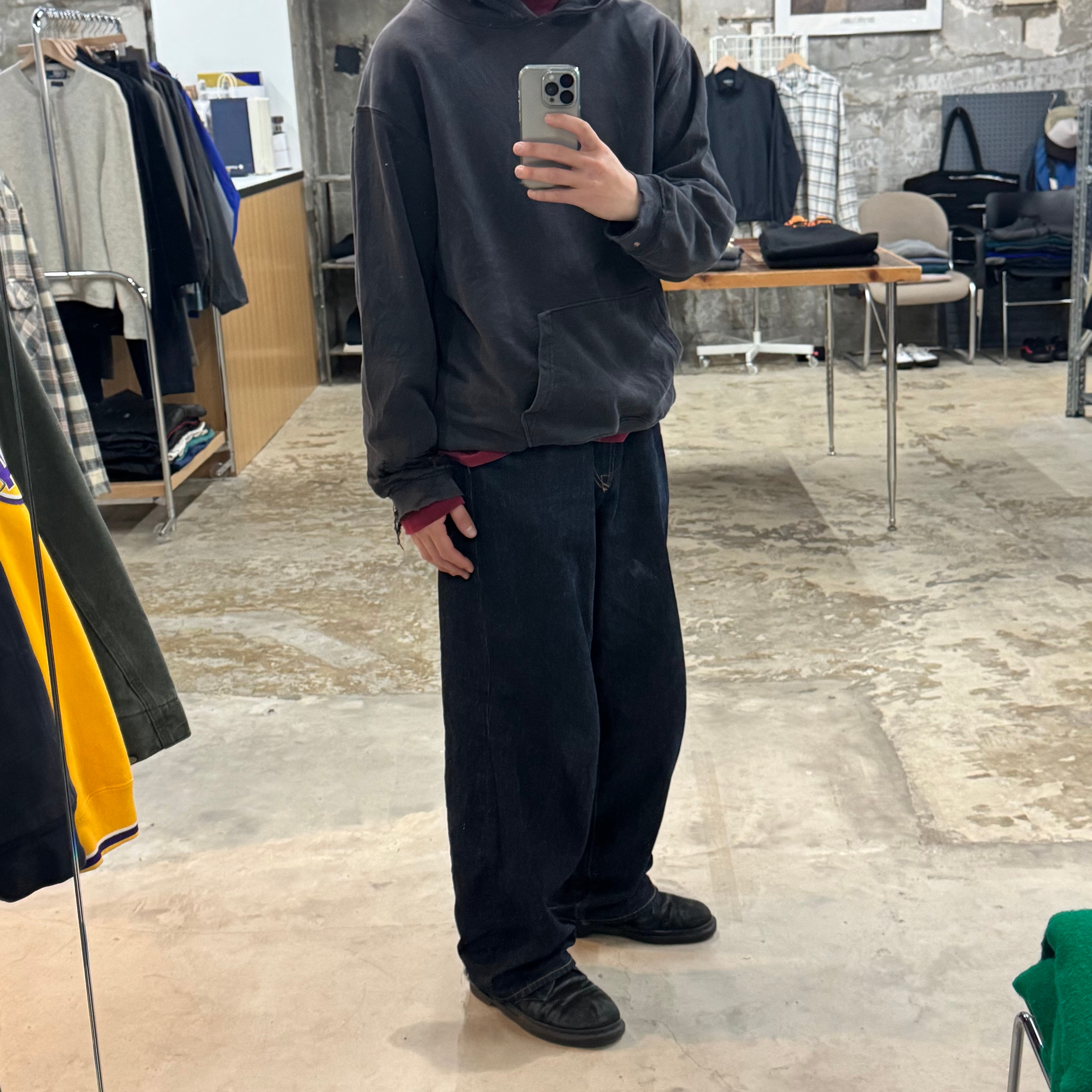 いい感じのクタり具合 フェード感、ダメージ◎ •SIZE L 肩幅 59cm 袖丈 60cm 身幅 61cm 着丈 68cm 175cm着用 •MATERIAL COTTON 80% POLYESTER 20% •COLOR ブラック •CONDITION 全体的に使用感、ダメージ、右肘背面あたりにピンホール。写真にてご確認ください。 kt571