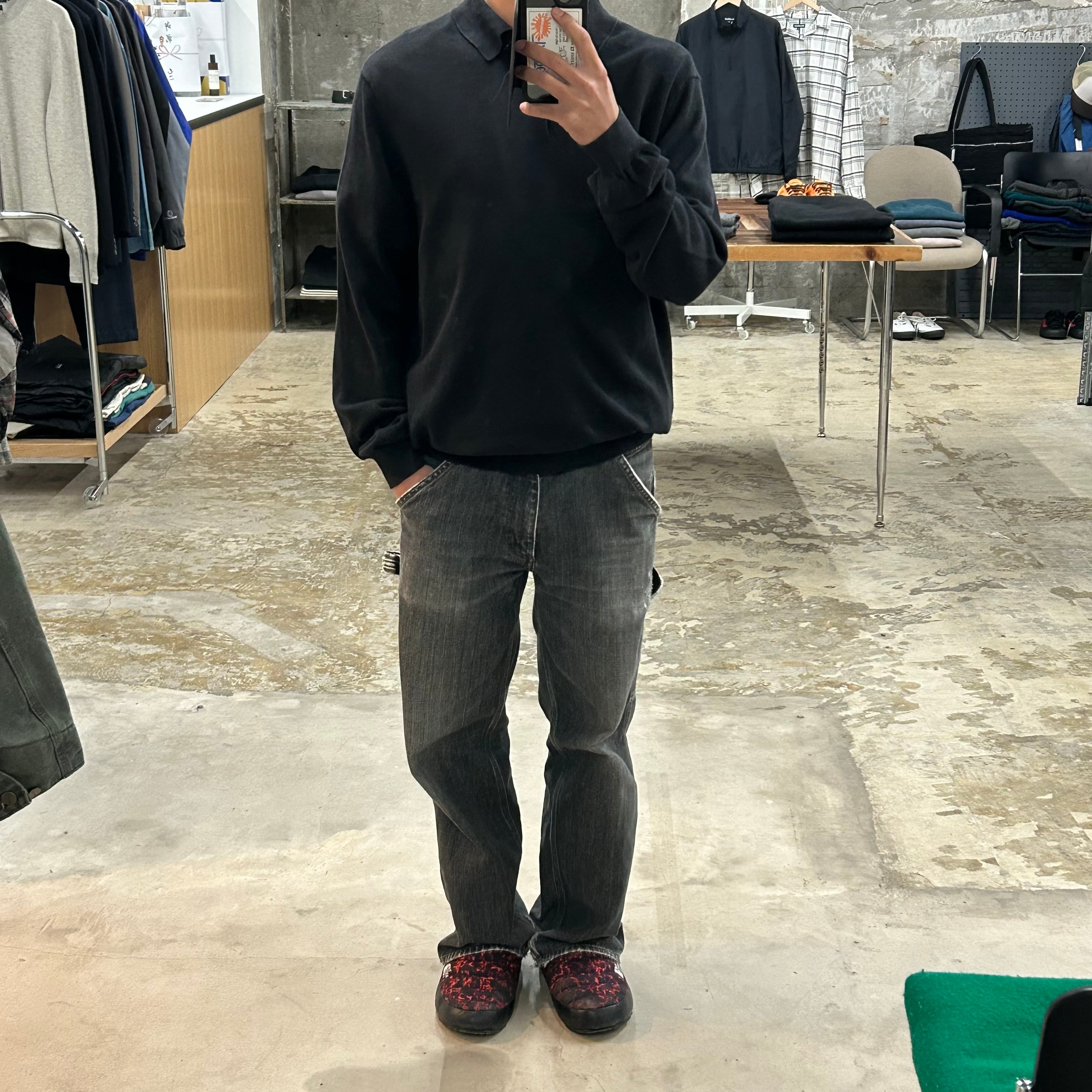 •SIZE L 肩幅 49cm 袖丈 69cm 身幅 60cm 着丈 69cm •MATERIAL Silk70% Cotton30% •COLOR ブラック •CONDITION 使用感はございますが、目立った傷や汚れ等はございません。 168cm着用 f816