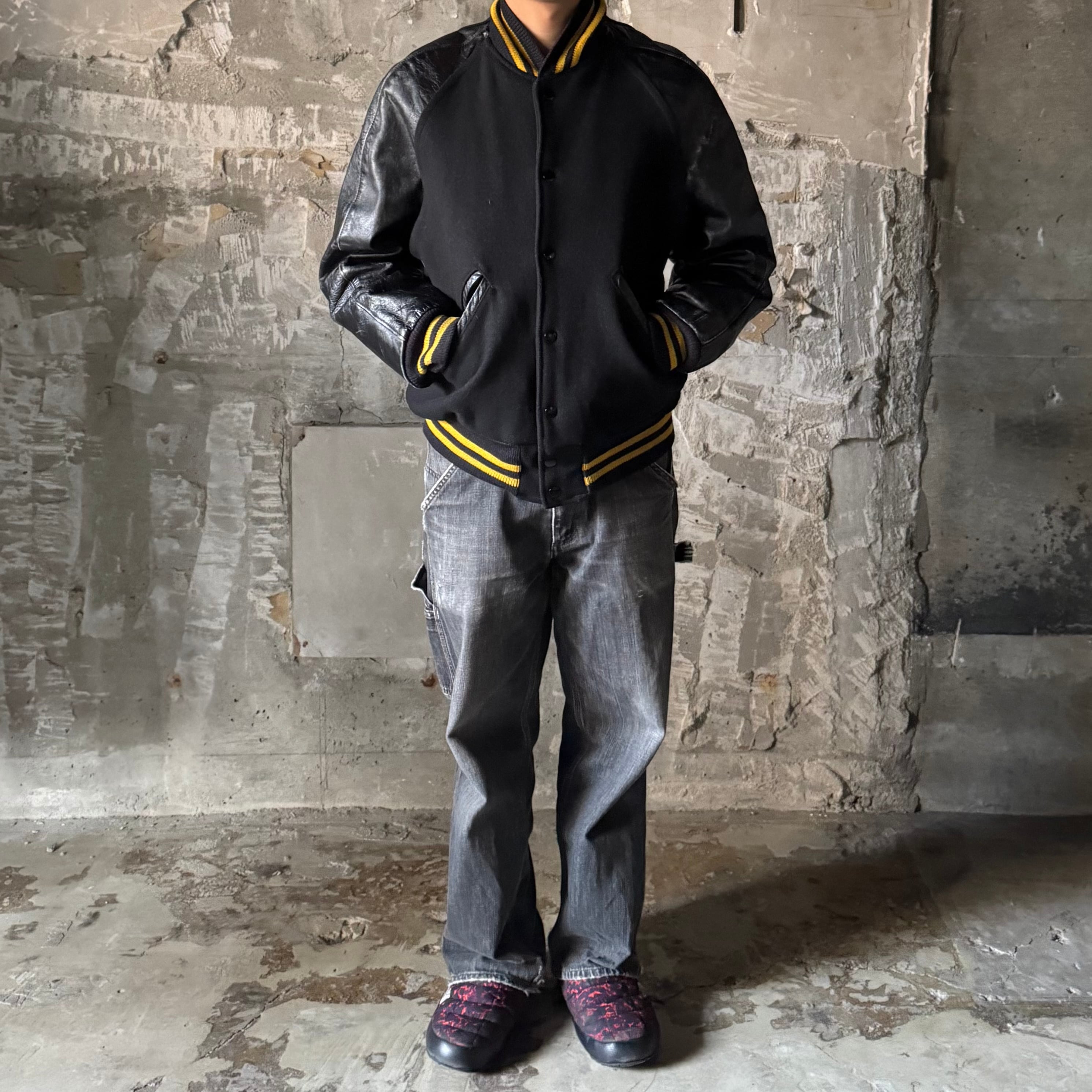 •SIZE 表記不明 裄丈 89cm 身幅 58cm 着丈 63cm 175cm着用 •MATERIAL WOOL LEATHER •COLOR ブラック イエロー •CONDITION 使用感、レザー部分に傷や擦れ。 写真にてご確認下さい。 kt570