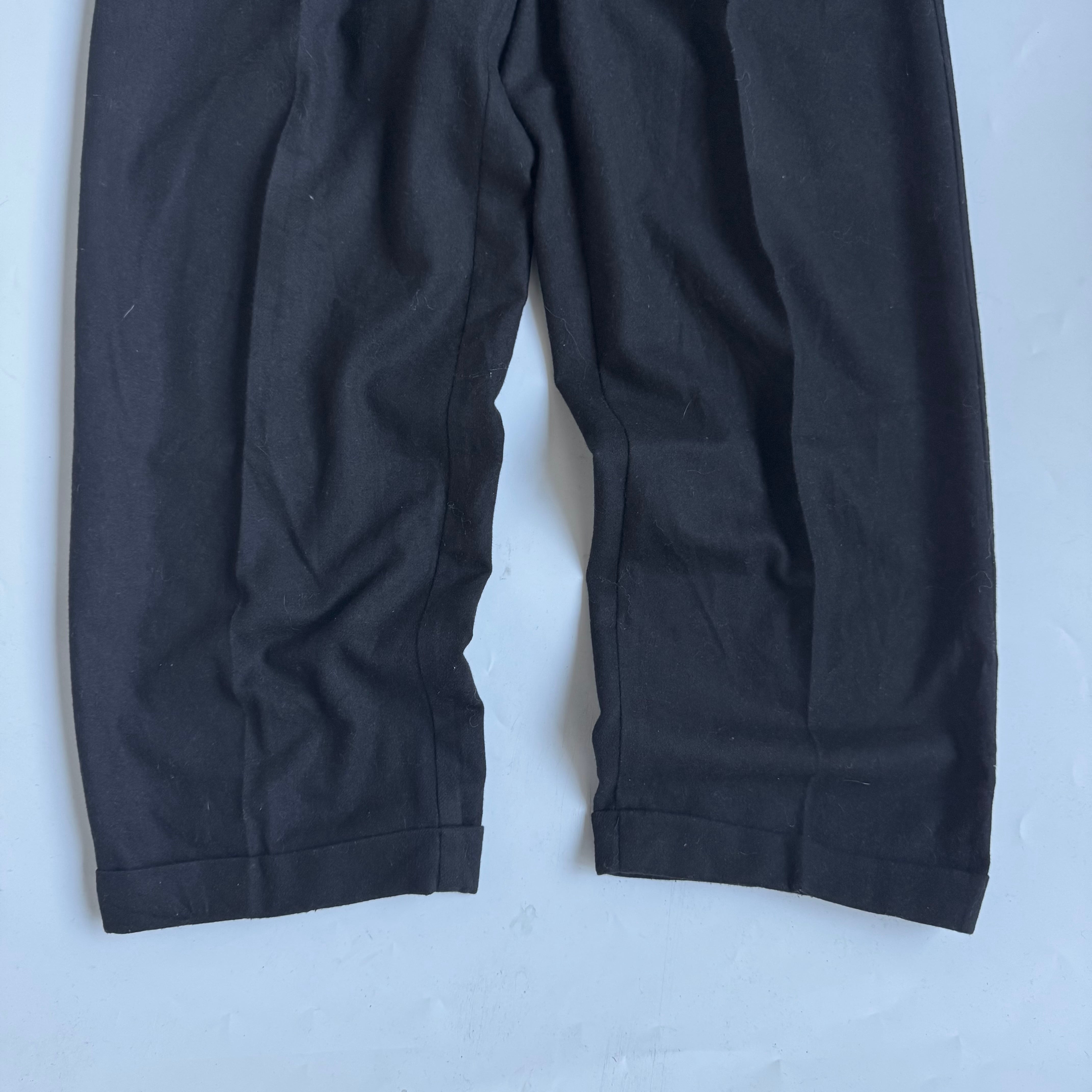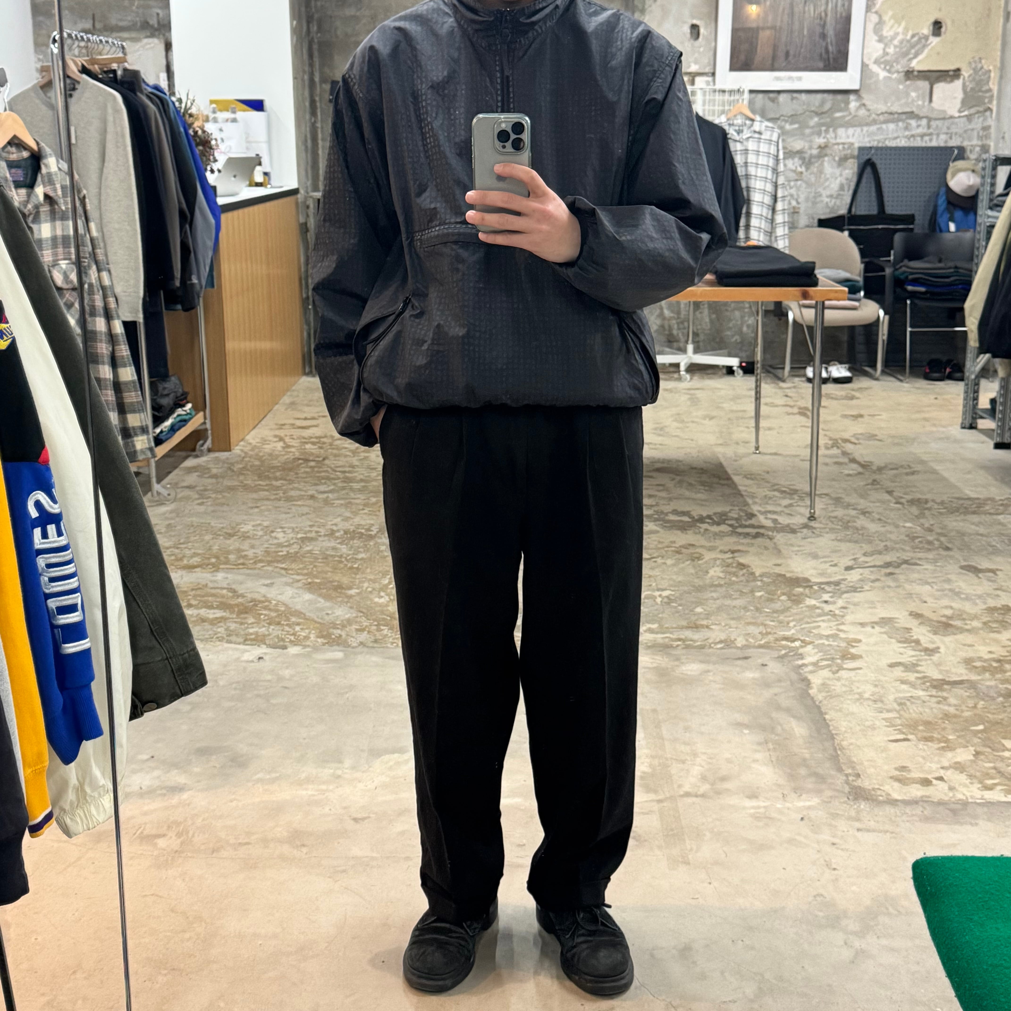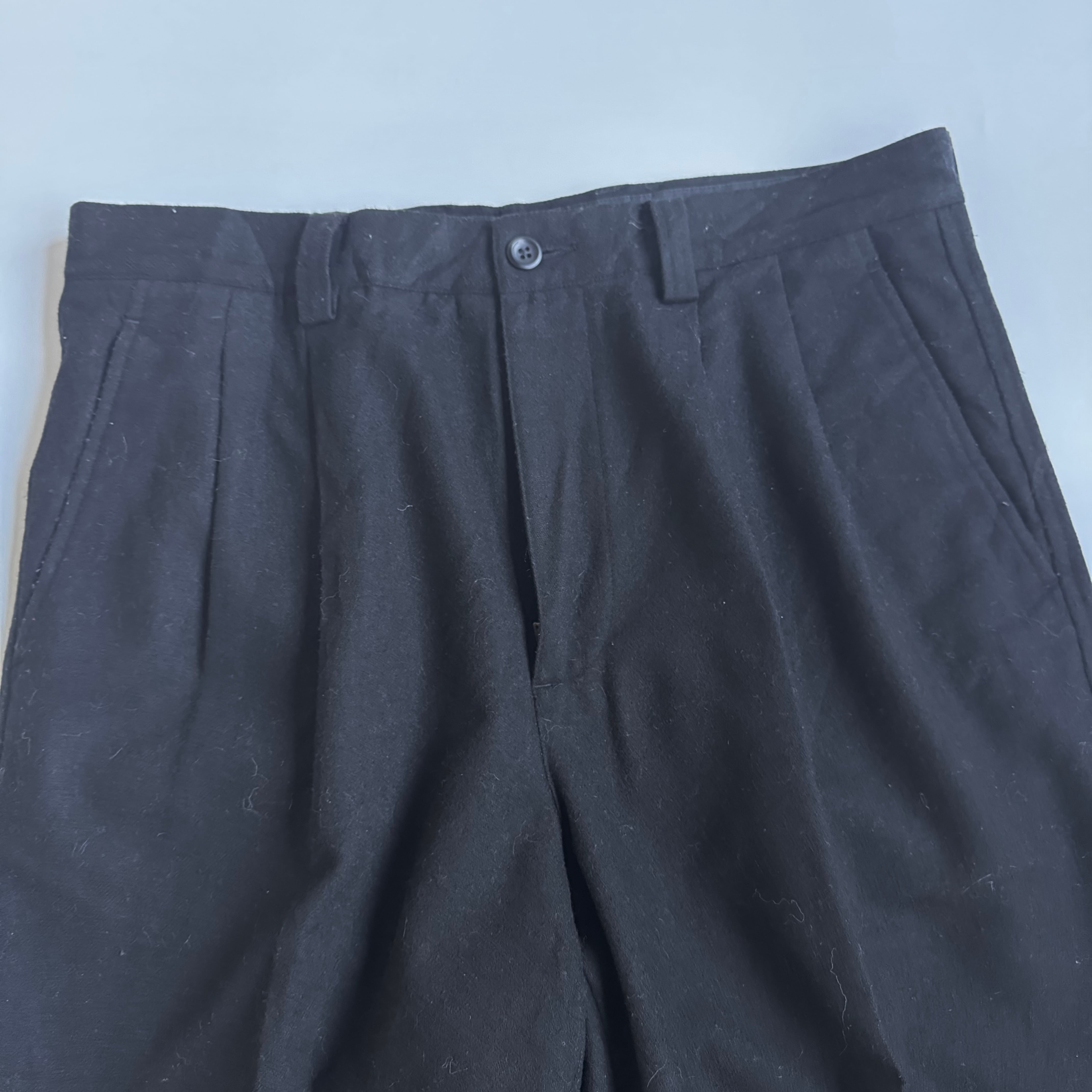 •SIZE 32× 32 ウエスト 88cm 股上 32.5cm 股下 66.5cm わたり 34cm 裾幅 23.5cm 175cm着用(腰めに履いて) •MATERIAL WOOL 66% POLYESTER 30% OTHER 4% •COLOR ブラック •CONDITION 使用感はございますが、目立った傷や汚れ等はございません。 kt575
