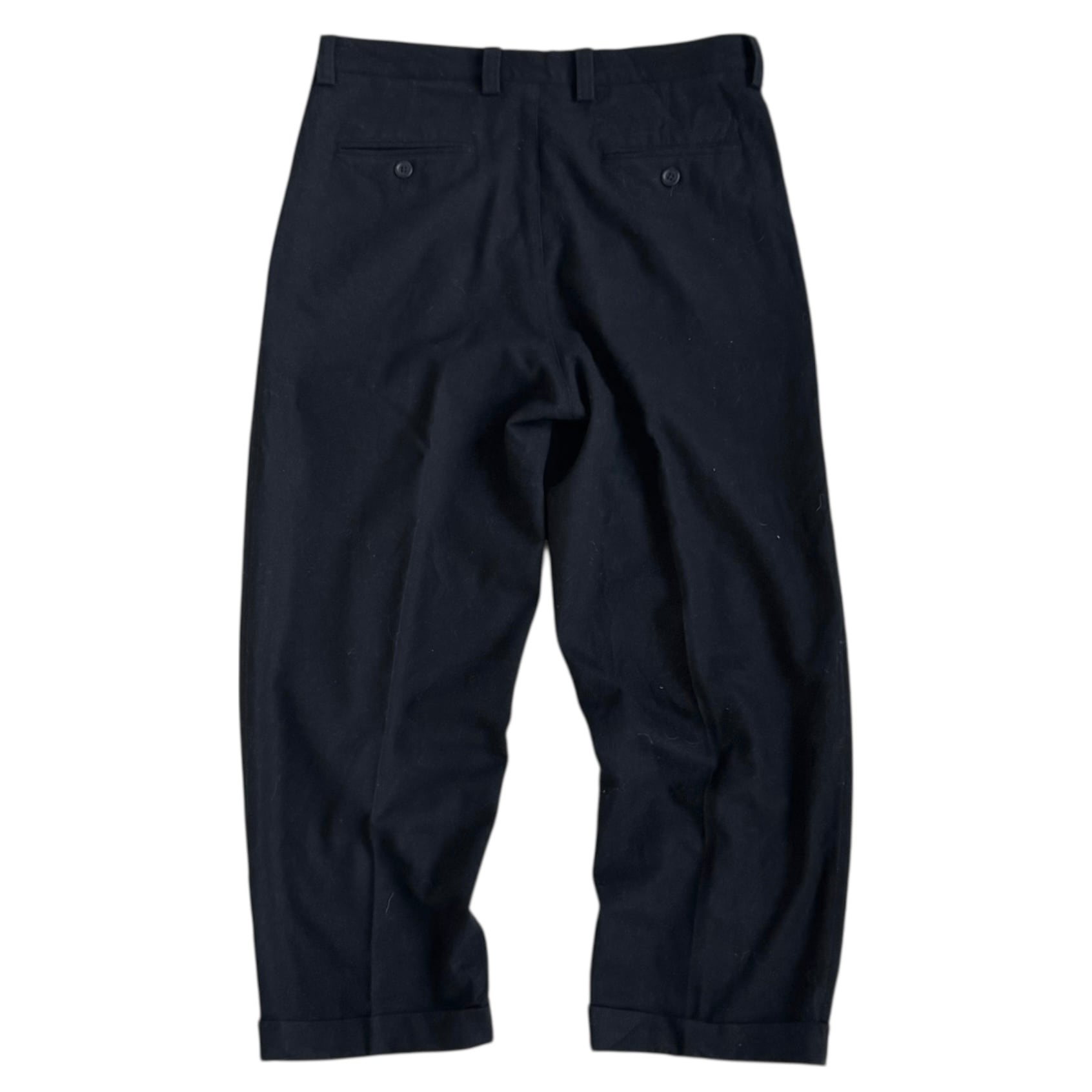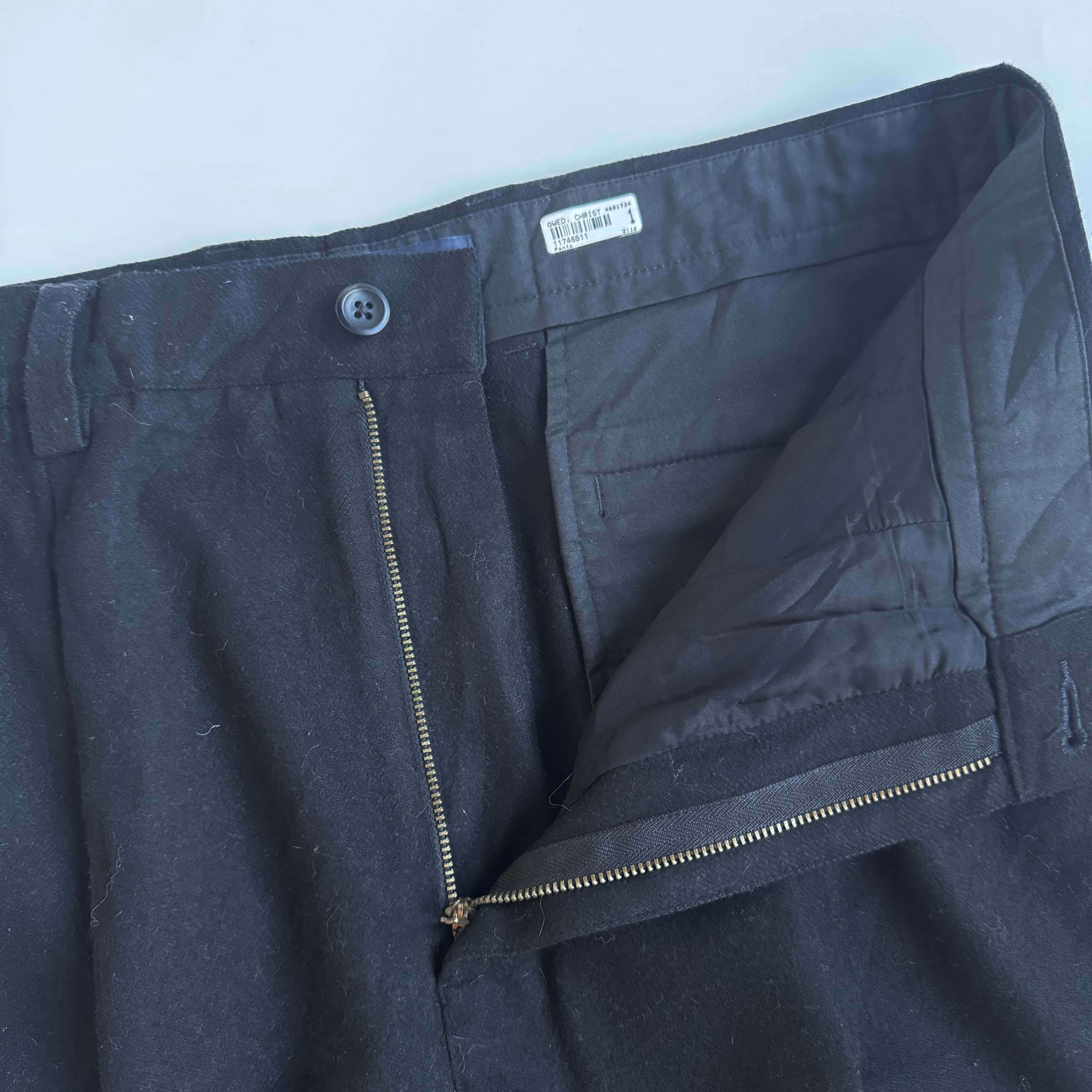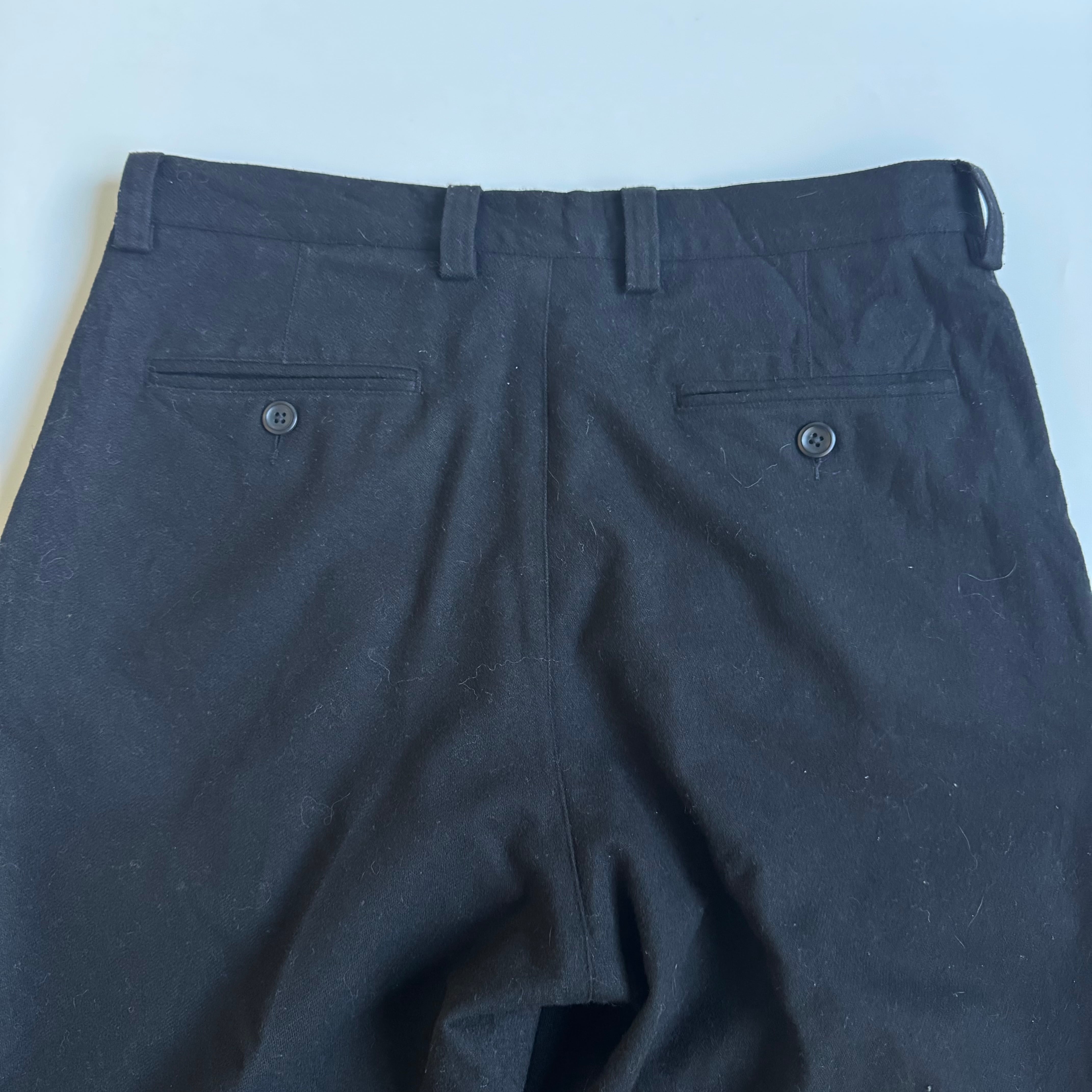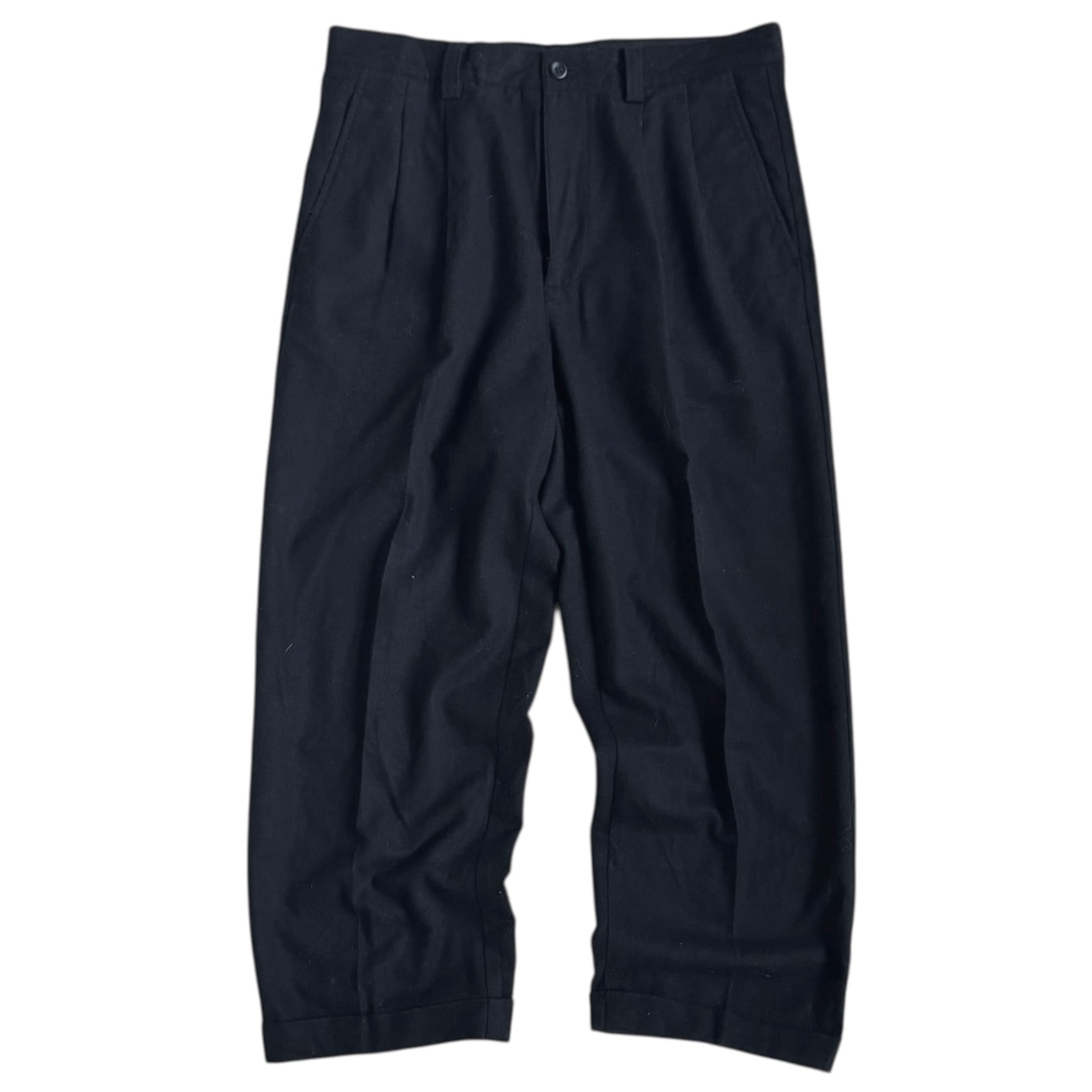 •SIZE 32× 32 ウエスト 88cm 股上 32.5cm 股下 66.5cm わたり 34cm 裾幅 23.5cm 175cm着用(腰めに履いて) •MATERIAL WOOL 66% POLYESTER 30% OTHER 4% •COLOR ブラック •CONDITION 使用感はございますが、目立った傷や汚れ等はございません。 kt575