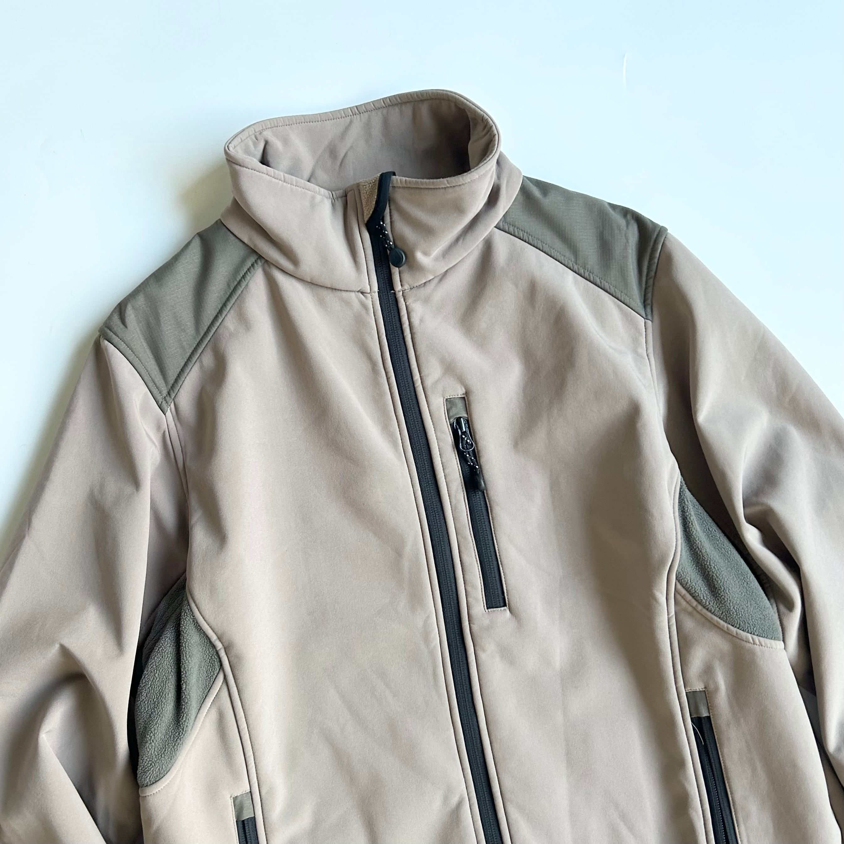 •SIZE S 肩幅 44.5cm 袖丈 70cm 身幅 60.5cm 着丈 68cm 175cm着用 •MATERIAL Polyester94% Spandex6% •COLOR ベージュ カーキ •CONDITION 袖に小さなシミあり 写真参照
