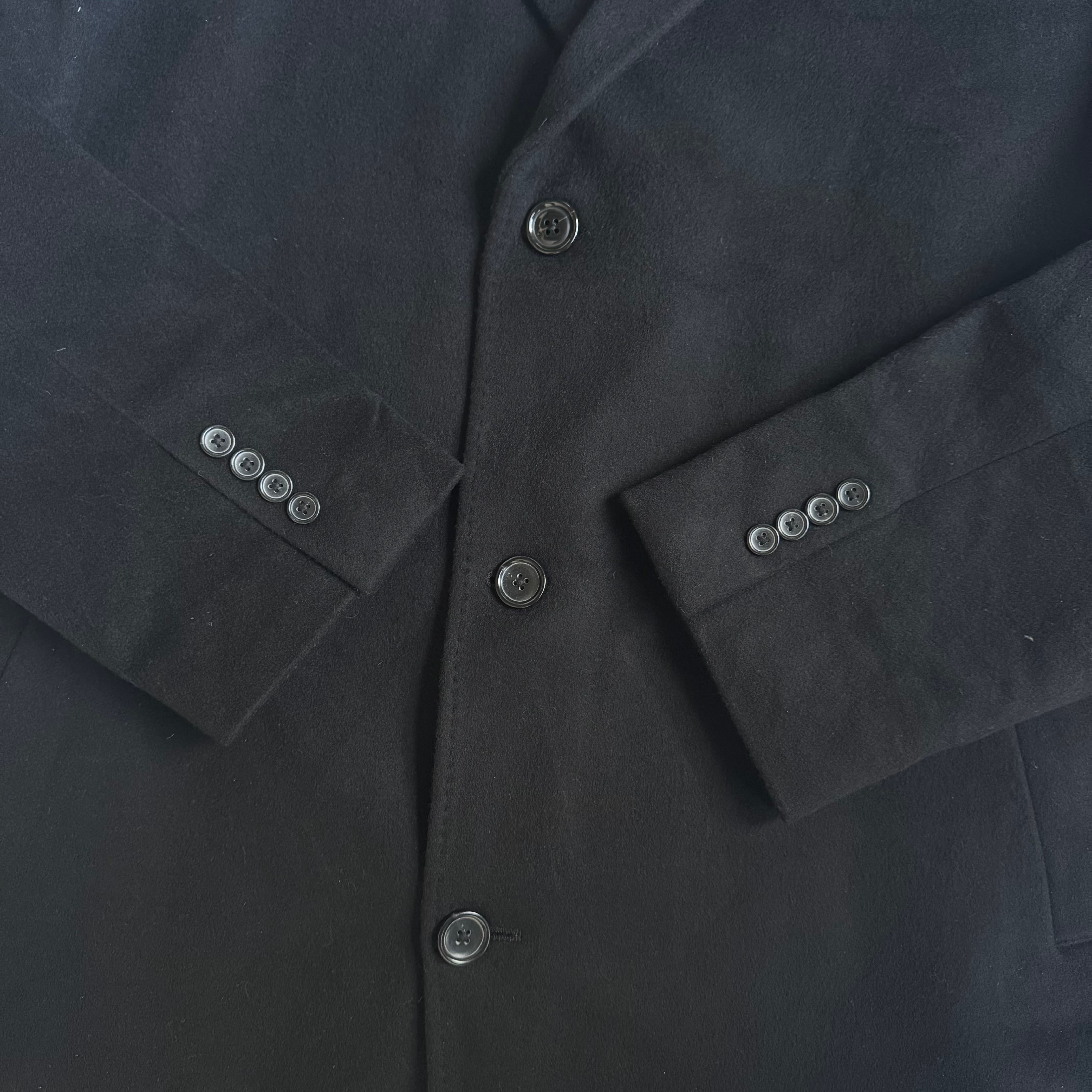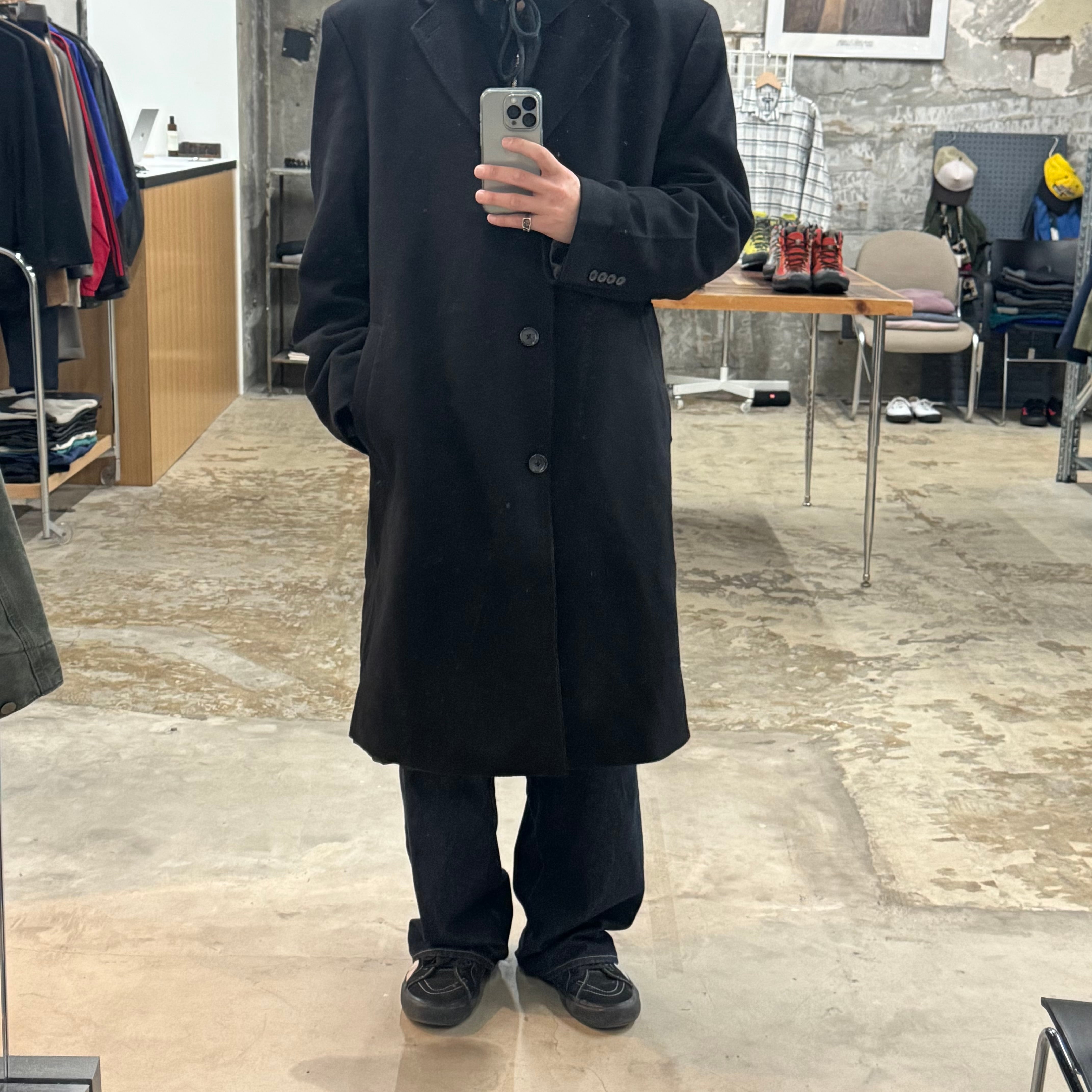 •SIZE 肩幅 52cm 袖丈 68cm 身幅 65cm 着丈 108cm 175cm着用 175cm着用 •MATERIAL WOOL 100% •COLOR ブラック •CONDITION 使用感はございますが、目立った傷や汚れ等はございません。