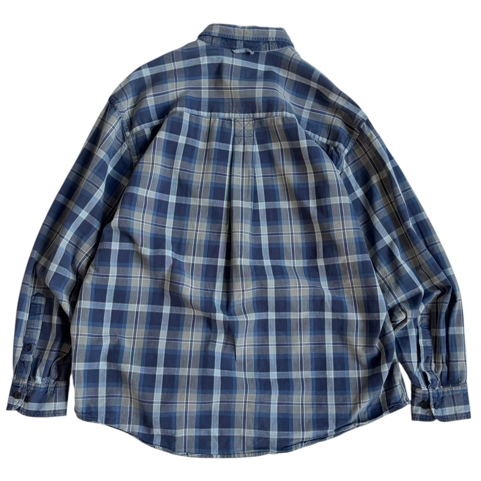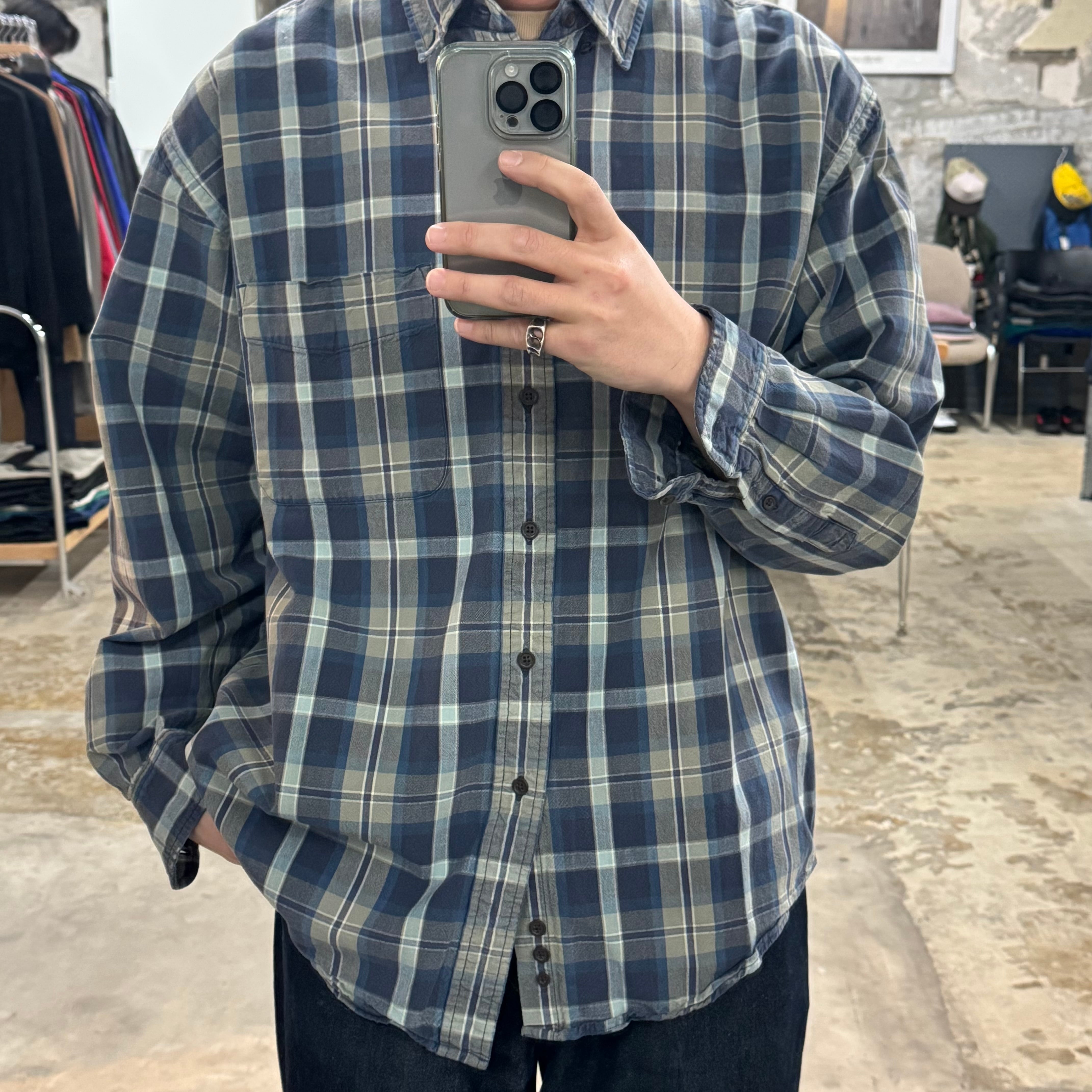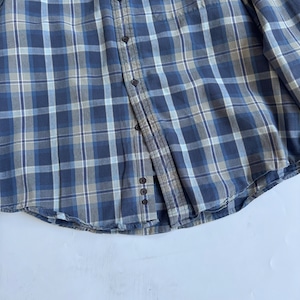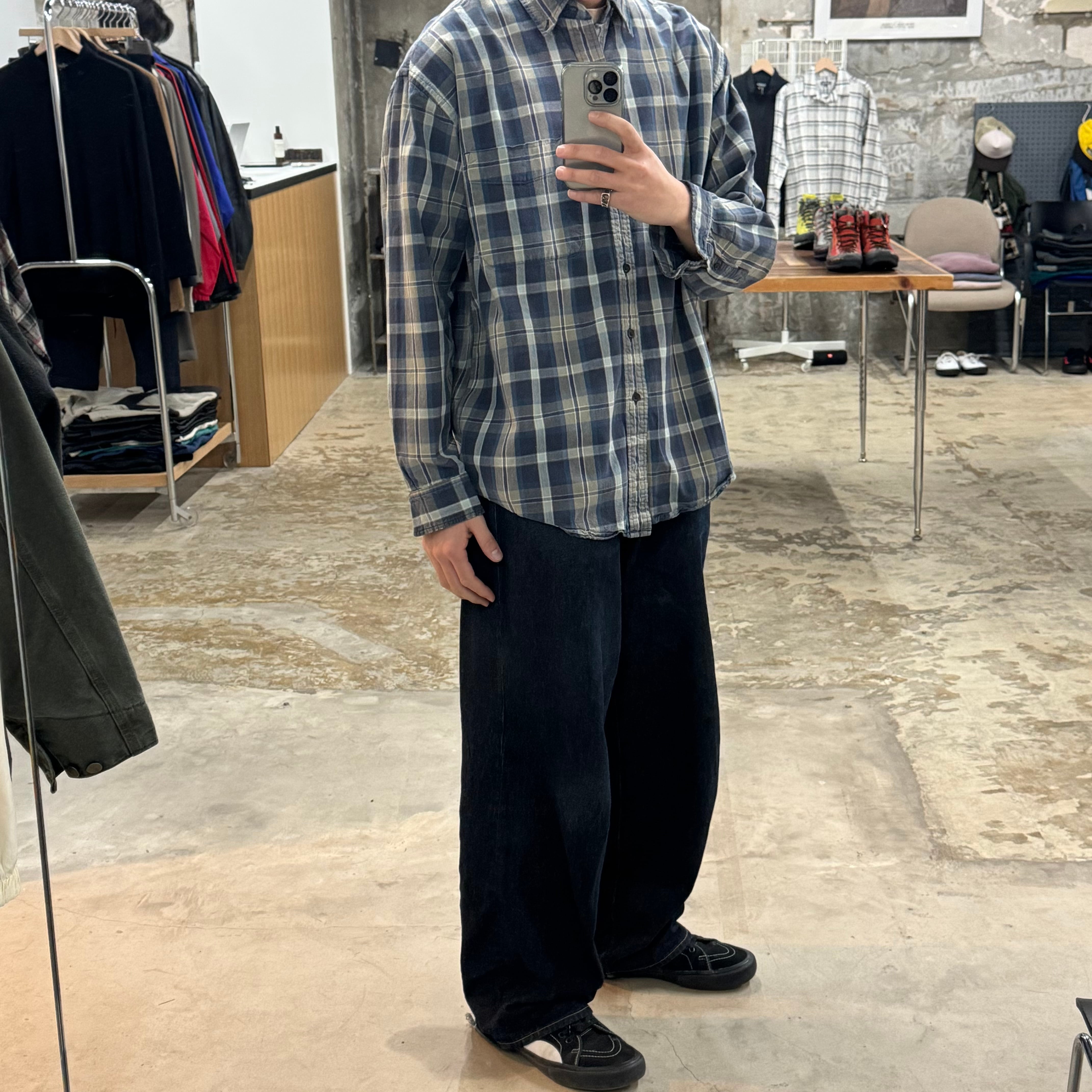 •SIZE L 肩幅 53cm 袖丈 58cm 身幅 64cm 着丈 79cm 175cm着用 175cm着用 •MATERIAL COTTON 100% •COLOR ネイビー ブルー ホワイト サンドベージュ系 •CONDITION 使用感、左肩あたりに小さなほつれ。 写真にてご確認下さい。
