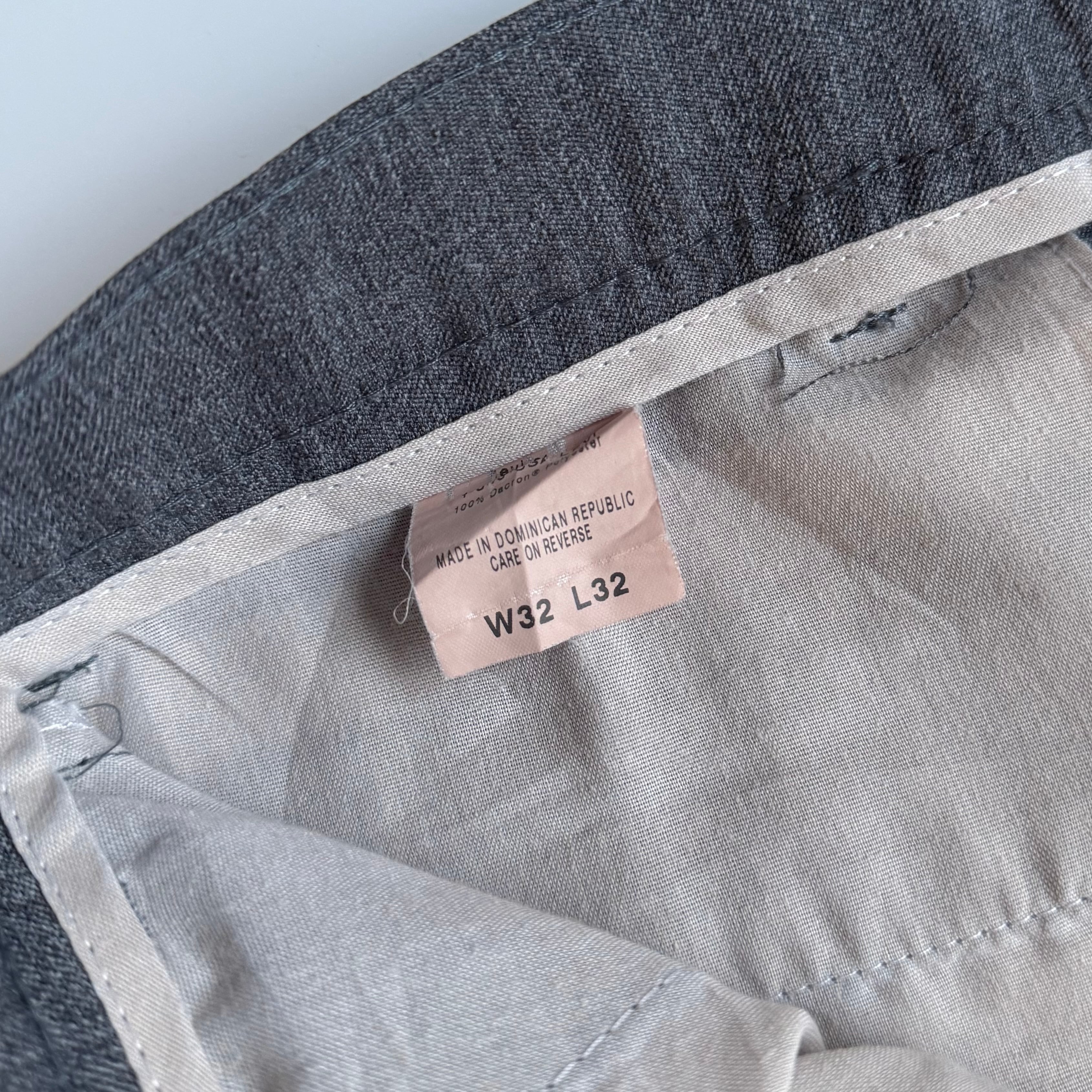 •SIZE W32 L32 ウエスト 84cm 股上 32cm 股下 79cm 渡り 30cm 裾幅 21.5cm •MATERIAL POLYESTER 100% •COLOR グレー系 •CONDITION 使用感はございますが、目立った汚れやダメージはございません。