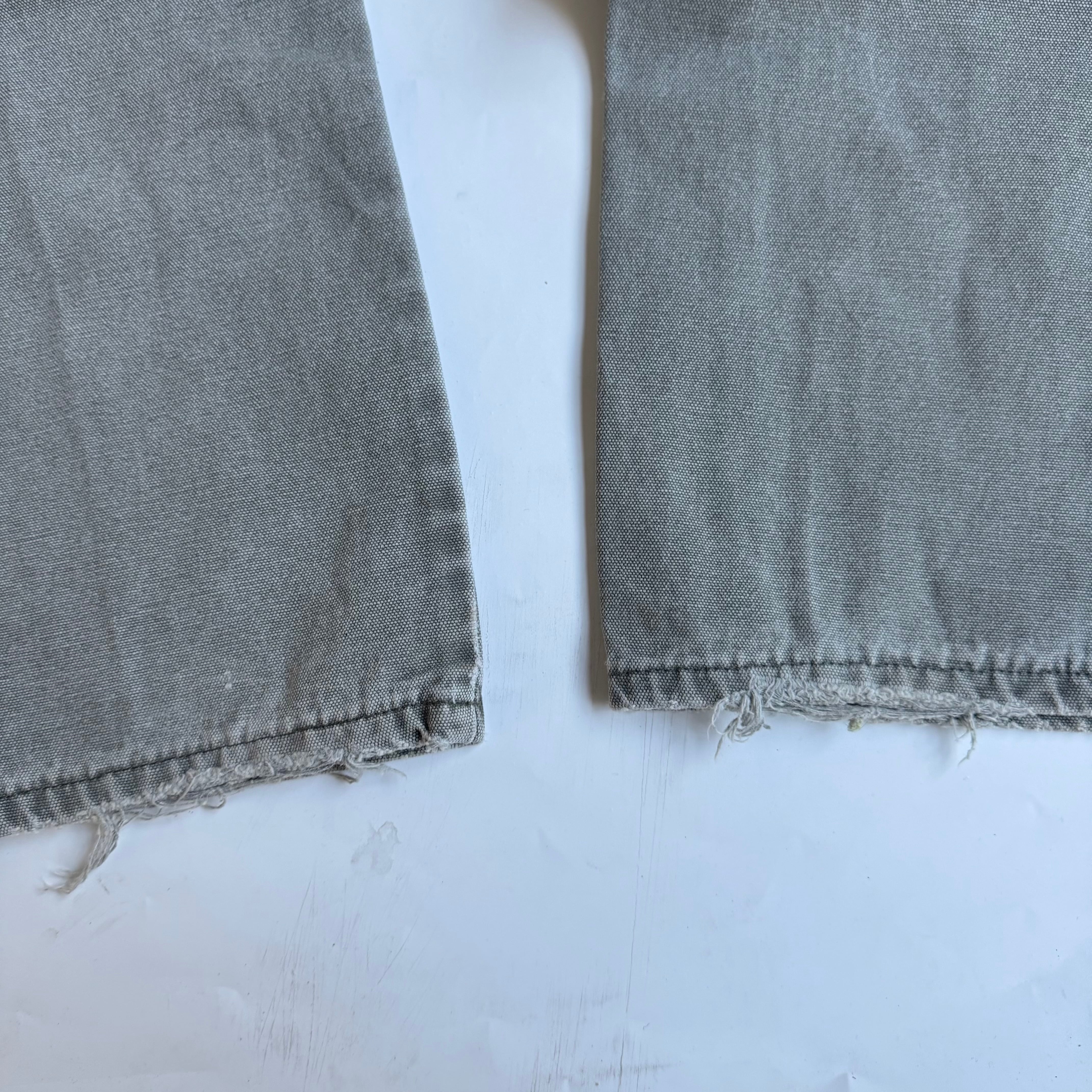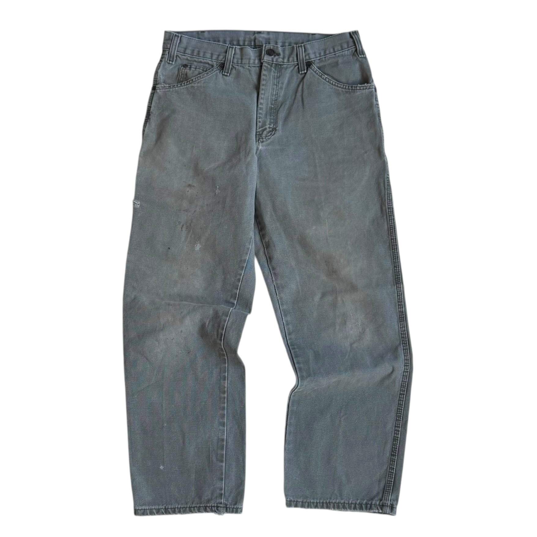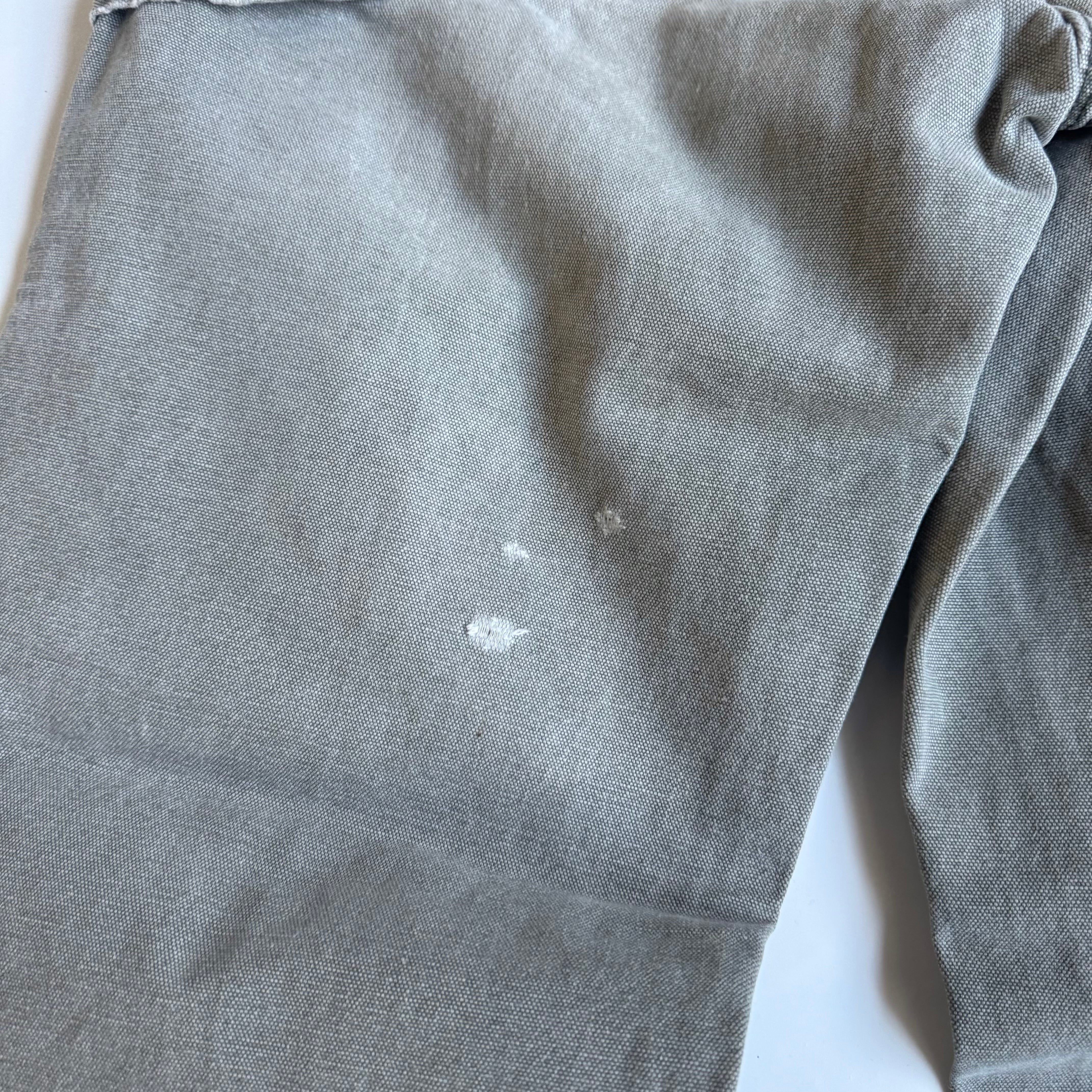 •SIZE 表記不明 ウエスト 81cm 股上 29cm 股下 73cm 渡り 31cm 裾幅 22cm 175cm着用 •MATERIAL COTTON 100% •COLOR ライトグリーン系 •CONDITION 全体的に使用感、小さなダメージ、ペンキ汚れ。写真にてご確認下さい。