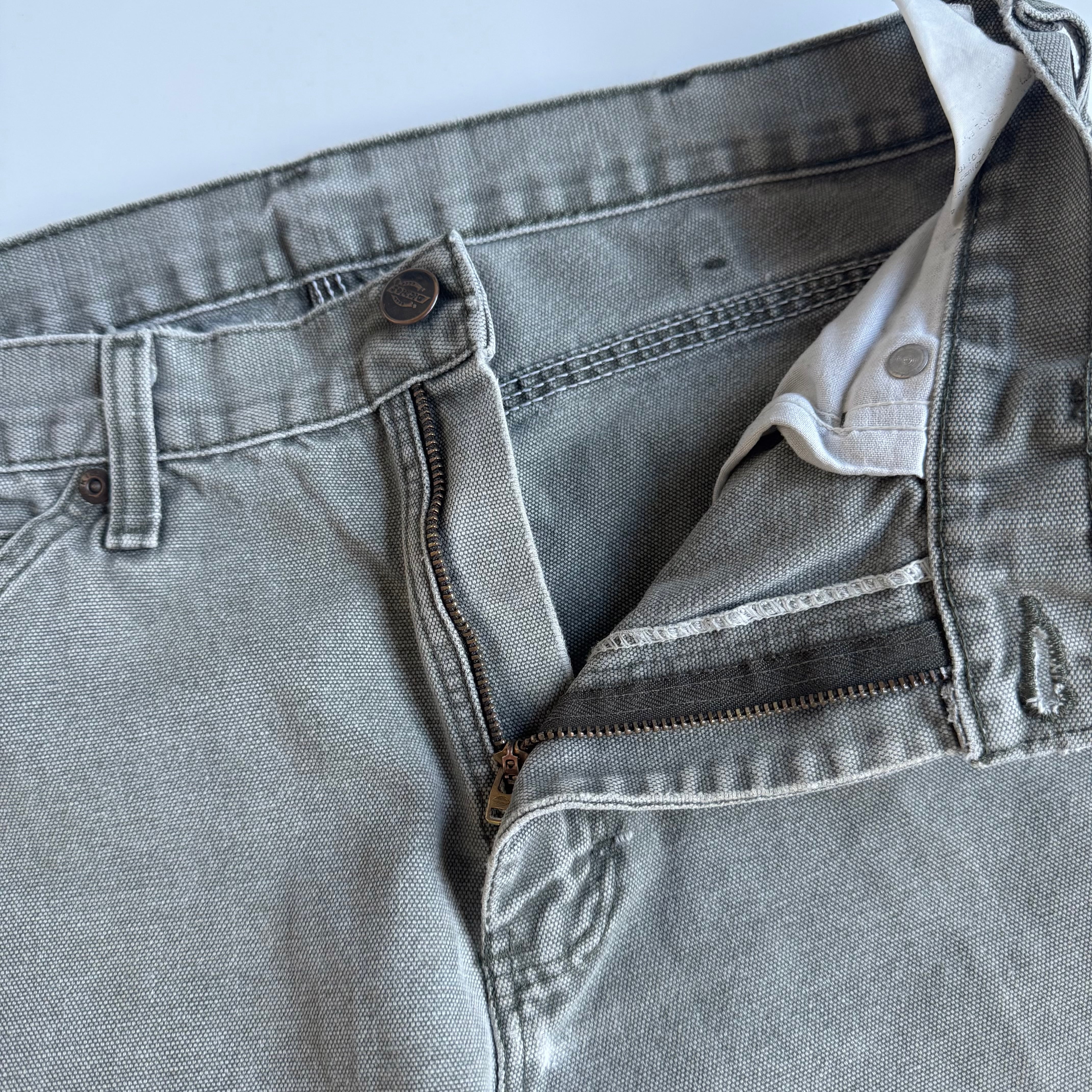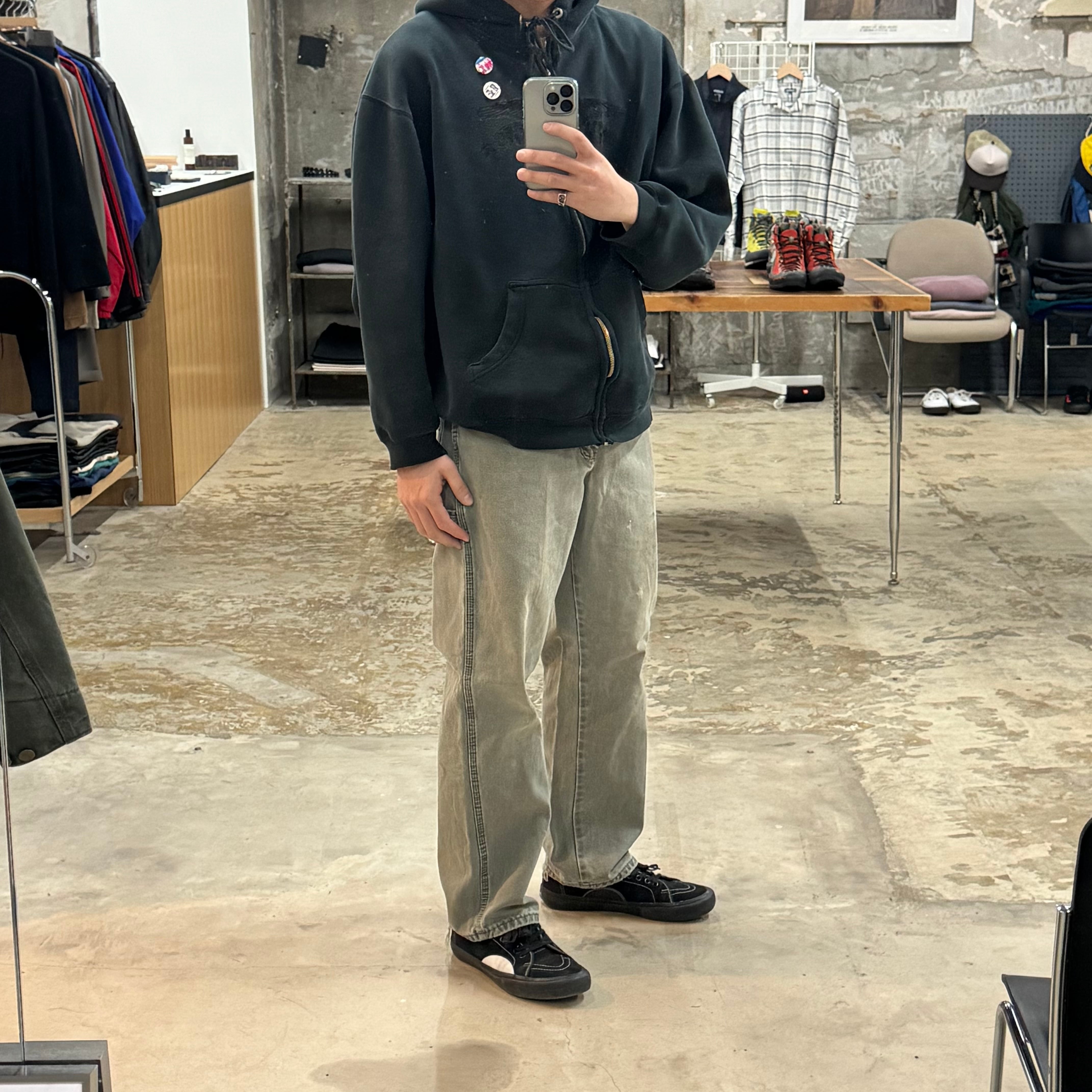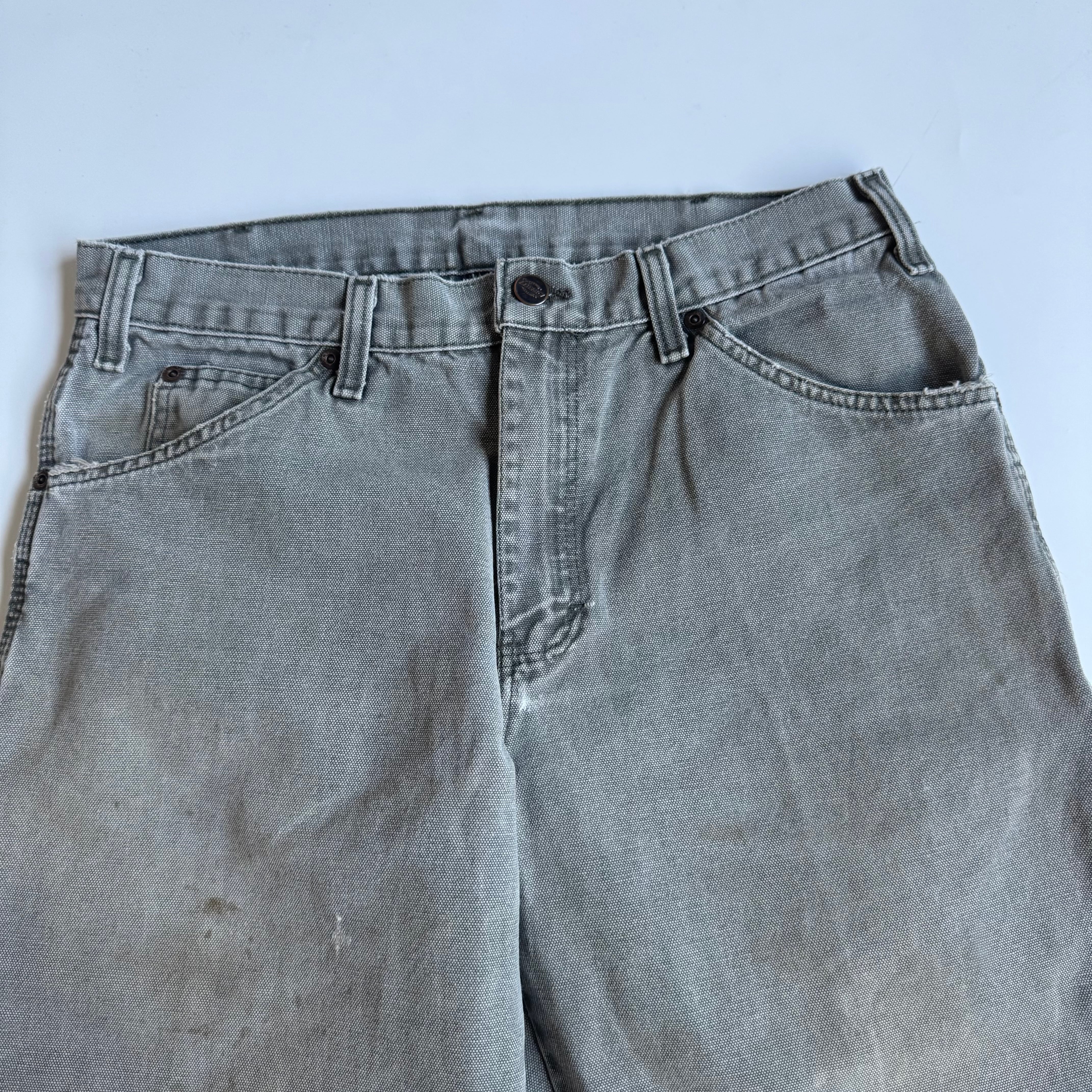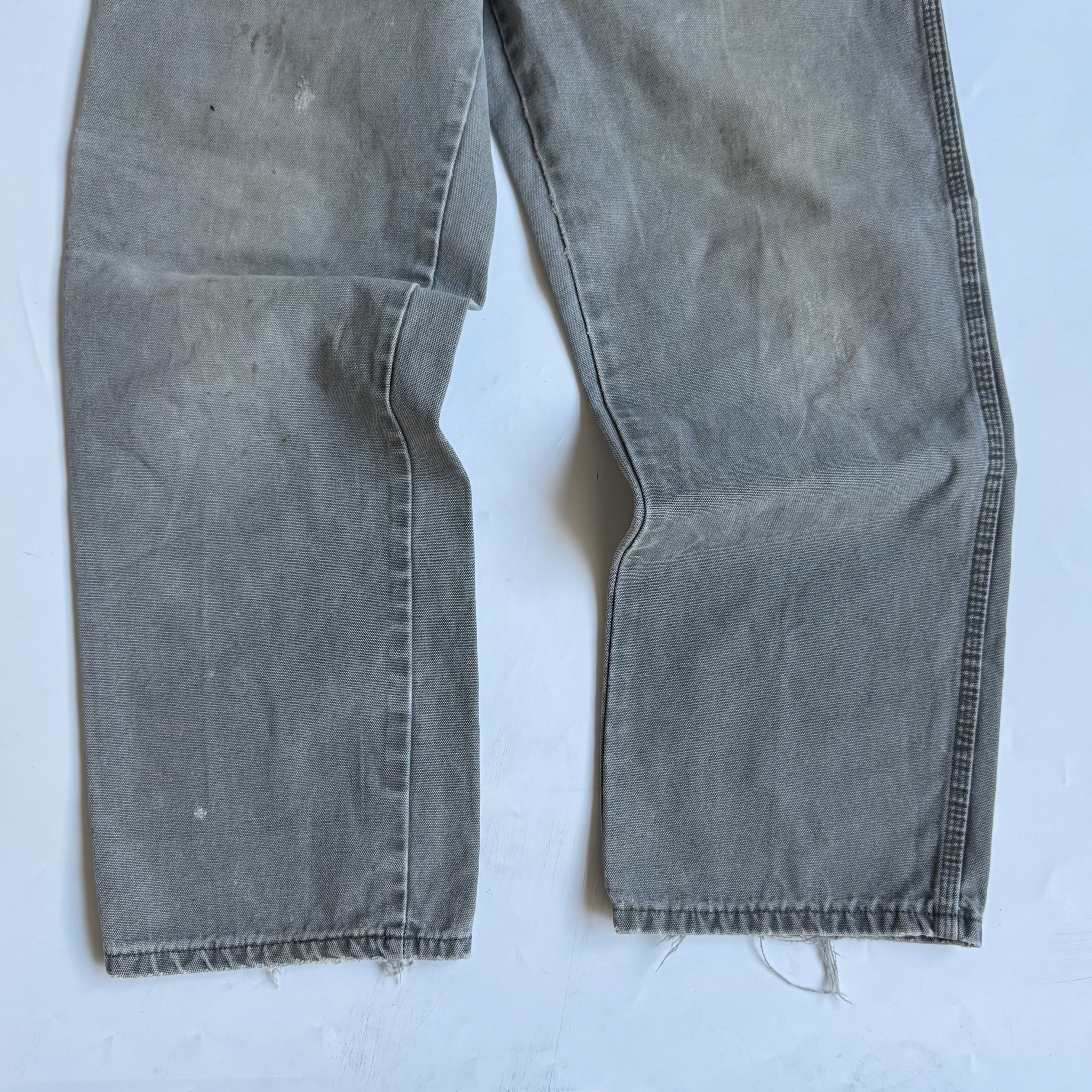 •SIZE 表記不明 ウエスト 81cm 股上 29cm 股下 73cm 渡り 31cm 裾幅 22cm 175cm着用 •MATERIAL COTTON 100% •COLOR ライトグリーン系 •CONDITION 全体的に使用感、小さなダメージ、ペンキ汚れ。写真にてご確認下さい。