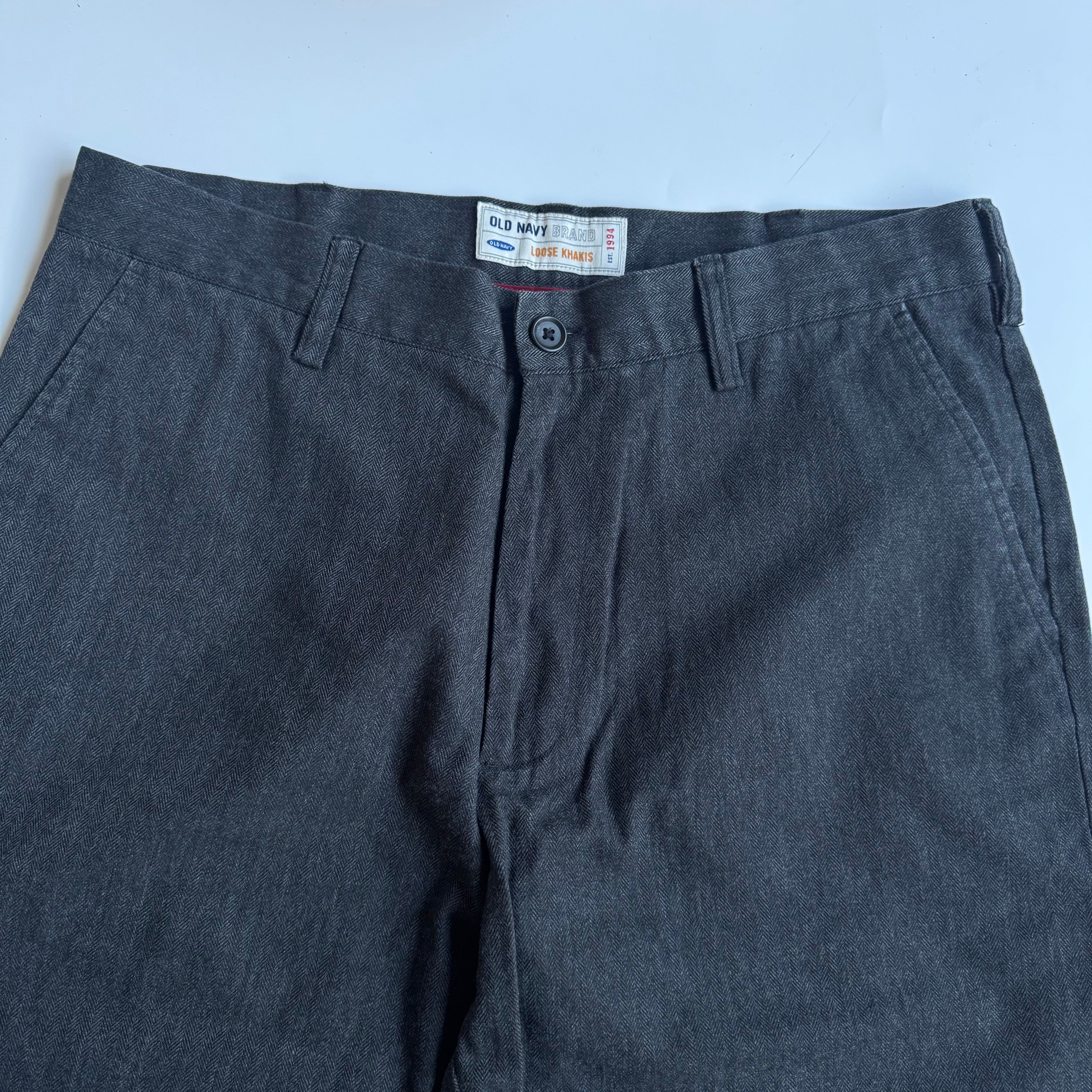 •SIZE 34×30 ウエスト 94cm 股上 32cm 股下 75cm 渡り 34cm 裾幅 26cm •MATERIAL COTTON 75% POLYESTER 25% •COLOR チャコールグレー系 •CONDITION 使用感はございますが、目立った汚れやダメージはございません。