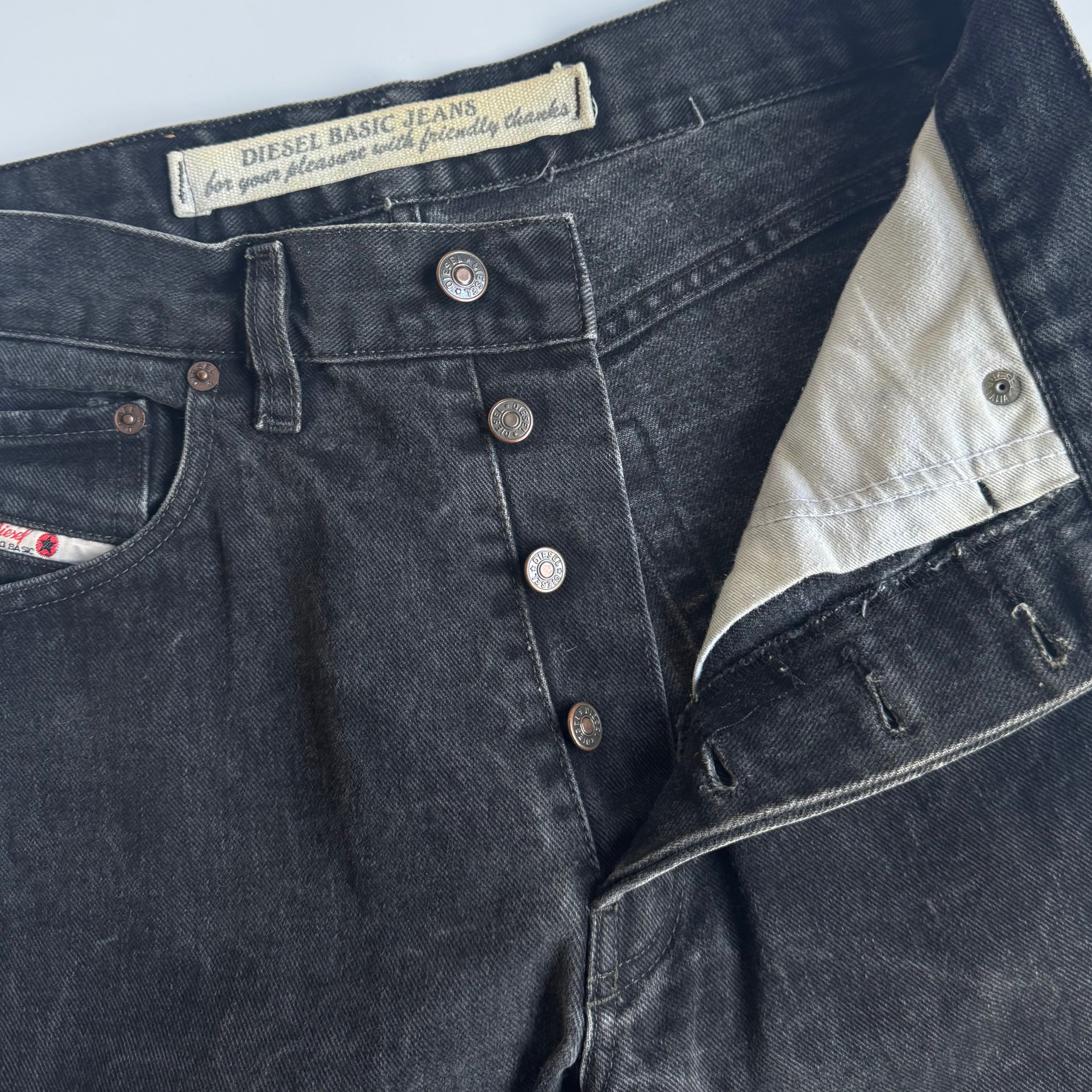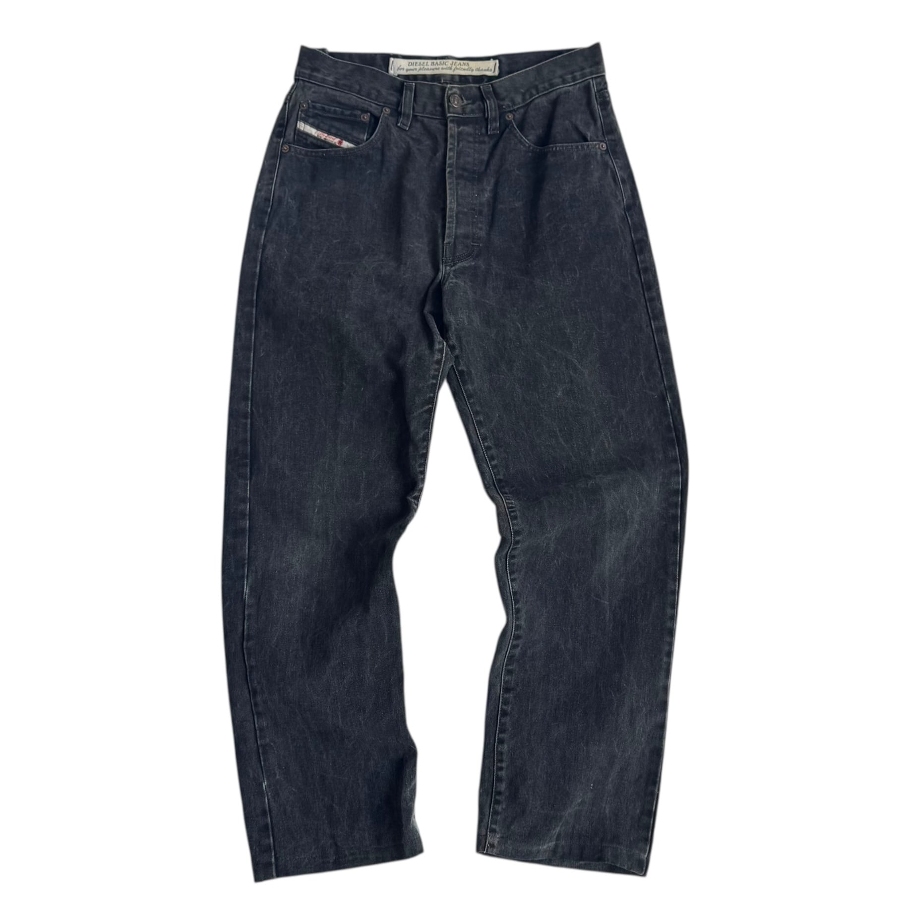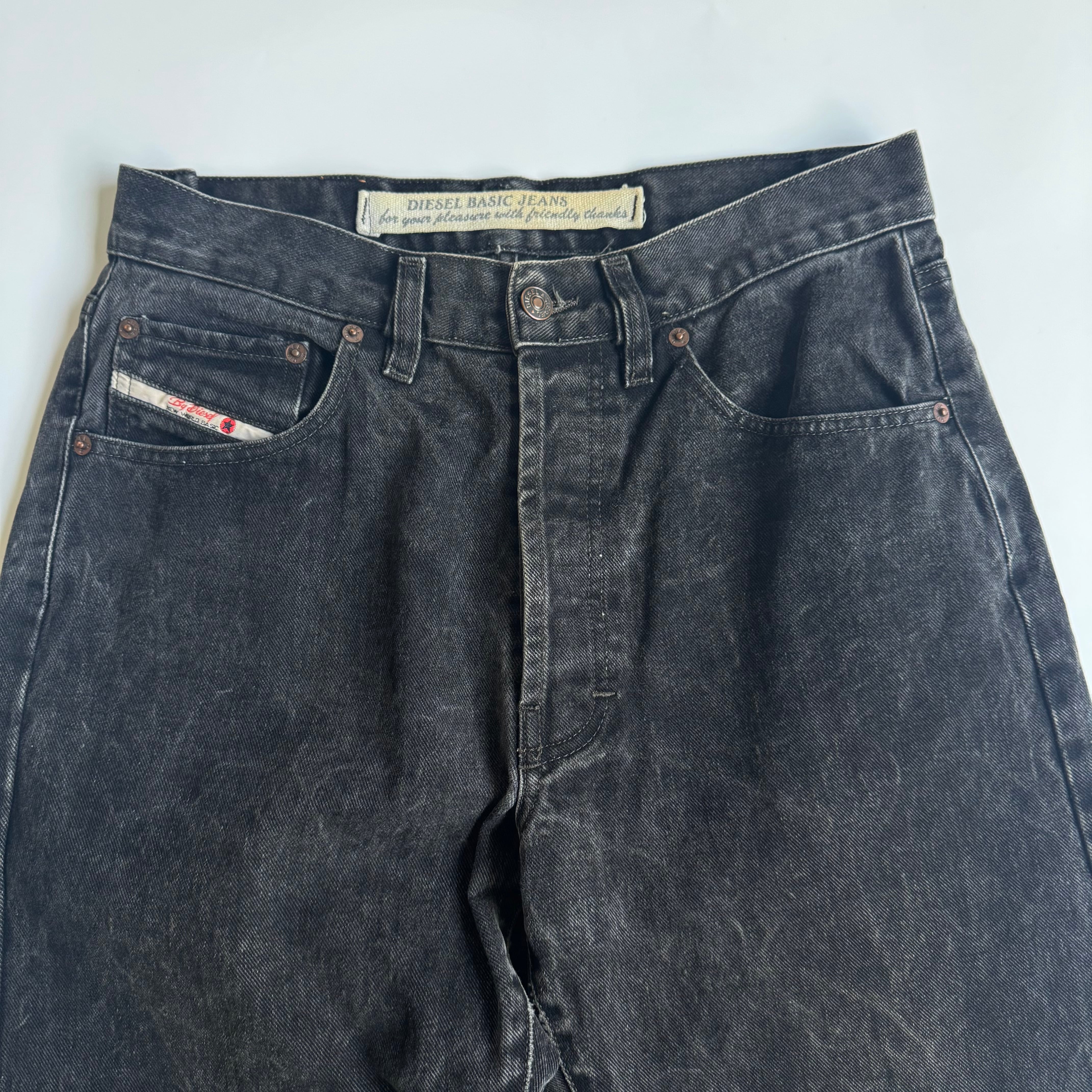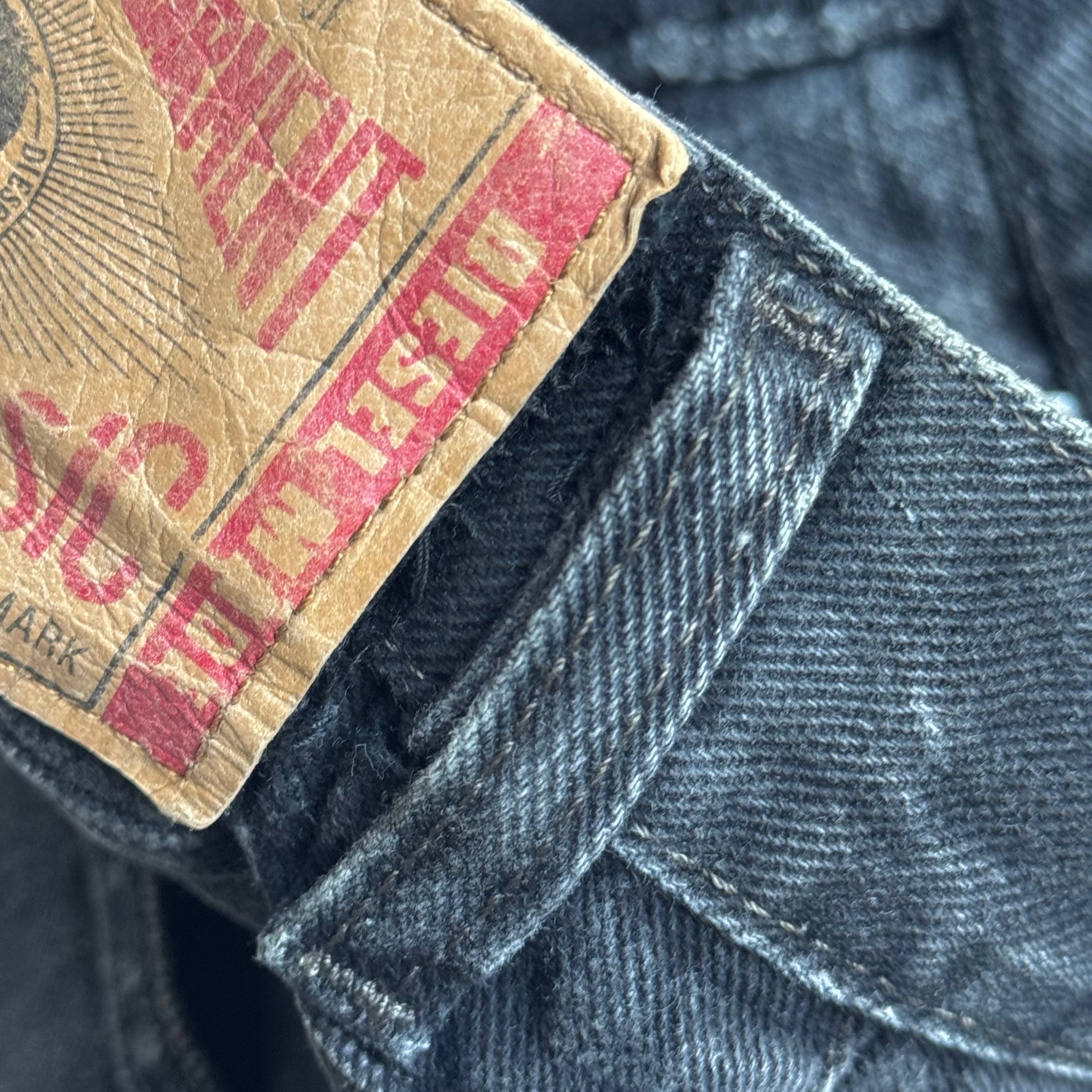 •SIZE 32 ウエスト 82cm 股上 29cm 股下 73.5cm わたり 30cm 裾幅 21.5cm •MATERIAL COTTON 100% •COLOR ブラック •CONDITION 使用感、背面に小さなダメージ、丈詰め痕、ウエスト詰め。写真にてご確認下さい。