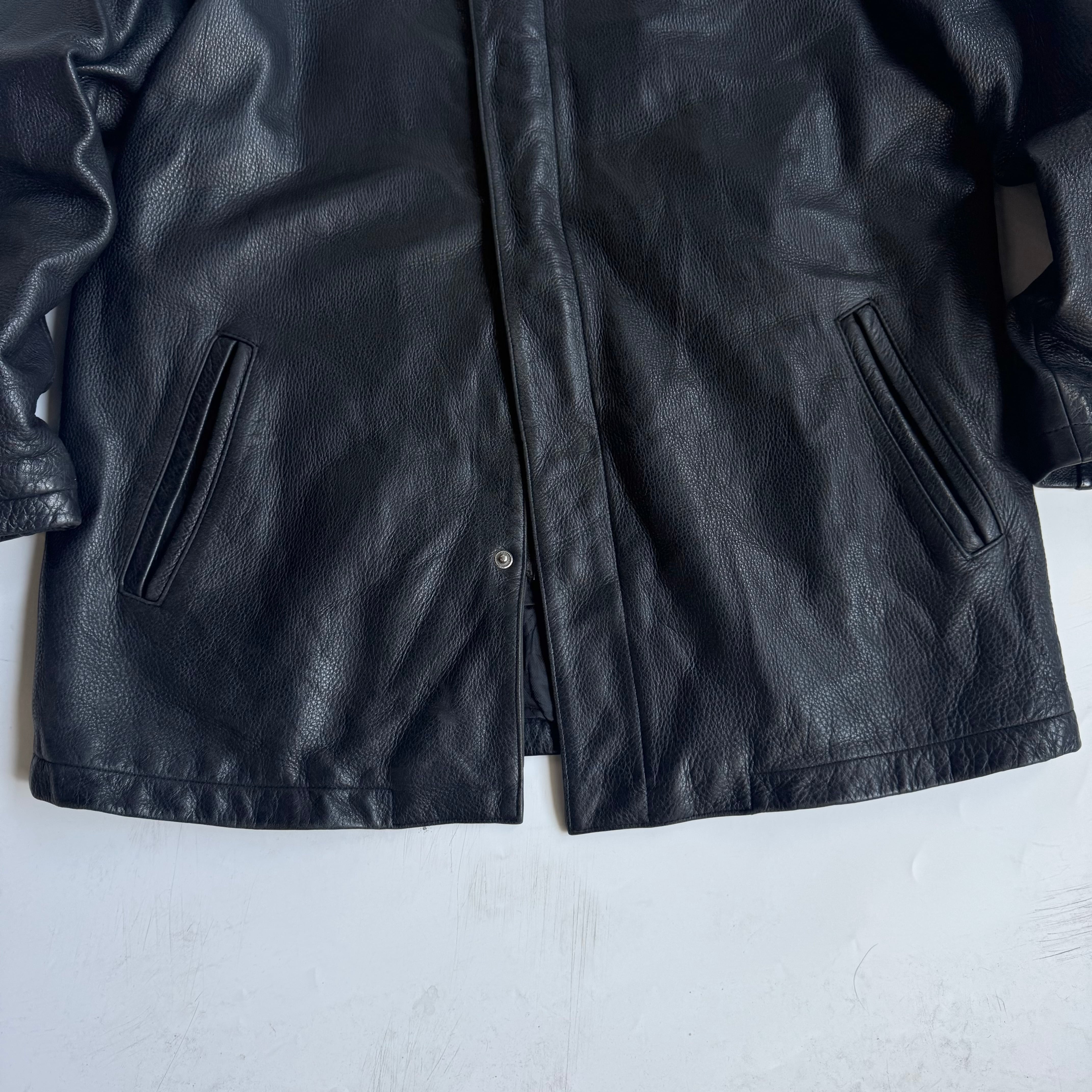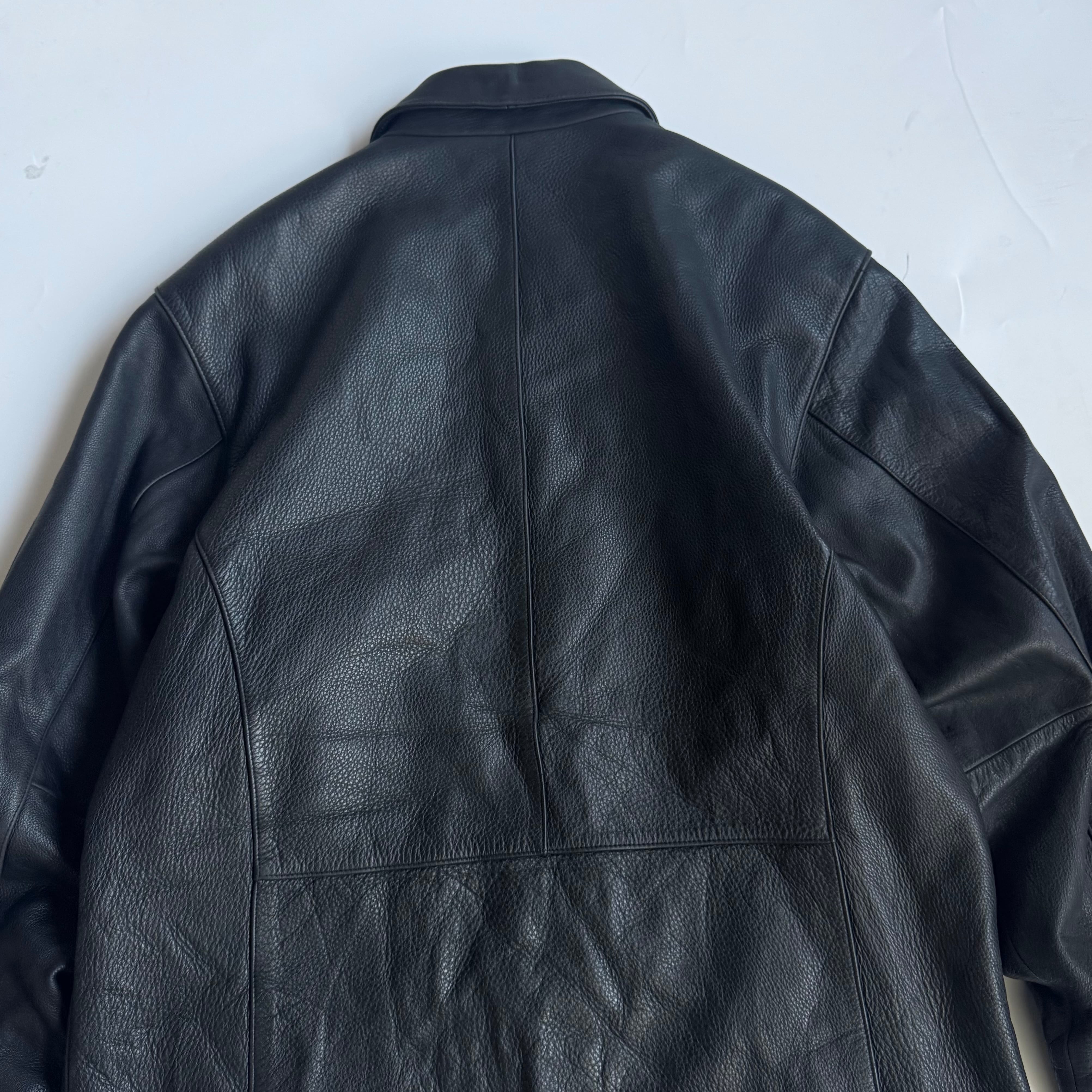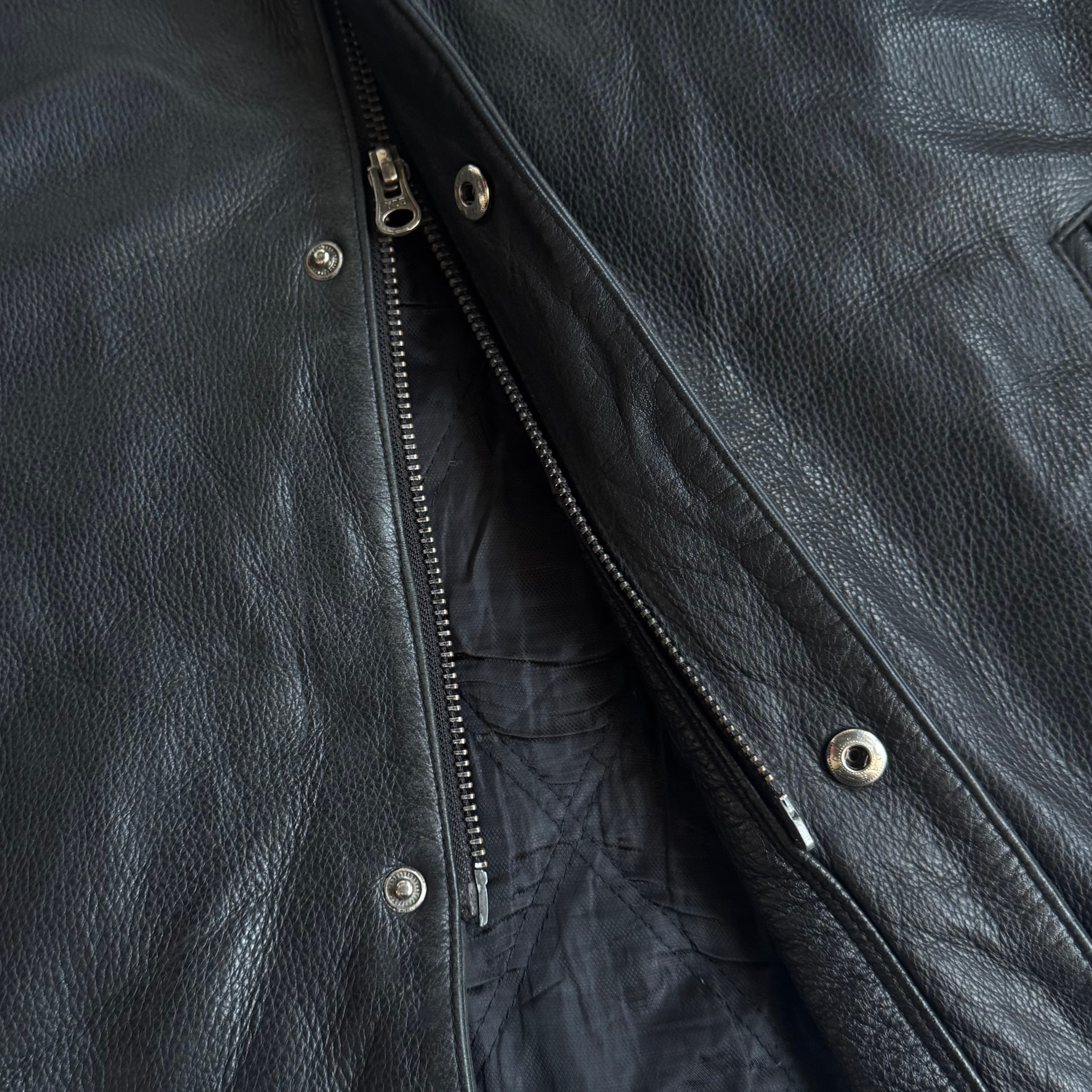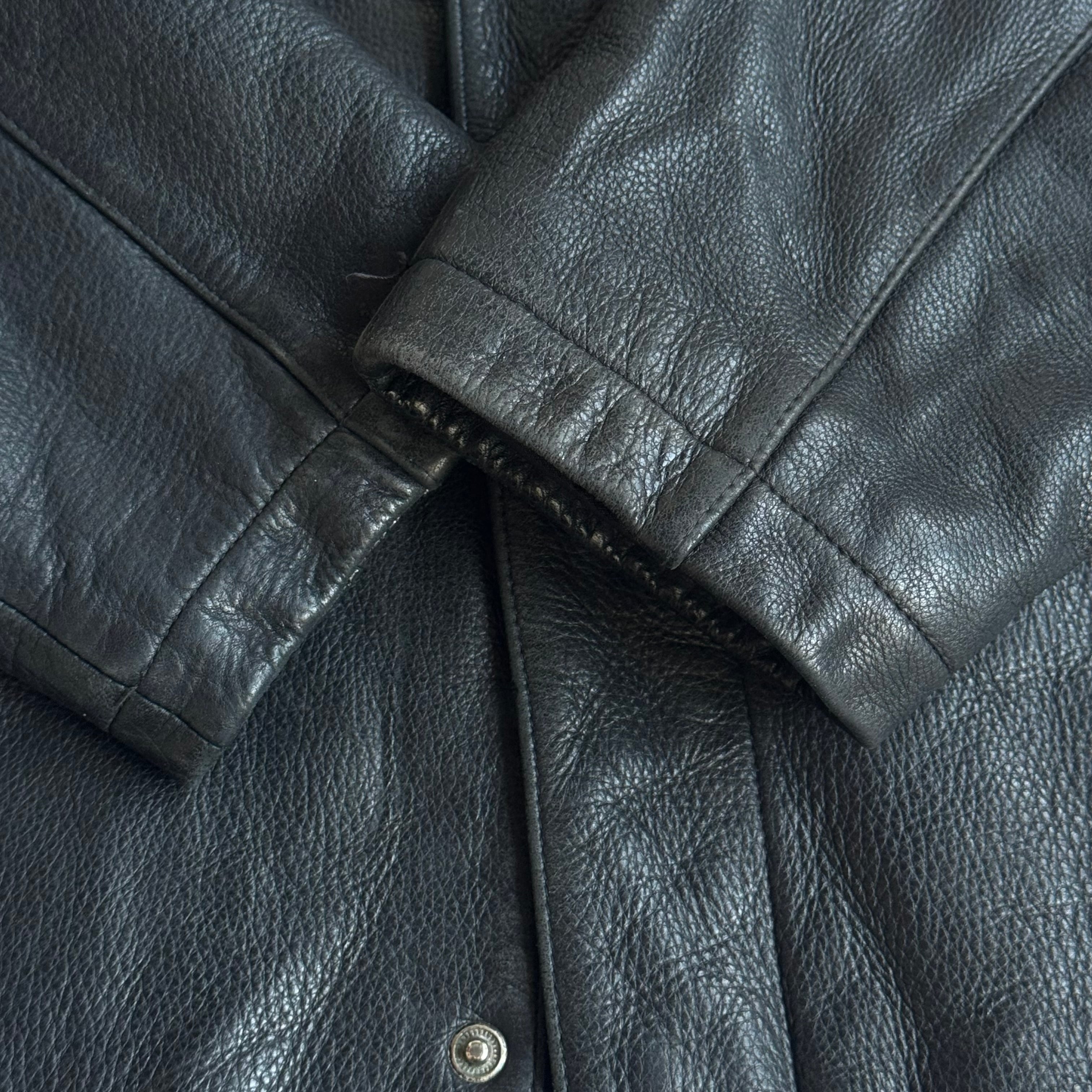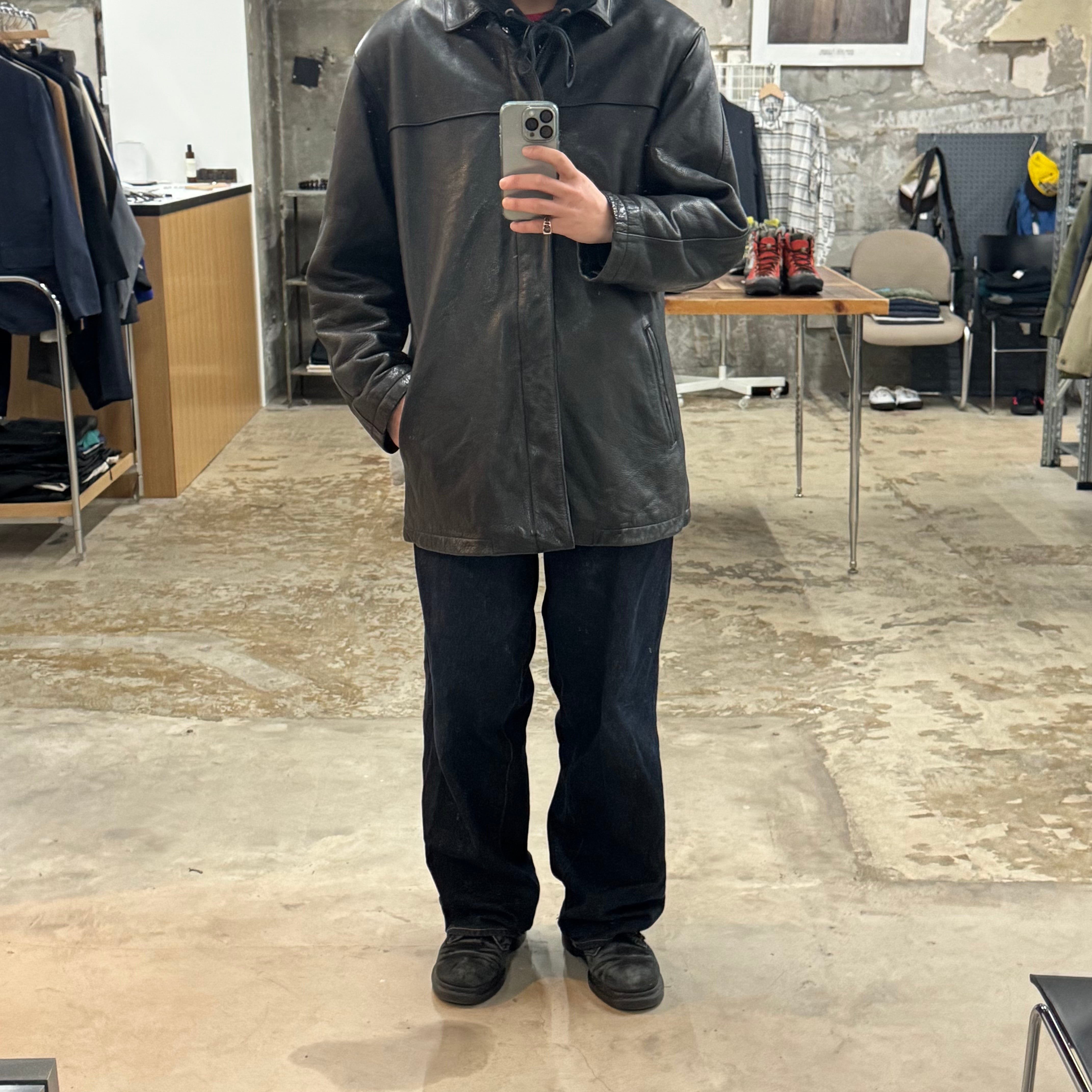 •SIZE M 肩幅 52cm 袖丈 62cm 身幅 61cm 着丈 81cm 175cm着用 •MATERIAL GENUINE LEATHER •COLOR ブラック •CONDITION 使用感、小さなダメージ。 写真にてご確認ください。 ya6506