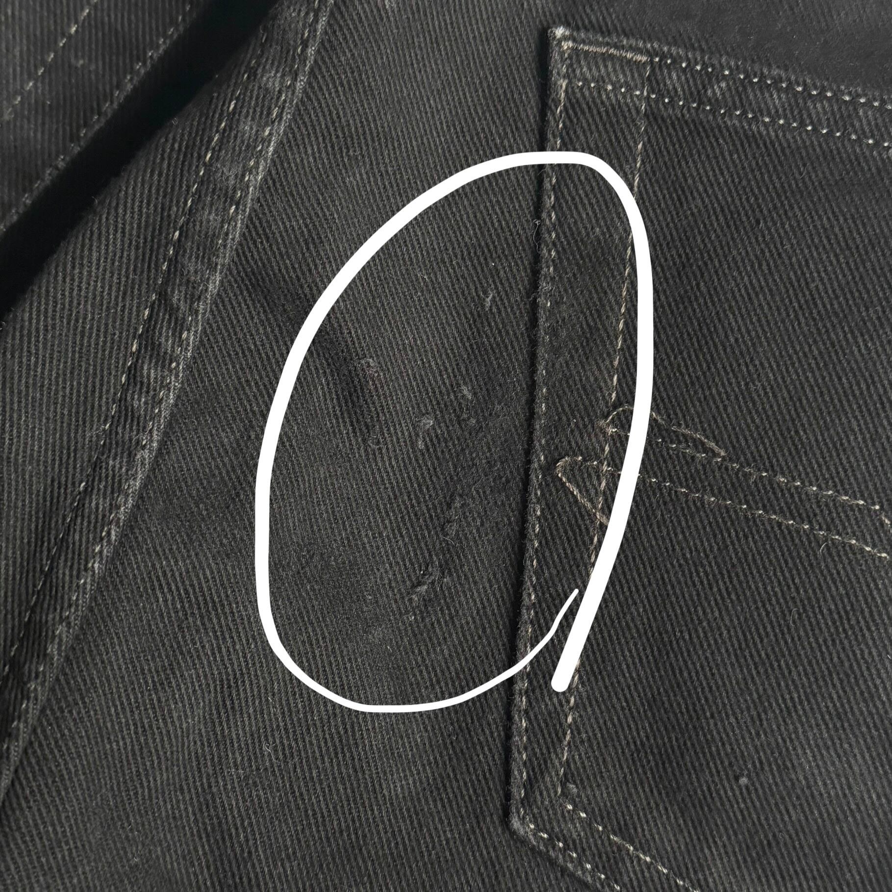 •SIZE ウエスト 86cm 股上 28.5cm 股下 77cm わたり 31cm 裾幅 21.5cm •MATERIAL COTTON 100% •COLOR ブラック •CONDITION 使用感、アタリ、ヒップあたりに小さなダメージ。写真にてご確認下さい。