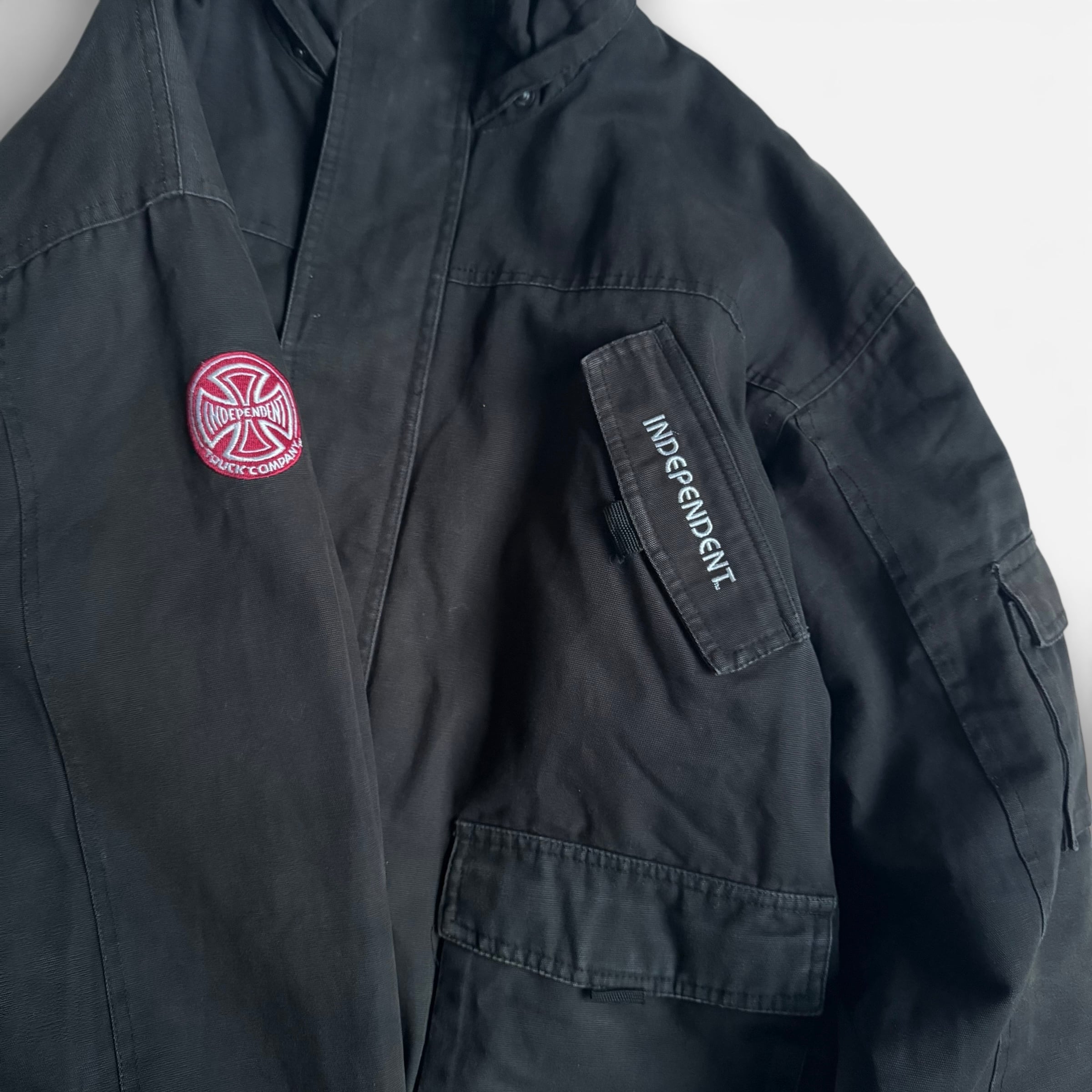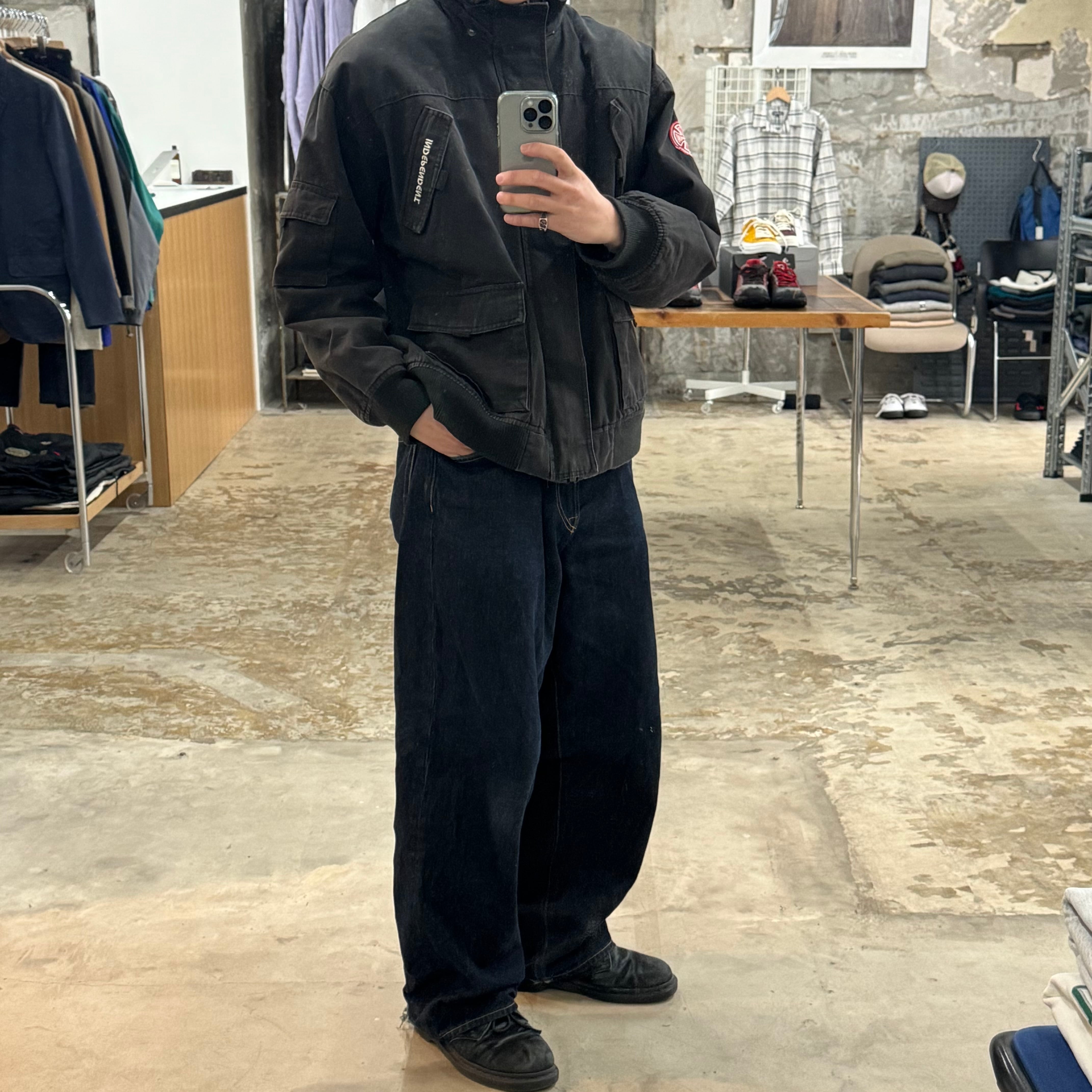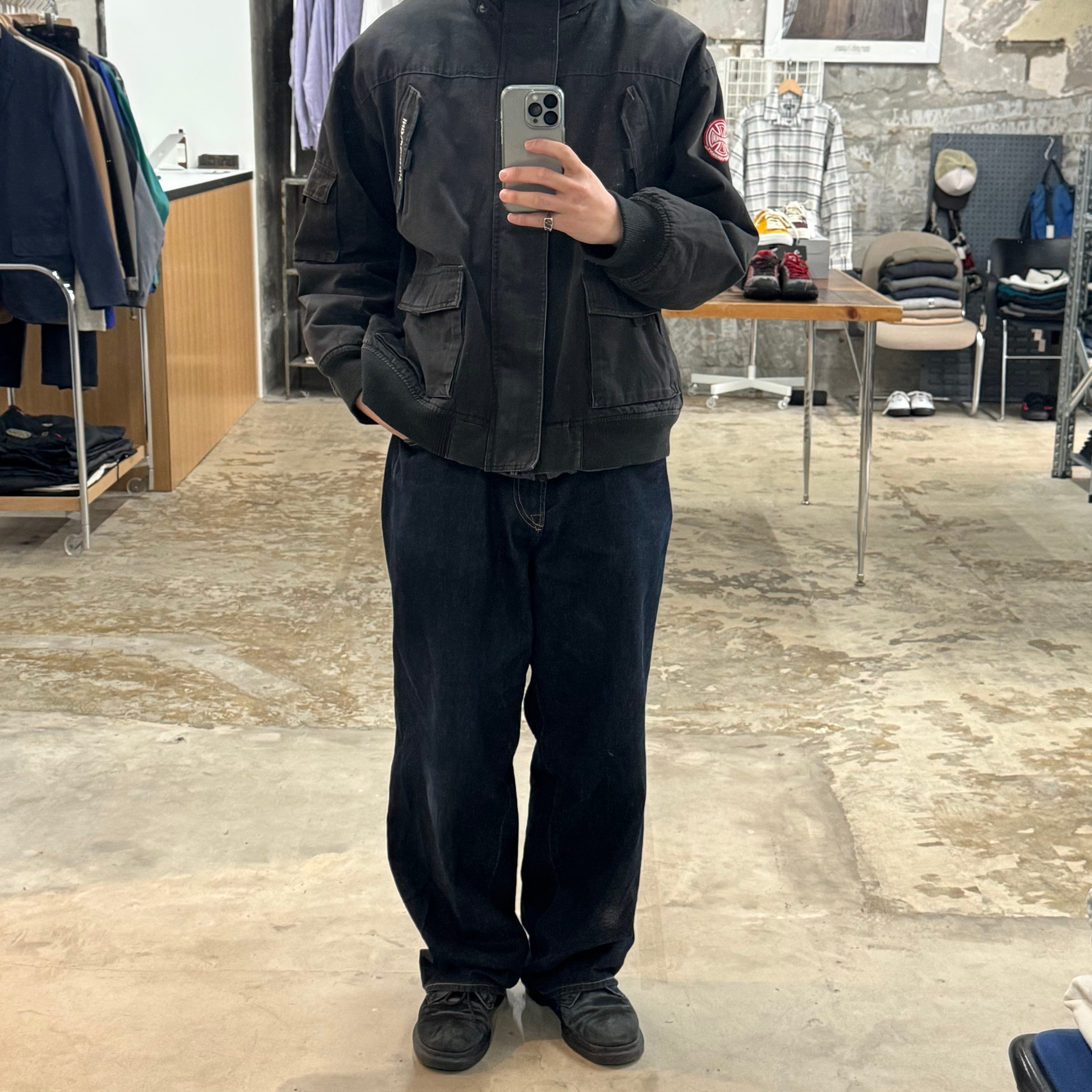 •SIZE 表記不明 肩幅 59cm 袖丈 58.5cm 身幅 66cm 着丈 65.5cm 175cm着用 •MATERIAL 恐らく COTTON POLYESTER NYLON •COLOR ブラック •CONDITION 使用感、生地にヤケ感、フードの欠品。写真にてご確認下さい。 m1053