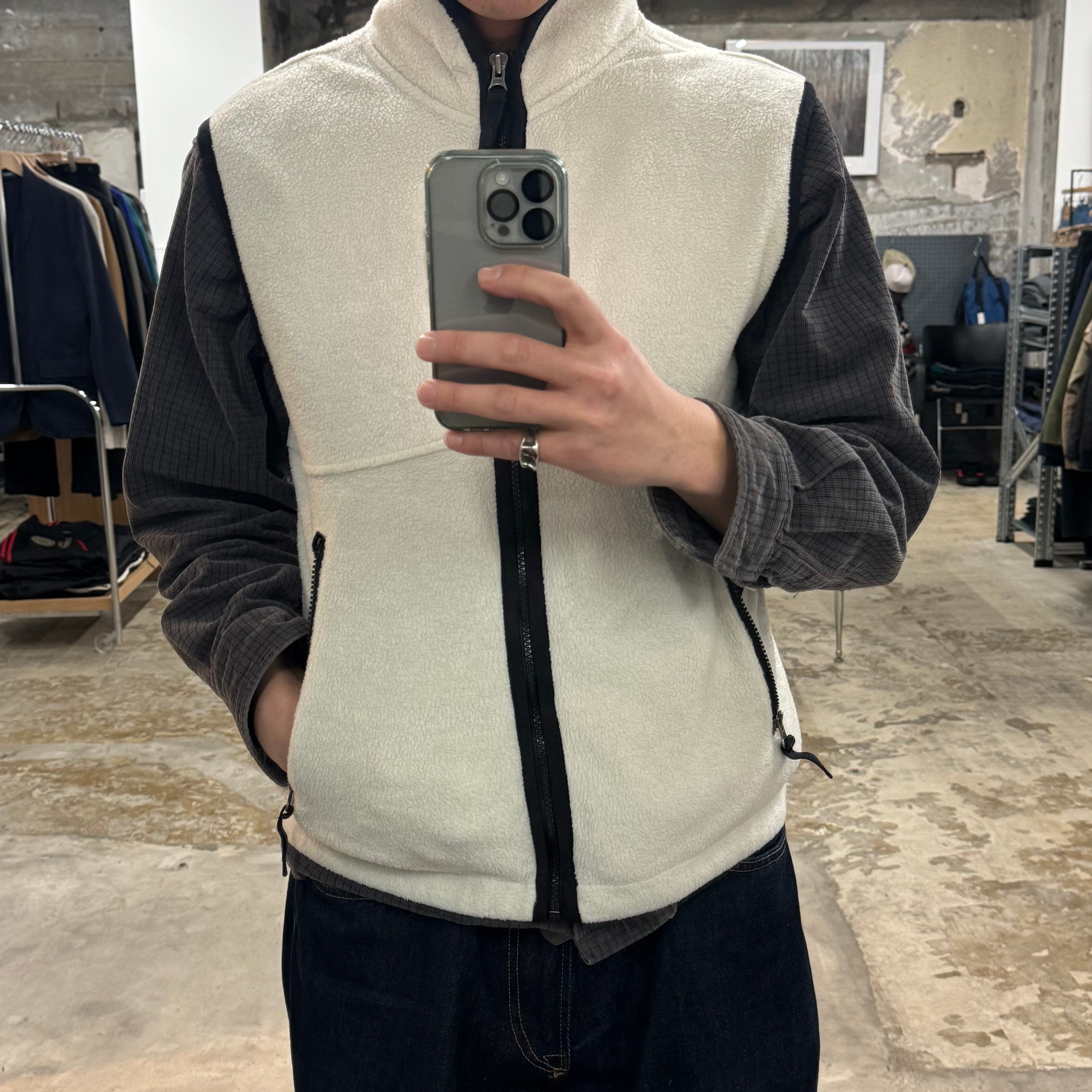 •SIZE S 肩幅 47cm 身幅 52cm 着丈 70cm 175cm着用 •MATERIAL POLYESTER 100% •COLOR ホワイト系 •CONDITION 使用感はございますが、目立った傷や汚れ等はございません。 f808