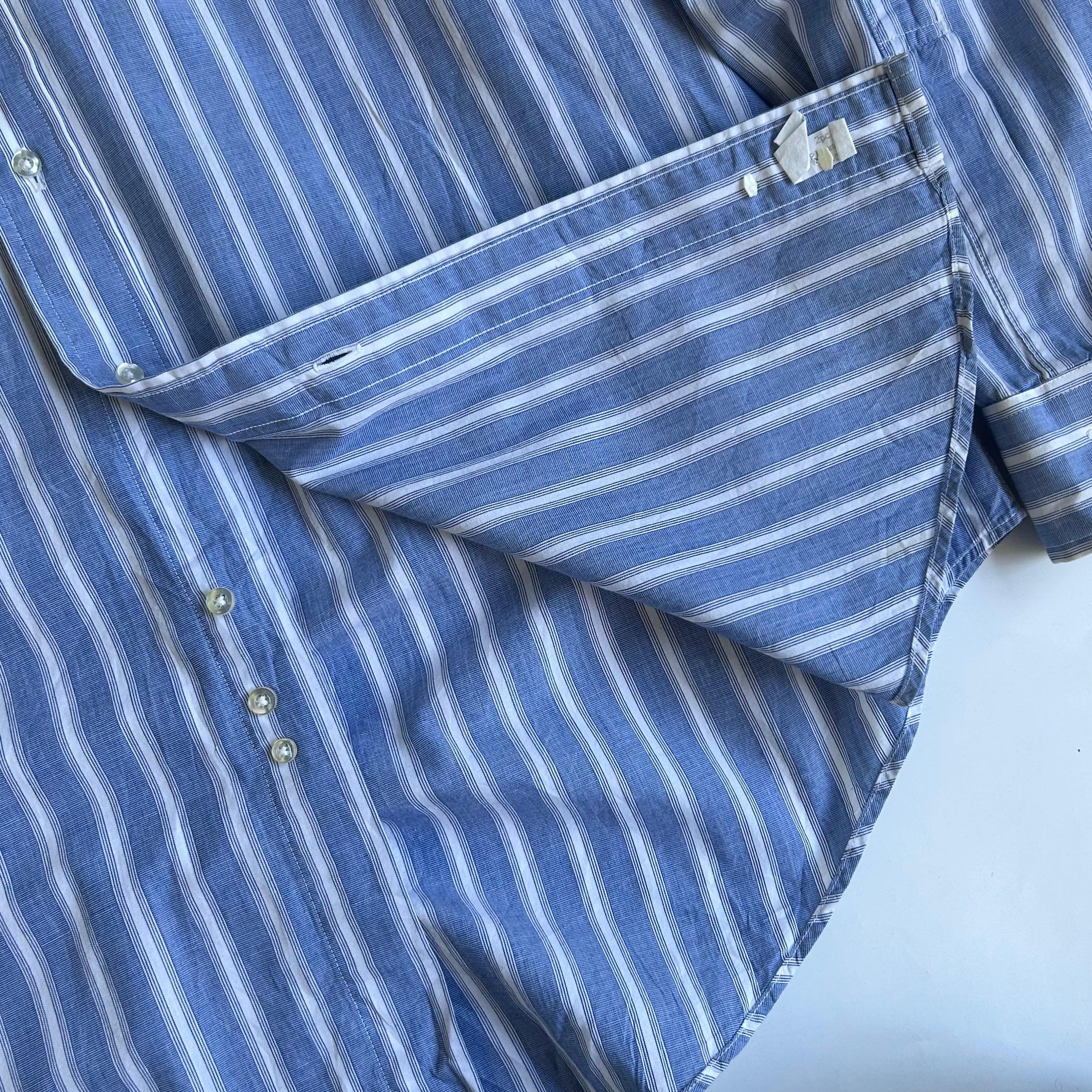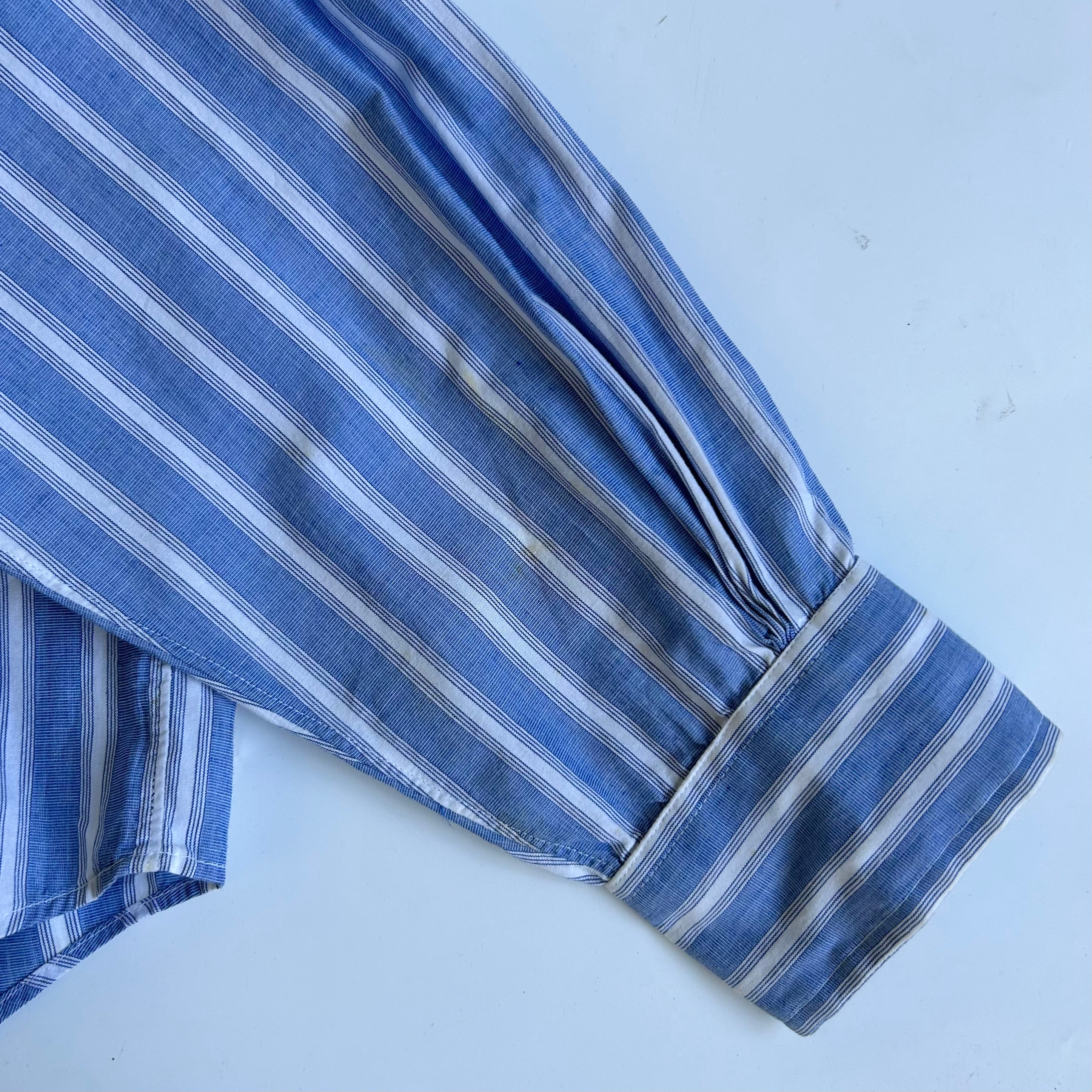 •SIZE 15-3 肩幅 43.5cm 袖丈 61.5cm 身幅 60.5cm 着丈 80cm •MATERIAL Cotton100% •COLOR ライトブルー ホワイト •CONDITION 数箇所シミあり 写真参照 ya6551