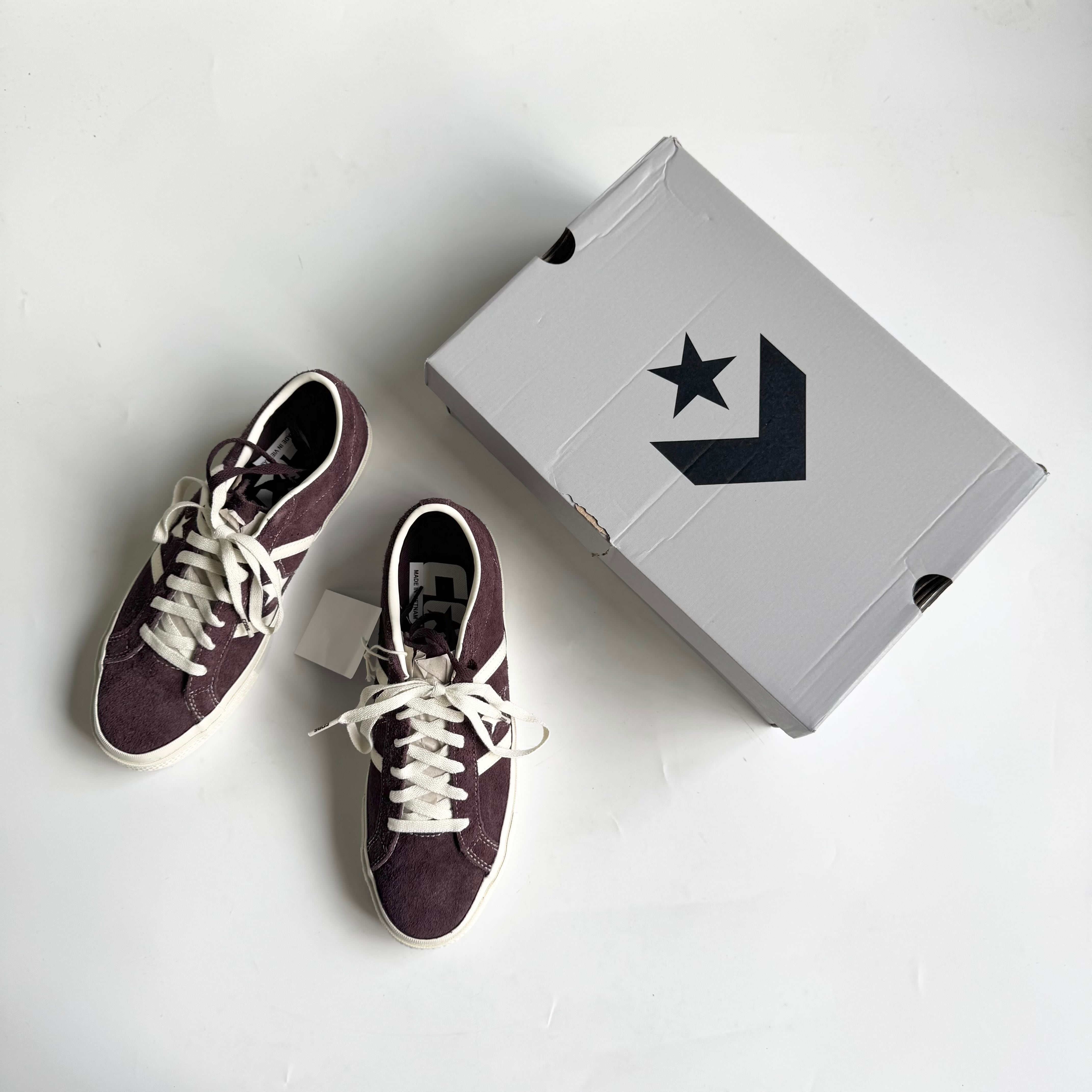 •SIZE US 9.5 27.5cm •MATERIAL SUEDE •COLOR ワインレッド ボルドー系 •CONDITION デッドストック。 箱にダメージ。
