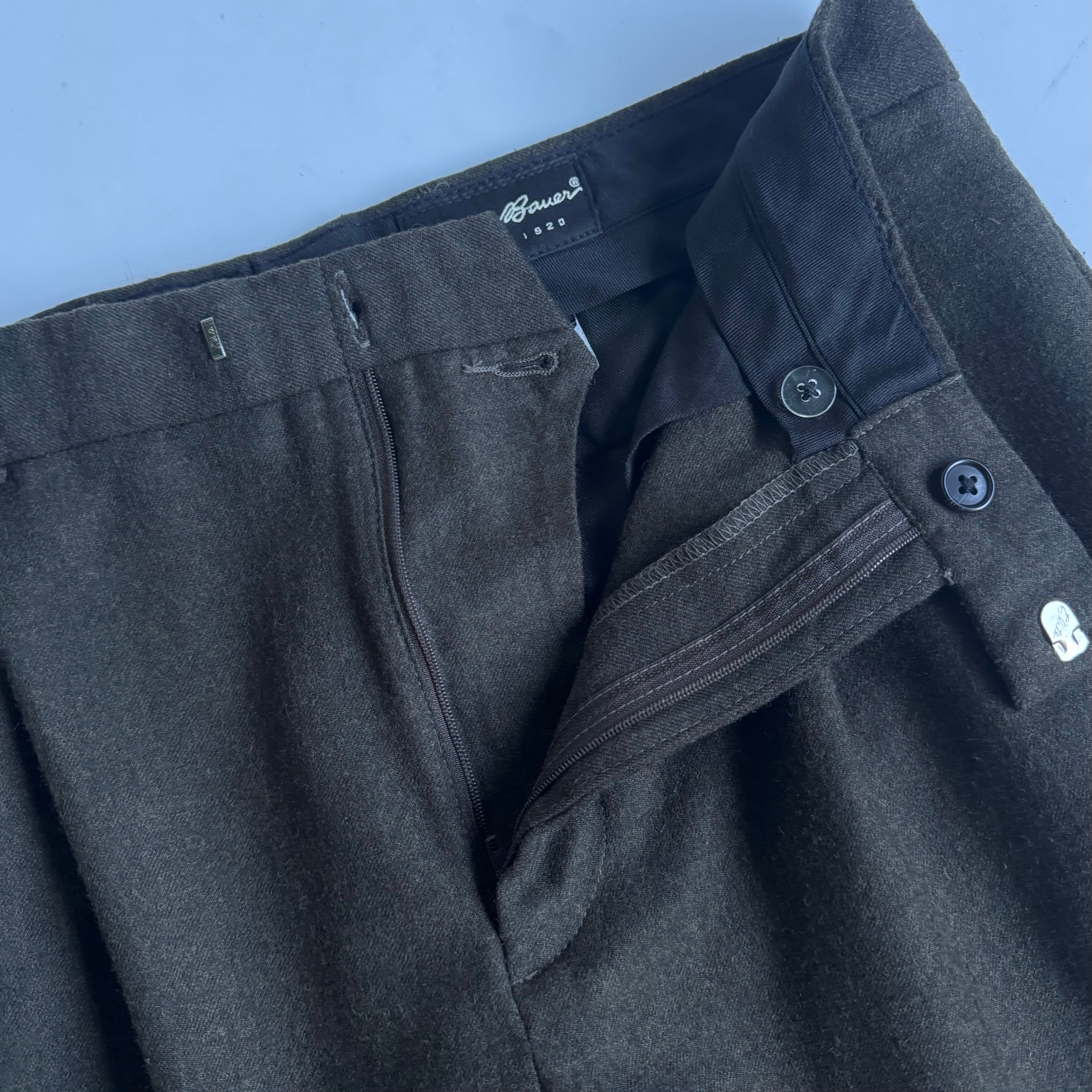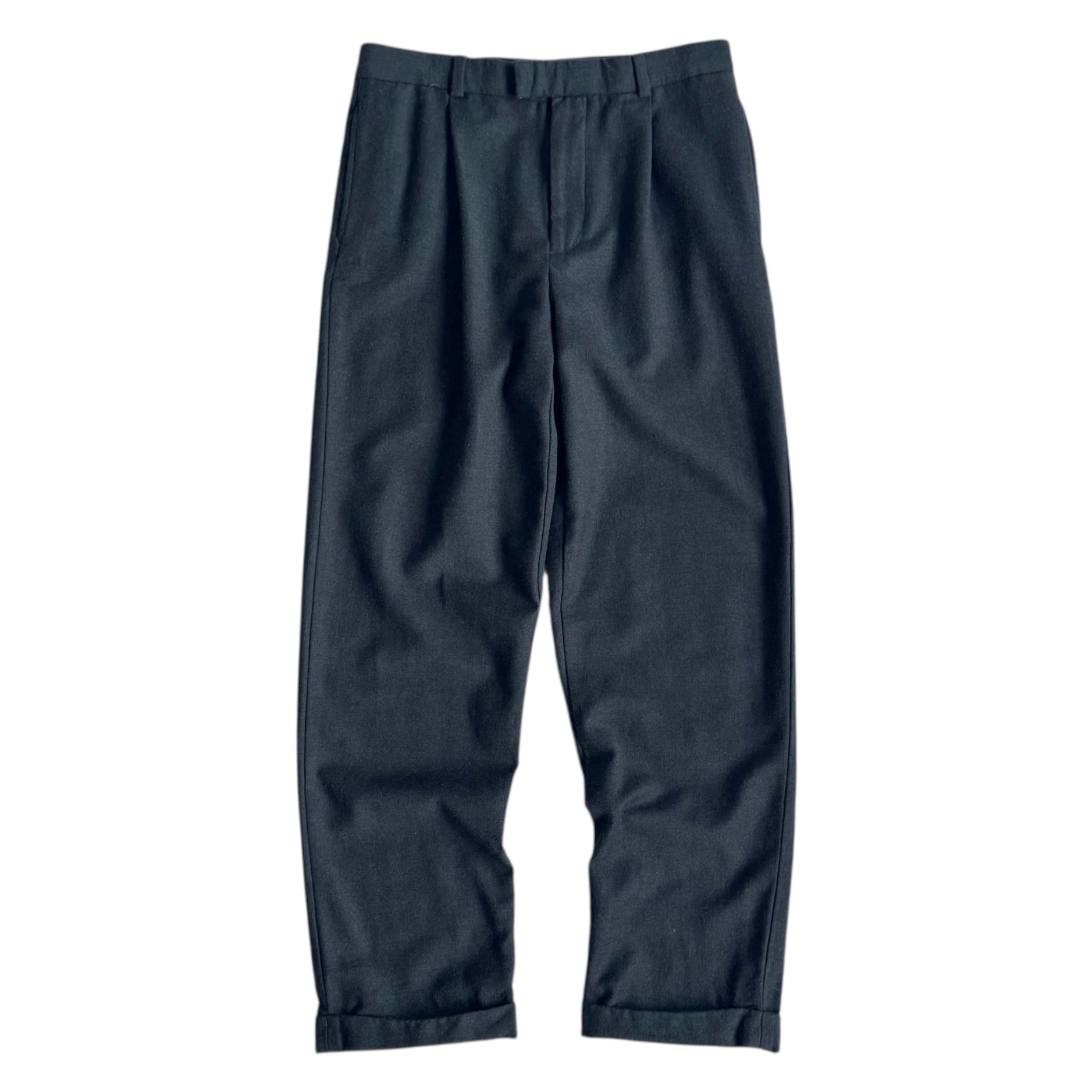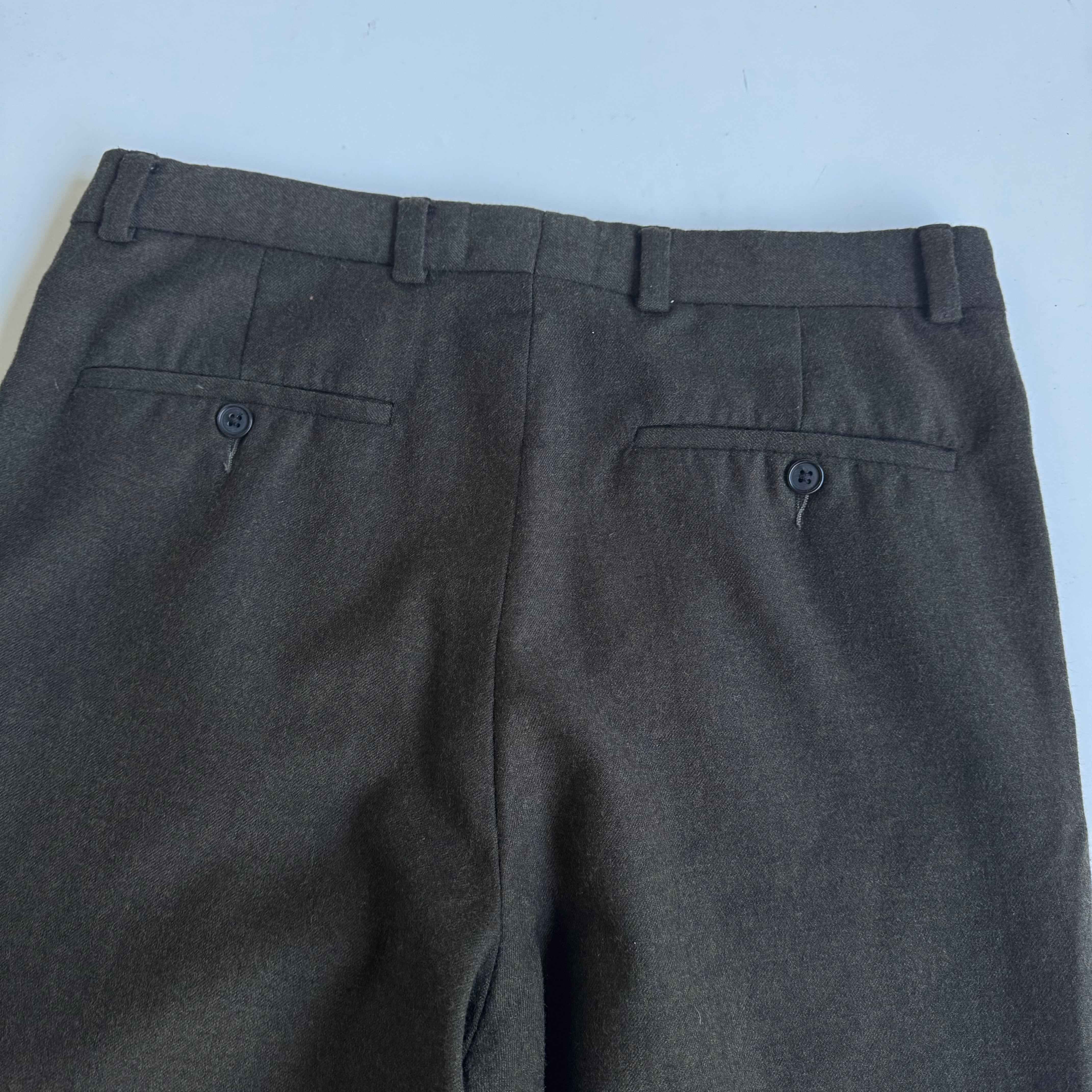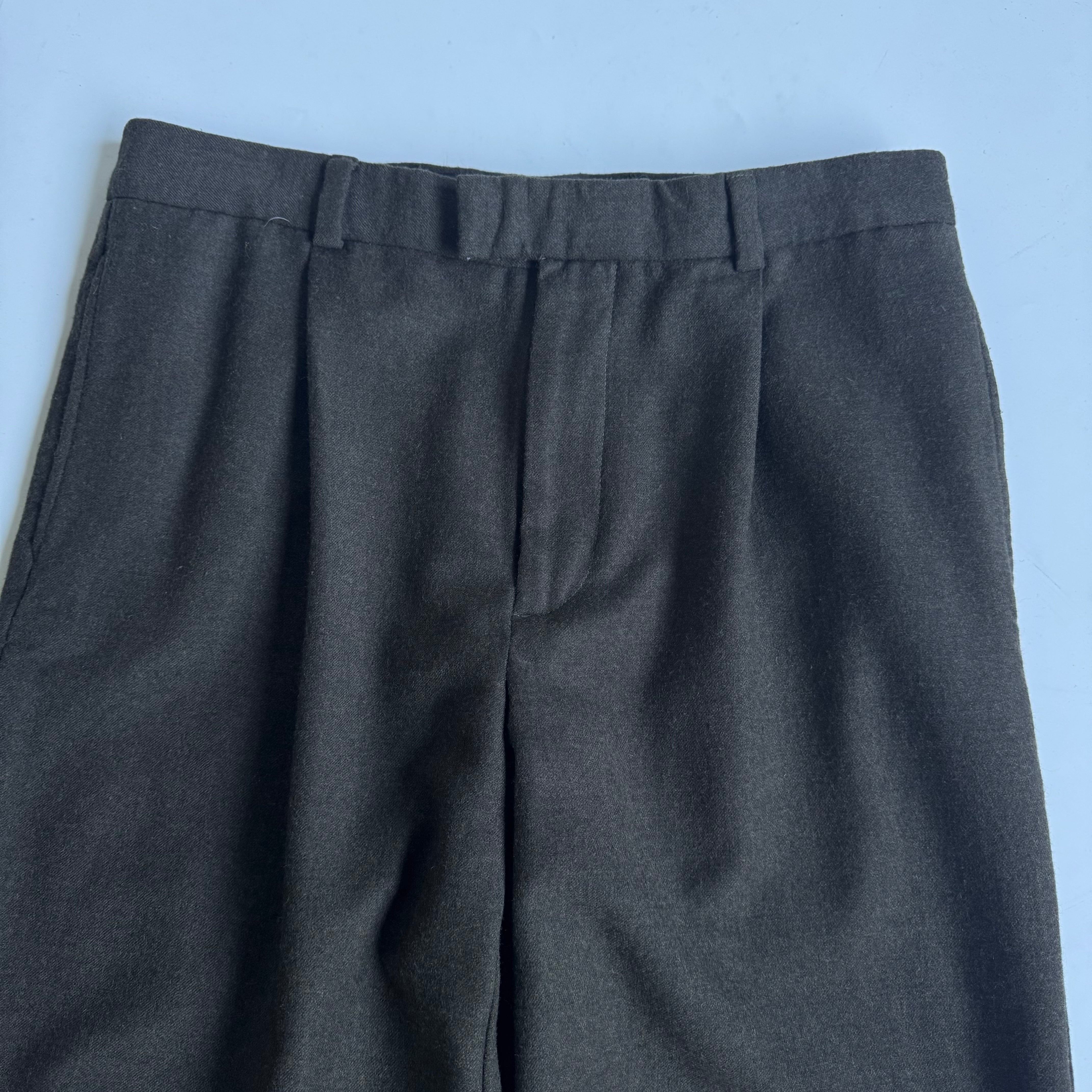 •SIZE 33×32 ウエスト 83cm 股上 29.5cm 股下 78.5cm 渡り 28.5cm 175cm着用 裾幅 21cm •MATERIAL WOOL 100% •COLOR グリーンブラウン系 •CONDITION 使用感はございますが、目立った汚れやダメージはございません。
