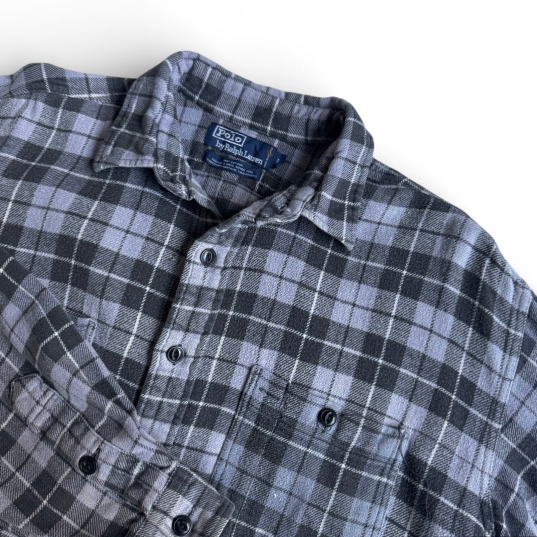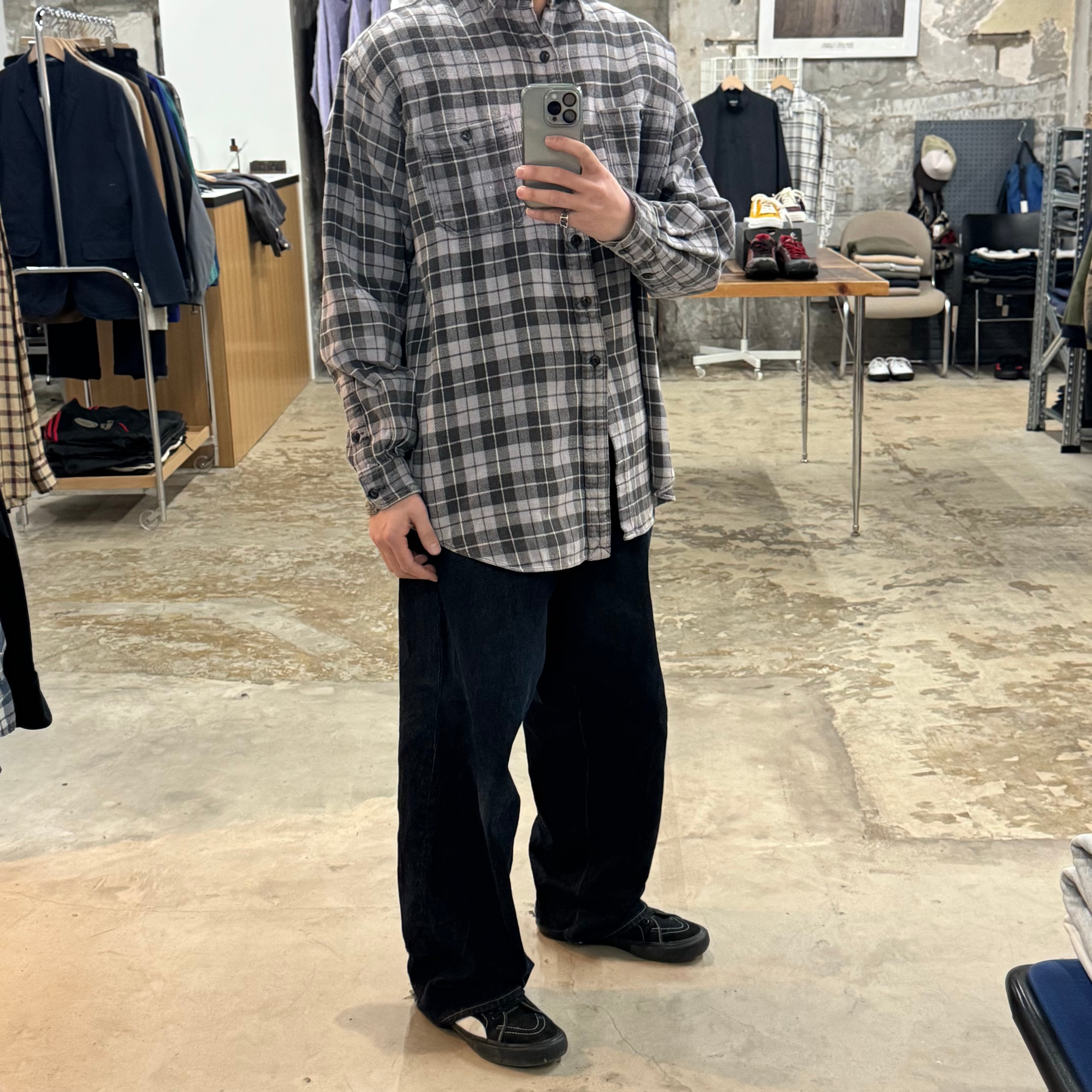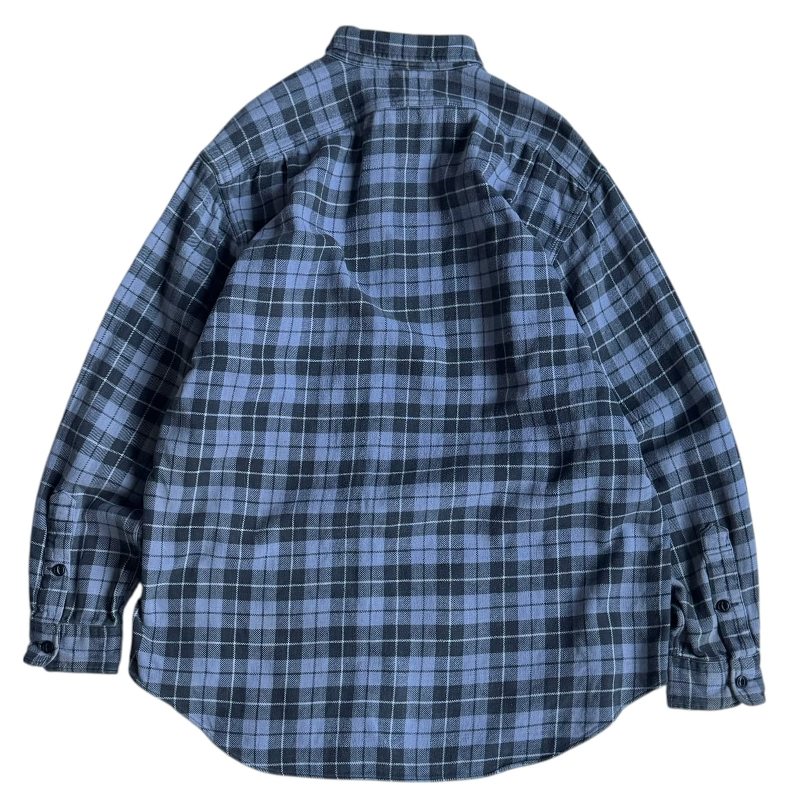 •SIZE L 肩幅 53cm 袖丈 63.5cm 身幅 69cm 着丈 86cm 175cm着用 •MATERIAL COTTON 100% •COLOR ブルーグレー系 ブラック •CONDITION 所々に小さなダメージや汚れ。 写真にてご確認下さい。 gar2827