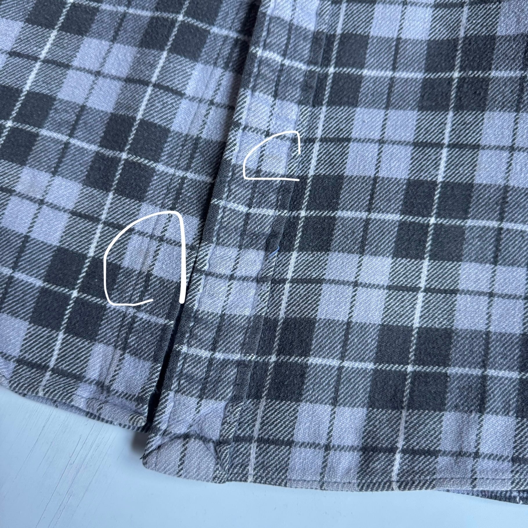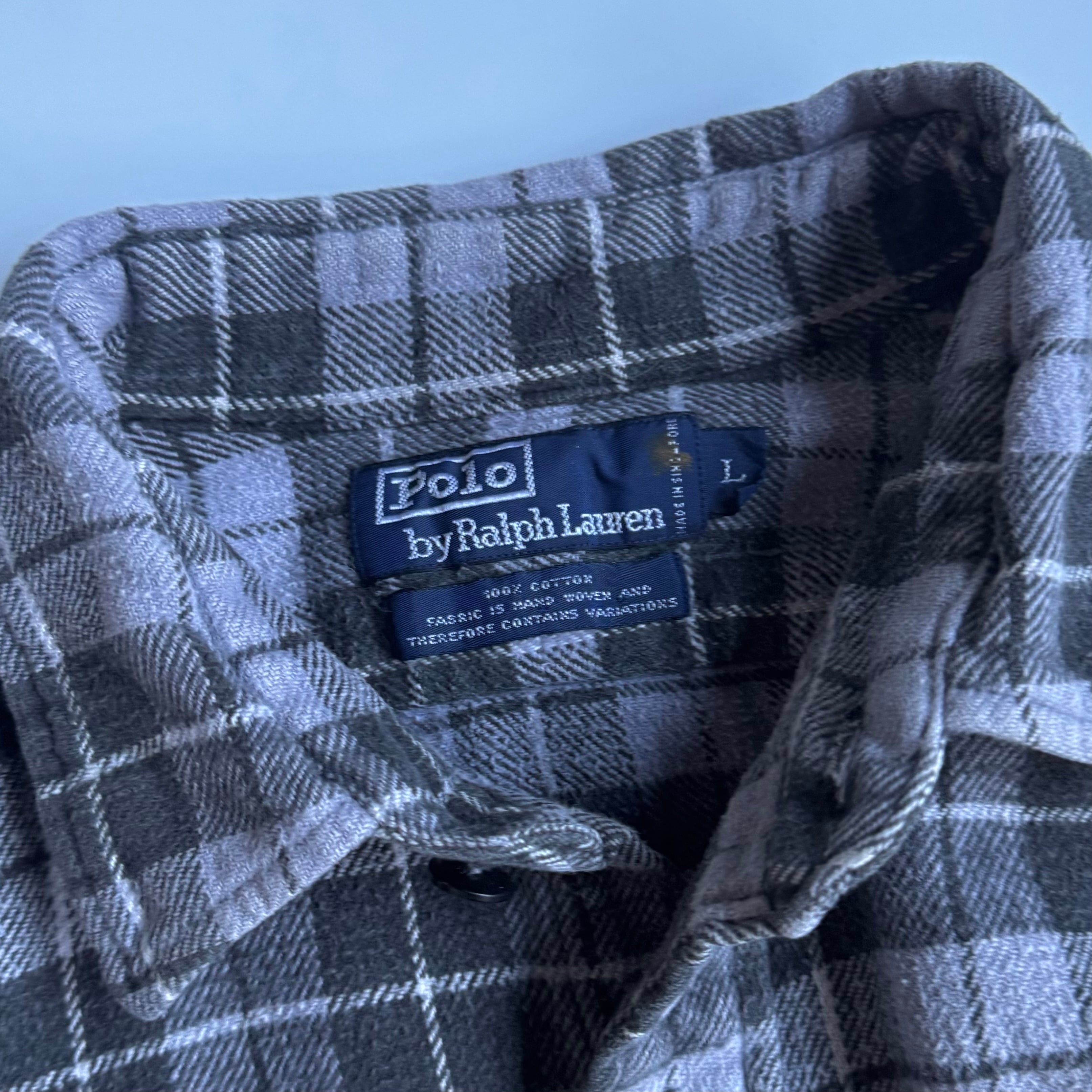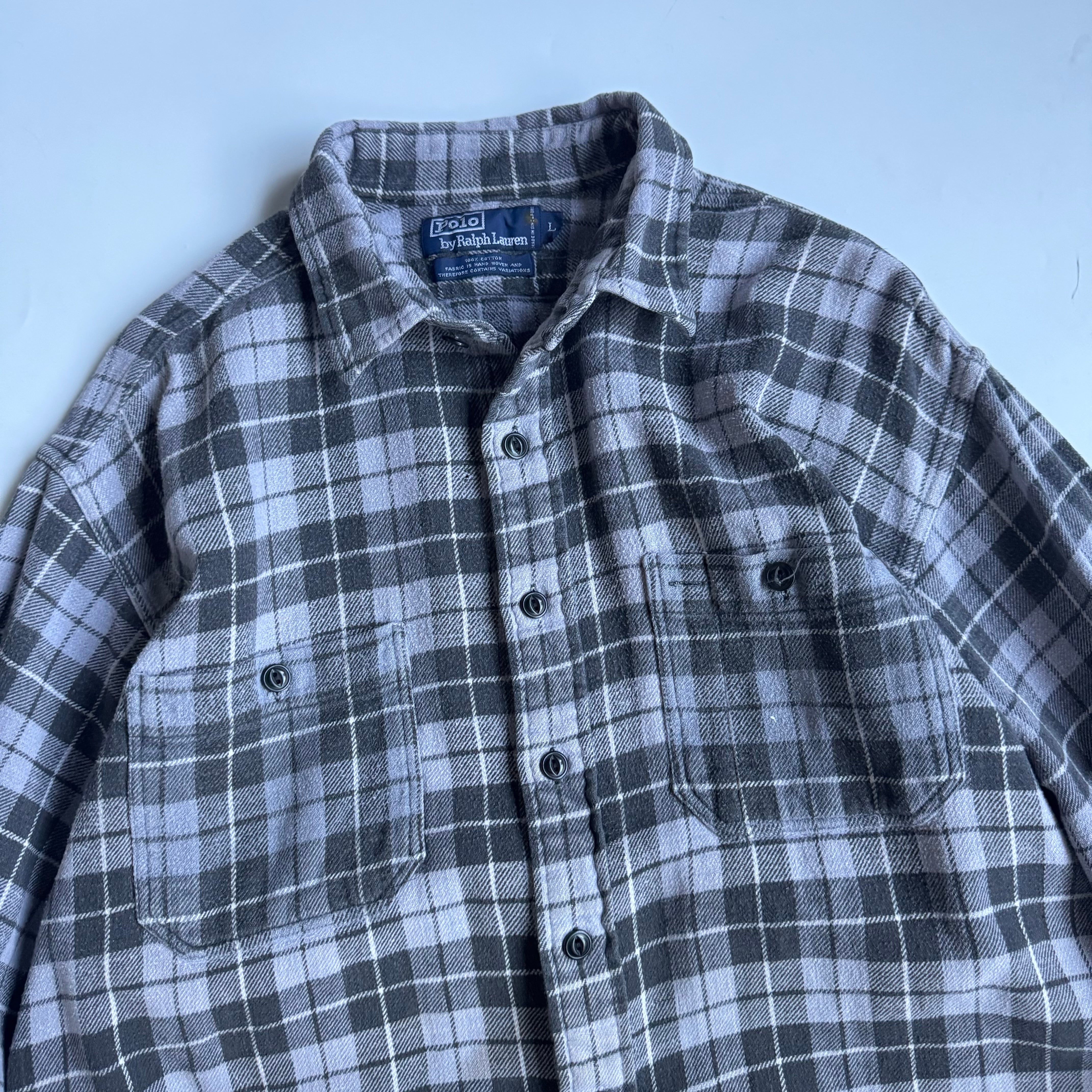 •SIZE L 肩幅 53cm 袖丈 63.5cm 身幅 69cm 着丈 86cm 175cm着用 •MATERIAL COTTON 100% •COLOR ブルーグレー系 ブラック •CONDITION 所々に小さなダメージや汚れ。 写真にてご確認下さい。 gar2827