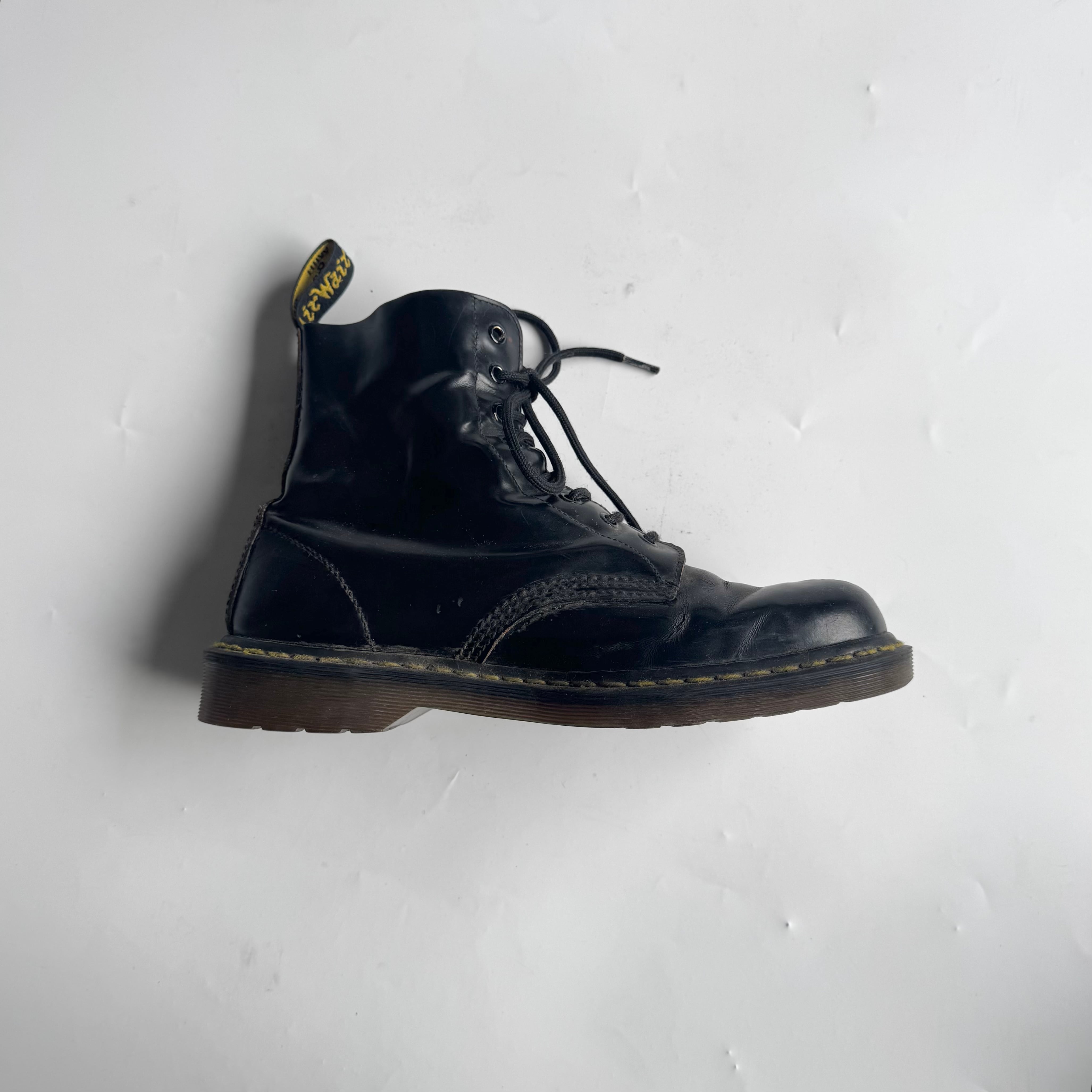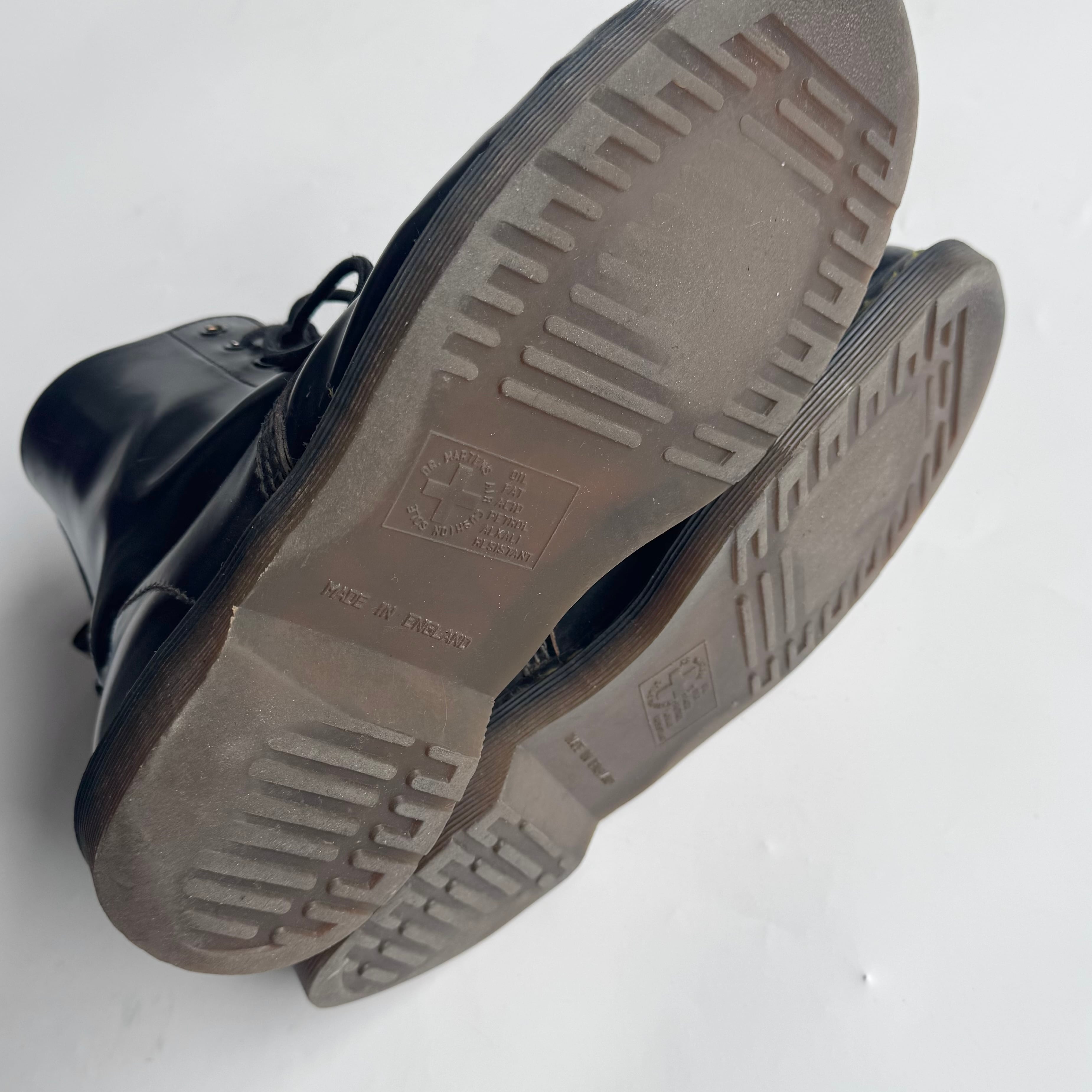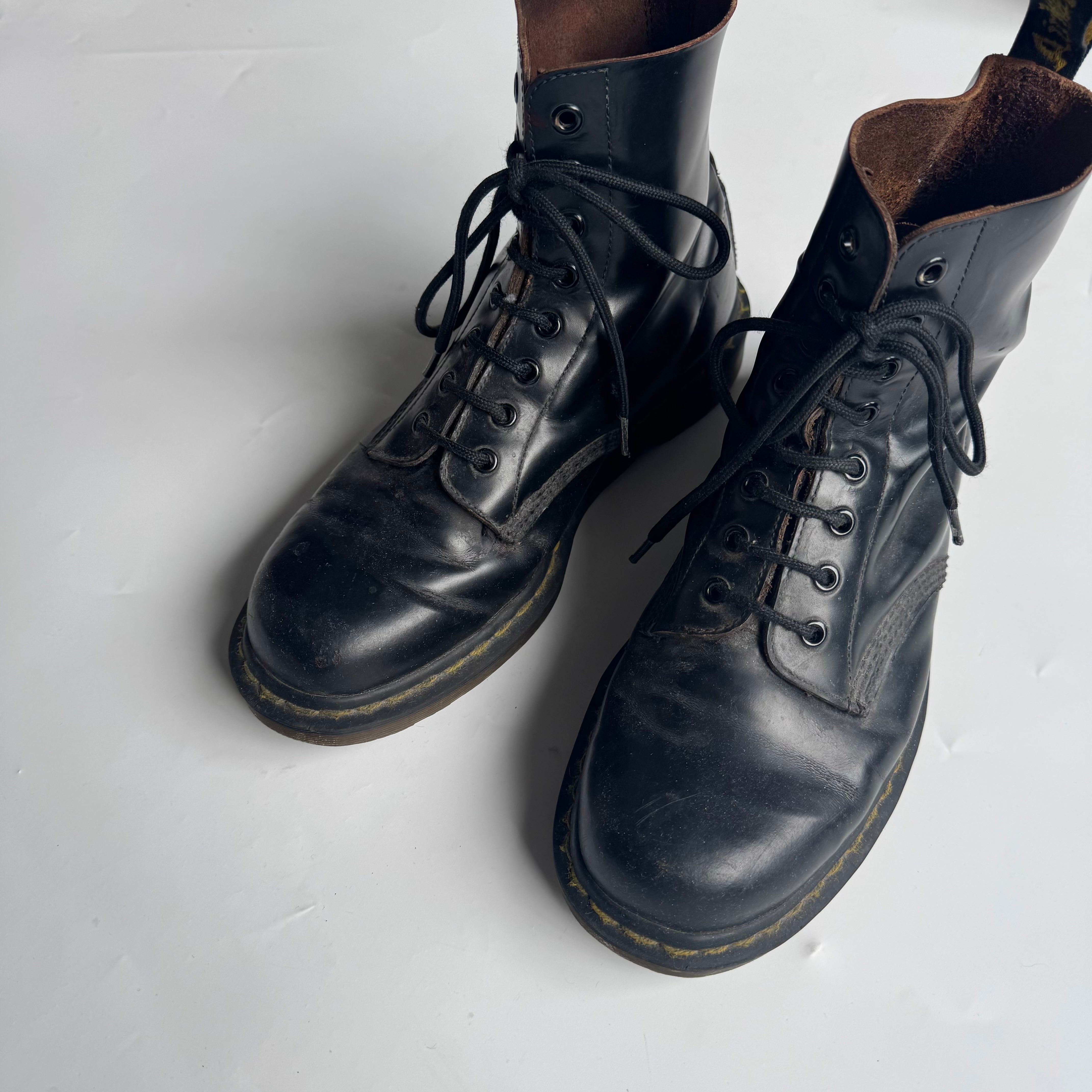 イングランド製の8ホール ukロックやパンクス カルチャー好きはもちろん アメリカ古着との相性も◎ •SIZE 表記不明 恐らく26.5~27cm 普段26.5のスタッフが着用、 キツくなく少し余るフィット感。 •MATERIAL LEATHER •COLOR ブラック •CONDITION 使用感、履きシワ、ソールの擦れ。 f827