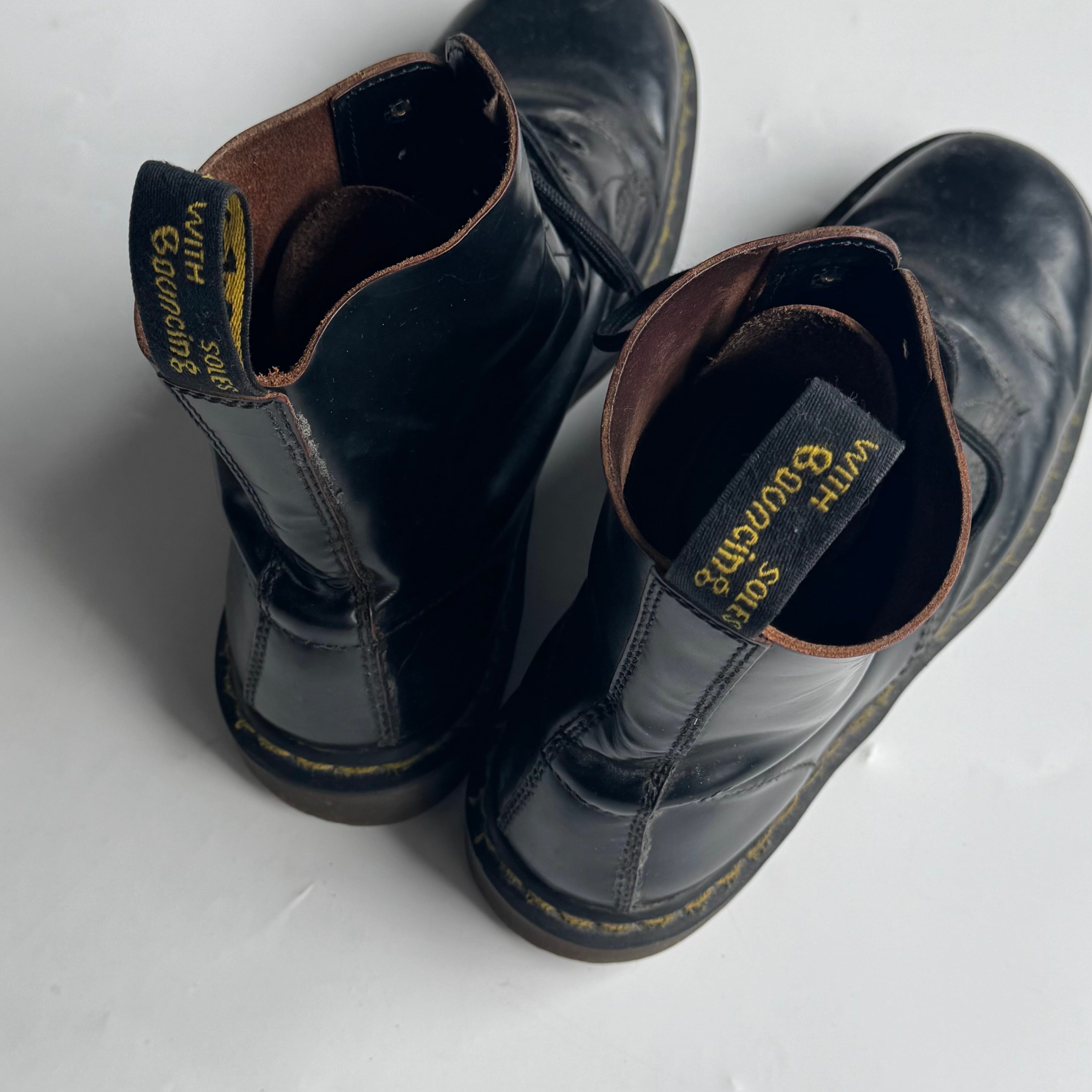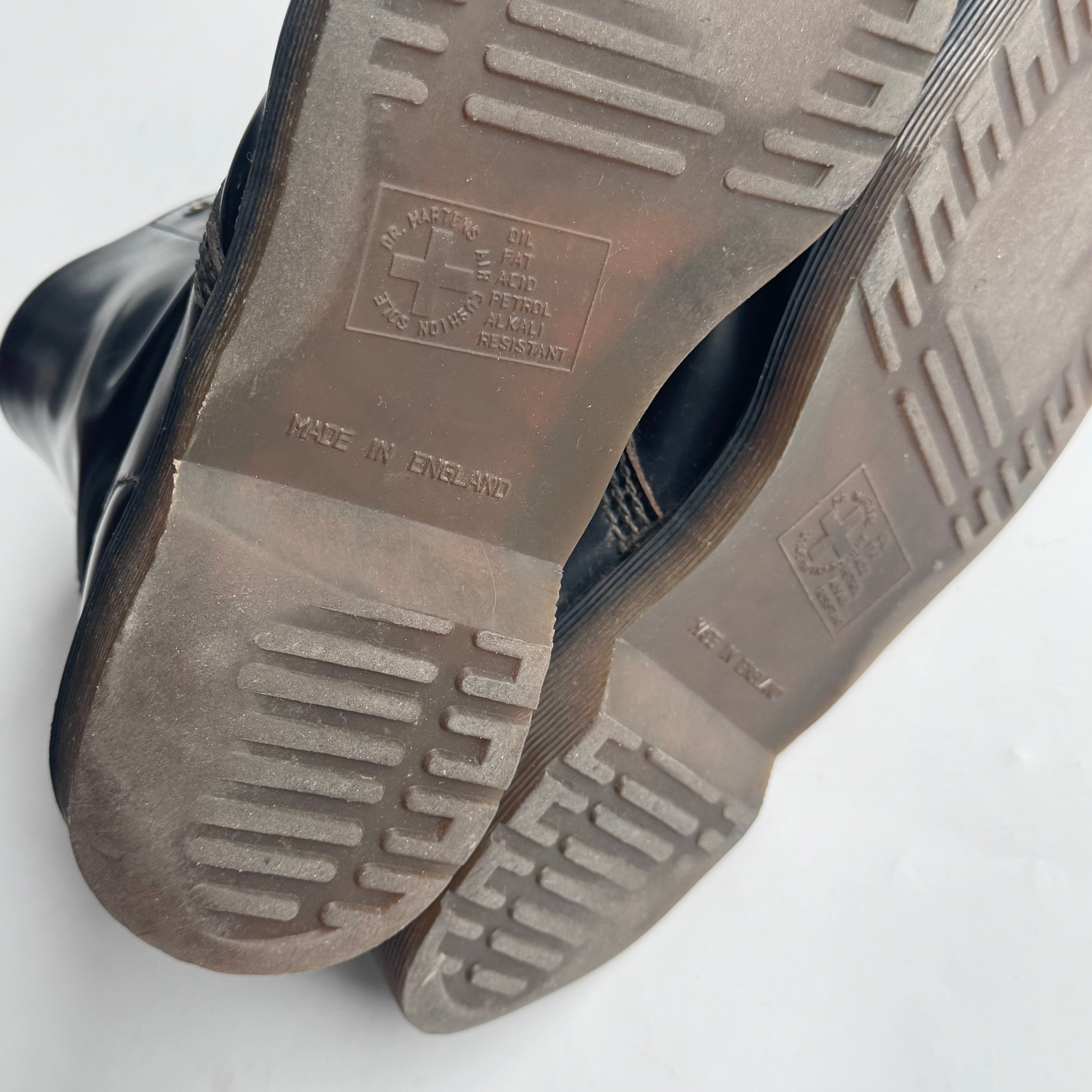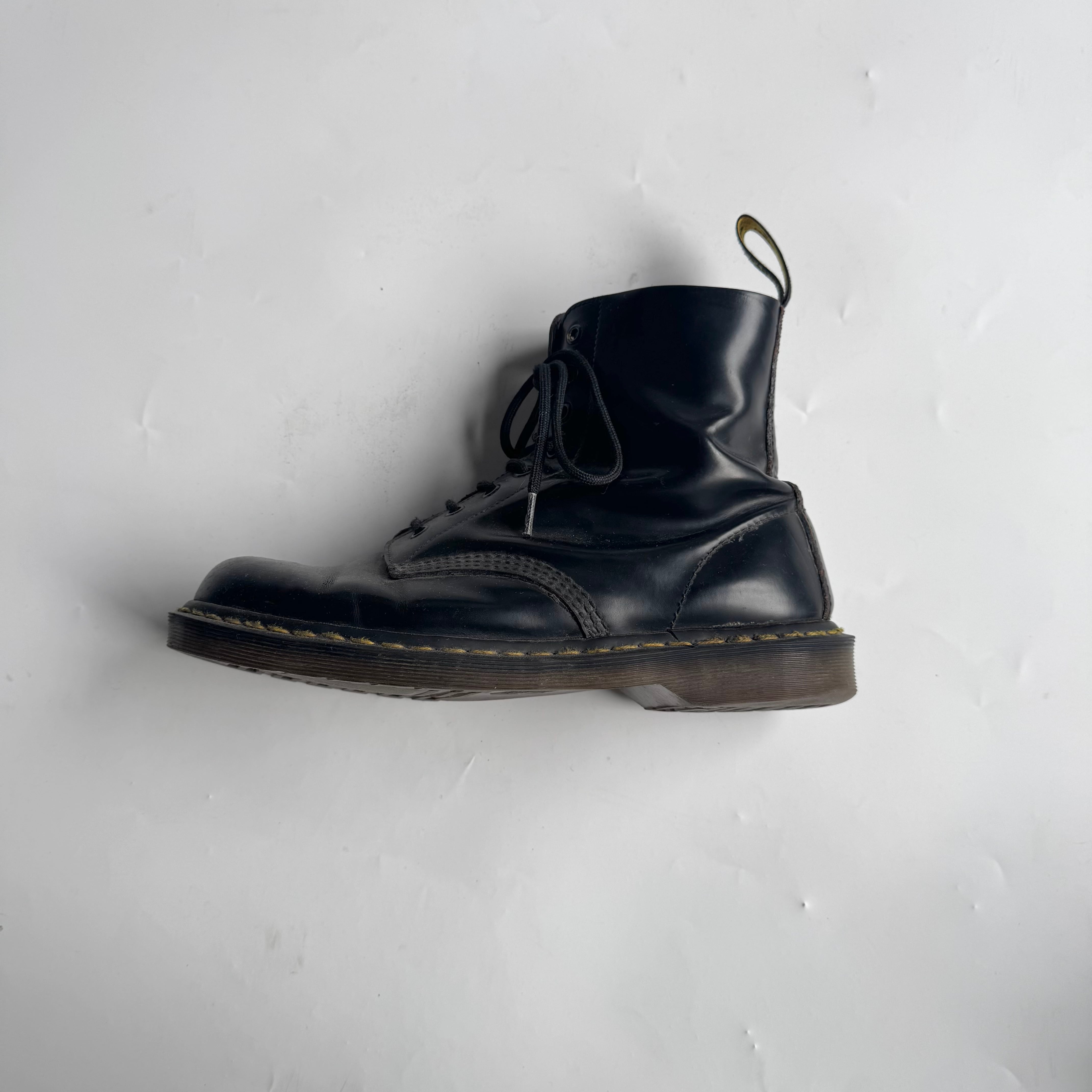 イングランド製の8ホール ukロックやパンクス カルチャー好きはもちろん アメリカ古着との相性も◎ •SIZE 表記不明 恐らく26.5~27cm 普段26.5のスタッフが着用、 キツくなく少し余るフィット感。 •MATERIAL LEATHER •COLOR ブラック •CONDITION 使用感、履きシワ、ソールの擦れ。 f827