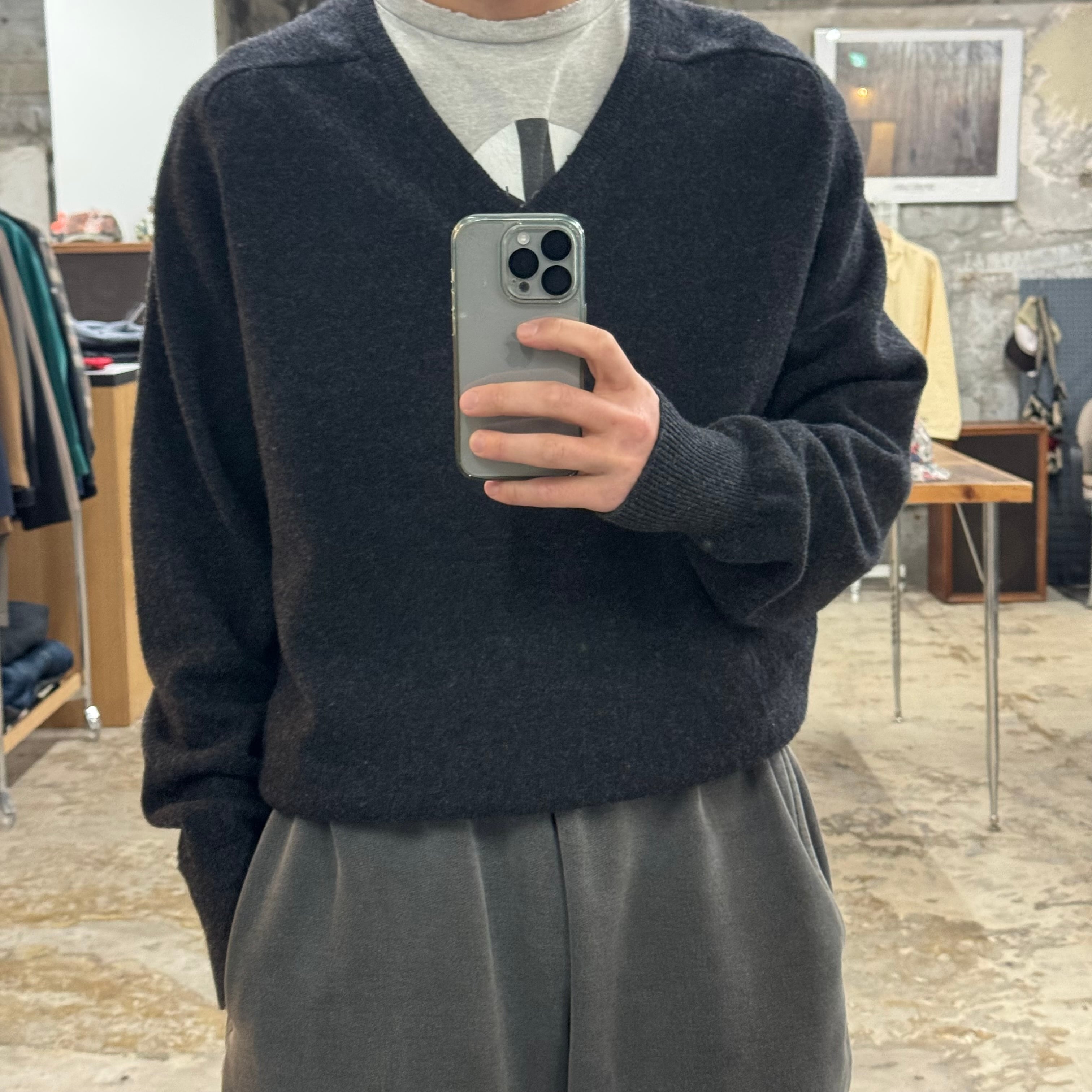 "MADE IN UNITED KINGDOM" 良質ラムウール100◎ •SIZE L 裄丈 96cm 身幅 60.5cm 着丈 66.5cm 175cm着用 •MATERIAL LAMB WOOL 100% •COLOR チャコールグレー系 •CONDITION 使用感はございますが、目立った傷や汚れ等はございません。 gar2834