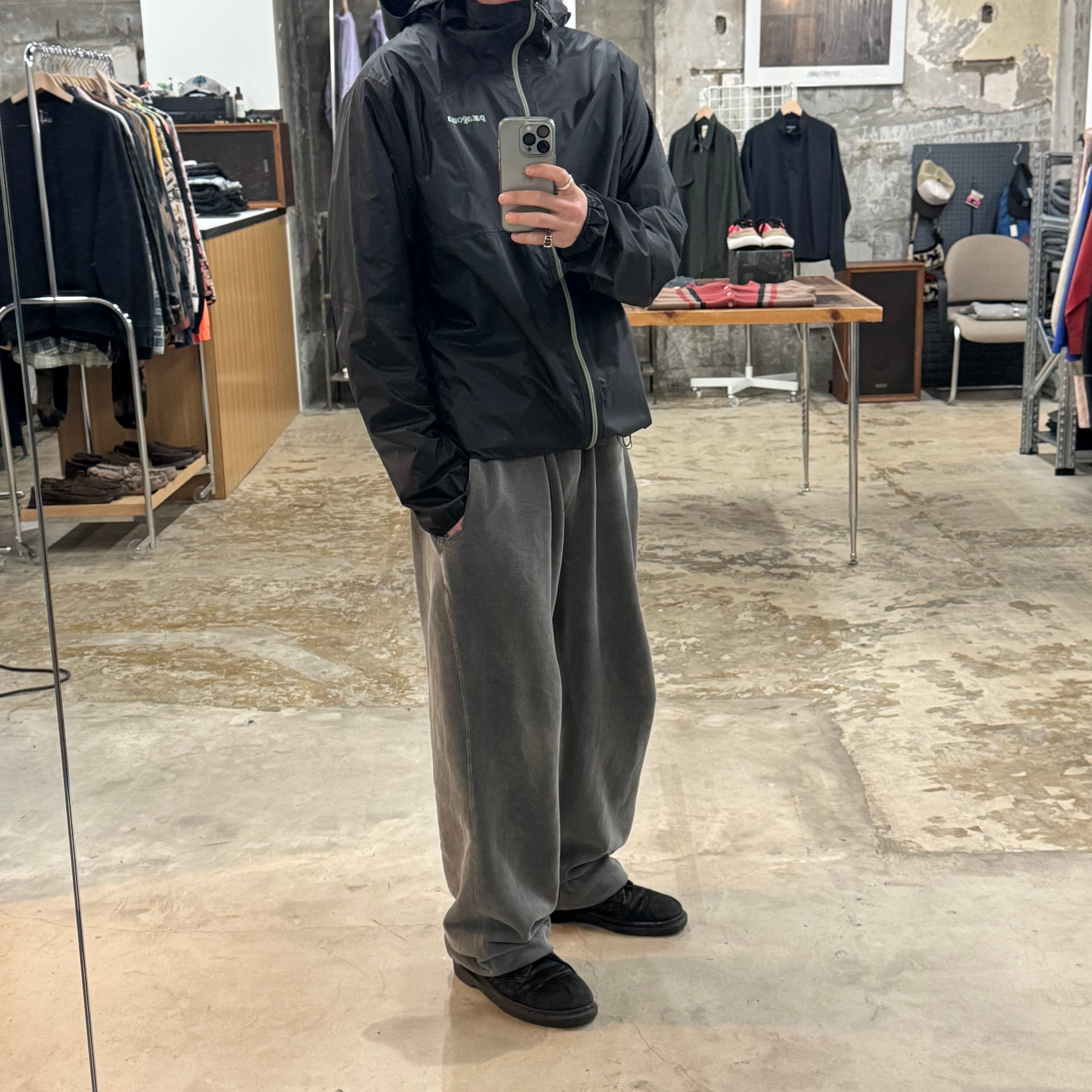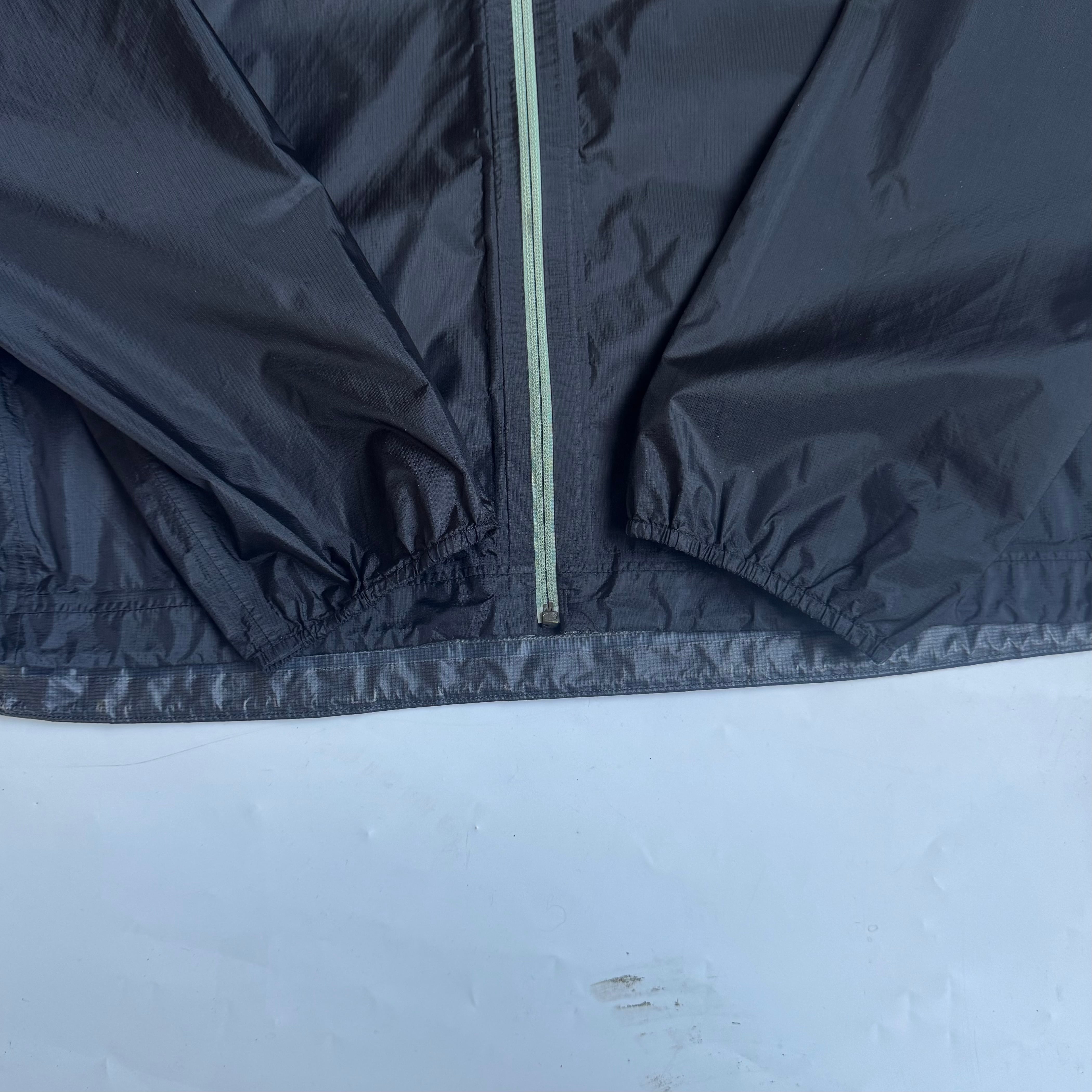 •SIZE L 肩幅 49cm 袖丈 71cm 身幅 61cm 着丈 73cm 175cm着用 •MATERIAL NYLON 100% •COLOR ブラック •CONDITION 使用感、フロントに薄い汚れ。 写真にてご確認ください。 f847