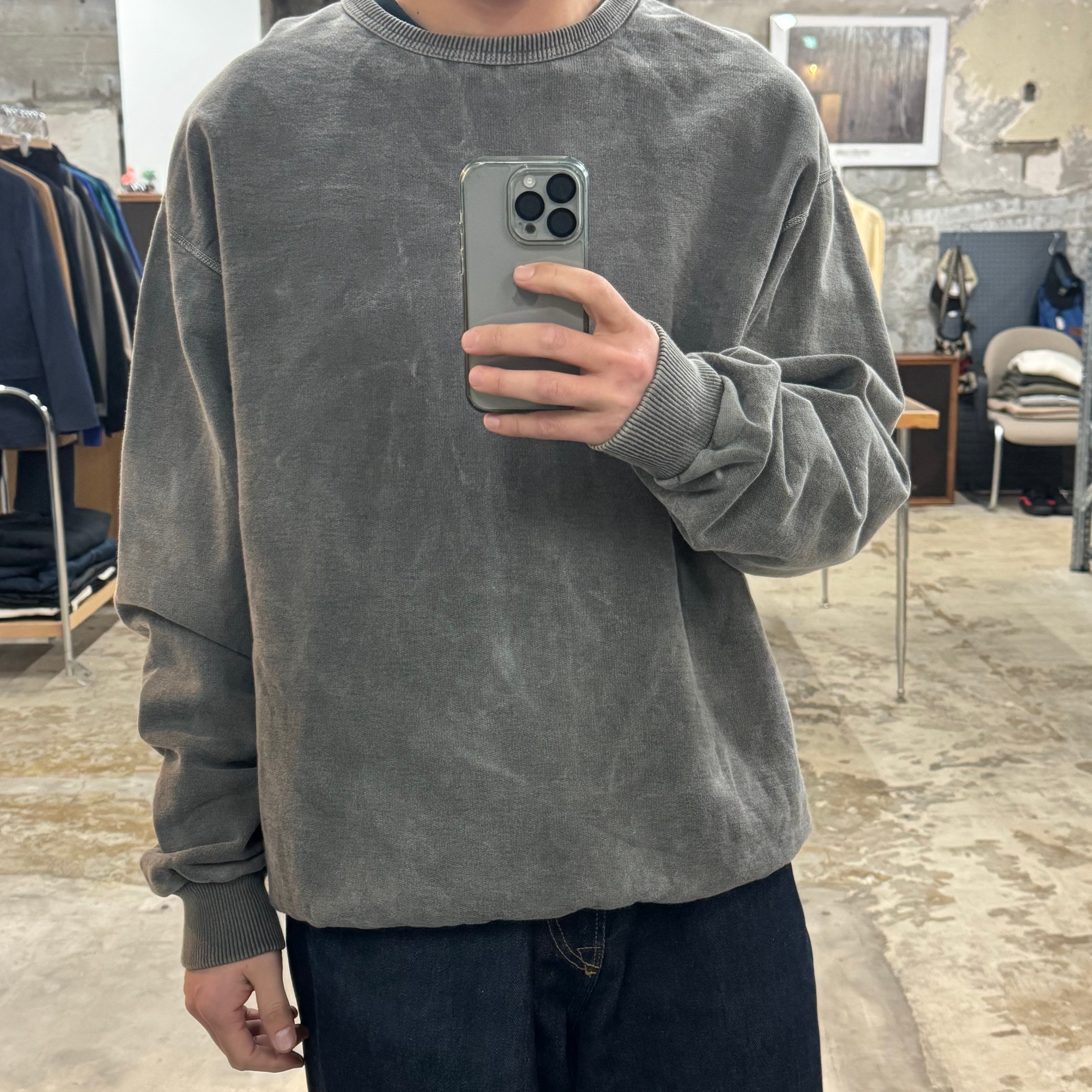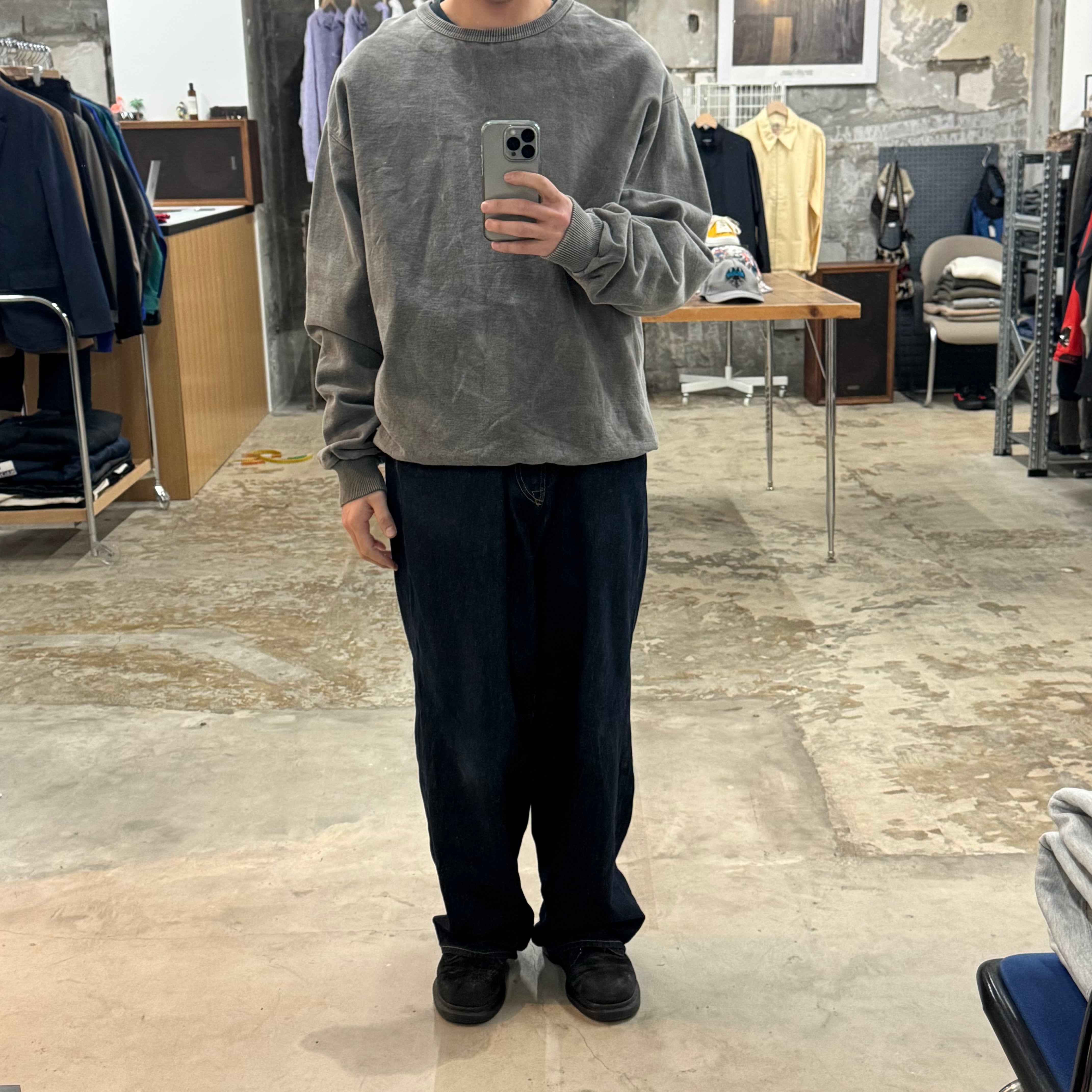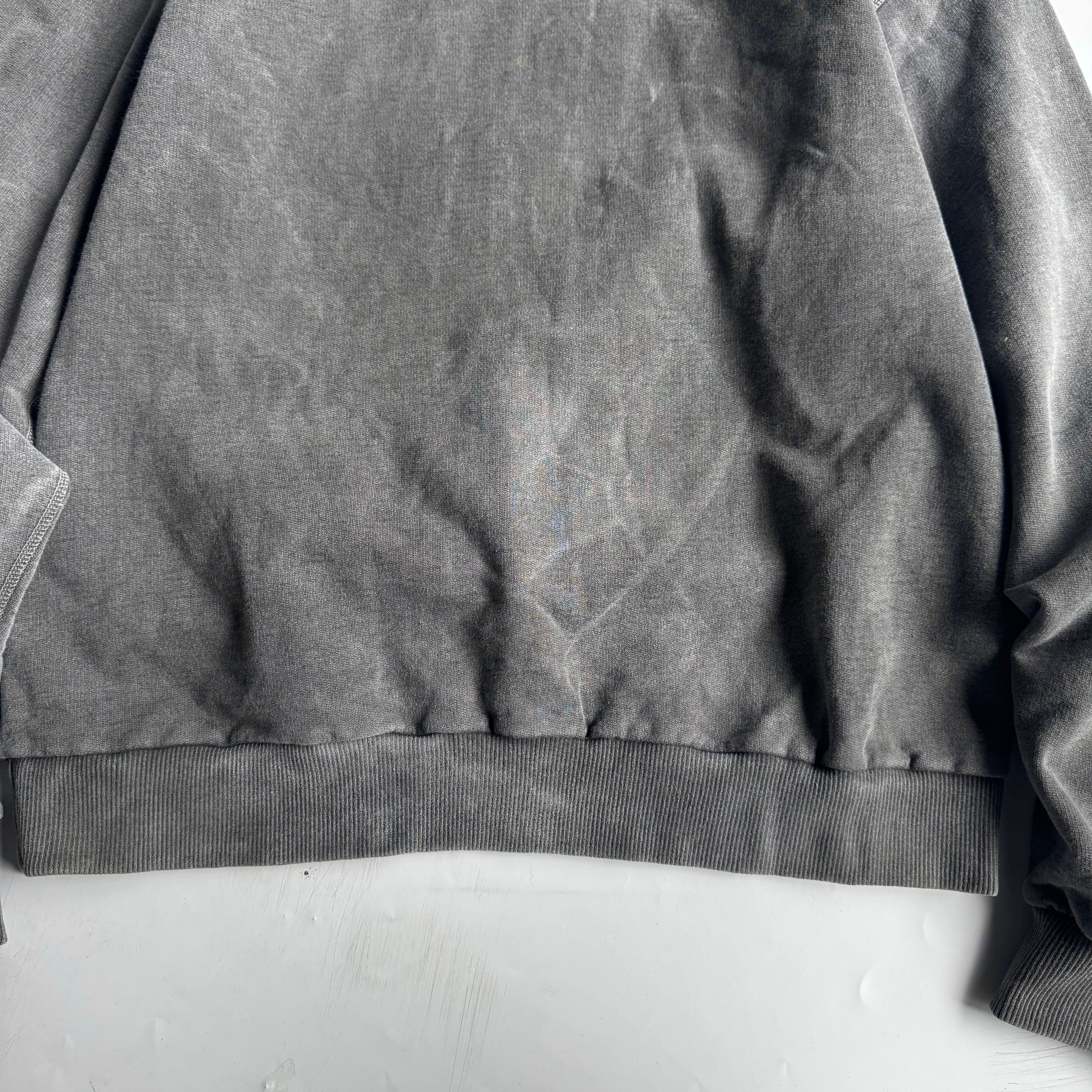 恐らくwindriver製 •SIZE M 肩幅 60cm 袖丈 68cm 身幅 66cm 着丈 73cm 175cm着用(裾リブを折って) 175cm着用 •MATERIAL COTTON 100% •COLOR グレー系 •CONDITION 使用感、フロントに薄い汚れ。 写真にてご確認下さい。 ya6588