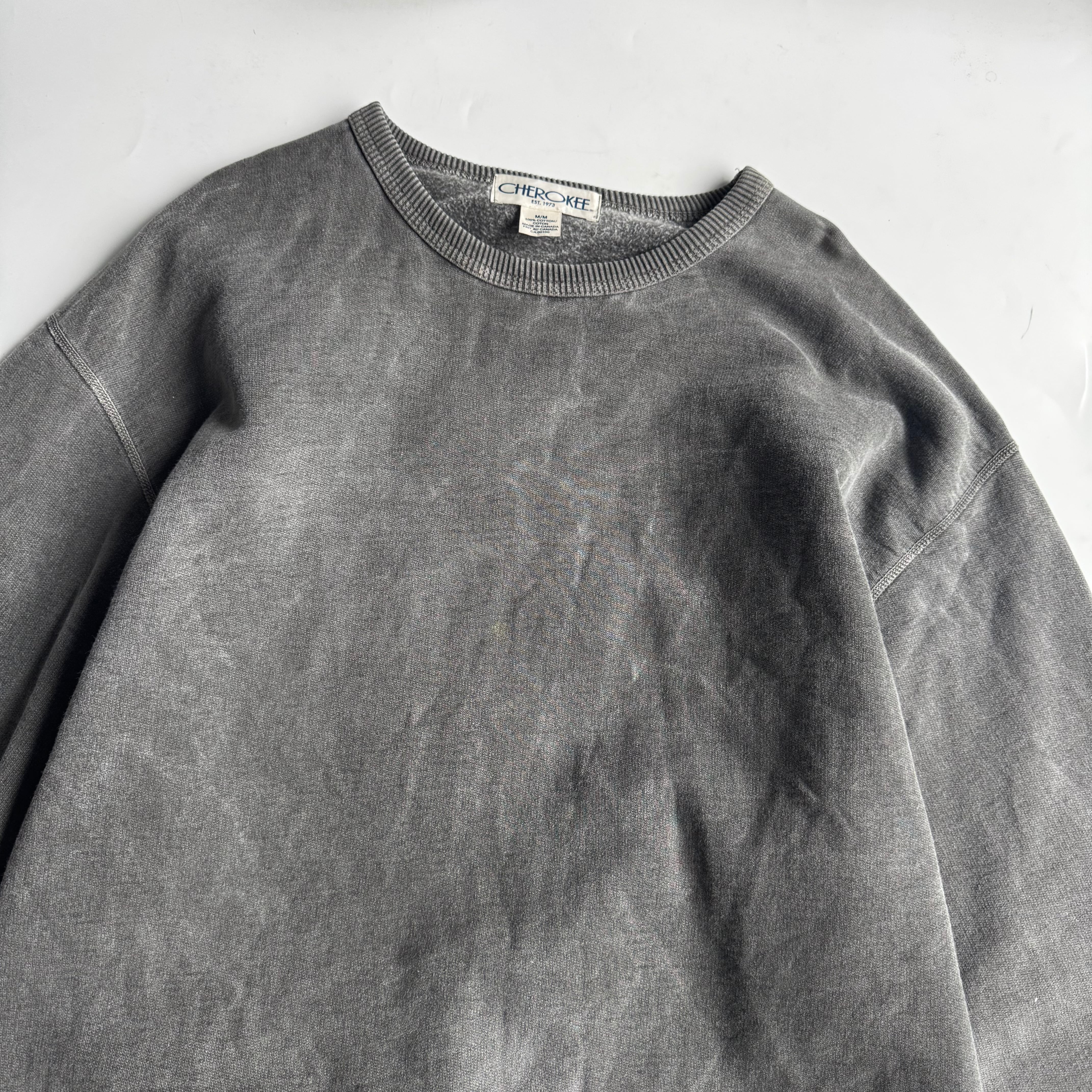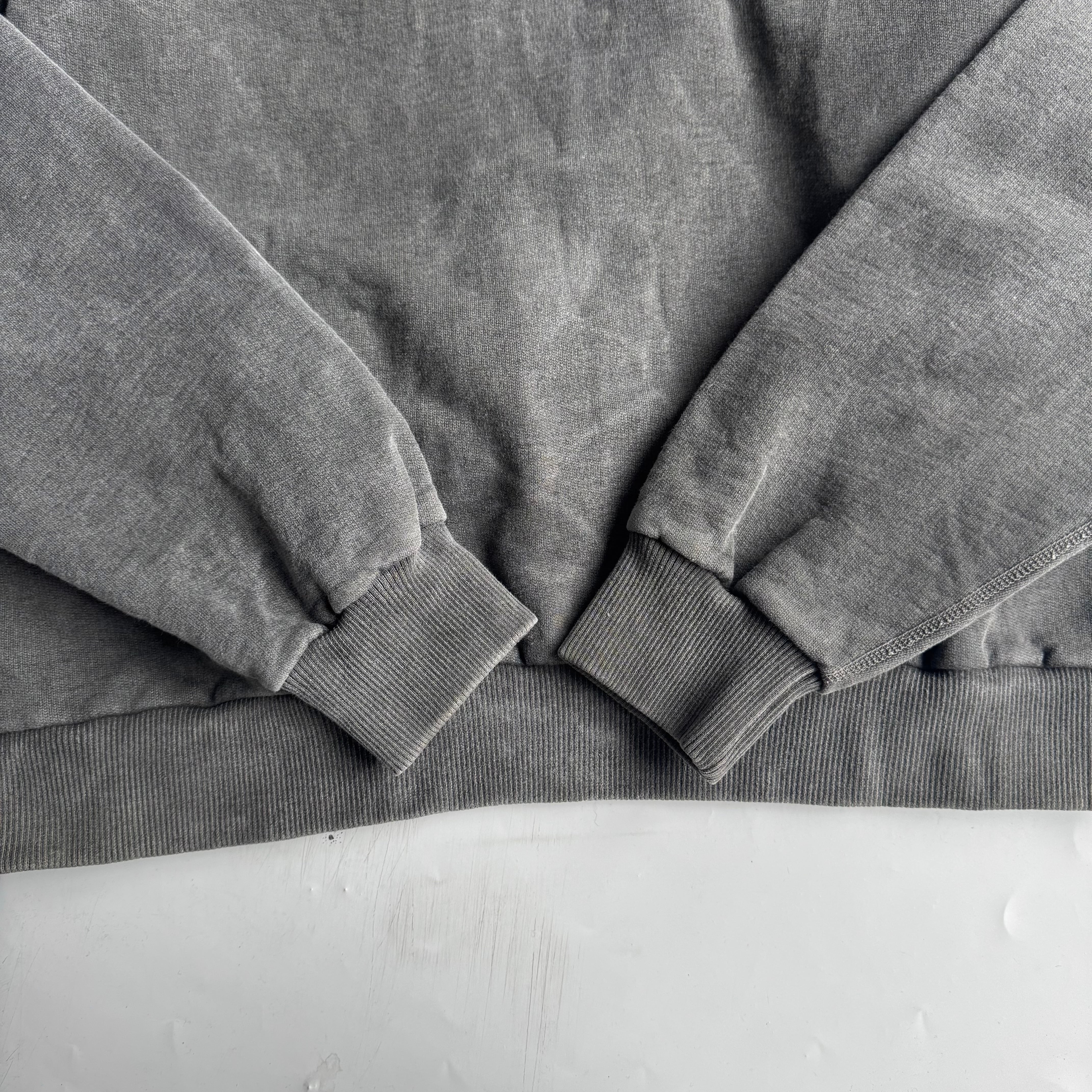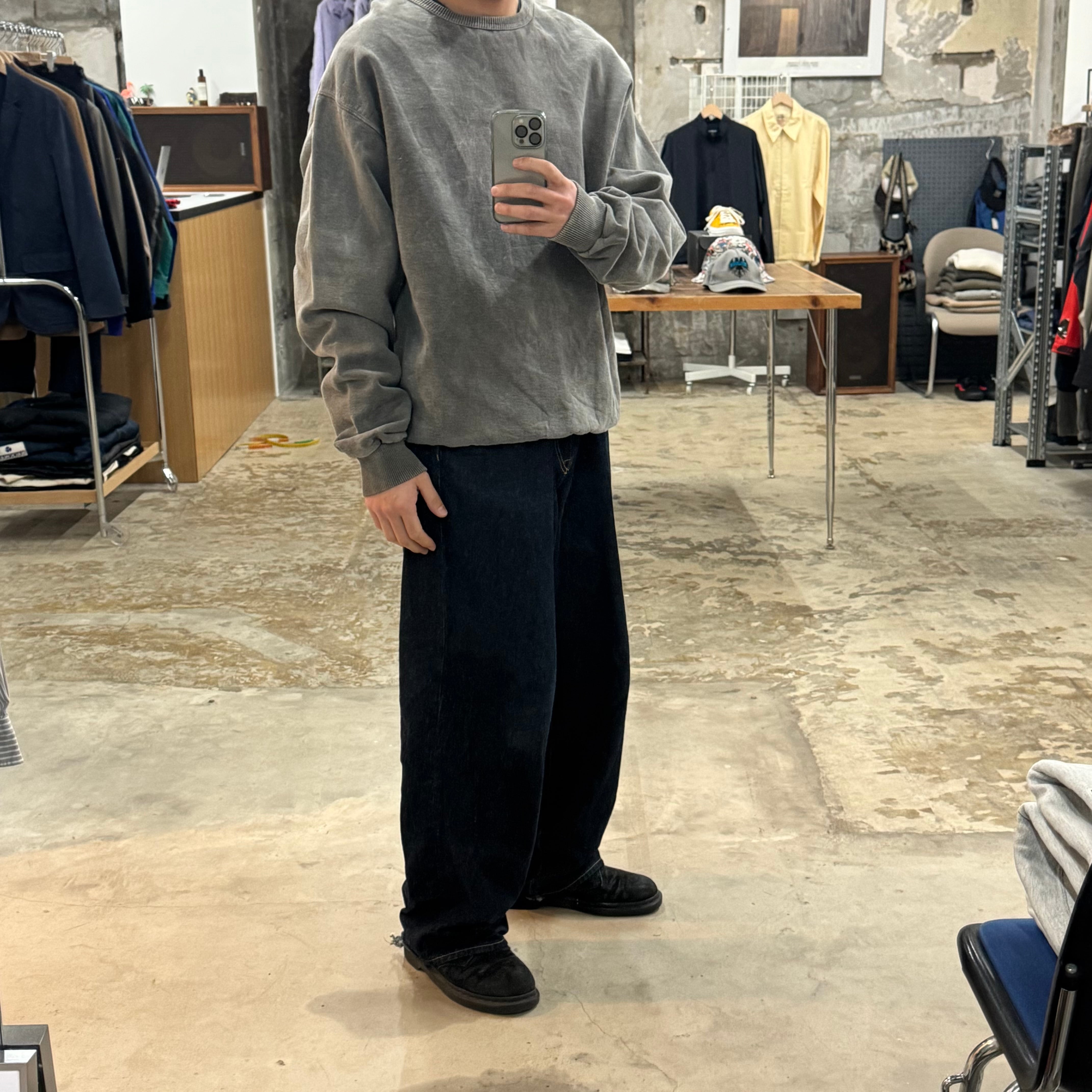 恐らくwindriver製 •SIZE M 肩幅 60cm 袖丈 68cm 身幅 66cm 着丈 73cm 175cm着用(裾リブを折って) 175cm着用 •MATERIAL COTTON 100% •COLOR グレー系 •CONDITION 使用感、フロントに薄い汚れ。 写真にてご確認下さい。 ya6588